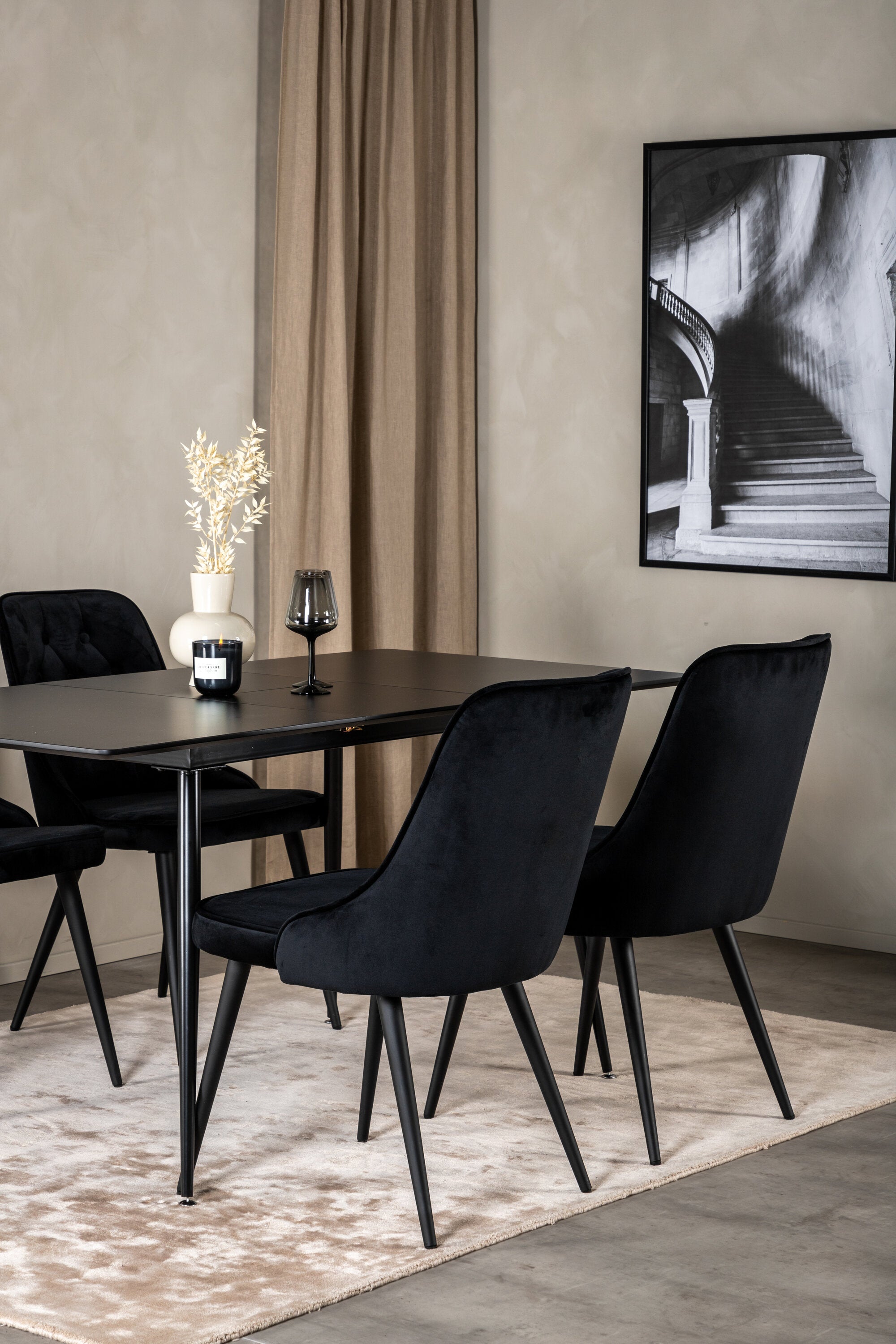 Prodlužovací stůl Silar – černý melamin/černé nohy+velvetová luxusní jídelní židle – černá/černá_4