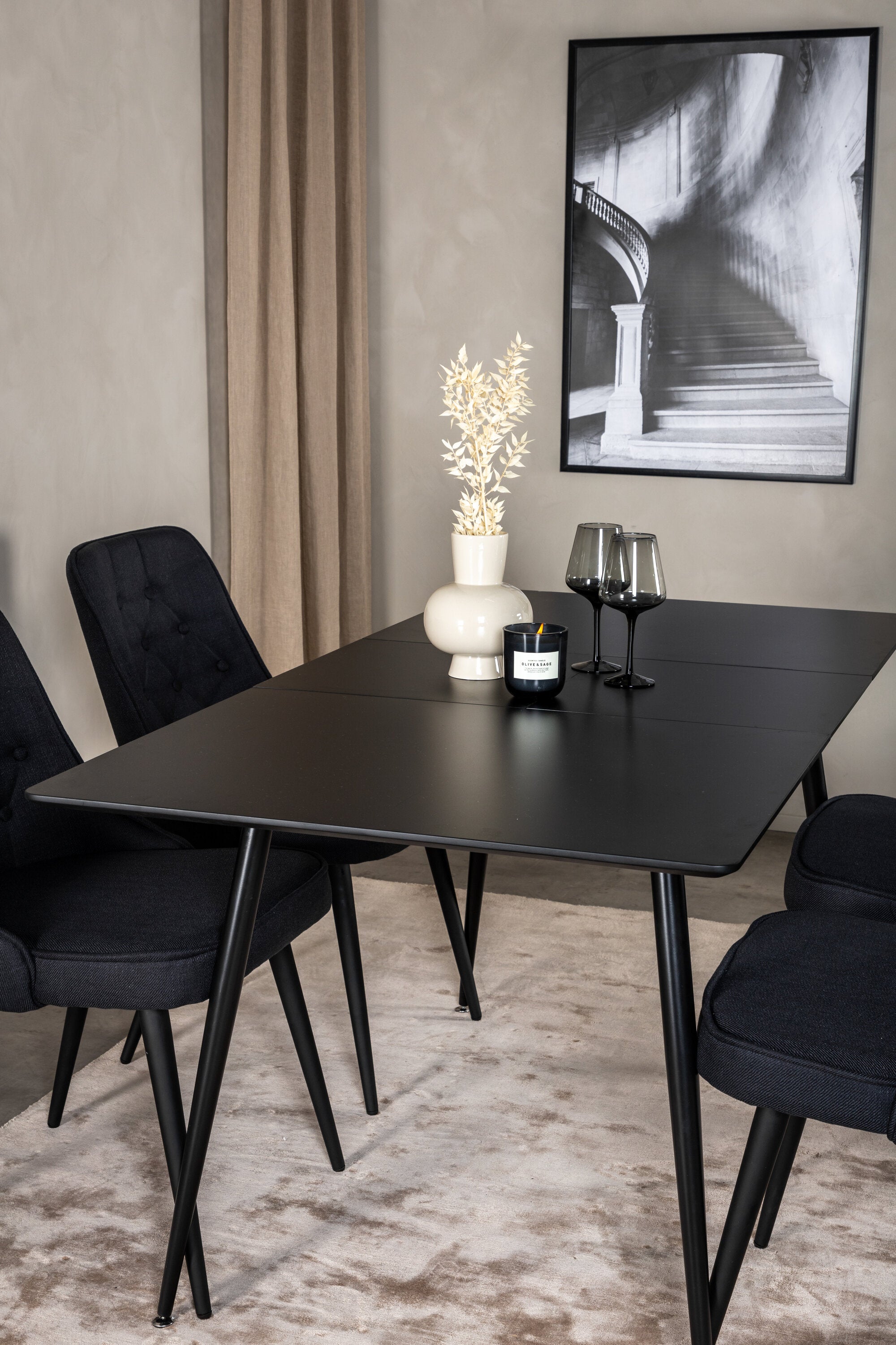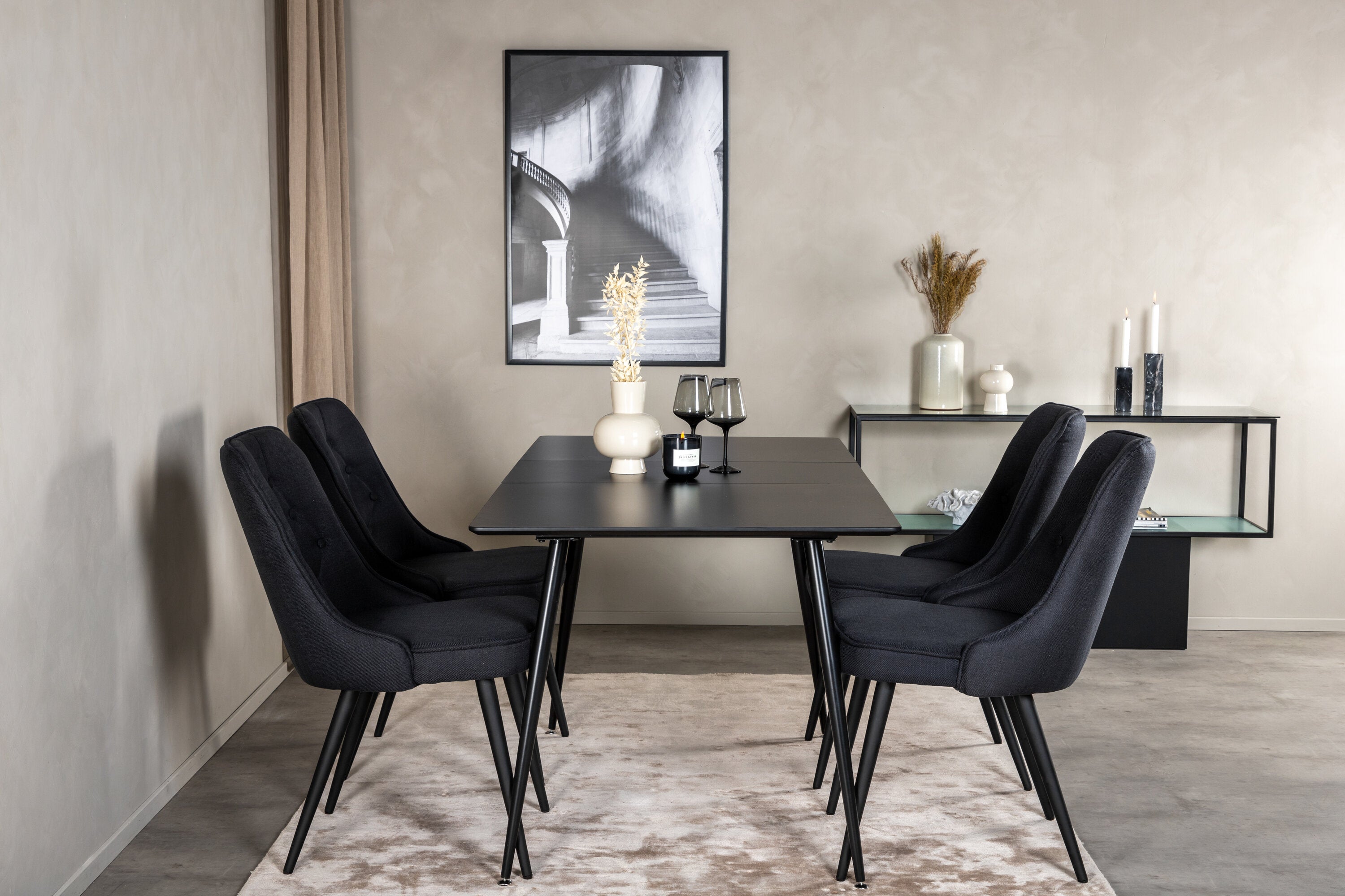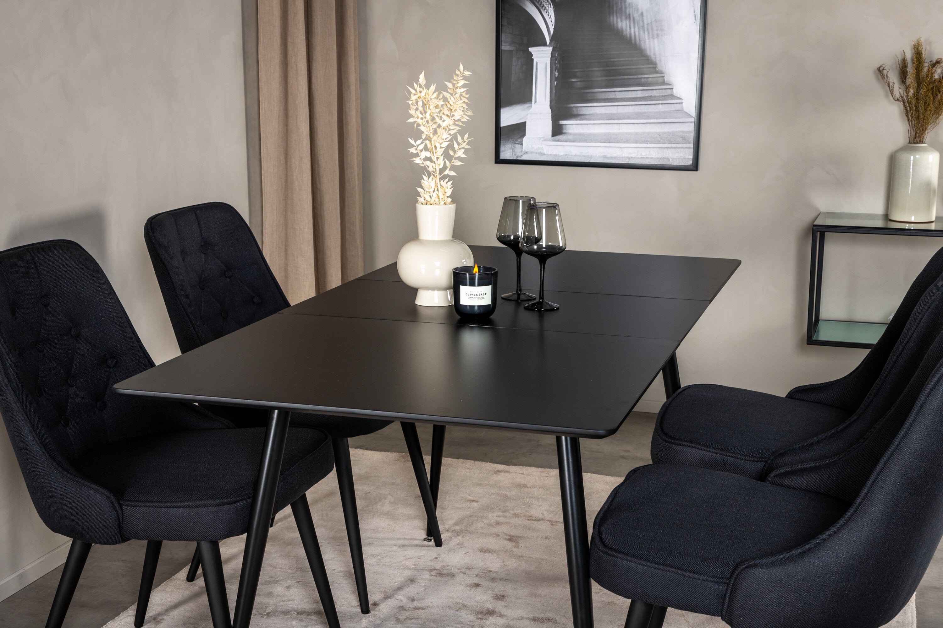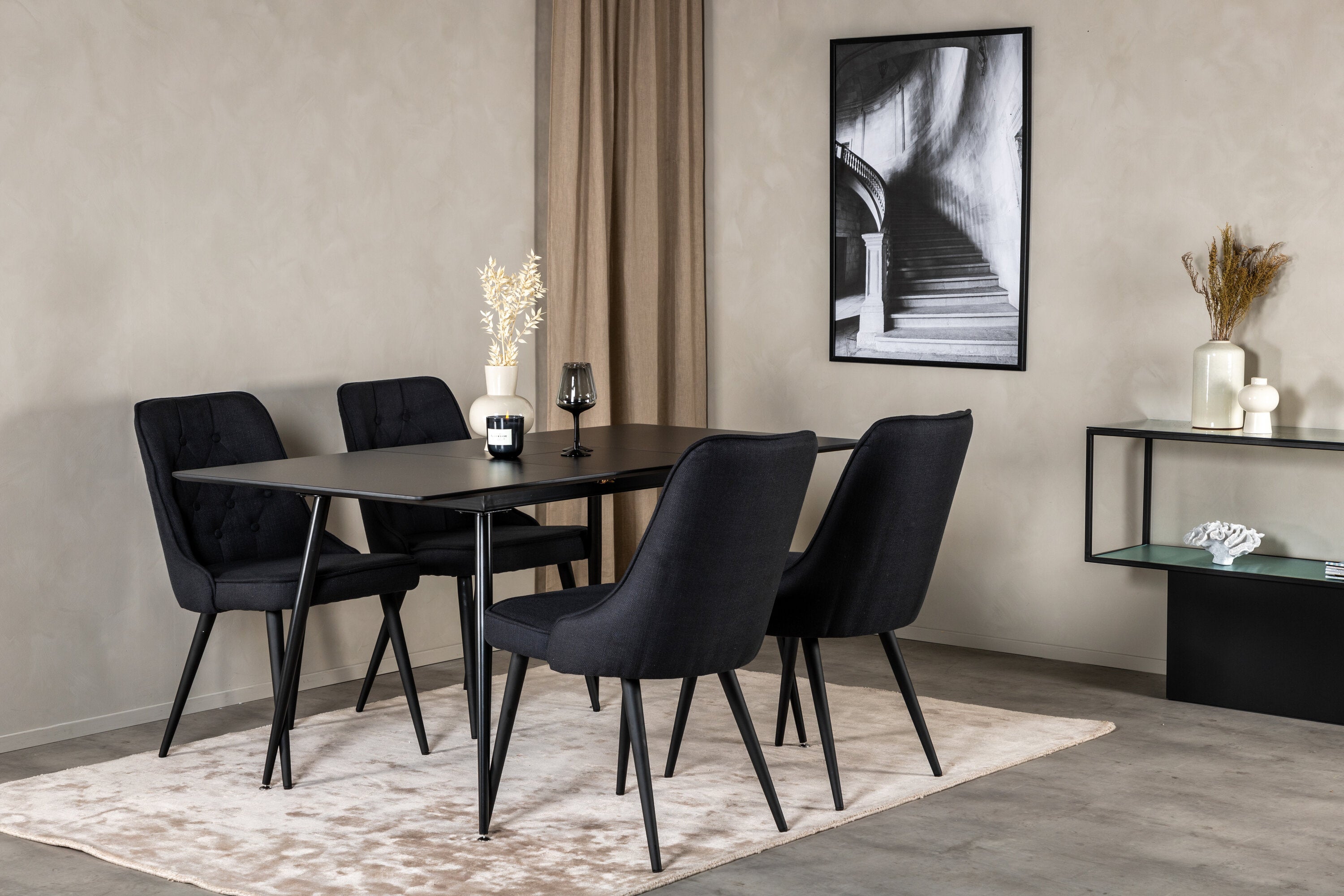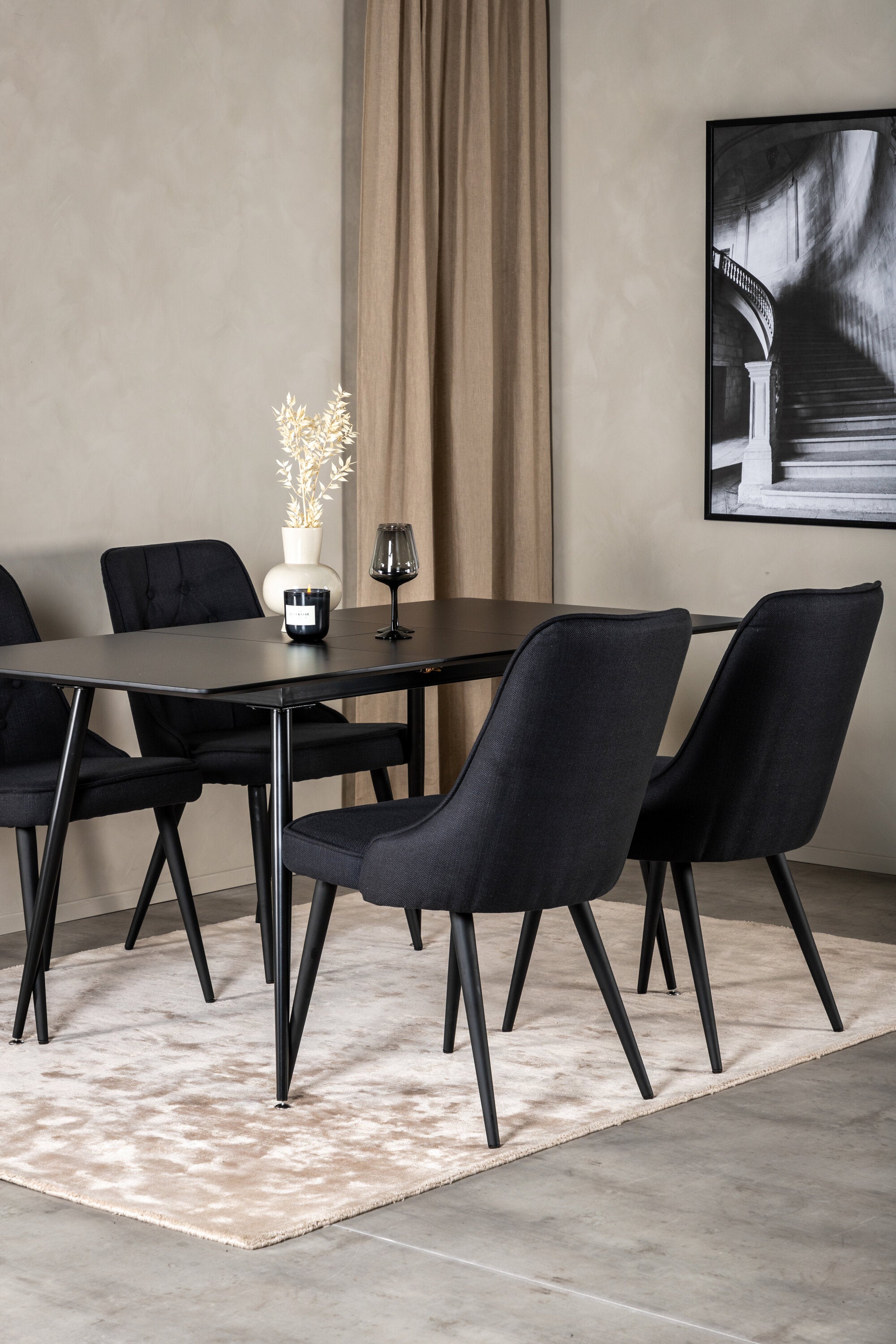 Prodlužovací stůl Silar – černý melamin/černé nohy+velvetová luxusní jídelní židle – černé nohy – černá látka_4