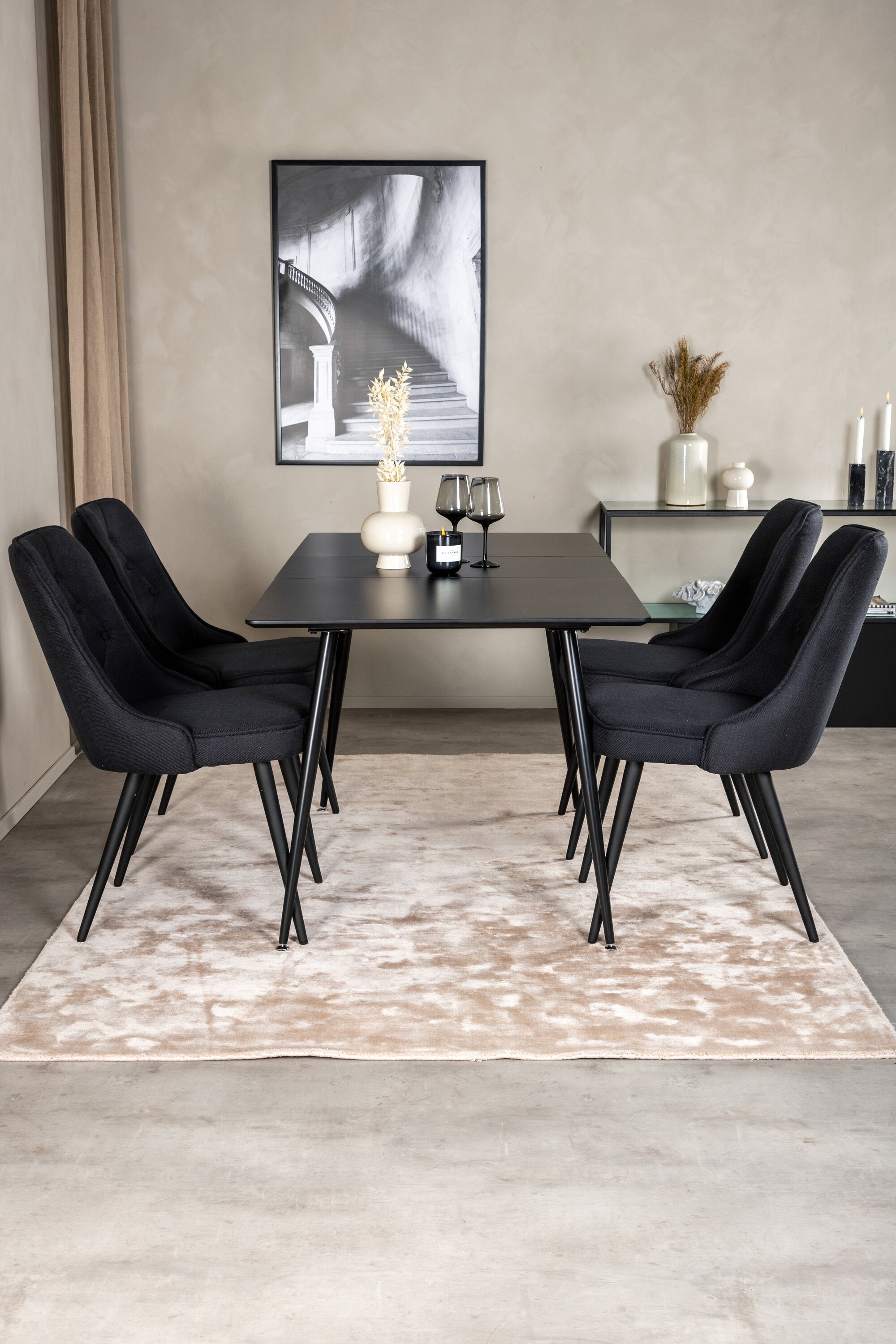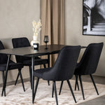 Jídelní židle Velvet mají dobré pohodlí a jídelní stůl Sinar znamená, že se nemusíte starat o to, aby všichni měli místo - ideální kombinace pro ty, kteří chtějí trendy skupinu jídel. Vysoký komfort sezení křesel zve k dlouhým a úžasným chvilkám společenského života!
