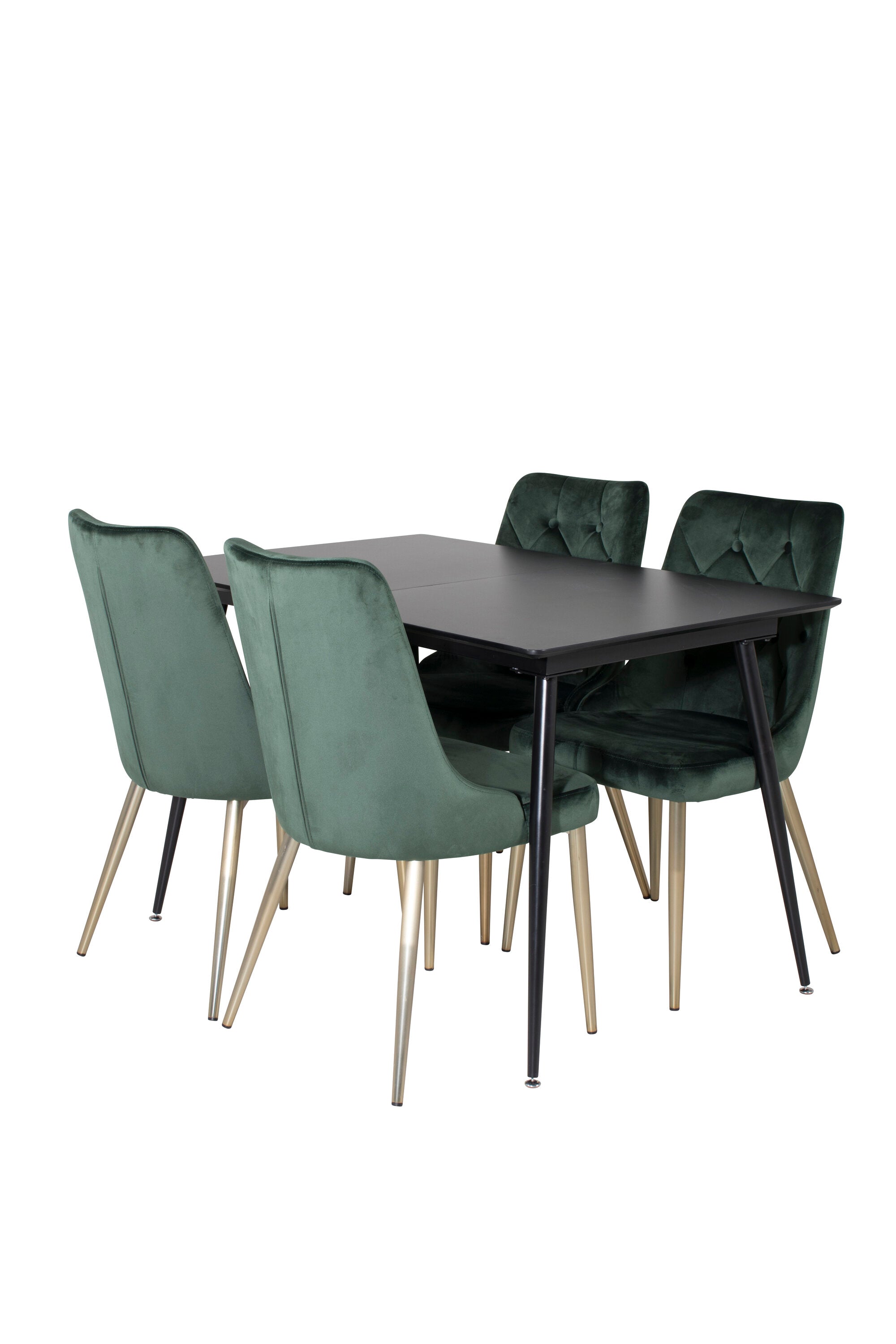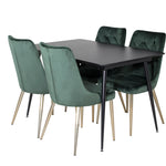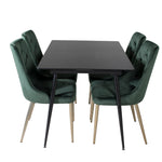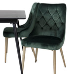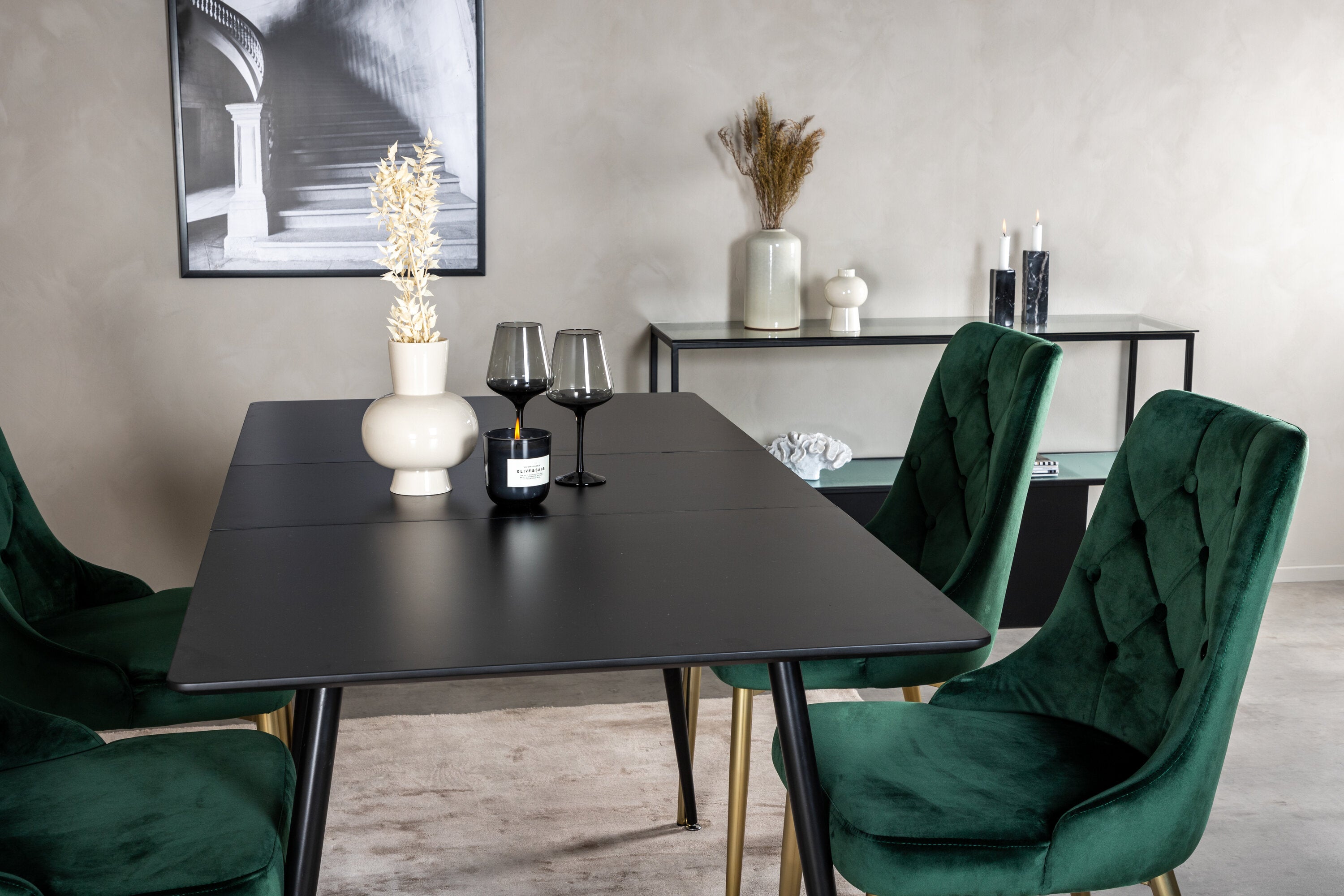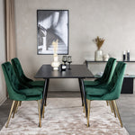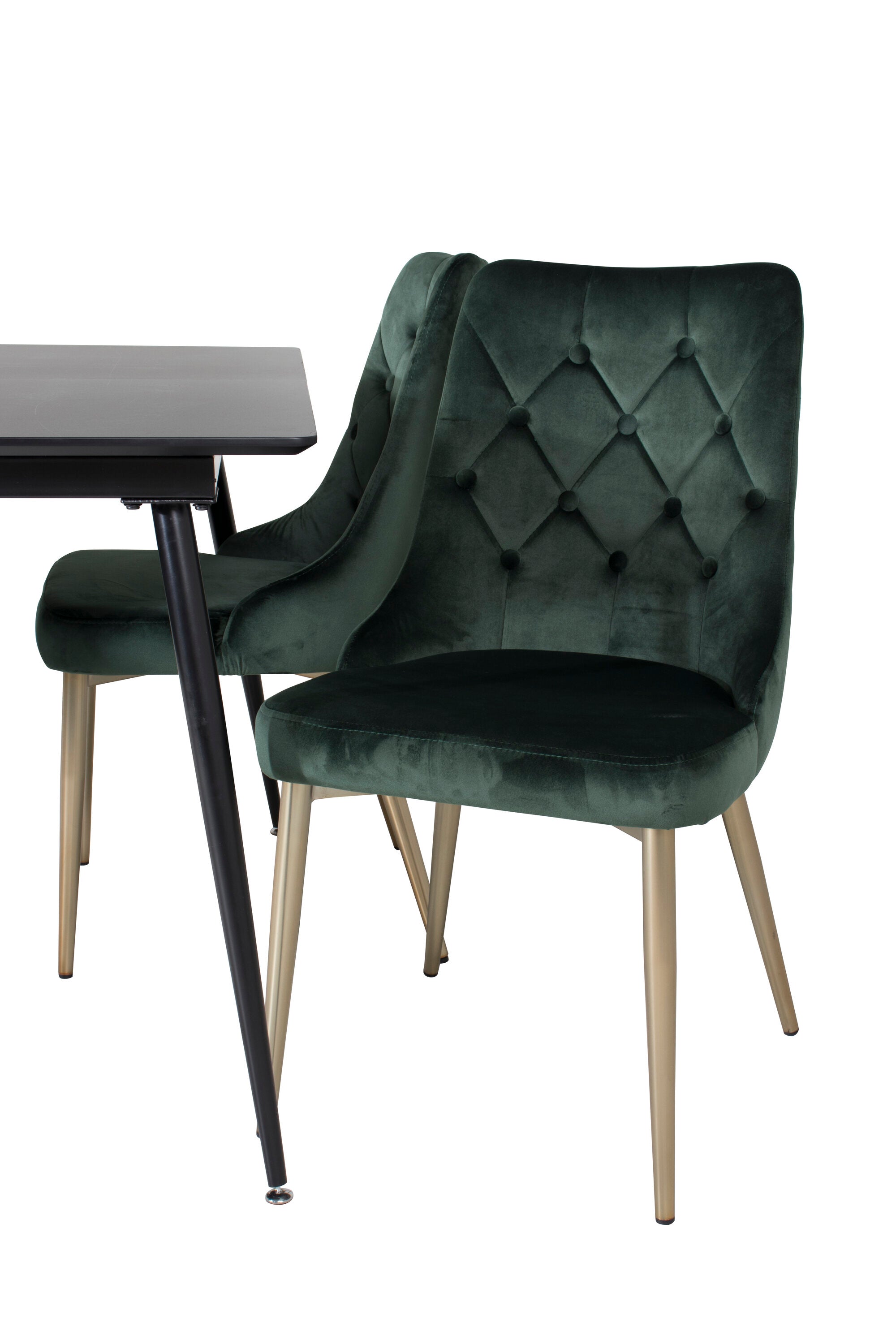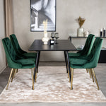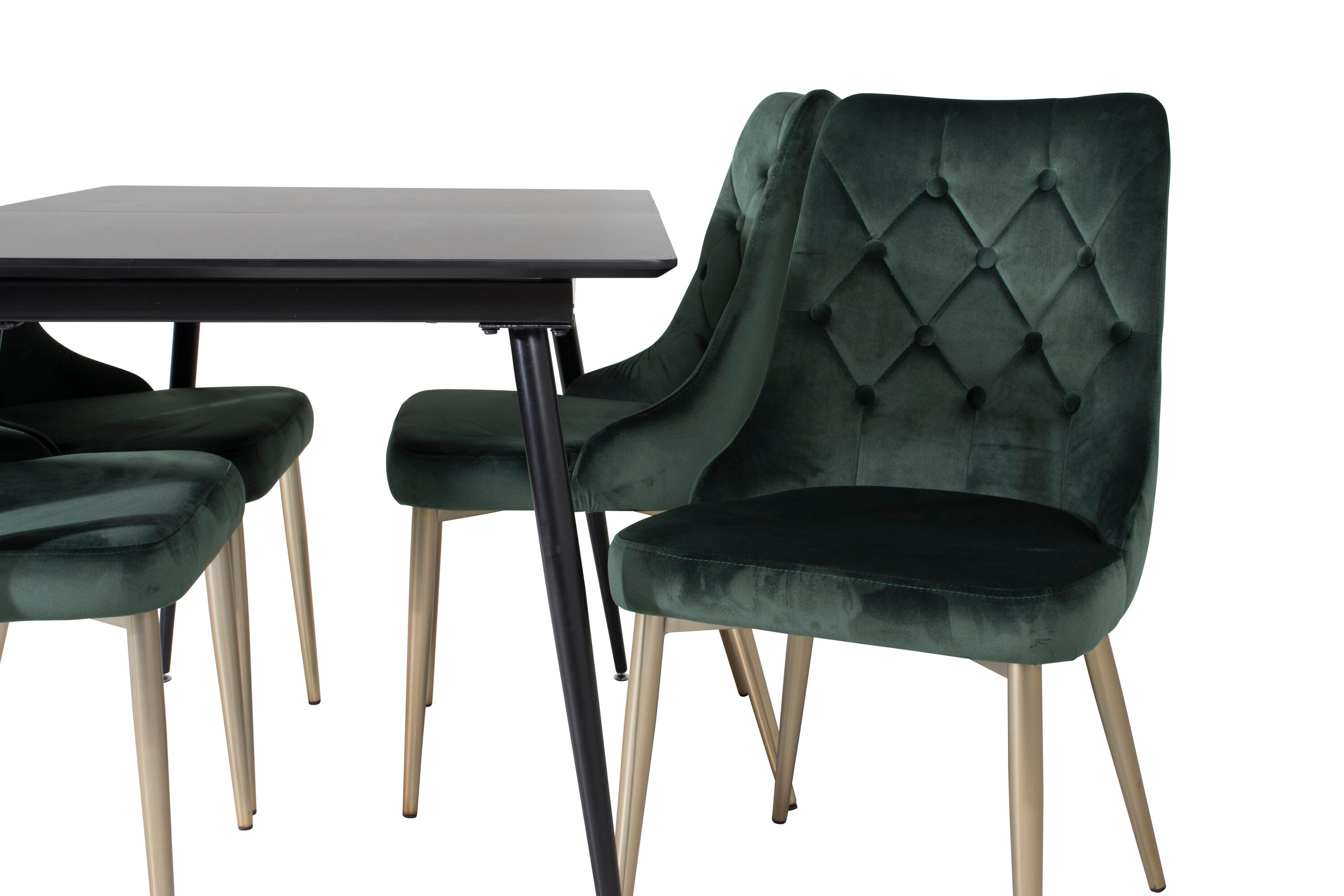 S klasickým a moderním jídelním stolem SILAR v černé barvě se může celá rodina sejít k večeři a společenskému setkání. Zde spolu s našimi pompézními zelenými jídelními židlemi Velvet. Krásné barvy, které vytvoří prostor v místnosti a zvou k mnoha nádherným společenským chvilkám.