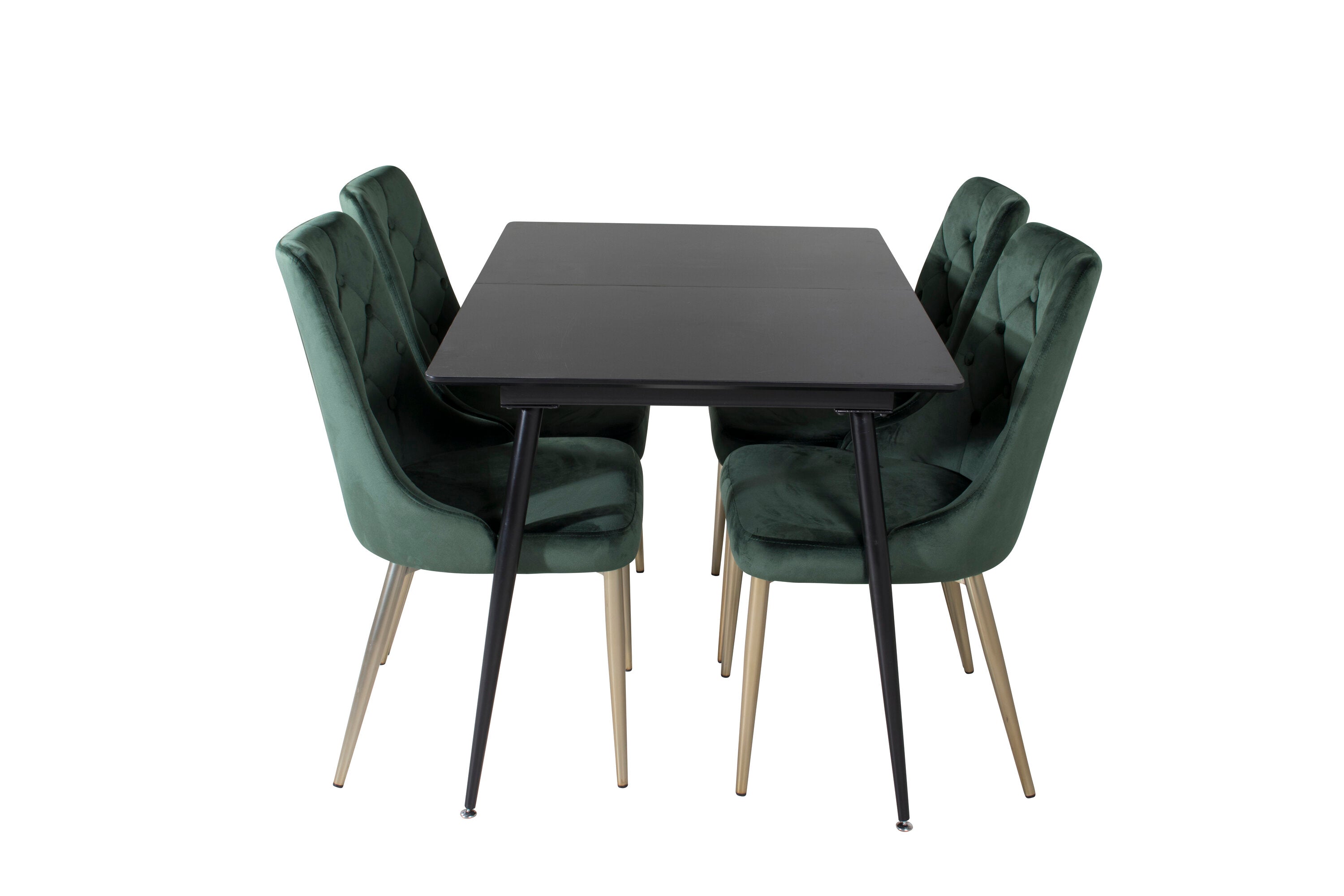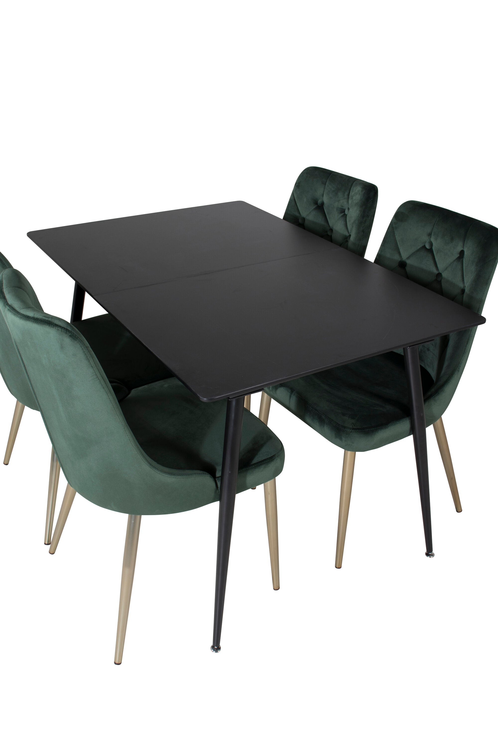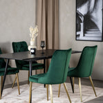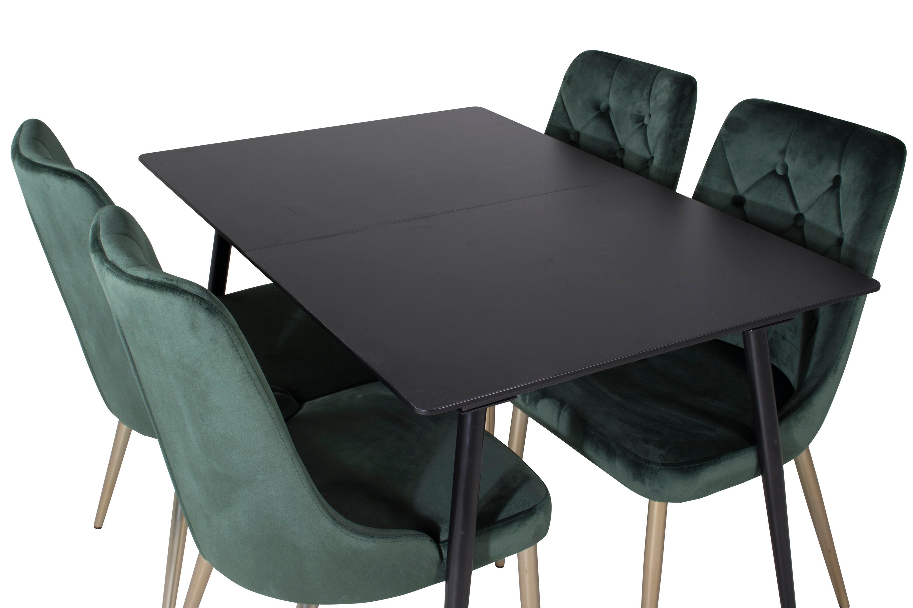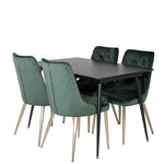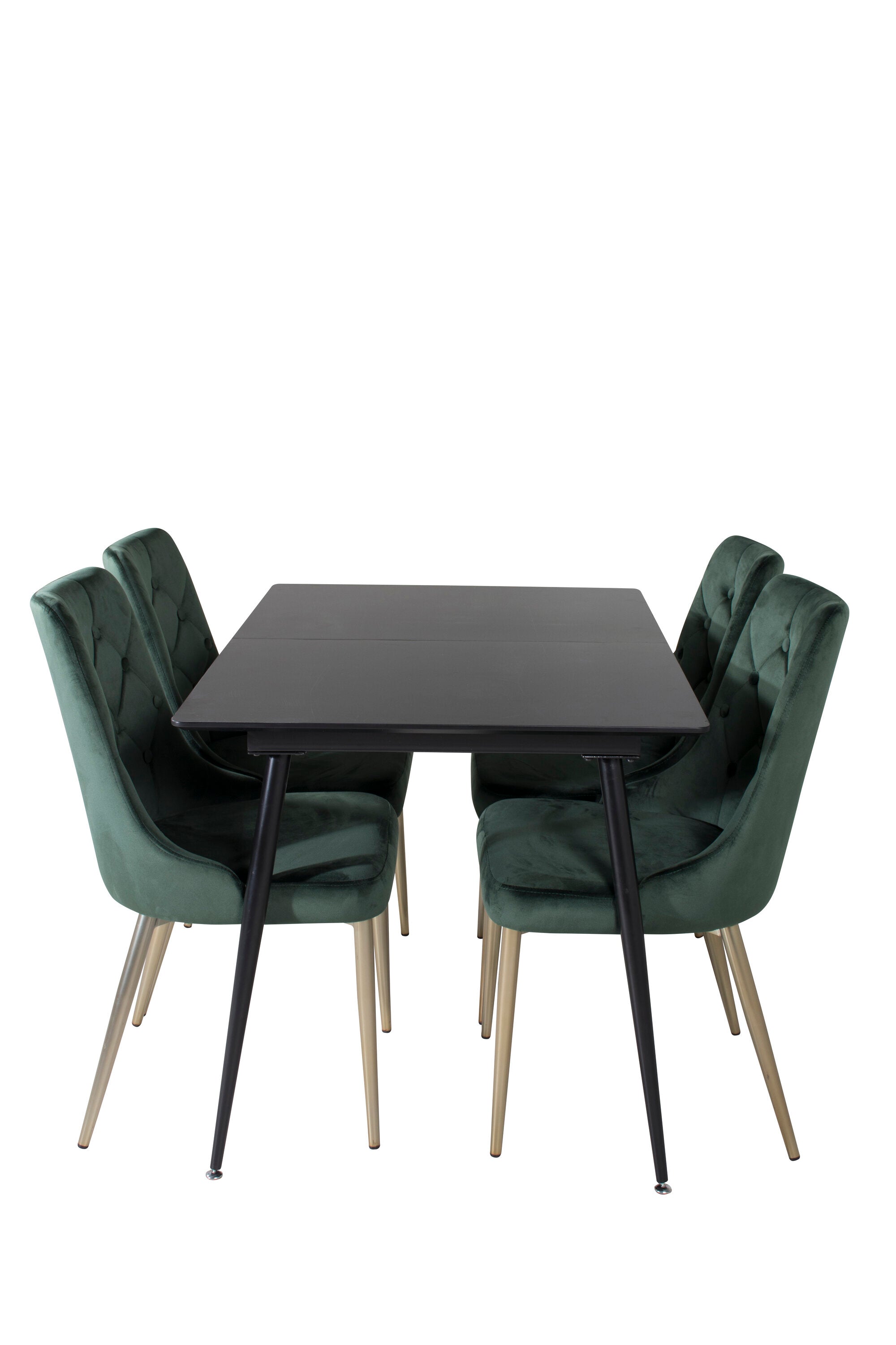 S klasickým a moderním jídelním stolem SILAR v černé barvě se může celá rodina sejít k večeři a společenskému setkání. Zde spolu s našimi pompézními zelenými jídelními židlemi Velvet. Krásné barvy, které vytvoří prostor v místnosti a zvou k mnoha nádherným společenským chvilkám.