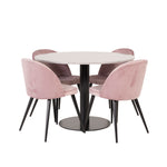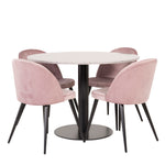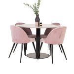 Skupina jídel v moderním a stylovém designu. Jídelní stůl Razzia a jídelní židle Velvet jsou perfektní kombinací do srdce domova, která pravděpodobně zapadne stejně dobře do vašich potřeb jako do vašeho jiného interiéru.