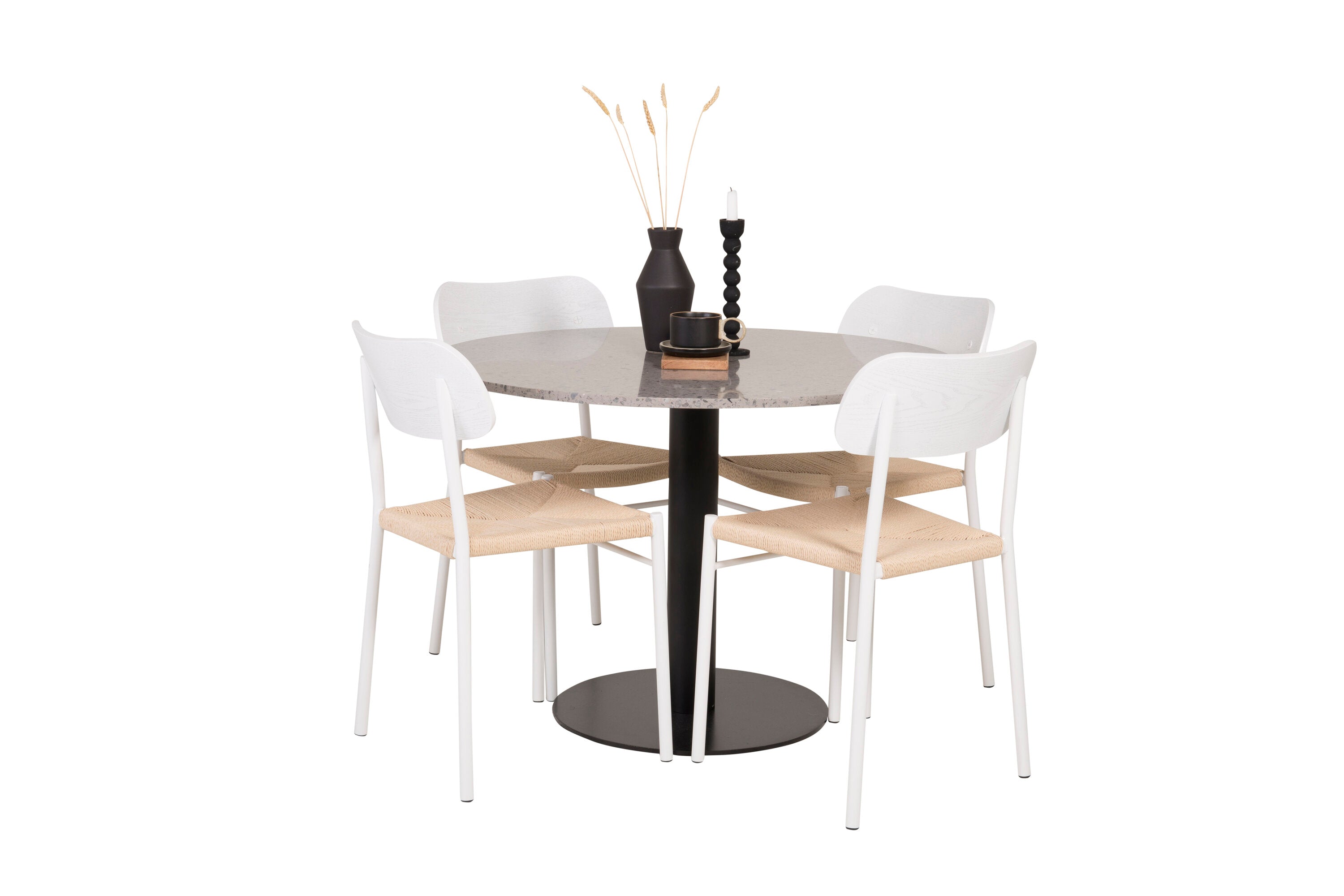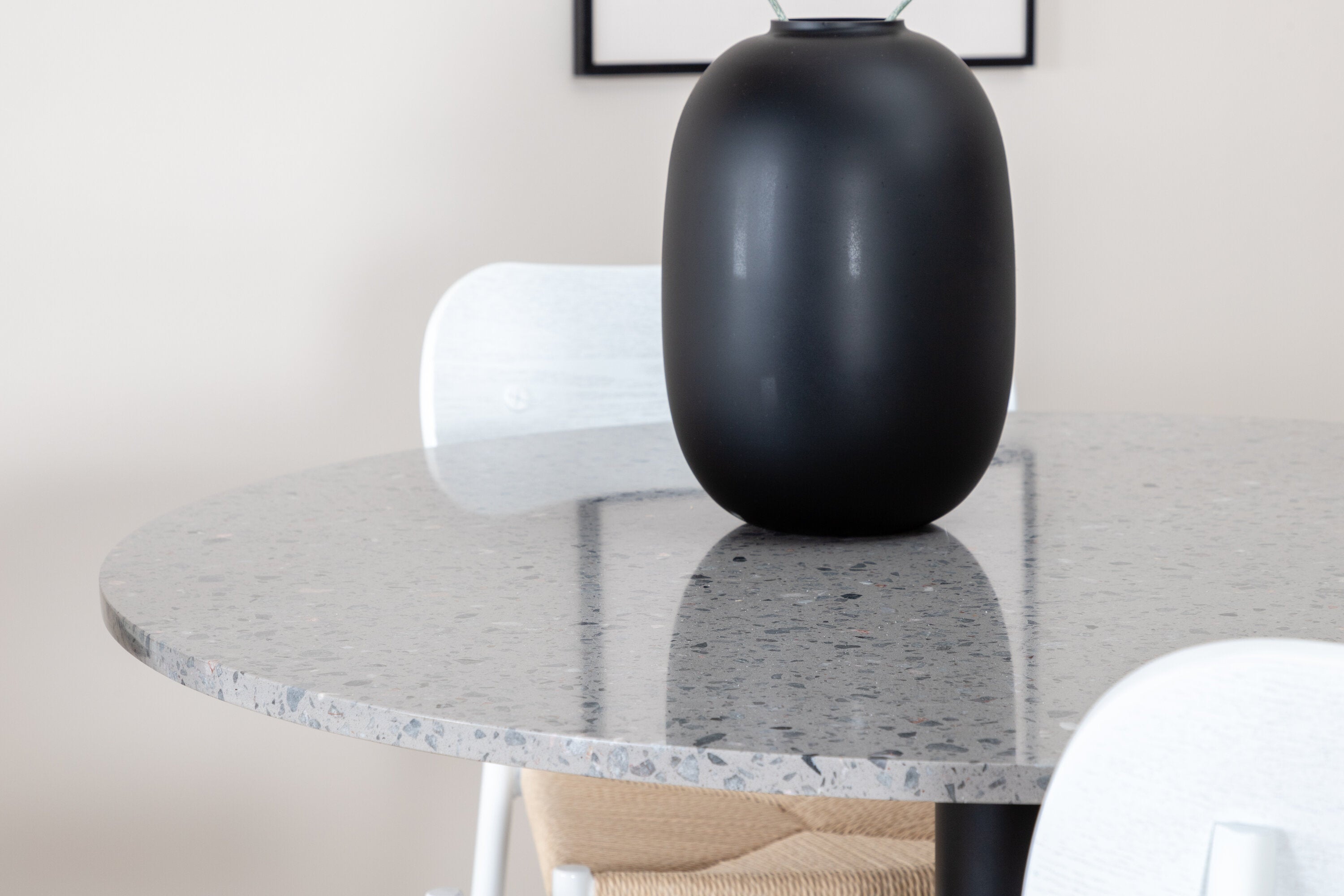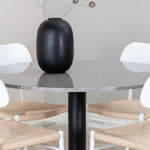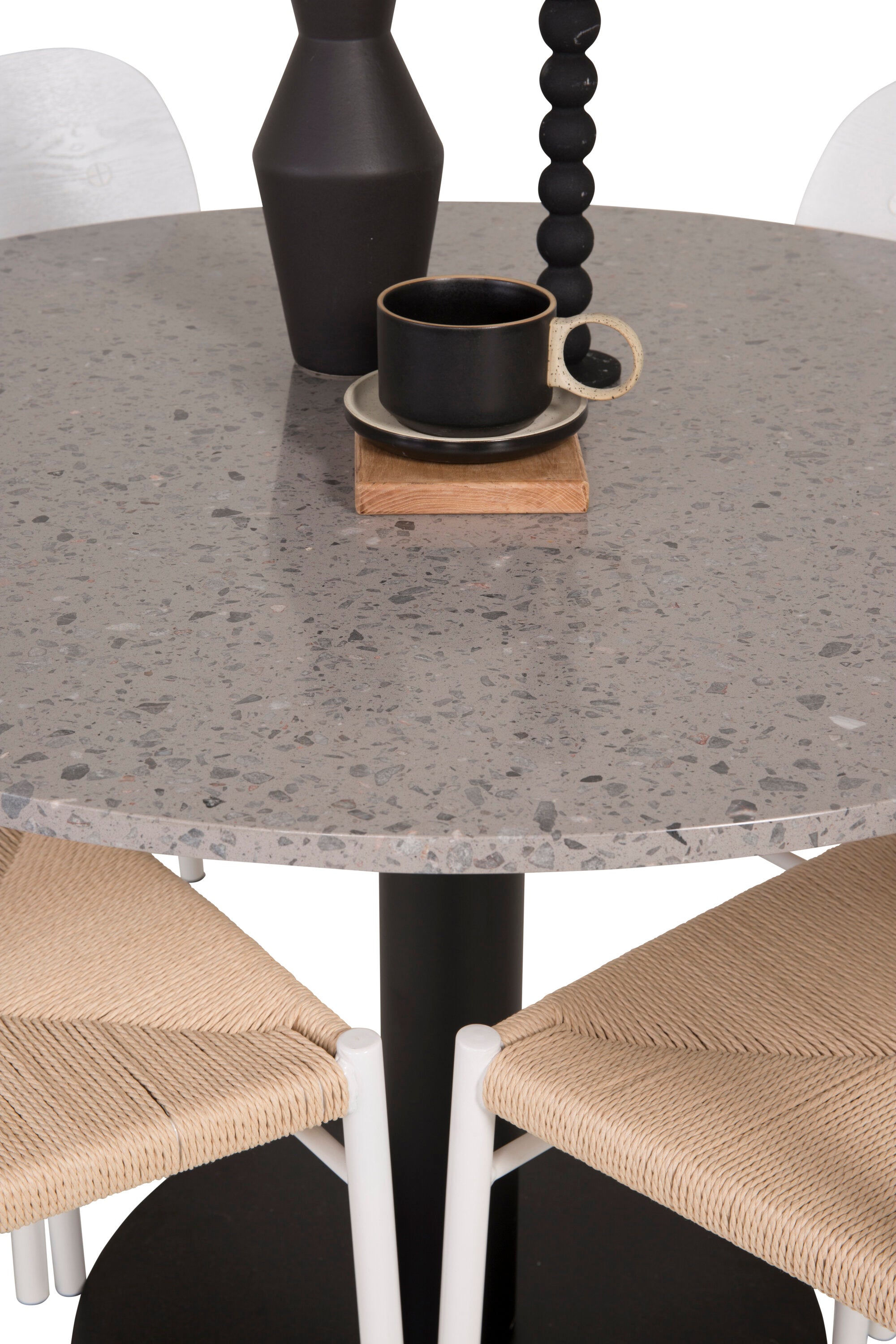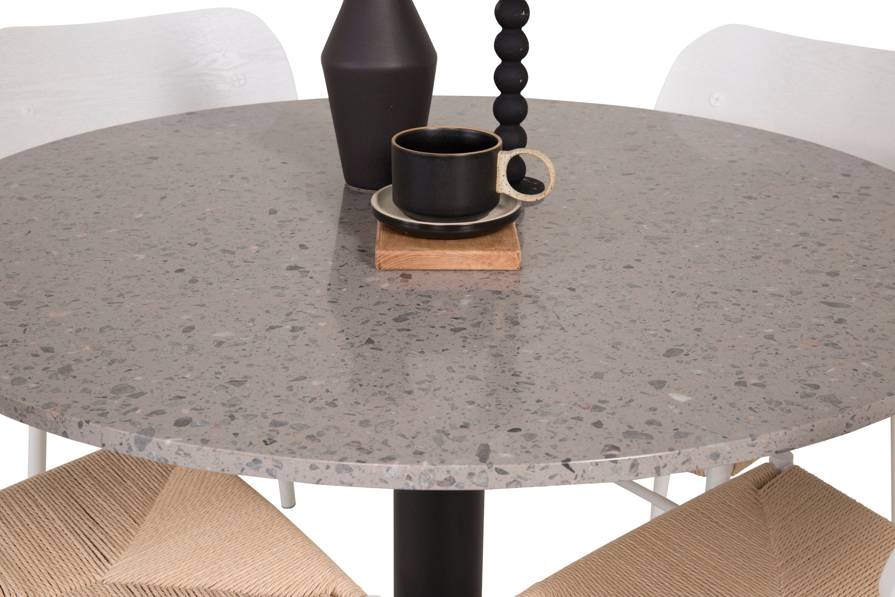 Razzia Jídelní stůl 106cm -Šedá Terazzo / Černá +Polly Jídelní židle - Bílá / Přírodní _4