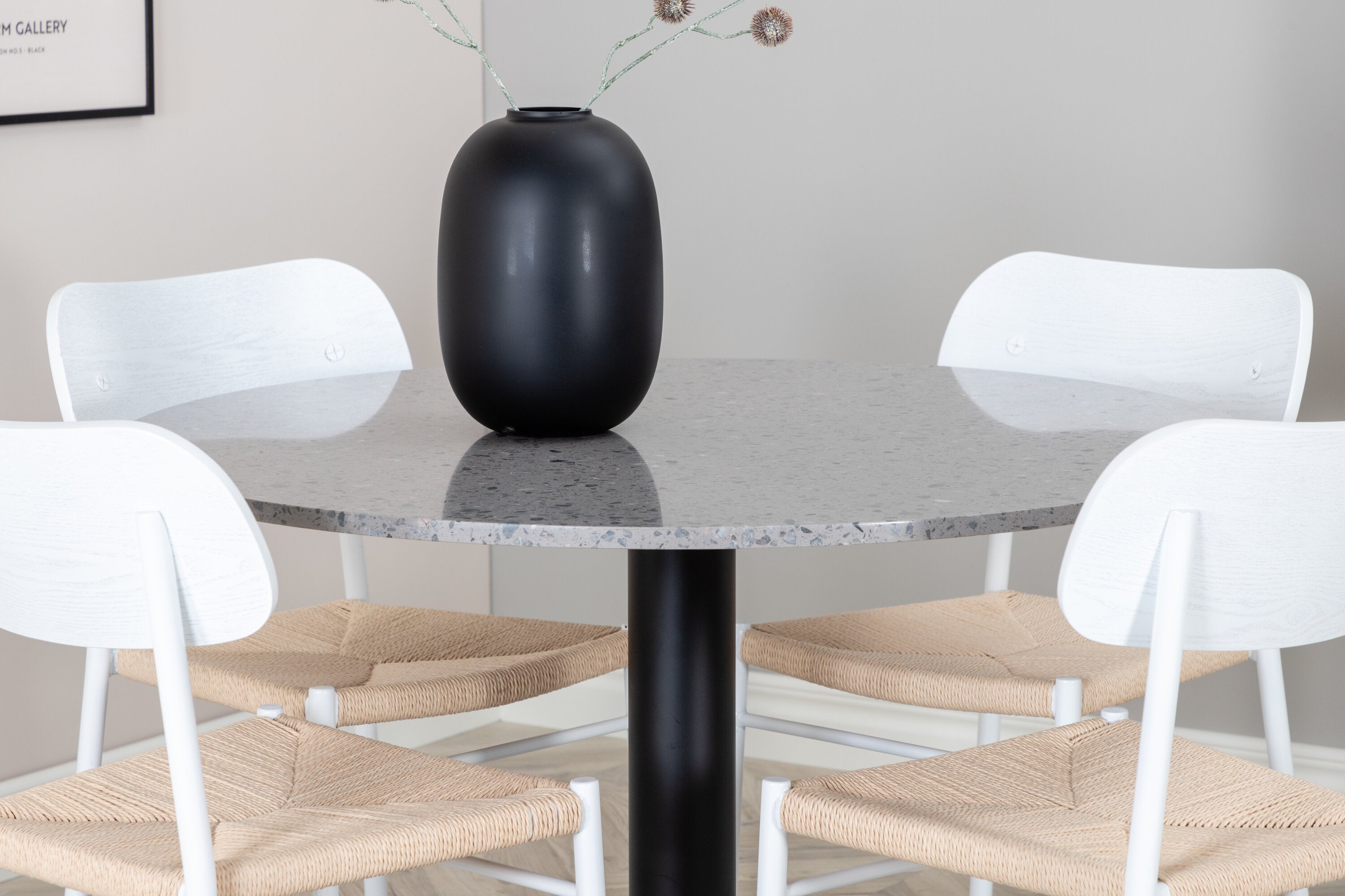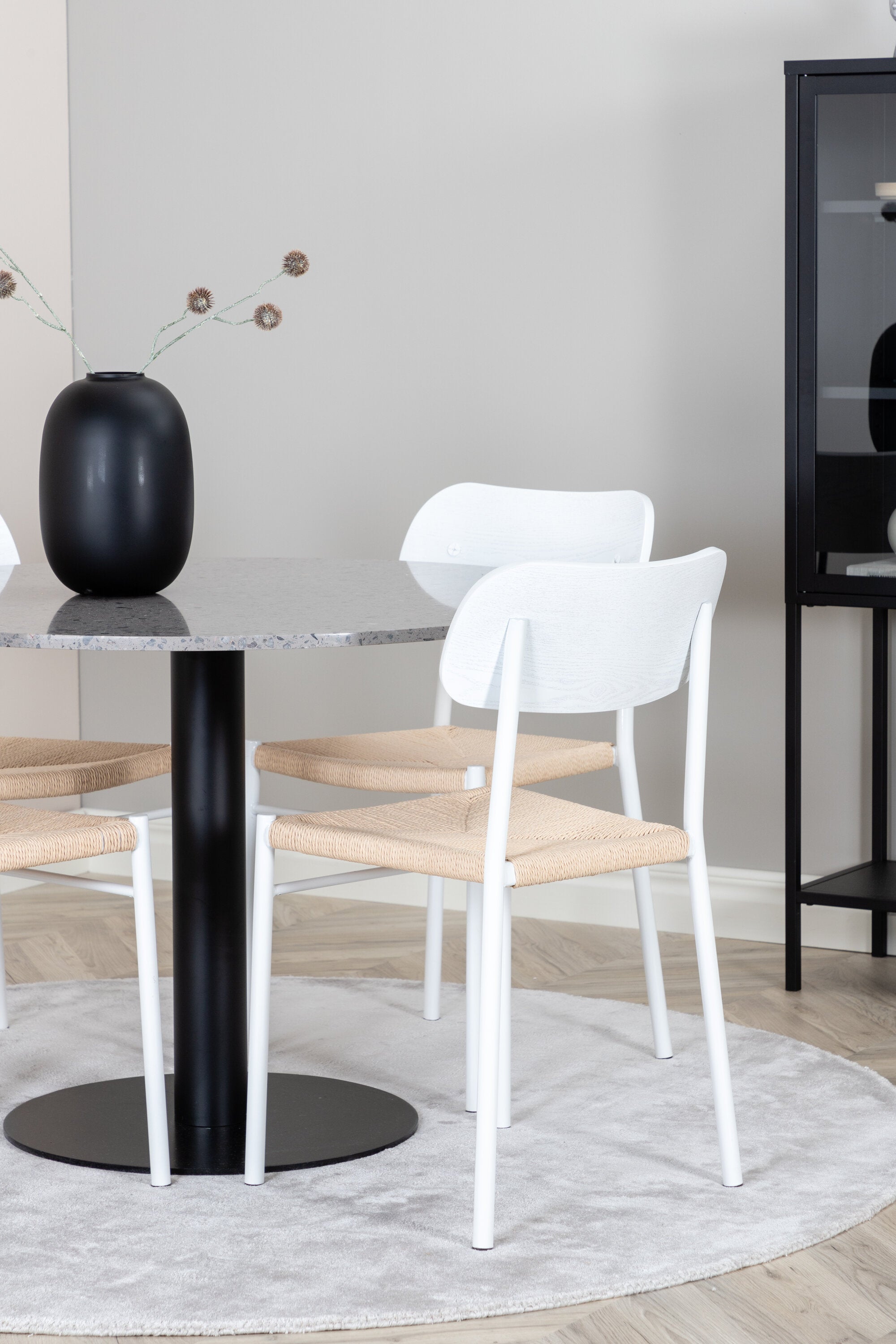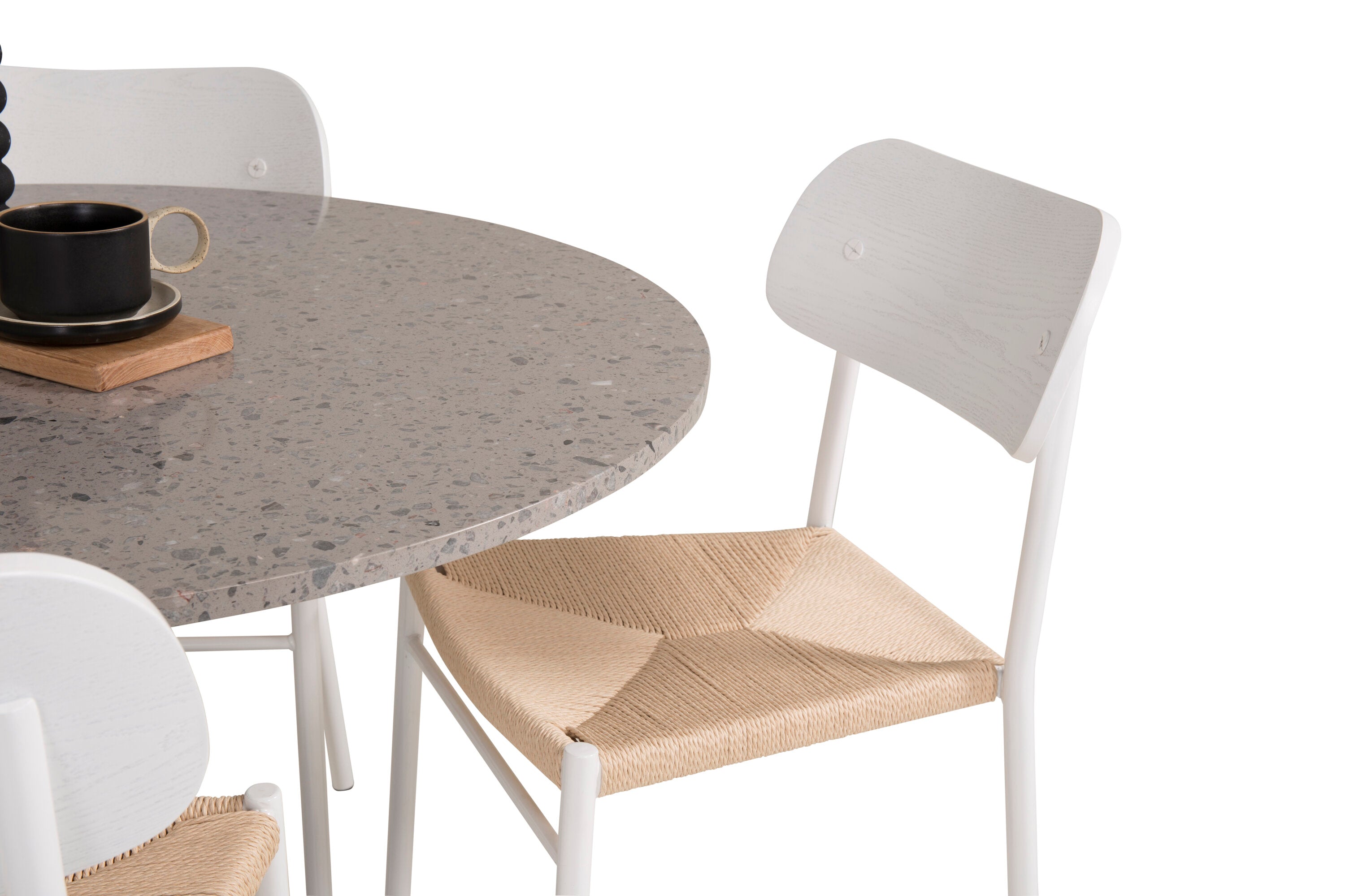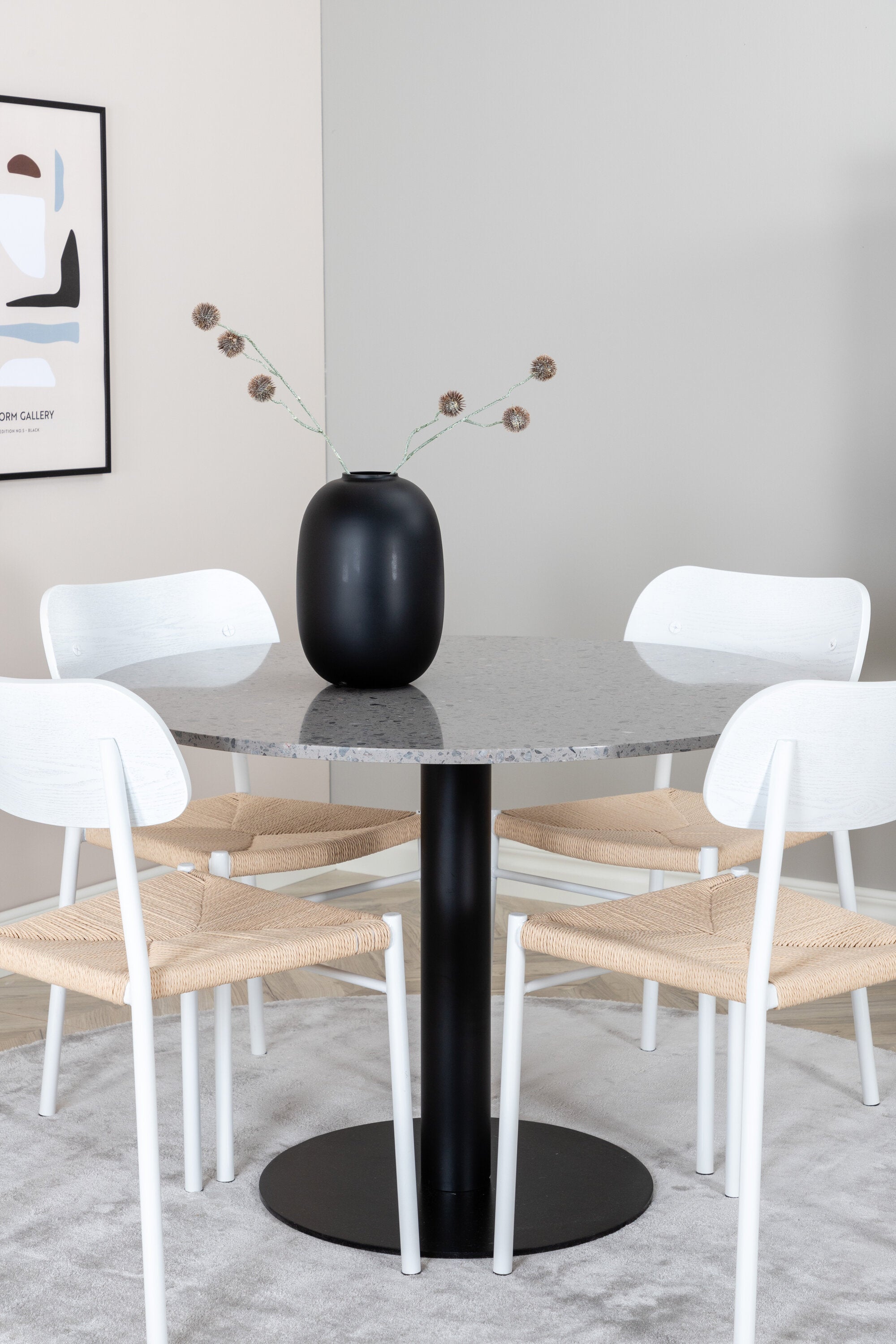 Razzia Jídelní stůl 106cm -Šedá Terazzo / Černá +Polly Jídelní židle - Bílá / Přírodní _4