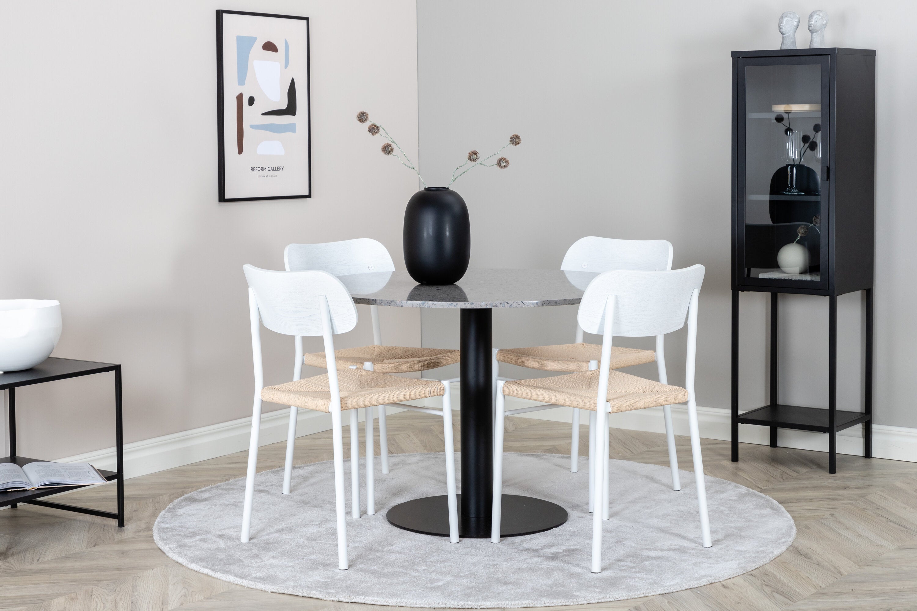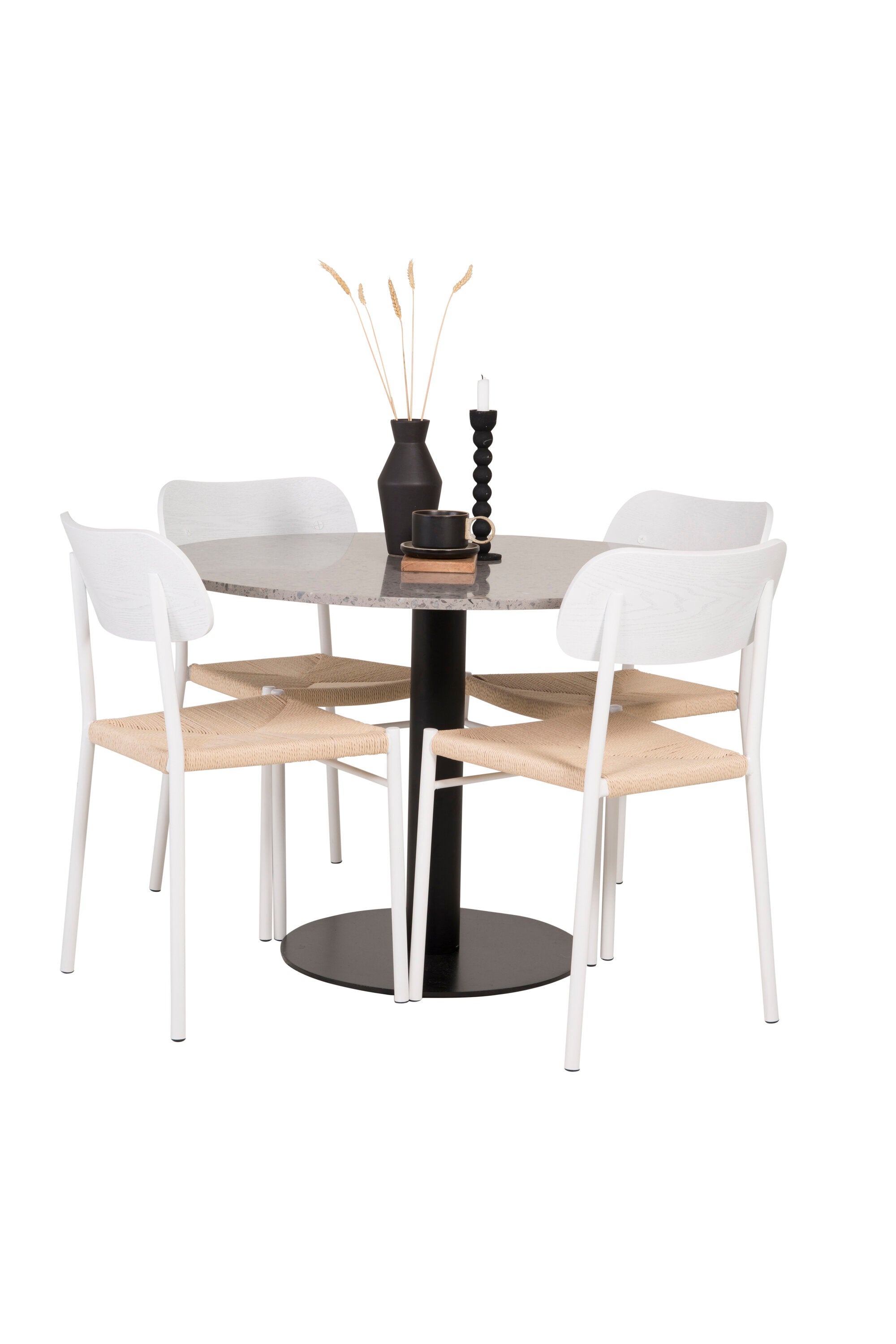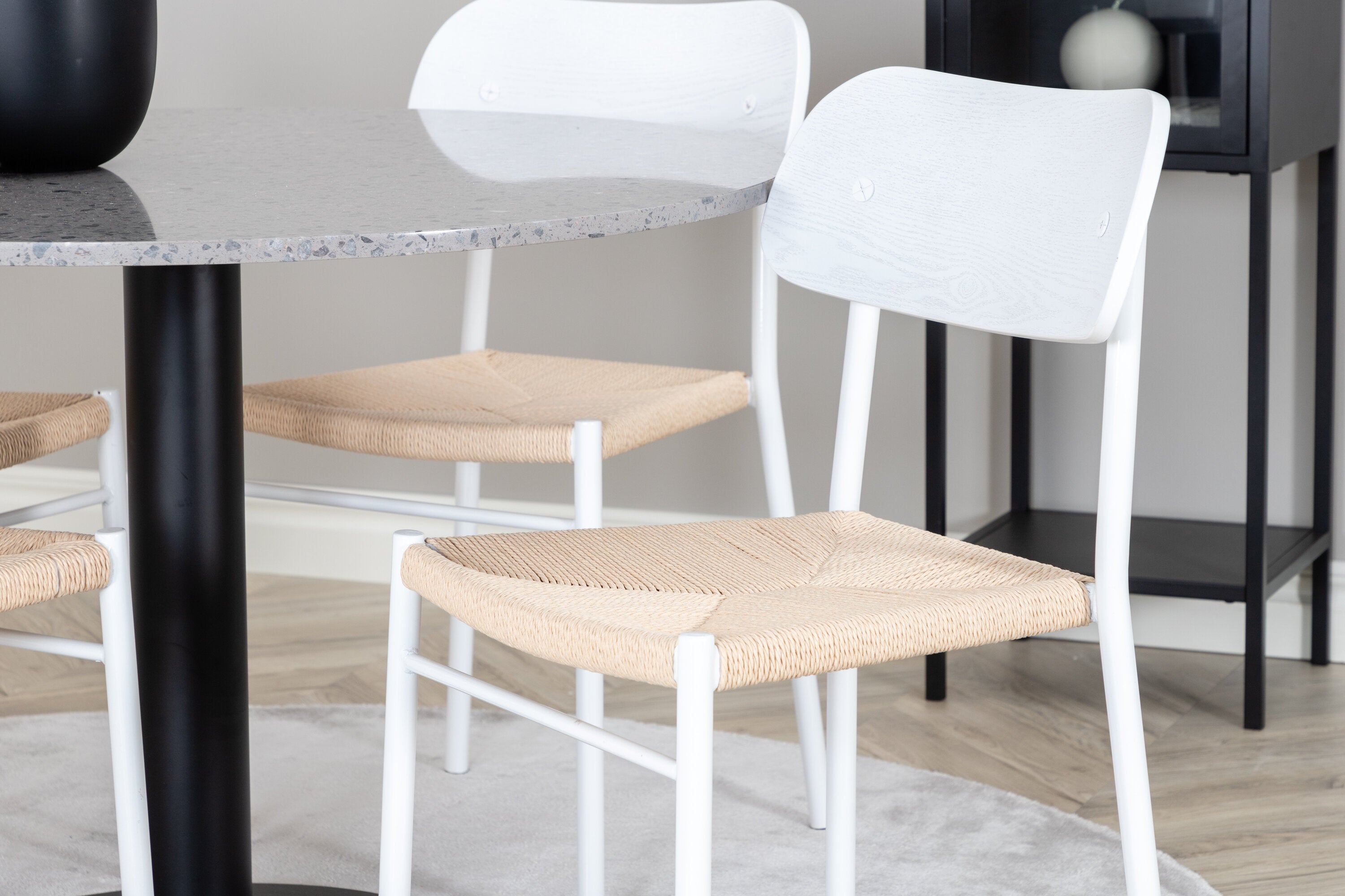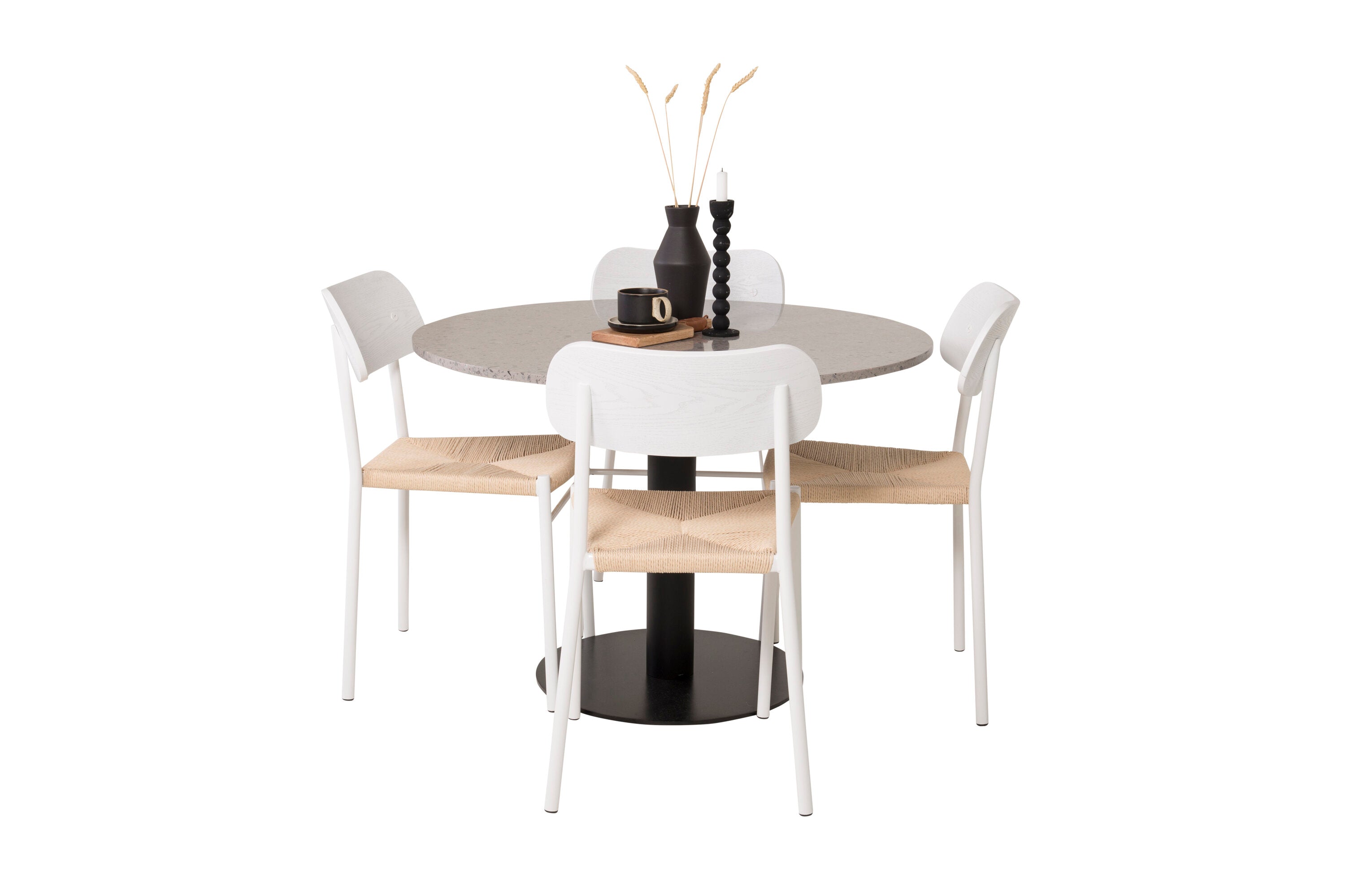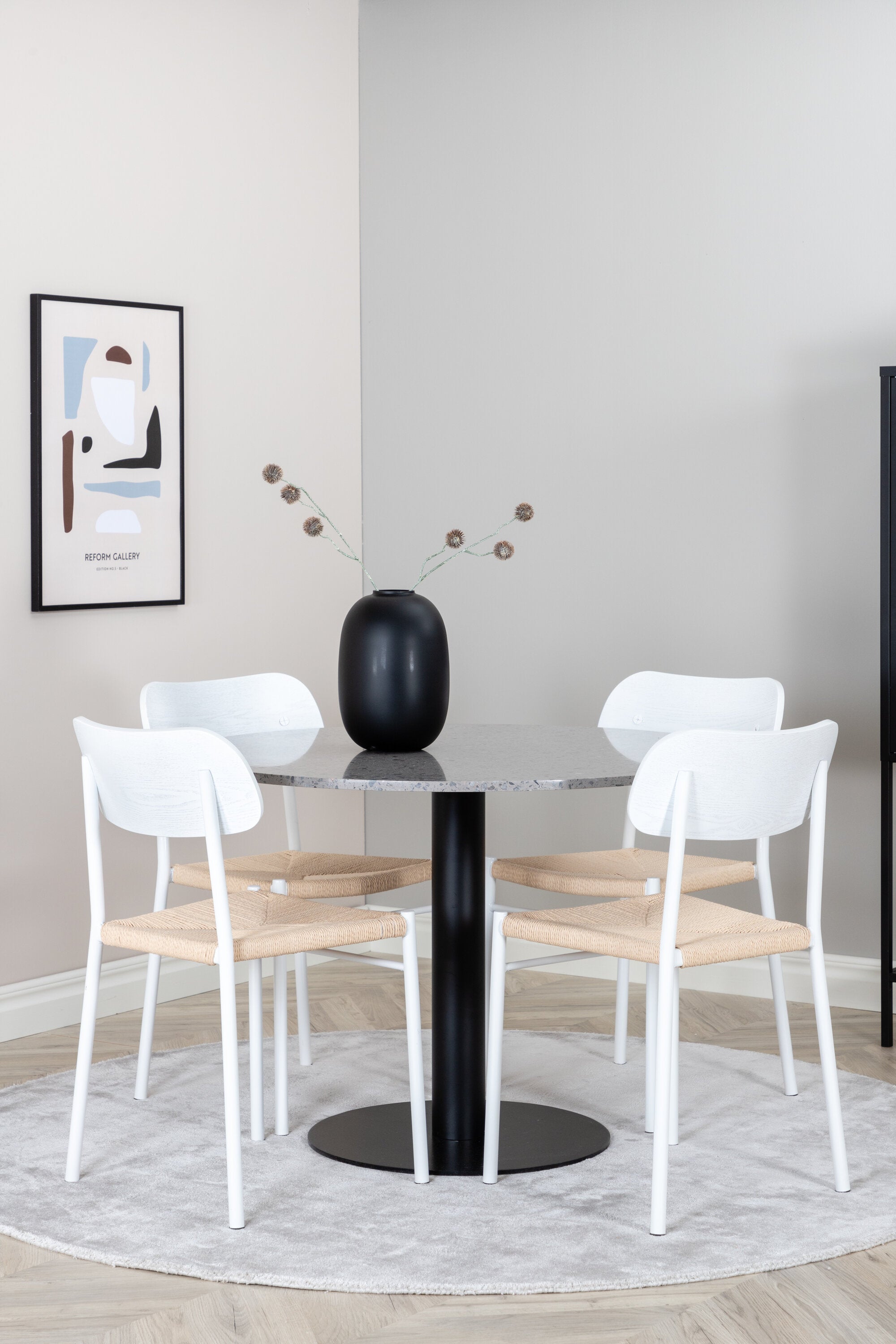 Razzia Jídelní stůl 106cm -Šedá Terazzo / Černá +Polly Jídelní židle - Bílá / Přírodní _4