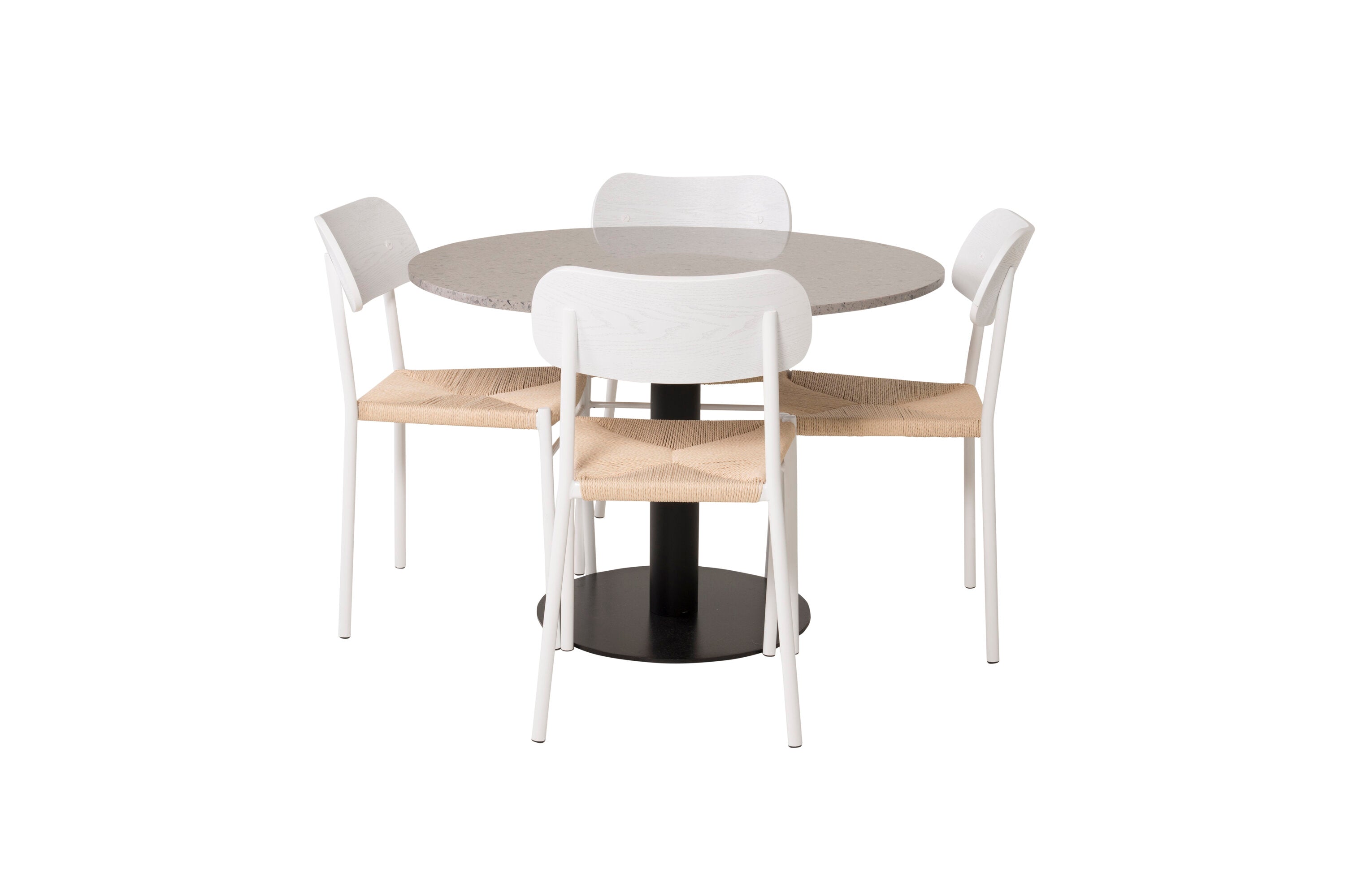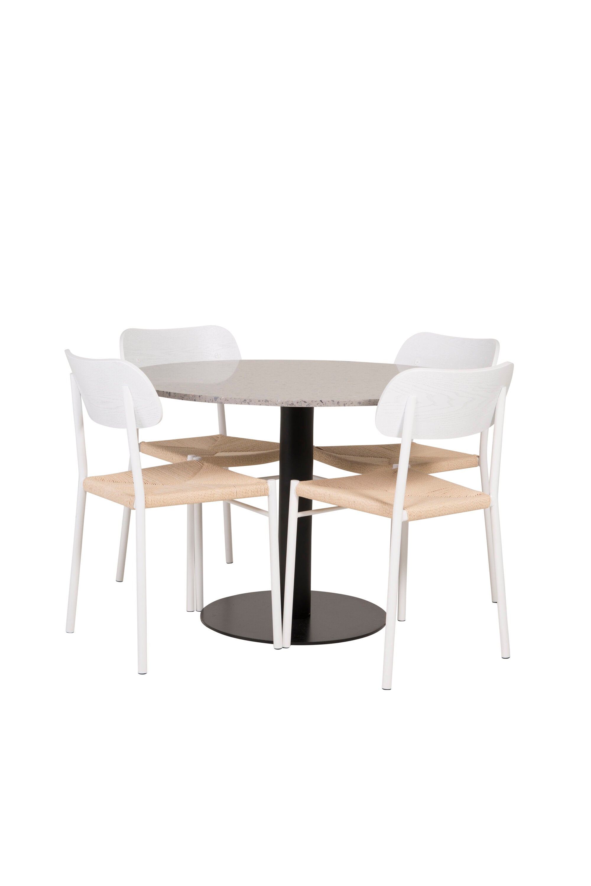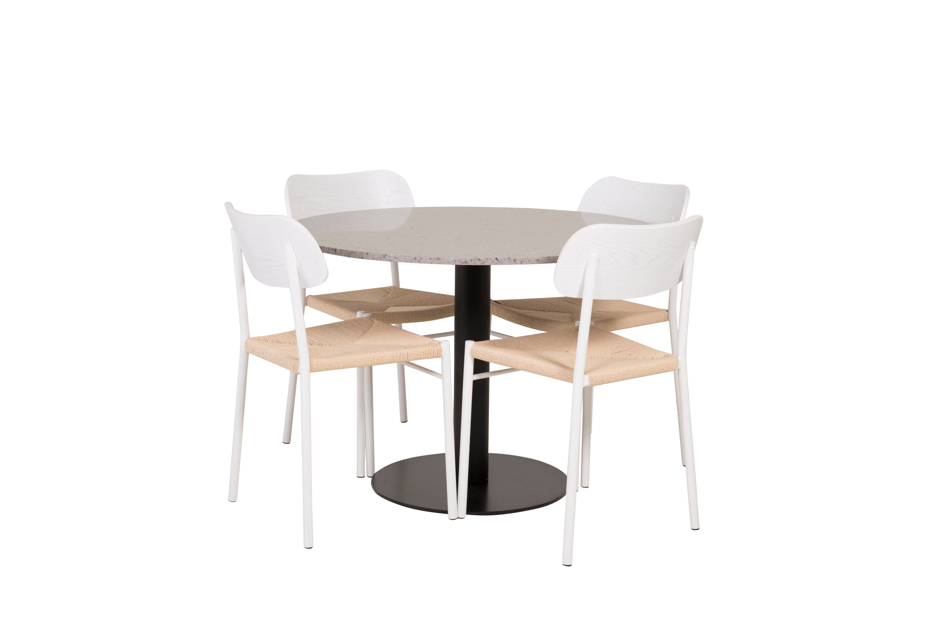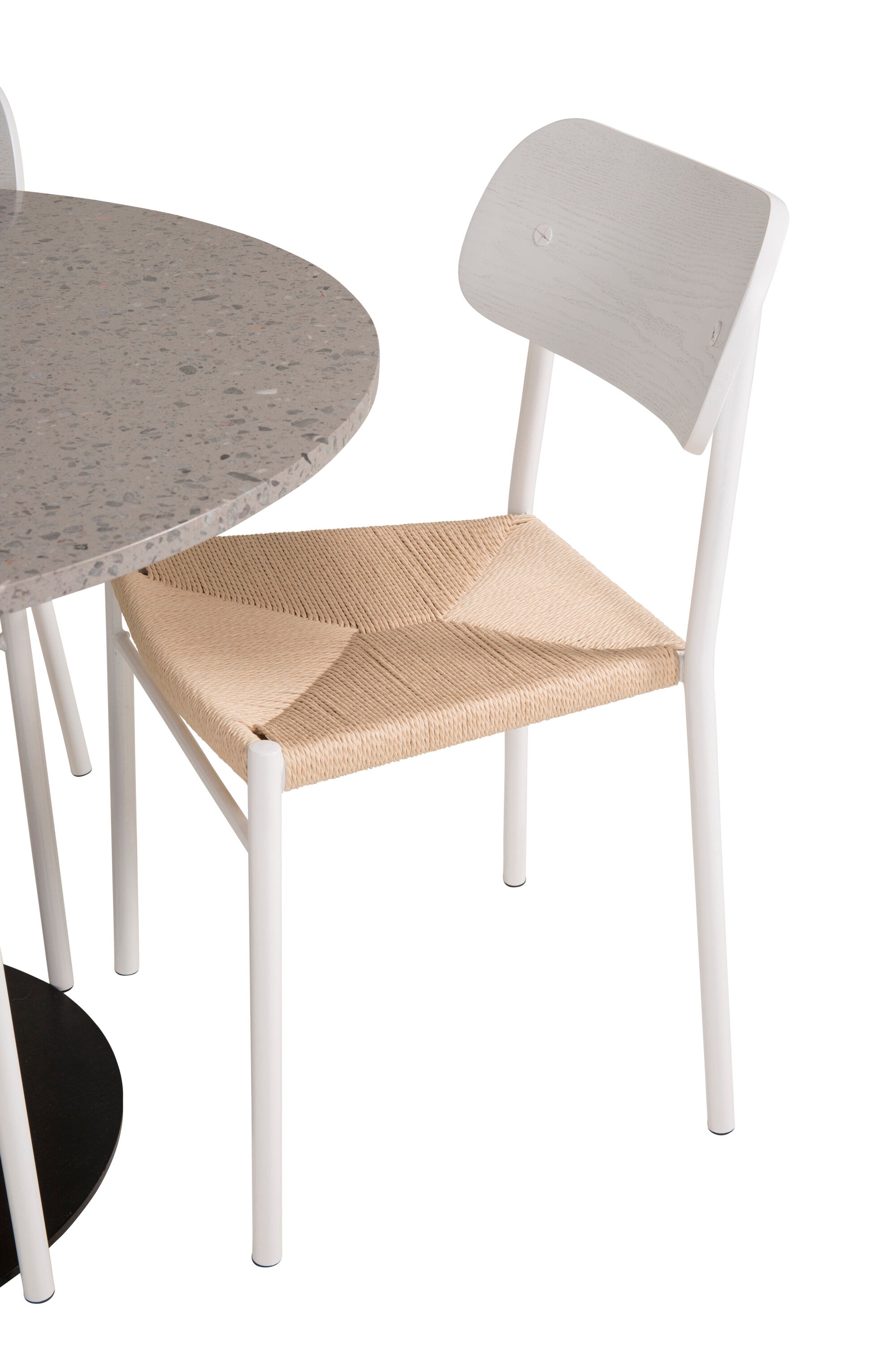 Razzia Jídelní stůl 106cm -Šedá Terazzo / Černá +Polly Jídelní židle - Bílá / Přírodní _4