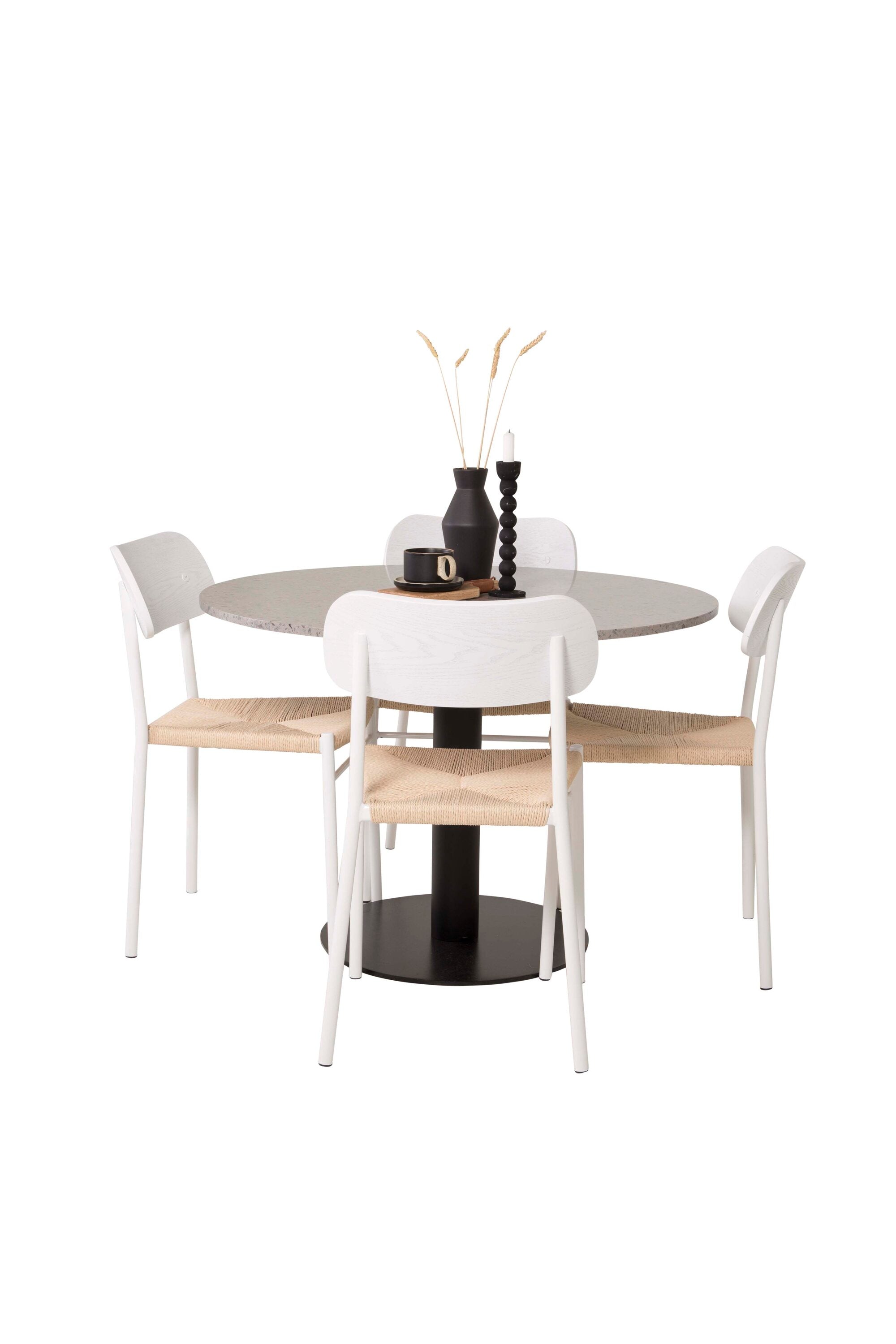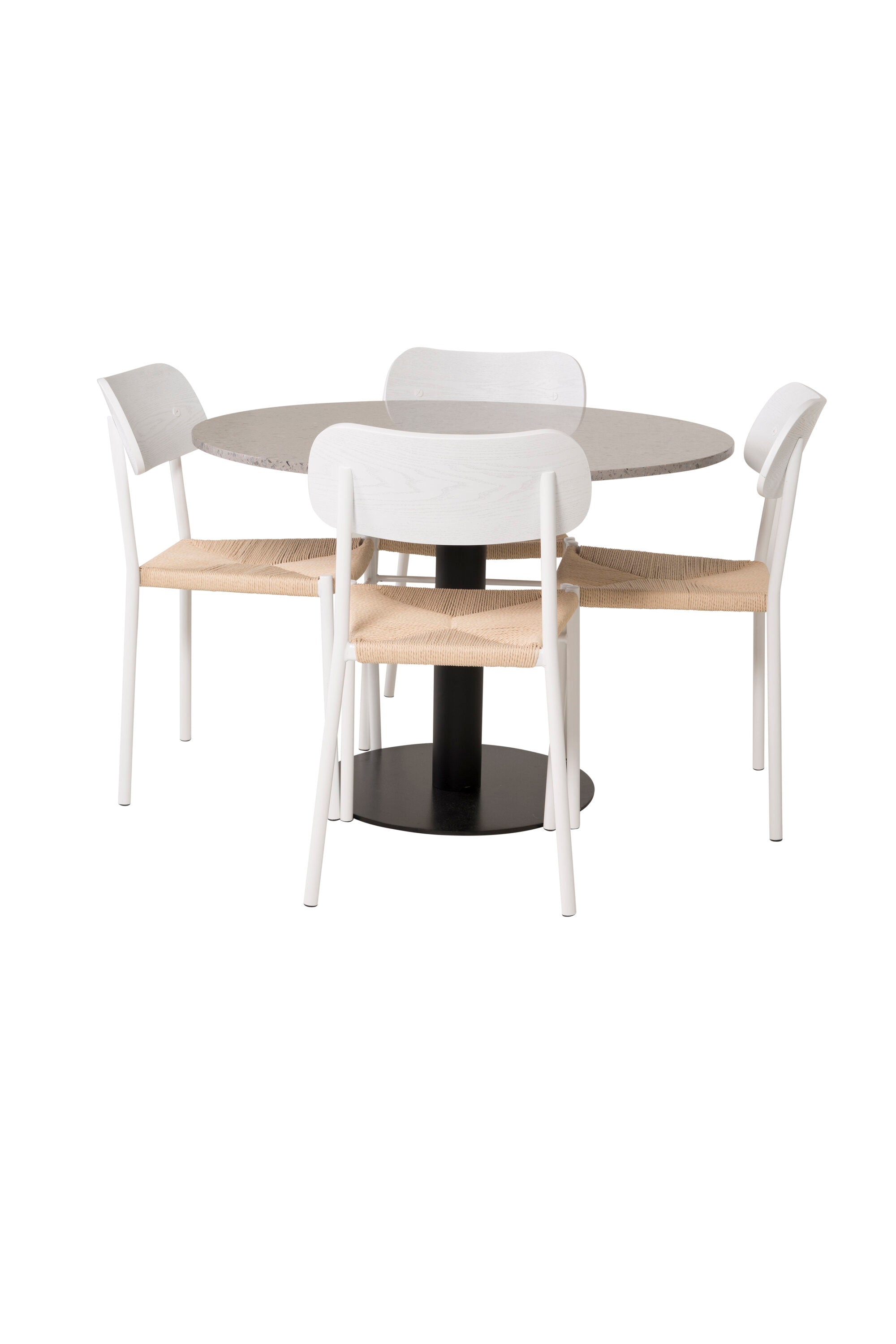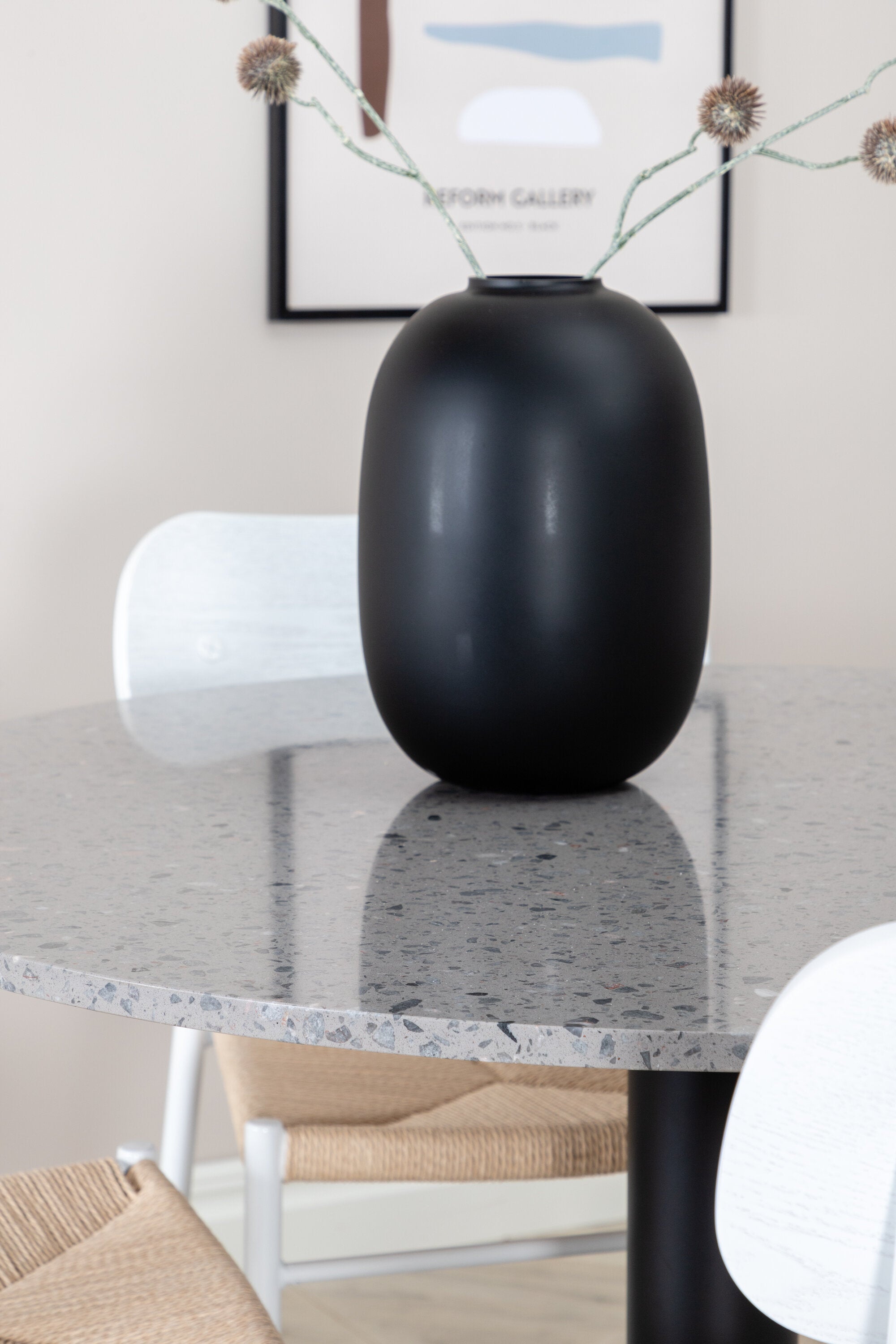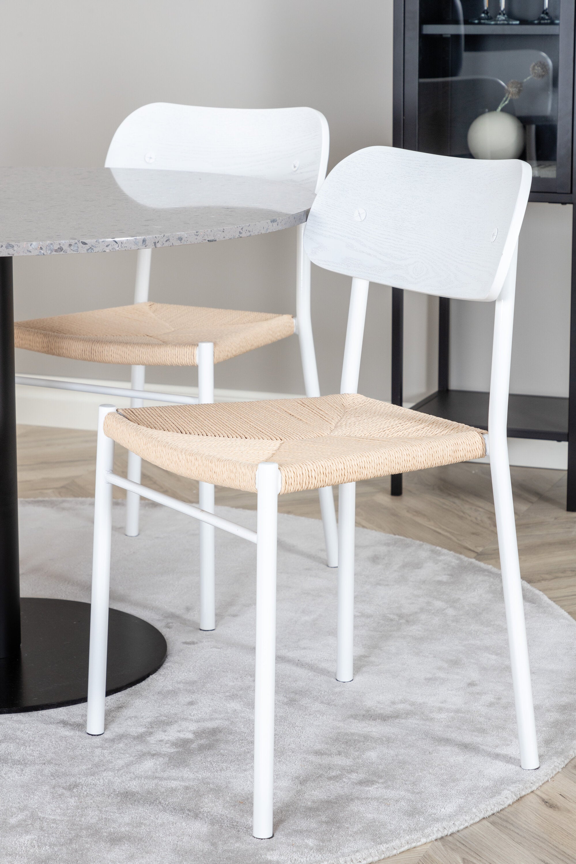 Razzia Jídelní stůl 106cm -Šedá Terazzo / Černá +Polly Jídelní židle - Bílá / Přírodní _4