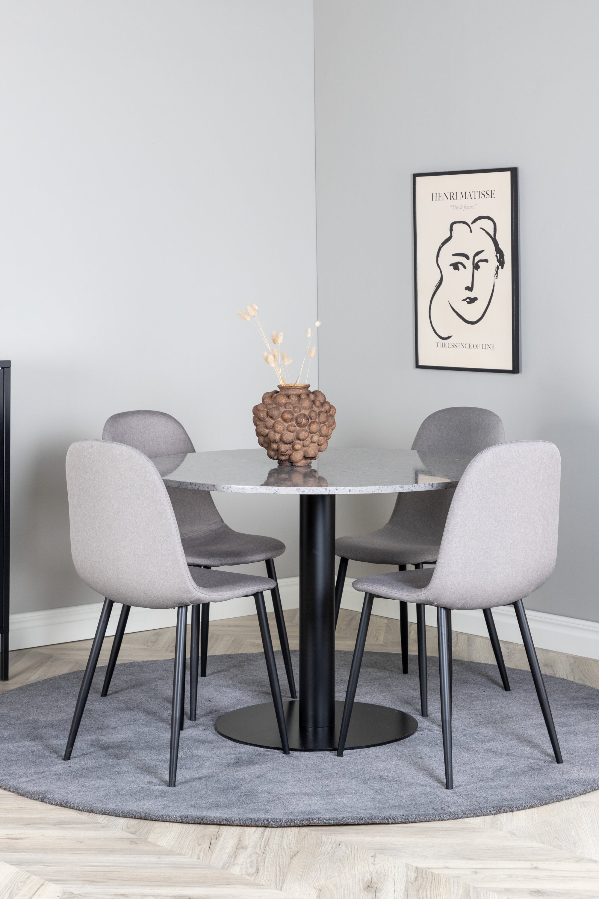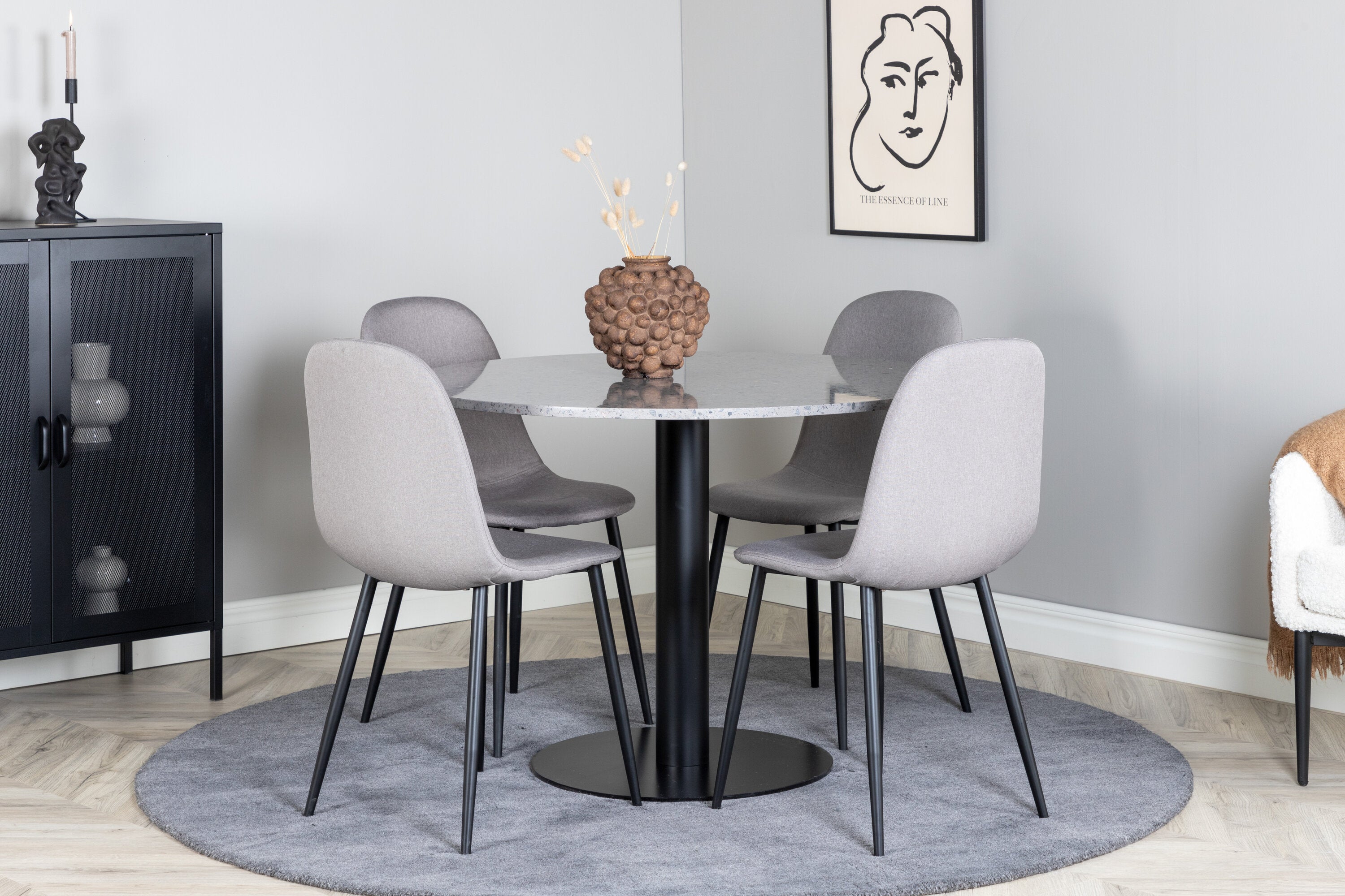 Razzia Jídelní stůl 106cm -Šedá Terazzo / Černá + Židle Polar - Šedá látka Černé nohy _4
