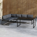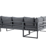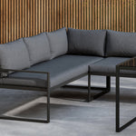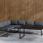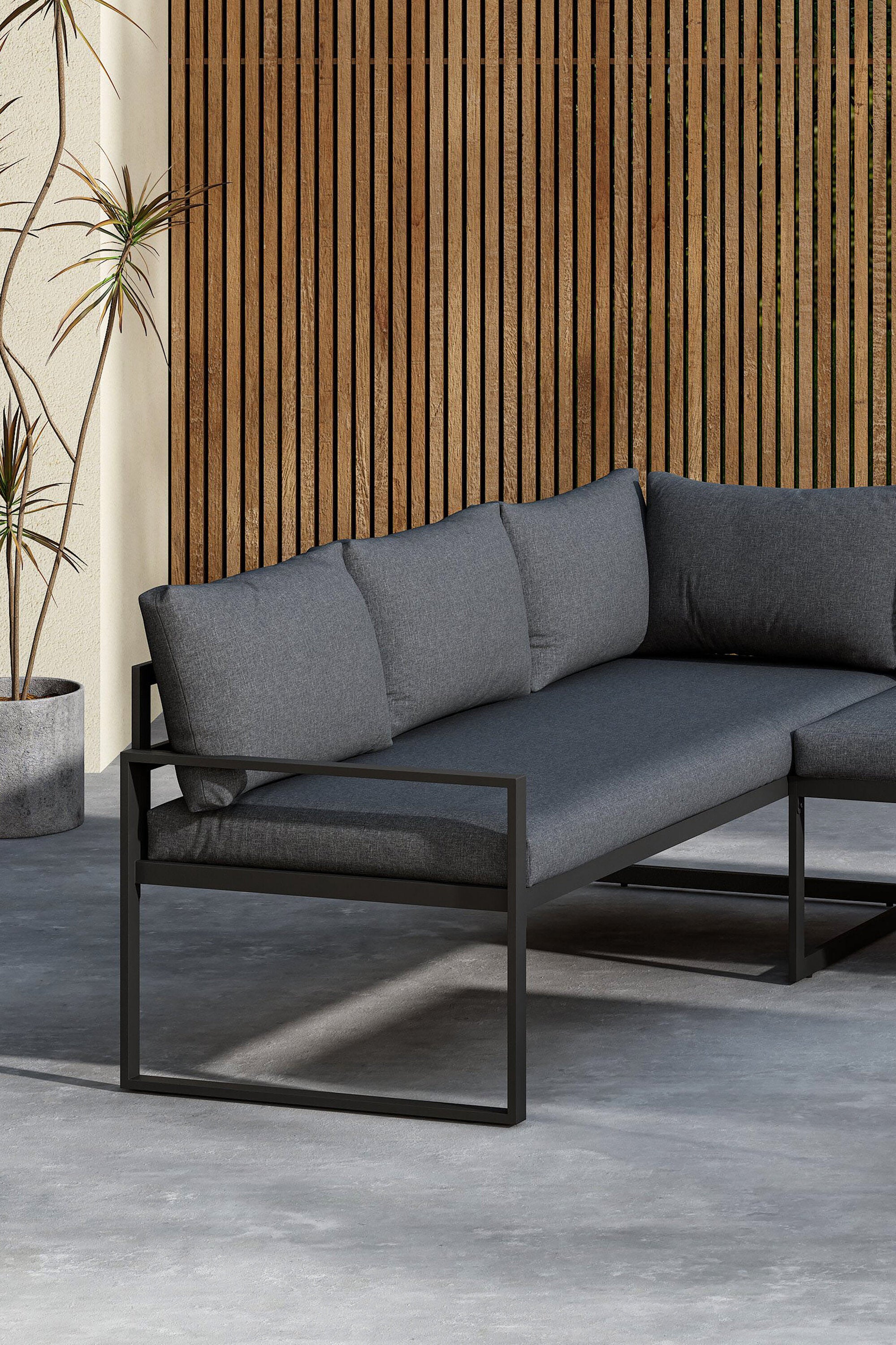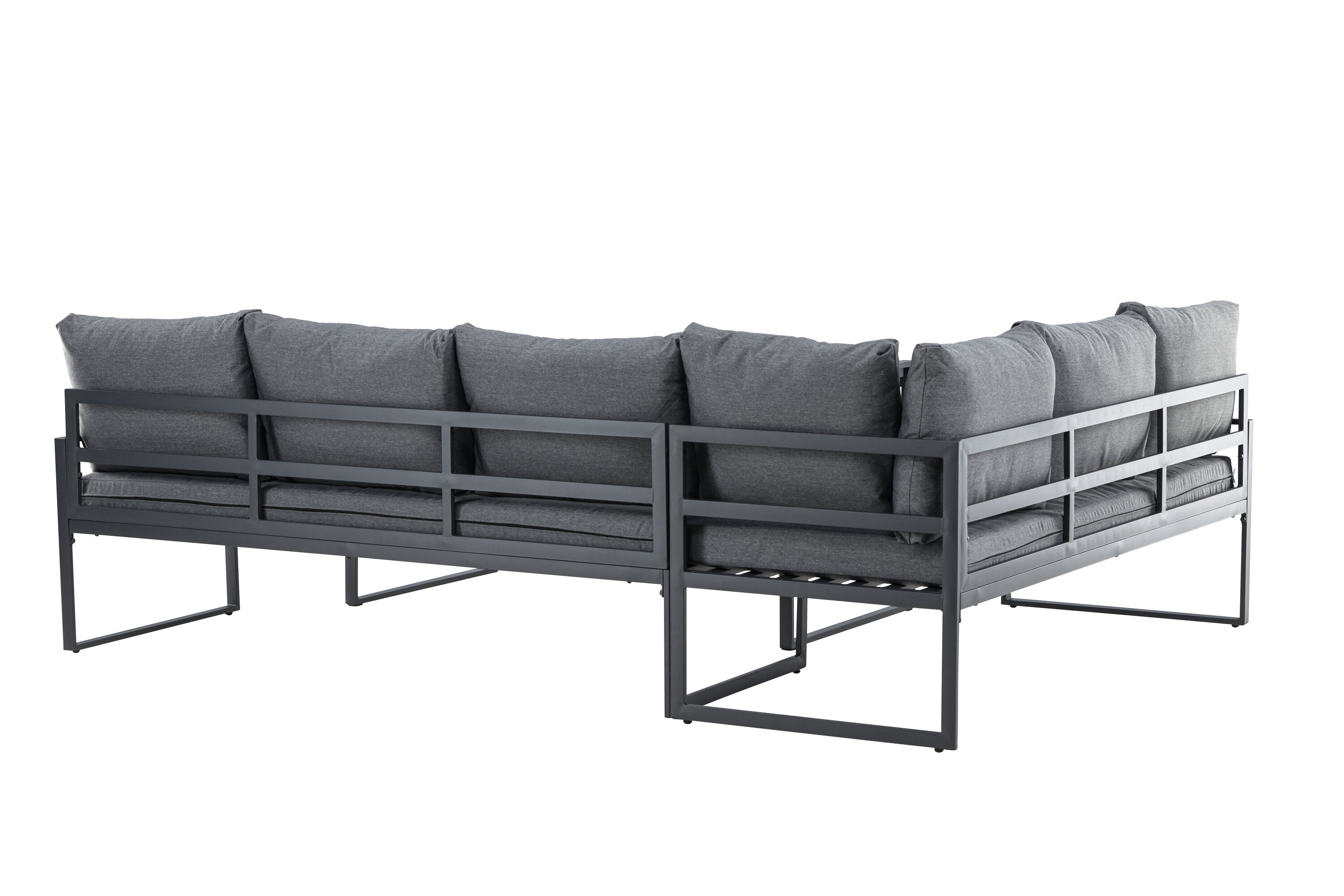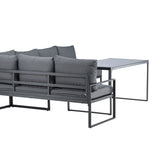 Zingaro je sedací souprava, která kombinuje eleganci a funkčnost pro vaši terasu. S elegantním černým rámem a šedými polštáři vyrobenými z odolného polyesteru vytváří Zingaro moderní a příjemnou atmosféru. Rohová pohovka nabízí spoustu místa pro celou rodinu, kde se může sejít a užít si příjemné společné chvíle, ať už jde o nádherný večer nebo odpočinkový den venku.