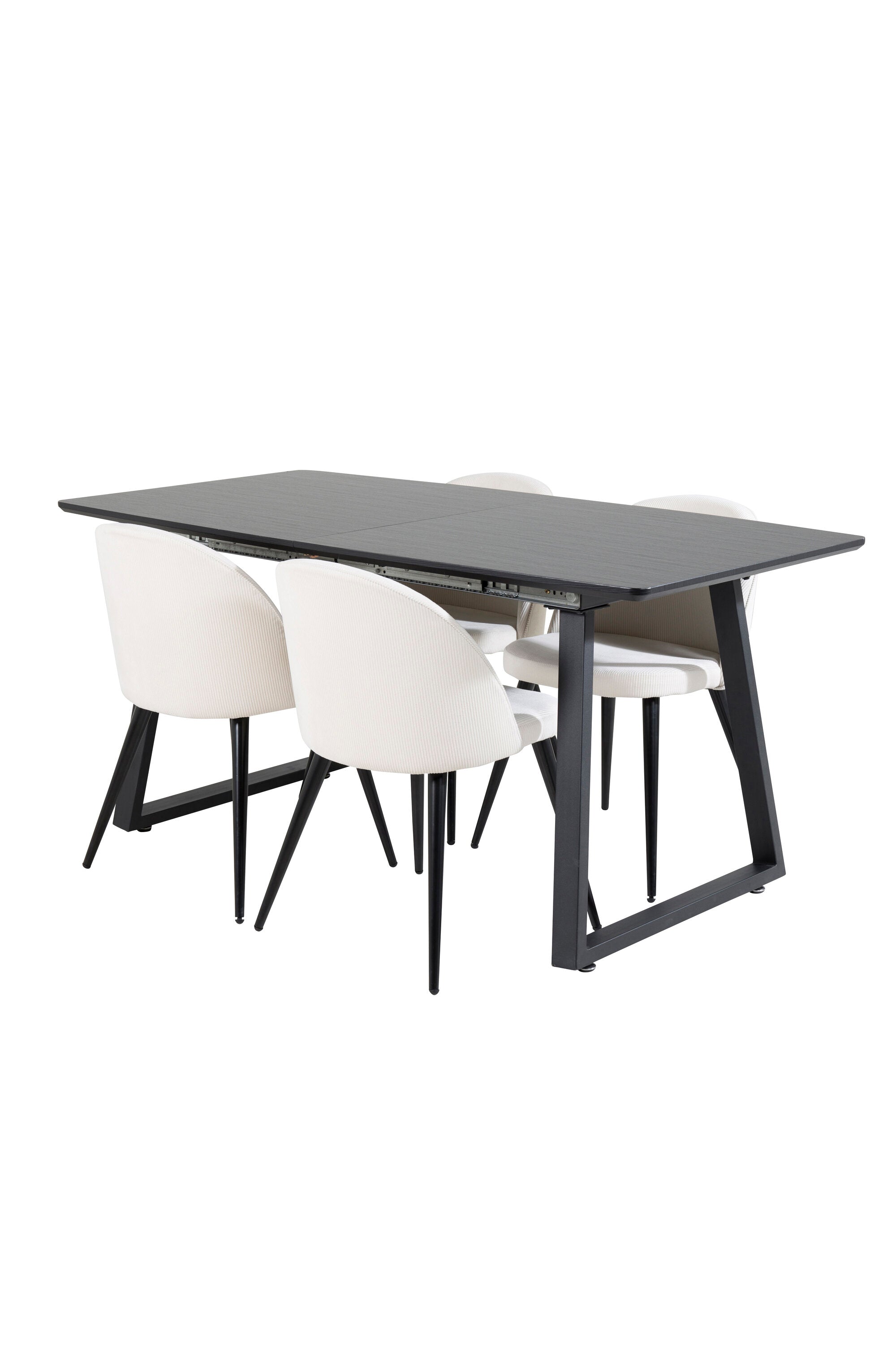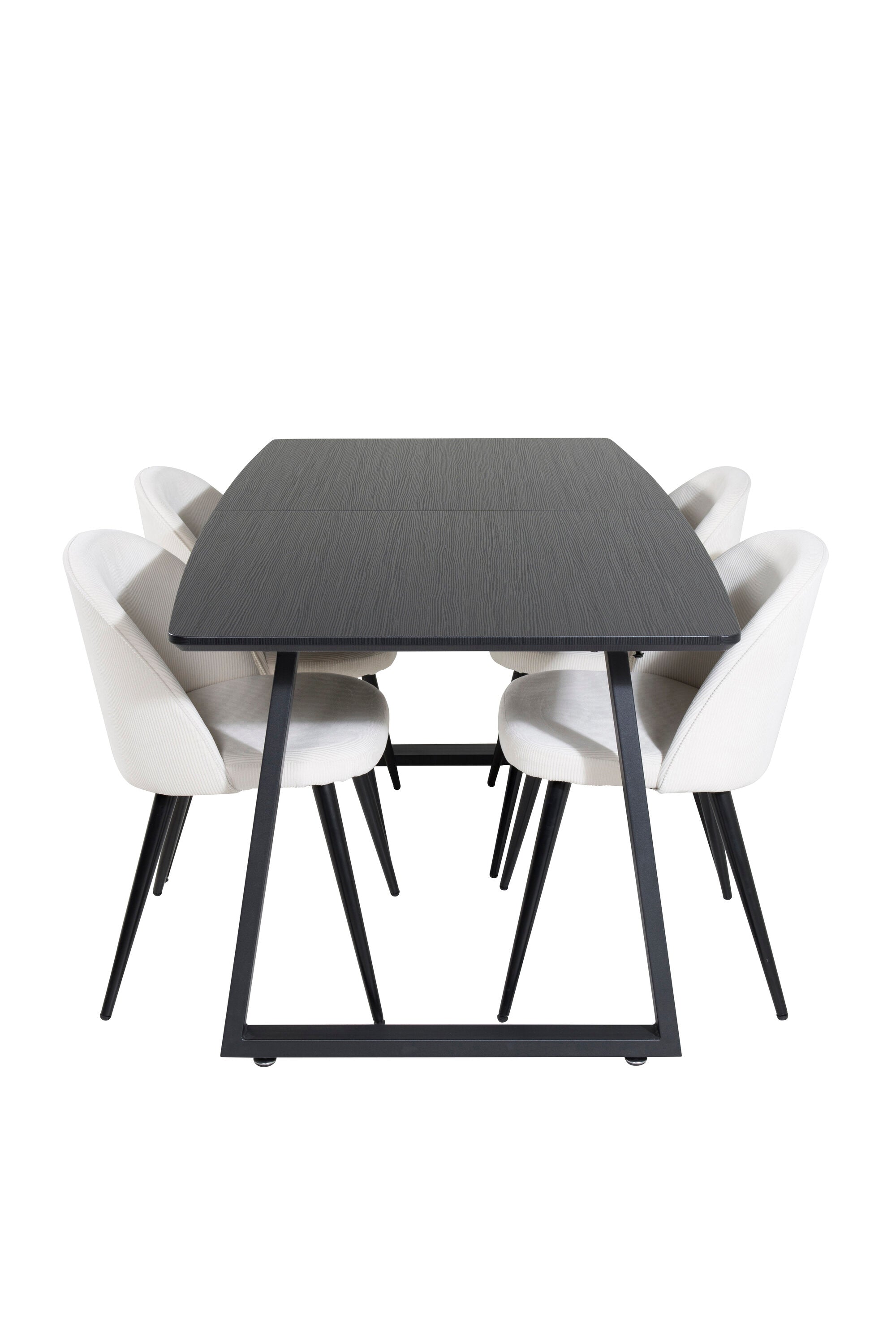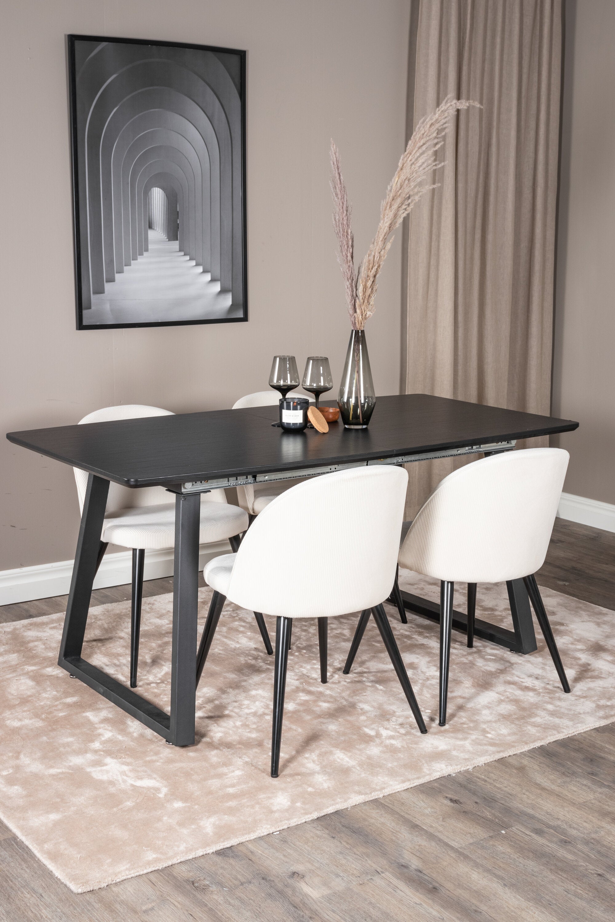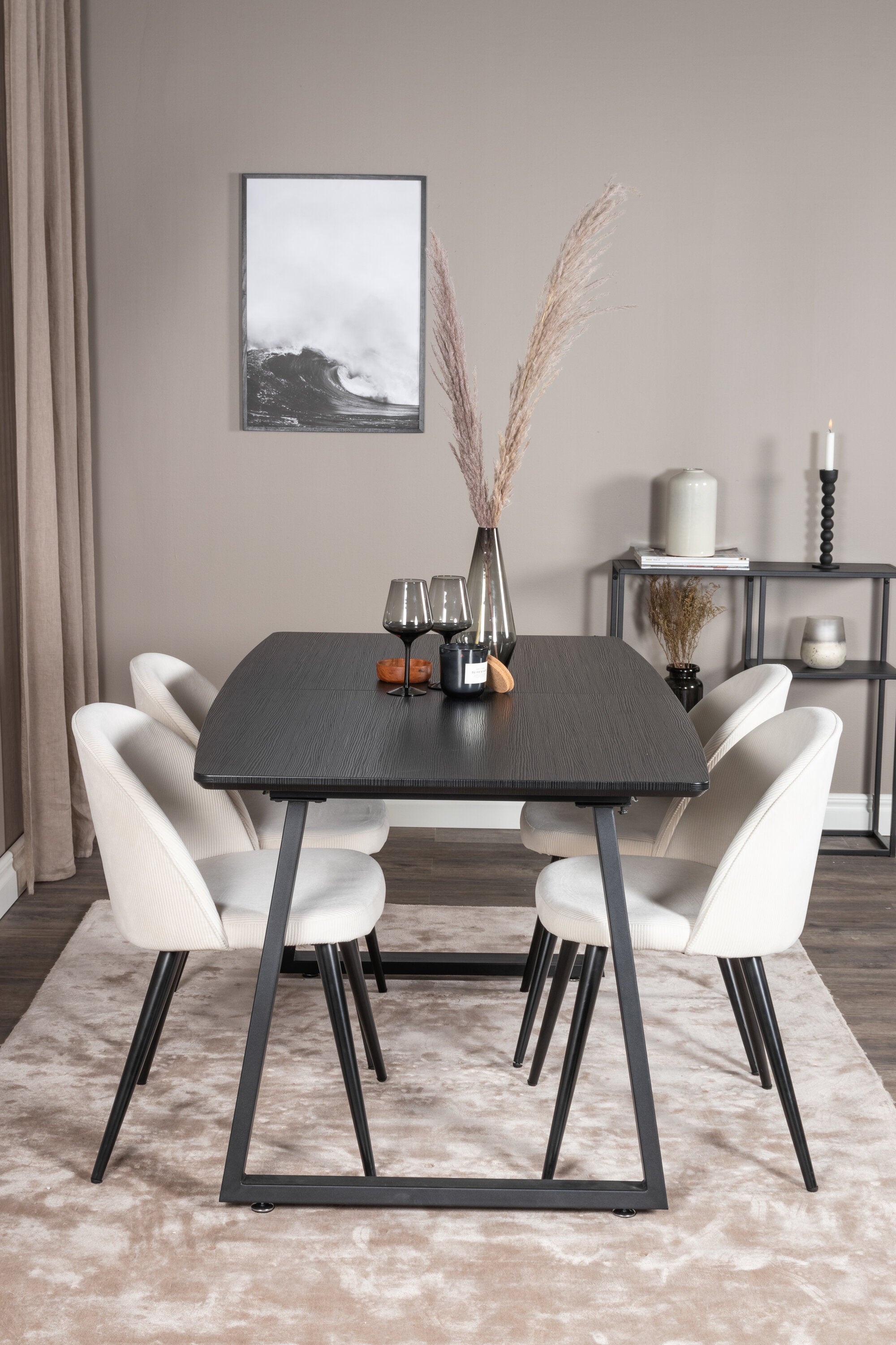 Rozšiřitelný Inca - černý top / černé nohy + sametová jídelní židle manšestr - béžová / černá_4