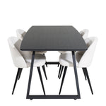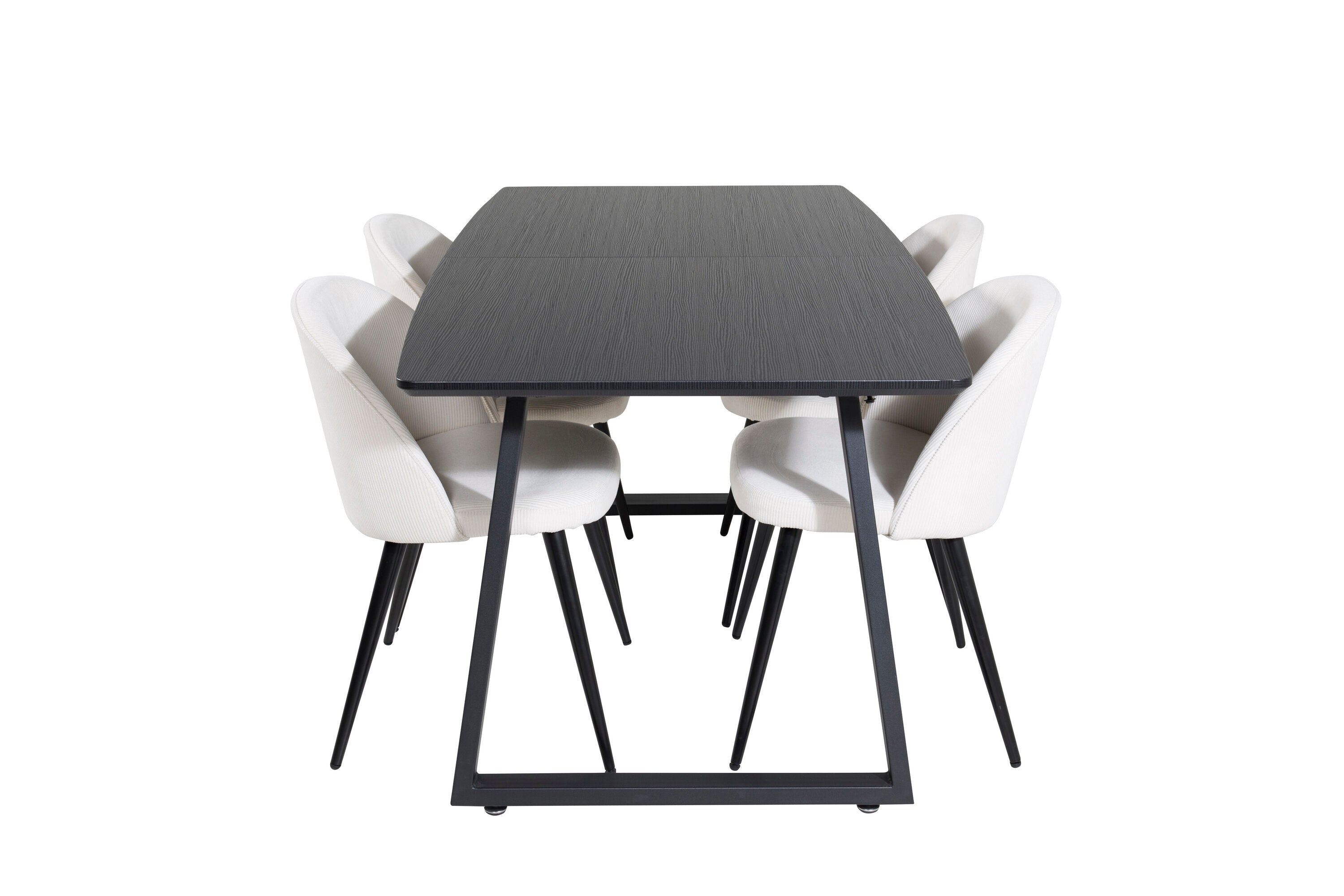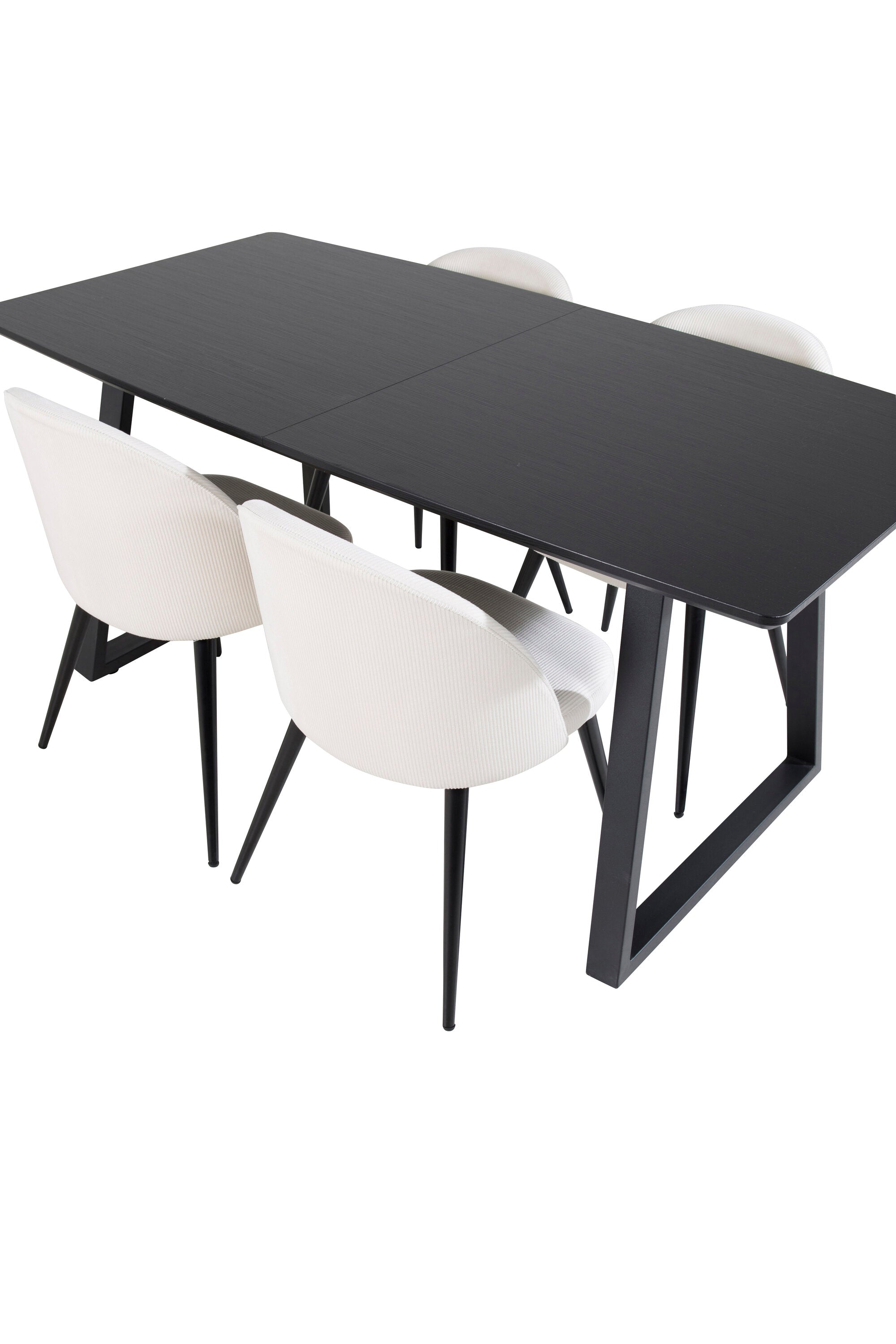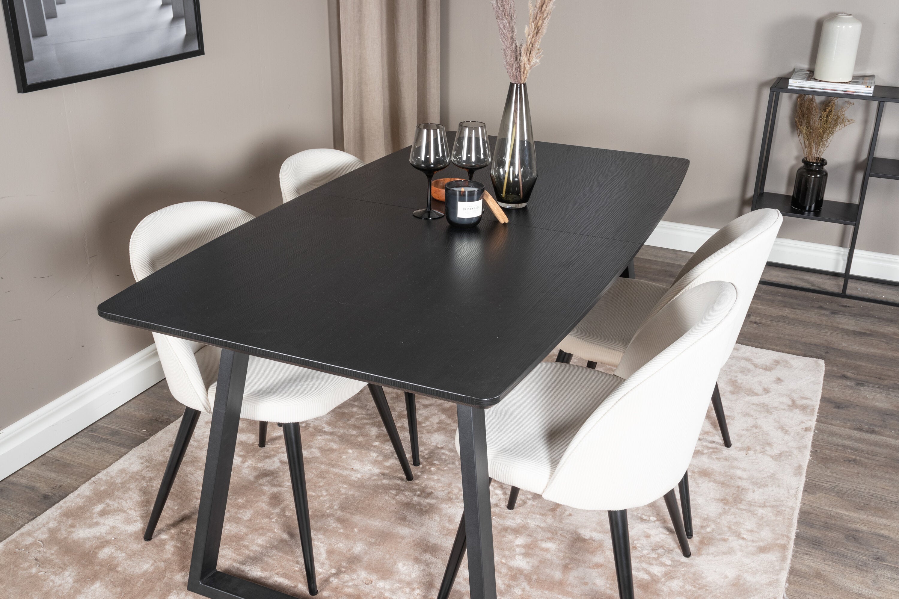 Rozšiřitelný Inca - černý top / černé nohy + sametová jídelní židle manšestr - béžová / černá_4