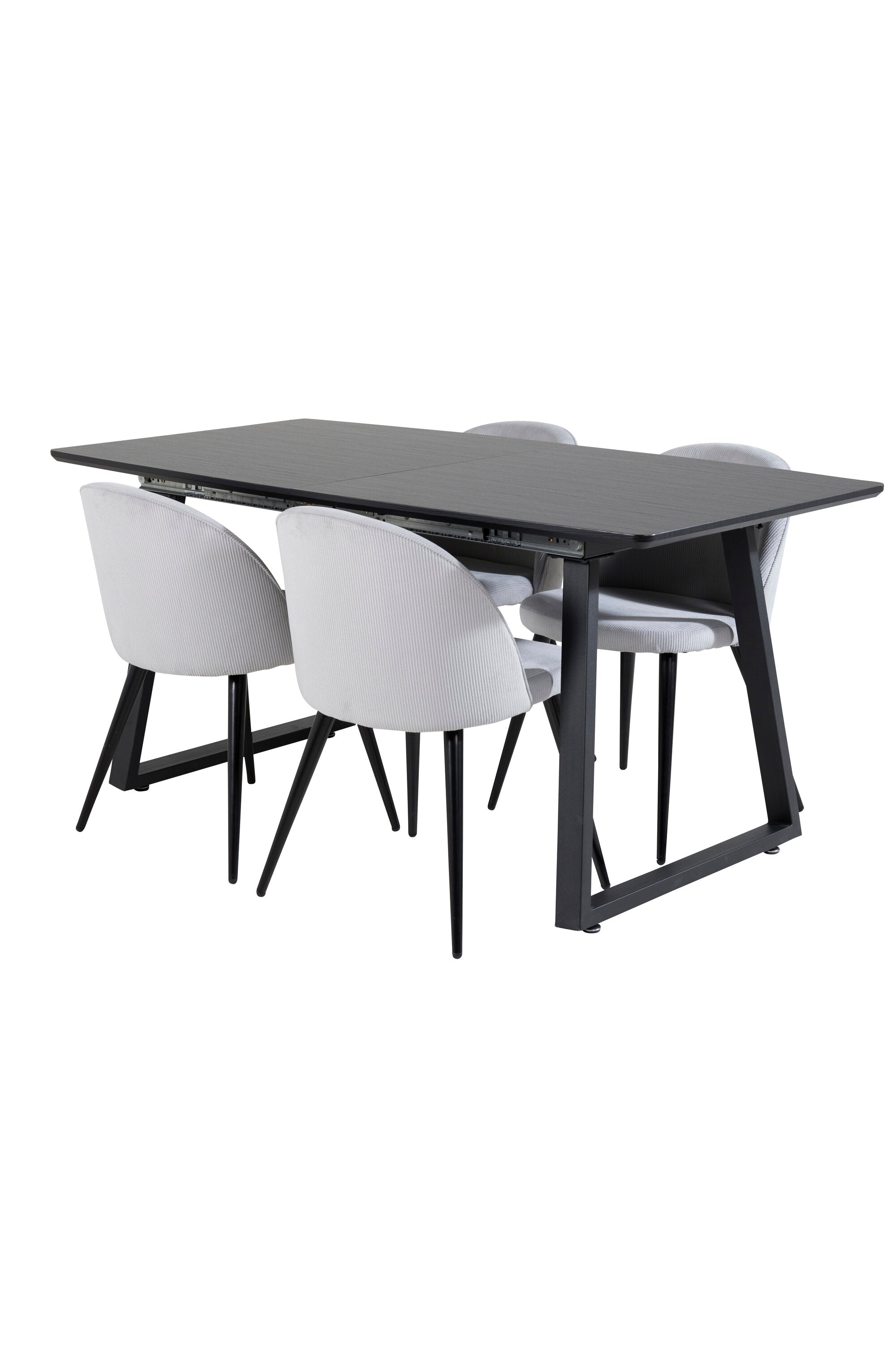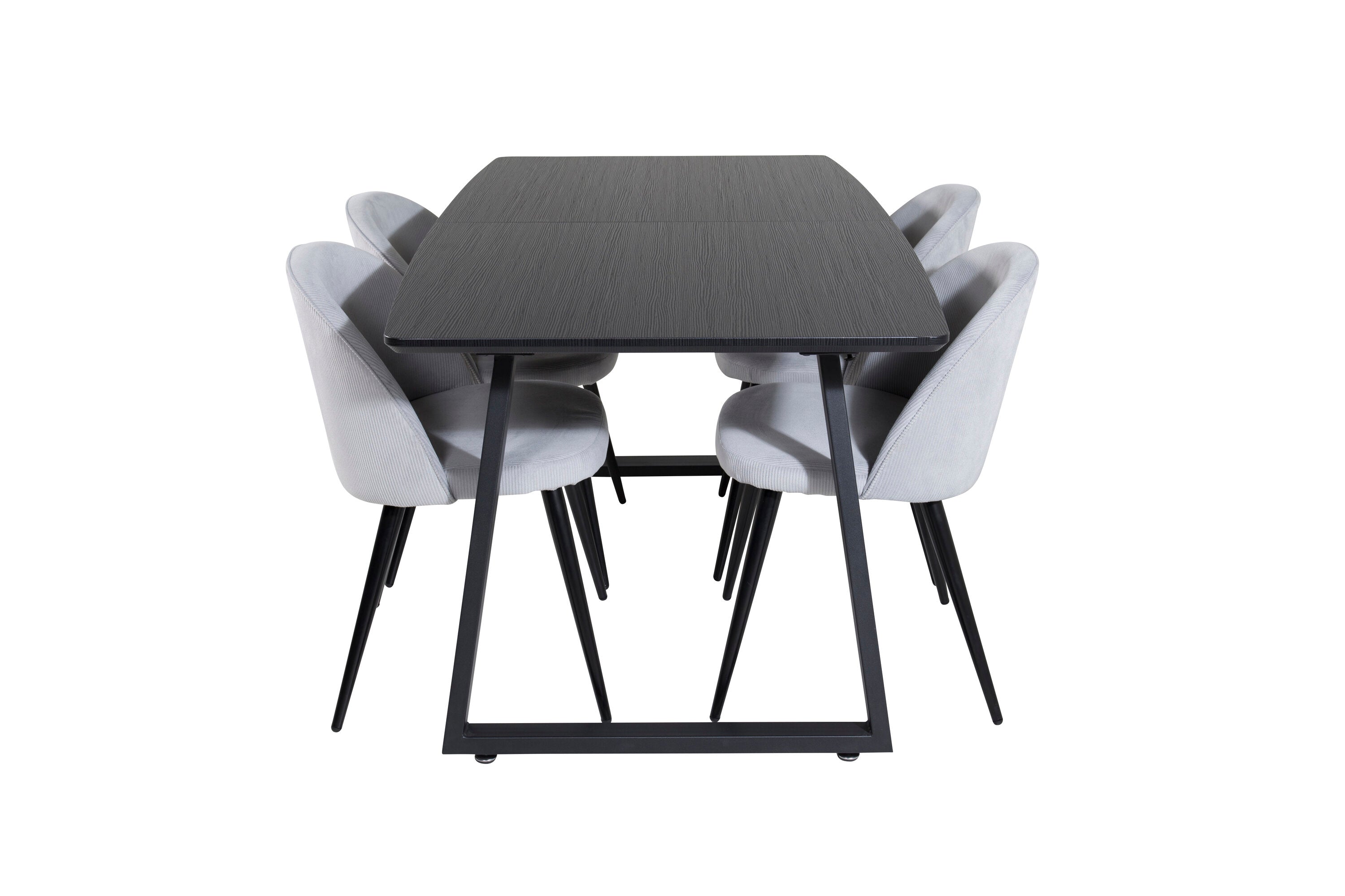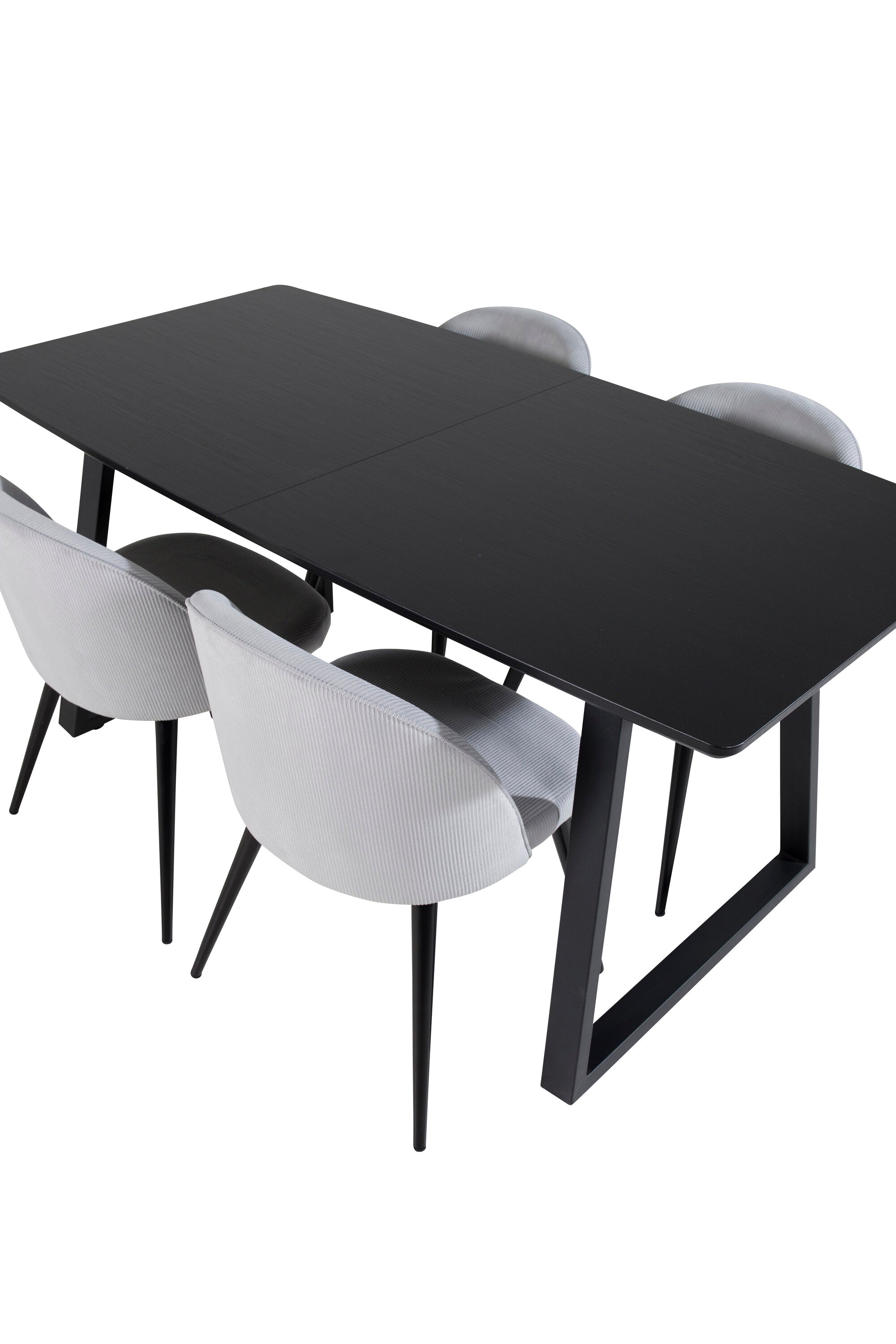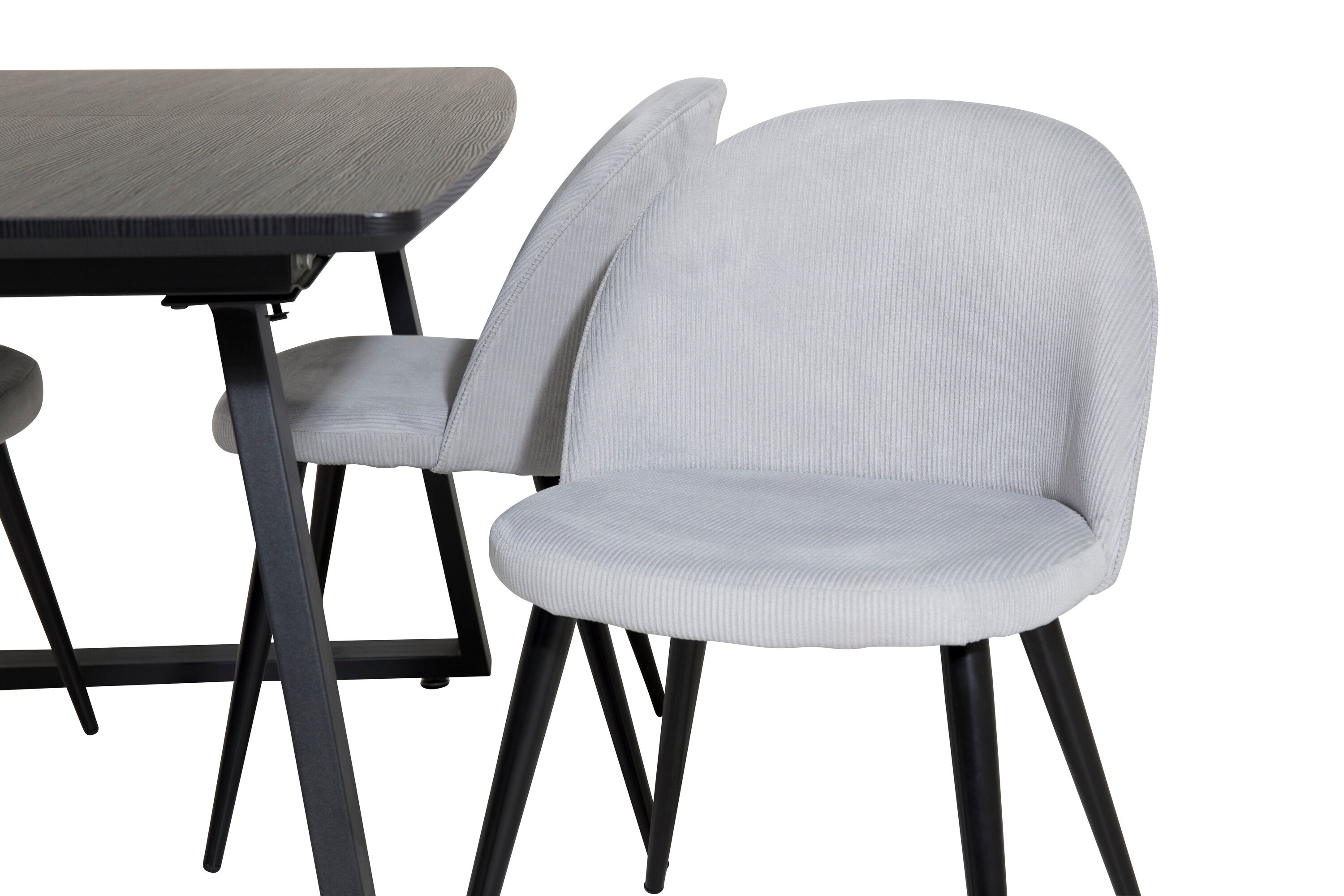 Rozšiřitelný Inca - černý top / černé nohy + sametová jídelní židle manšestr - světle šedá / černá_4