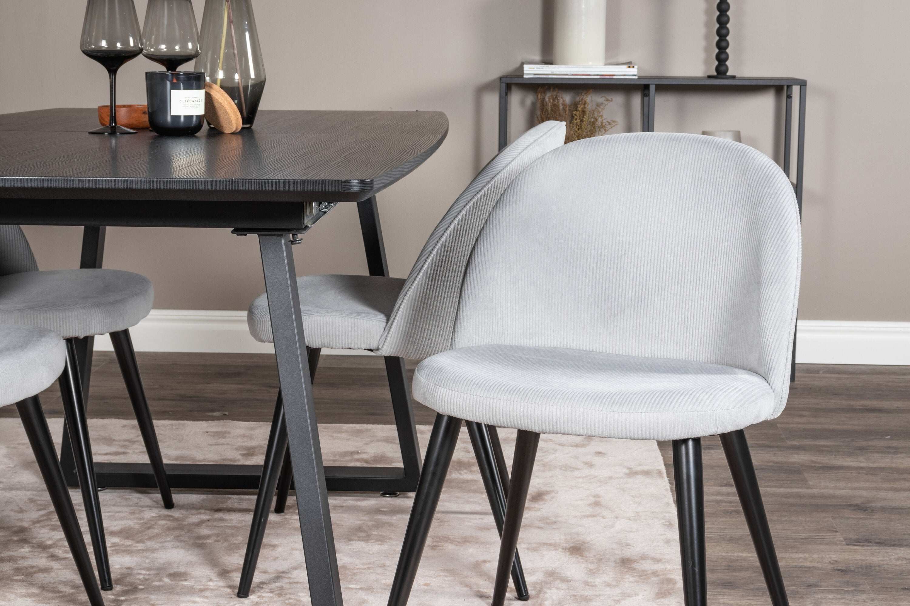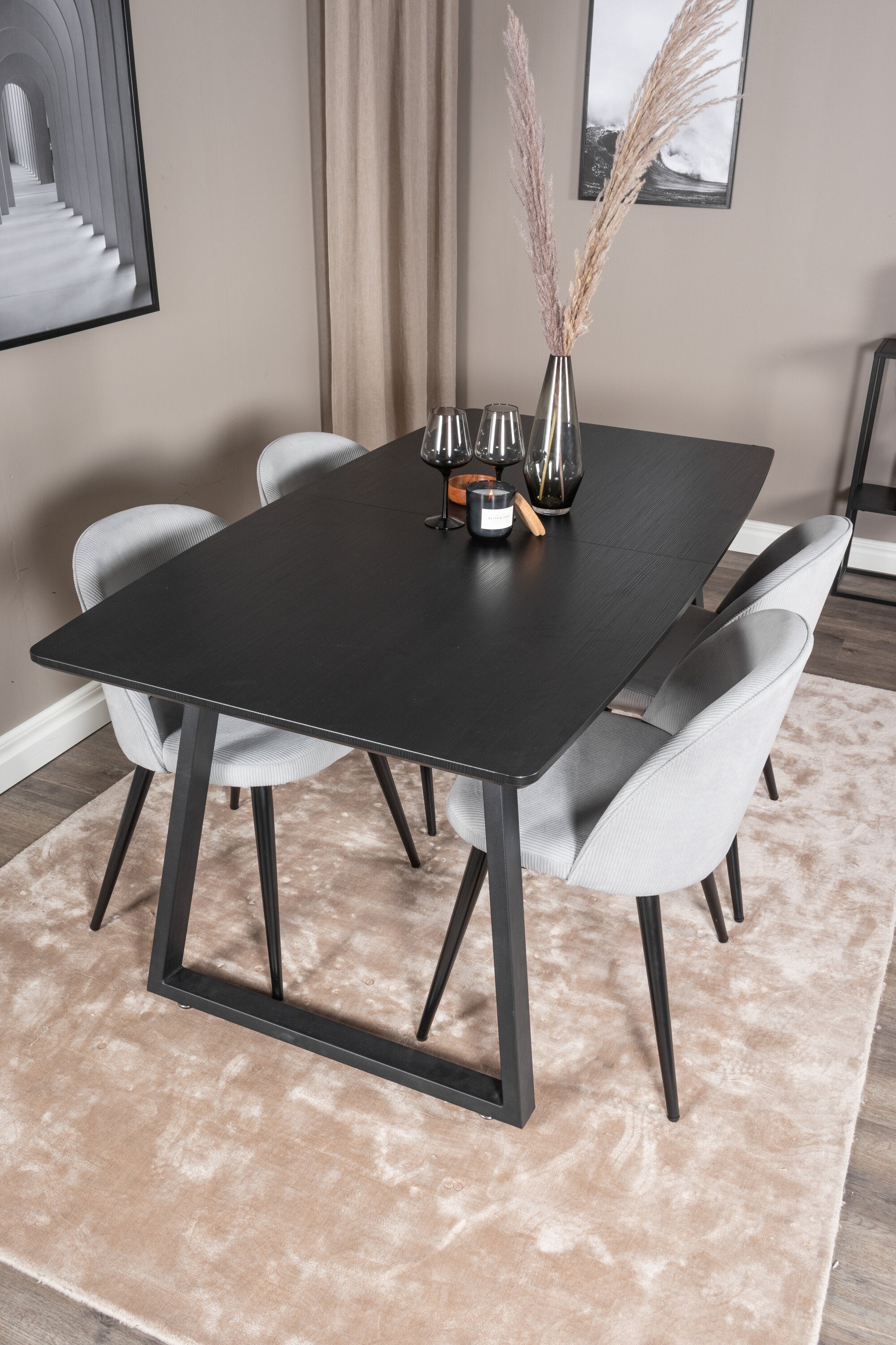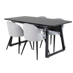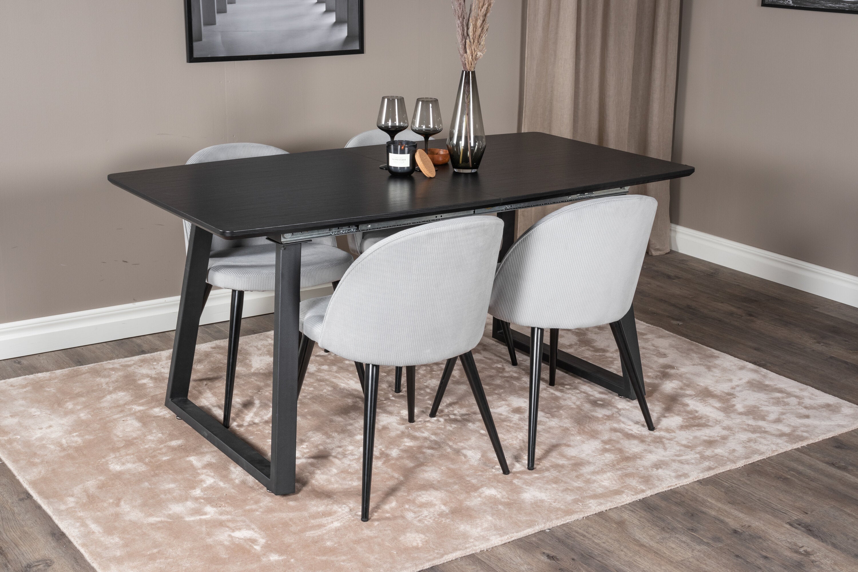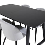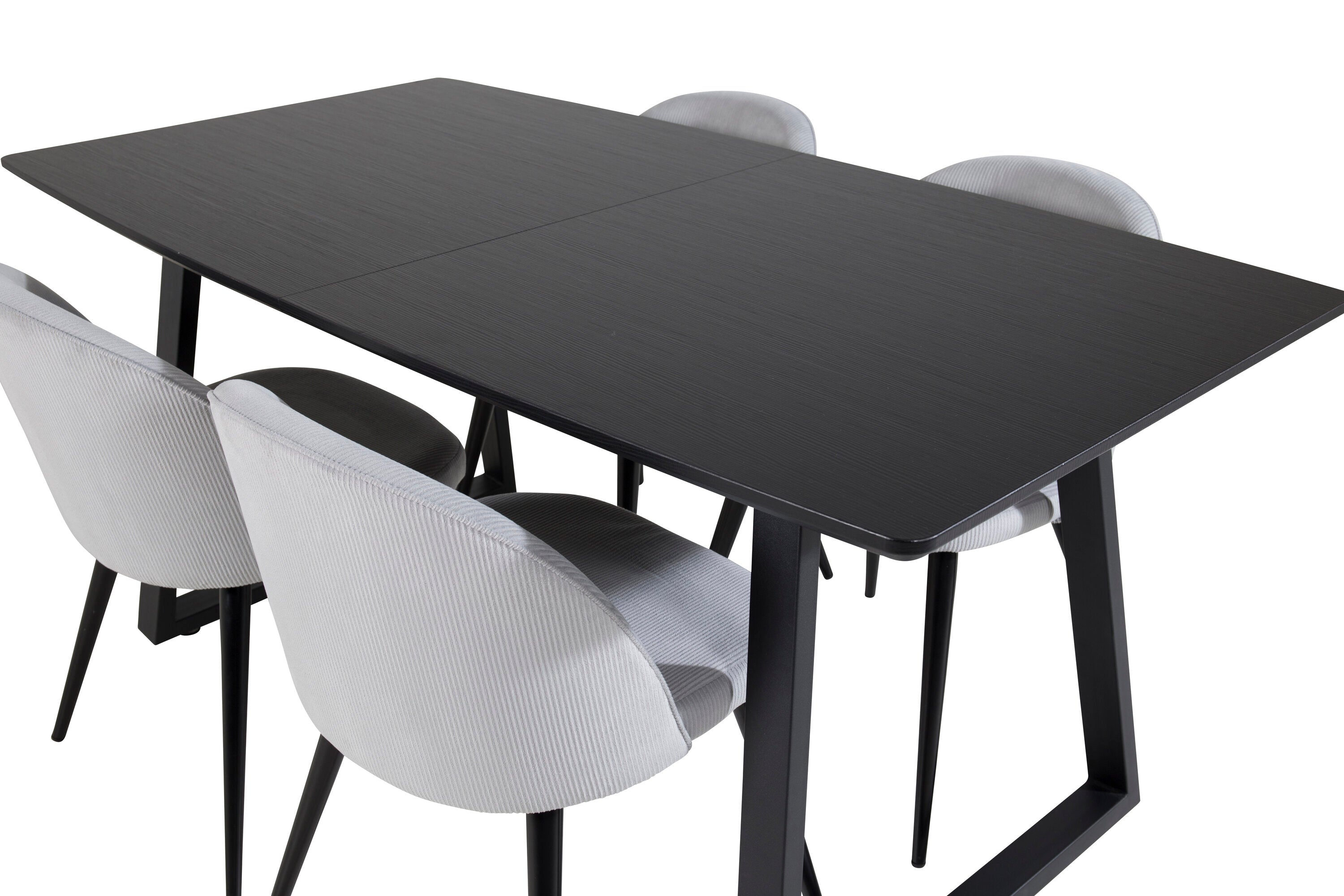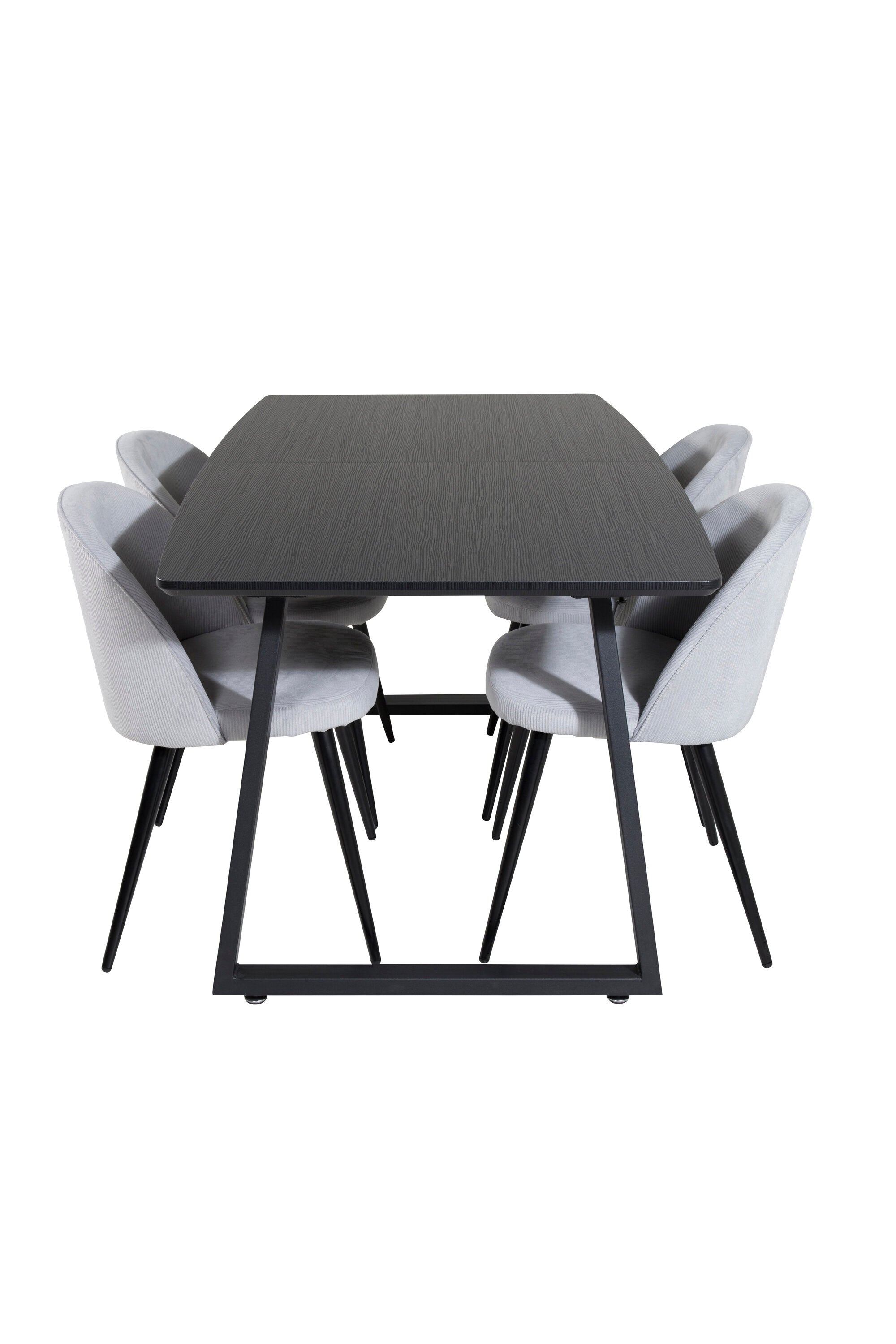 Rozšiřitelný Inca - černý top / černé nohy + sametová jídelní židle manšestr - světle šedá / černá_4