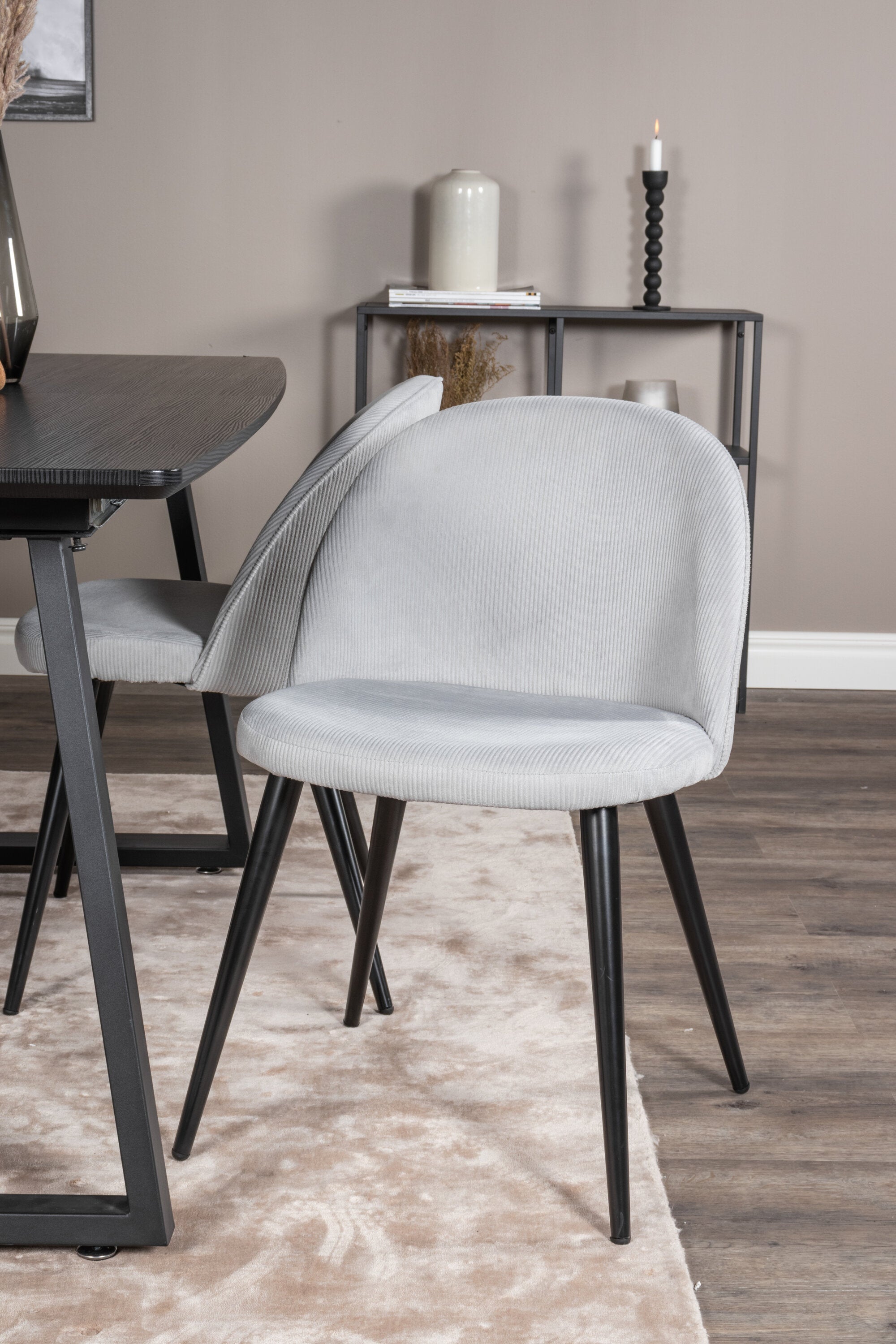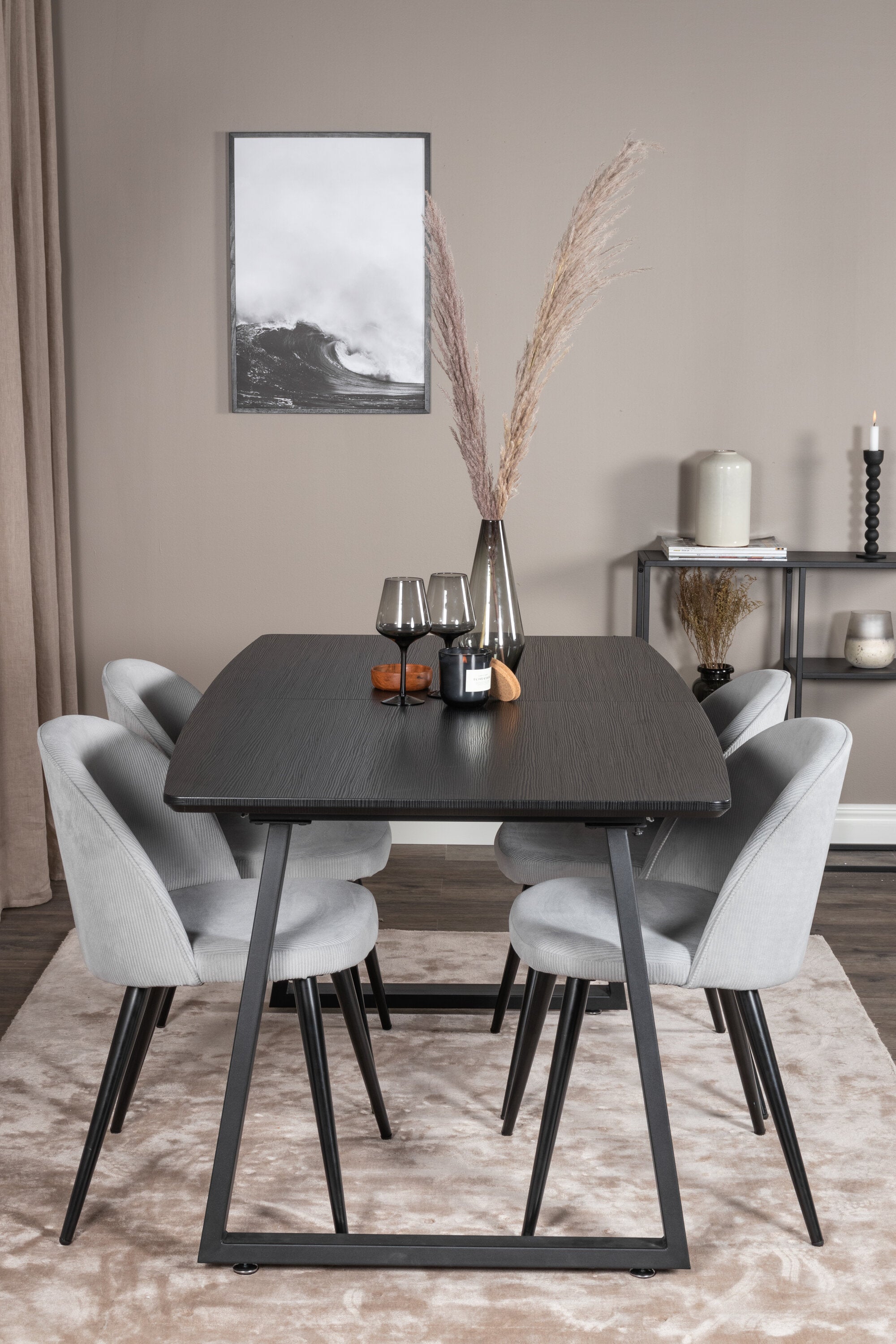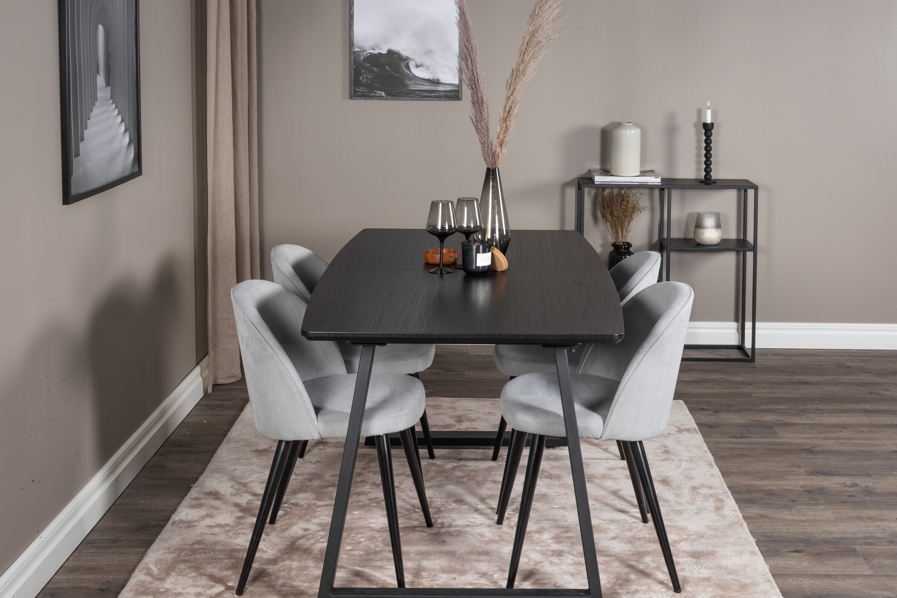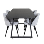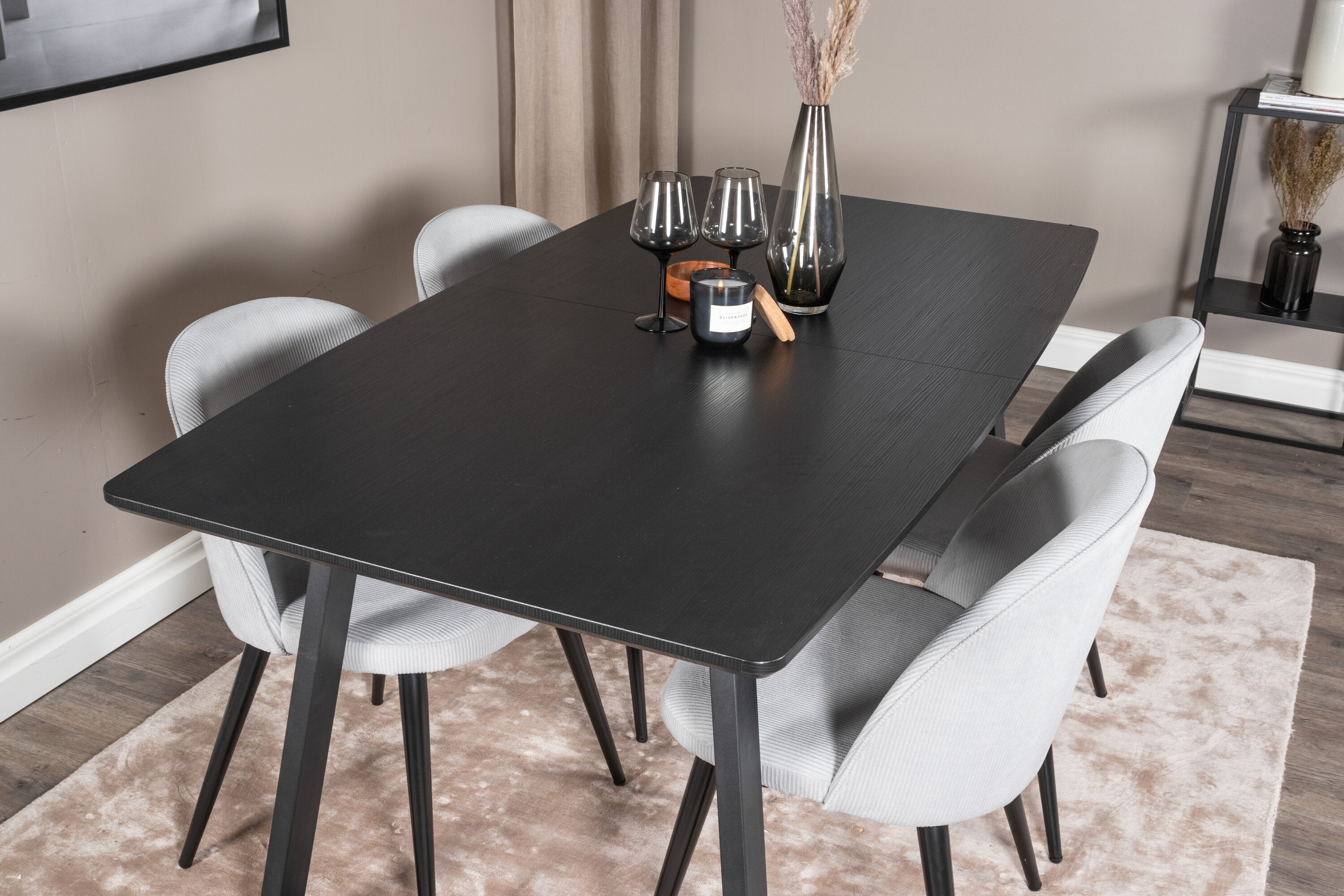 Rozšiřitelný Inca - černý top / černé nohy + sametová jídelní židle manšestr - světle šedá / černá_4