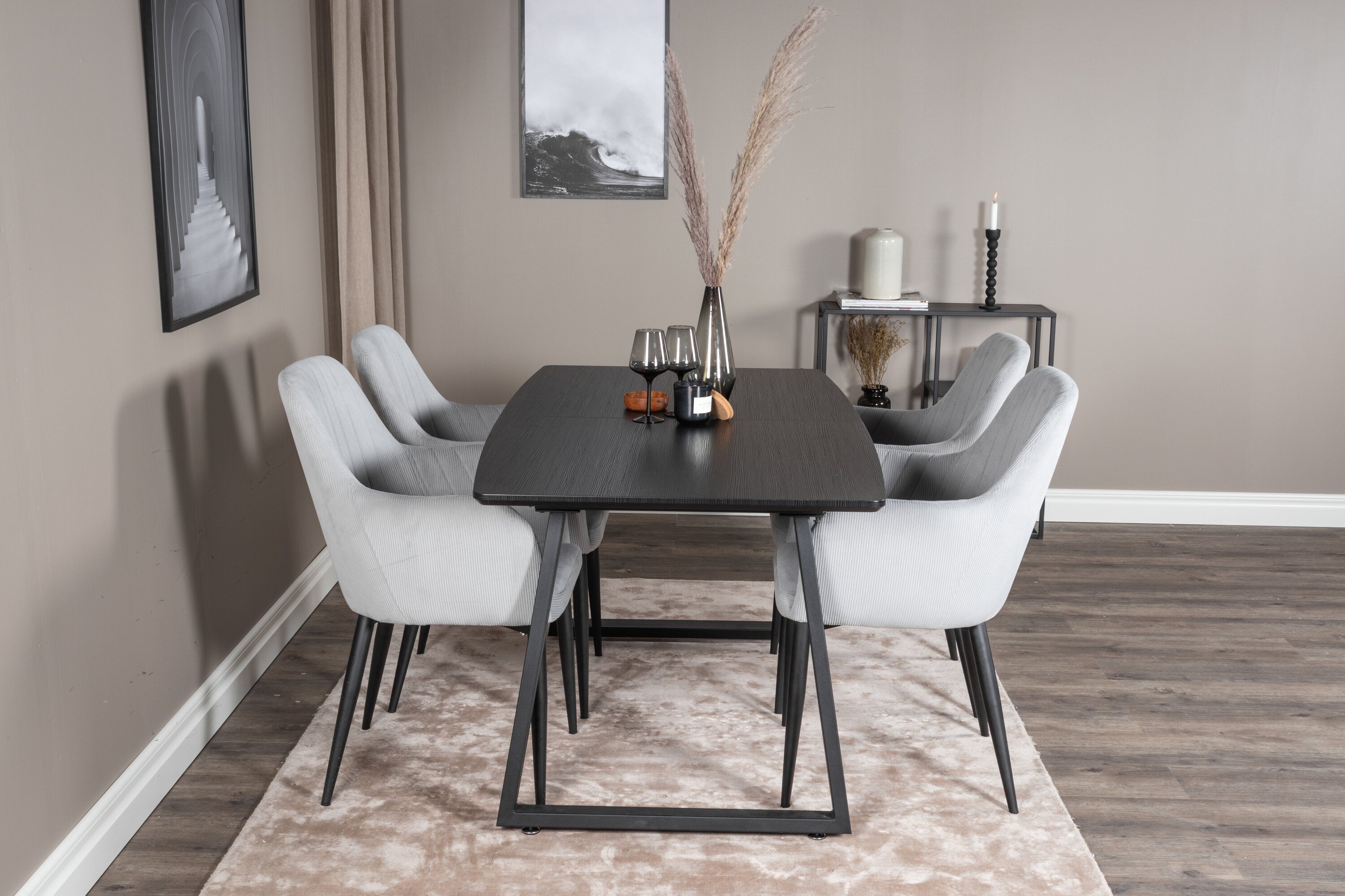 Rozšiřitelný Inca - černý vrch / černé nohy + komfortní jídelní židle - černé nohy / světle šedý manšestr _4