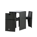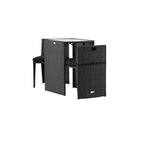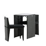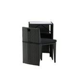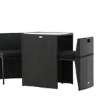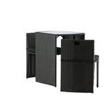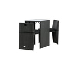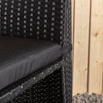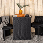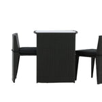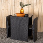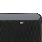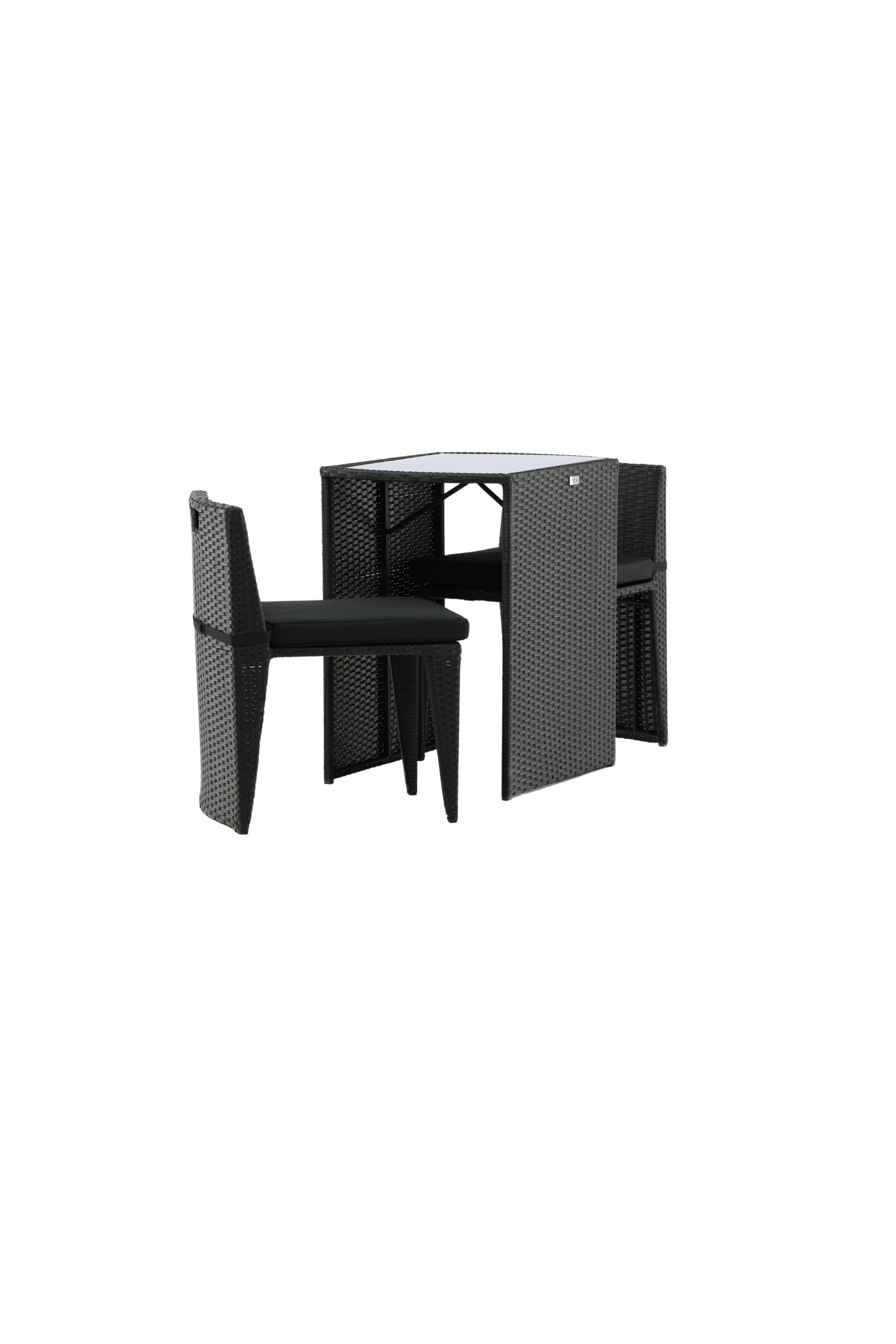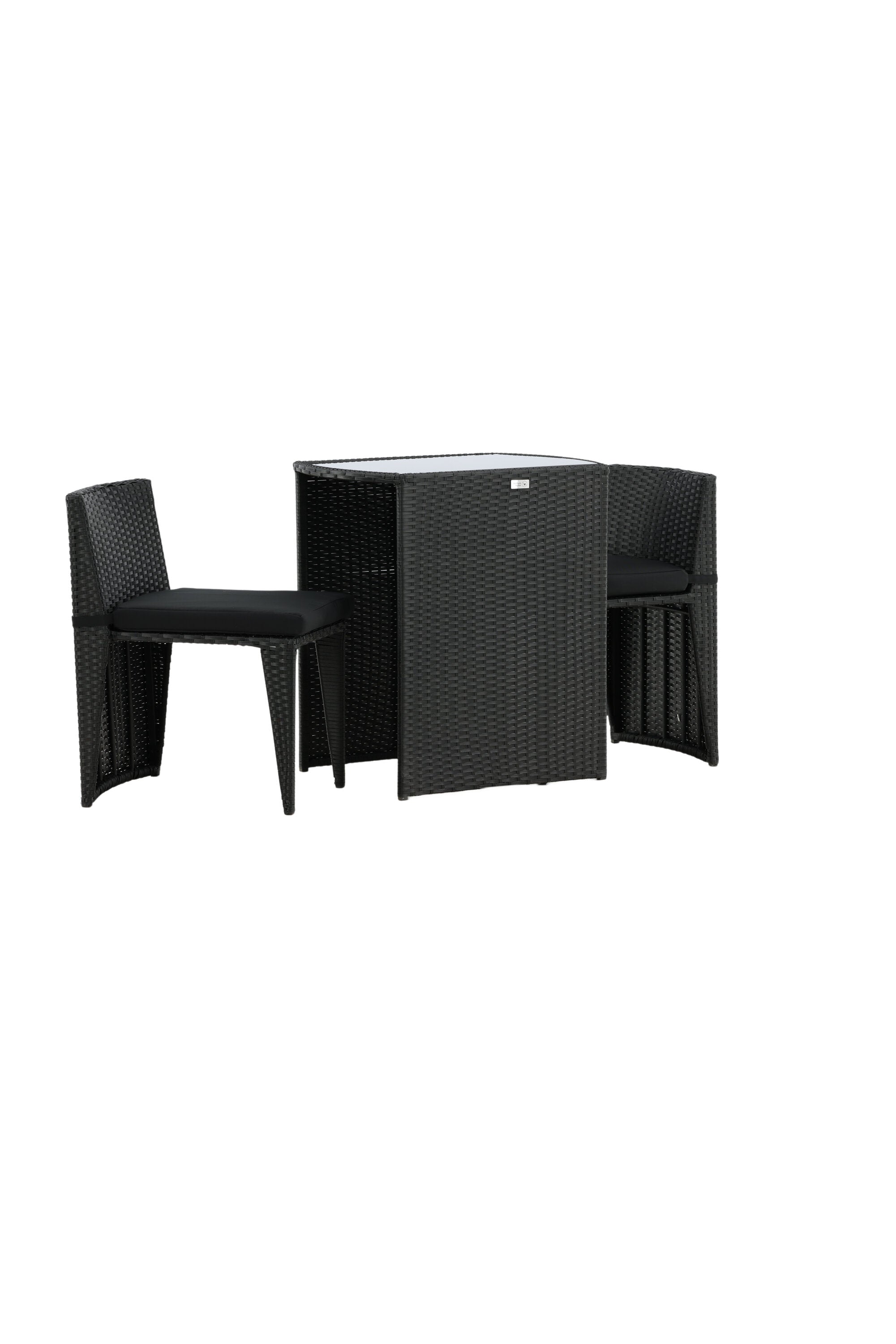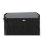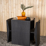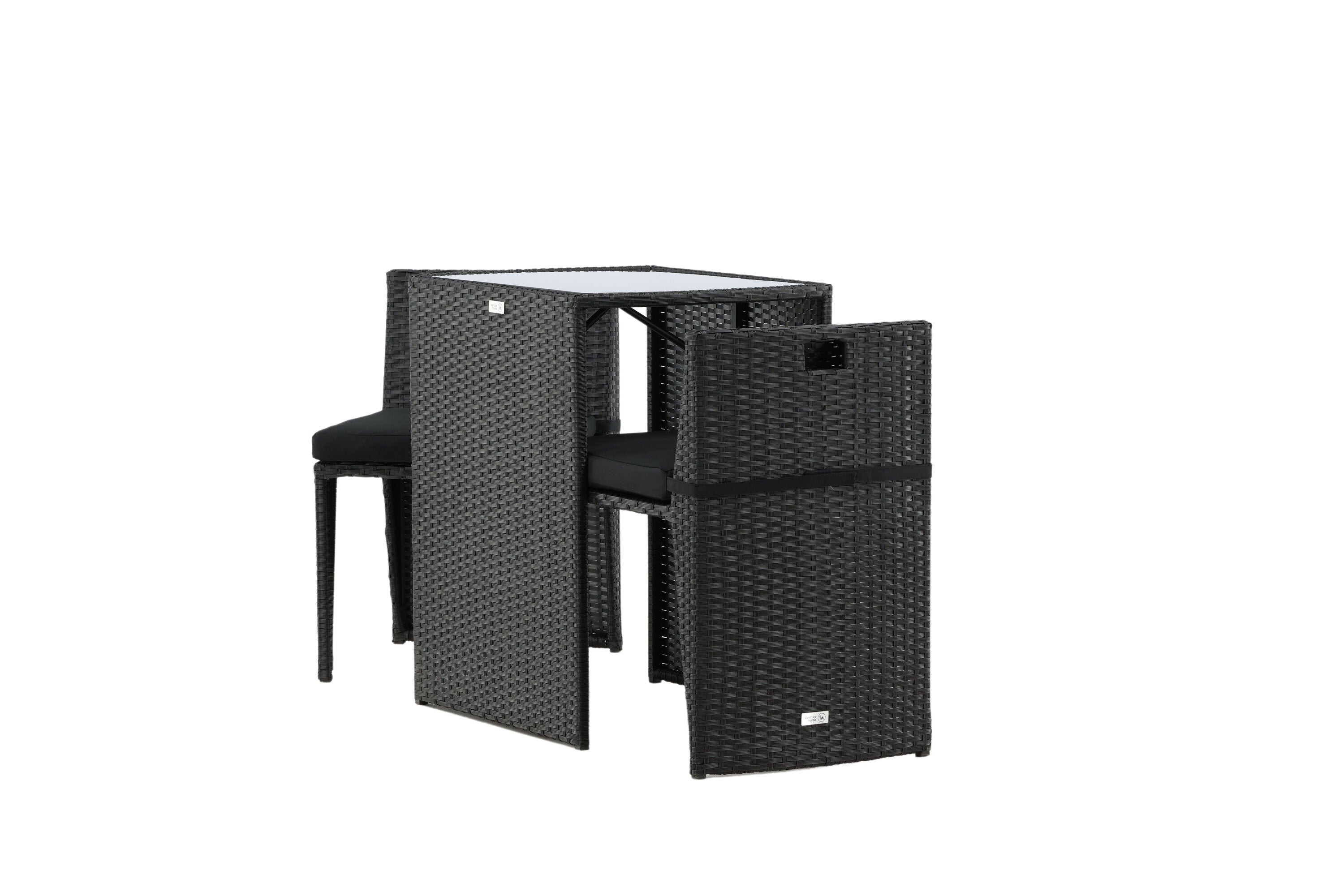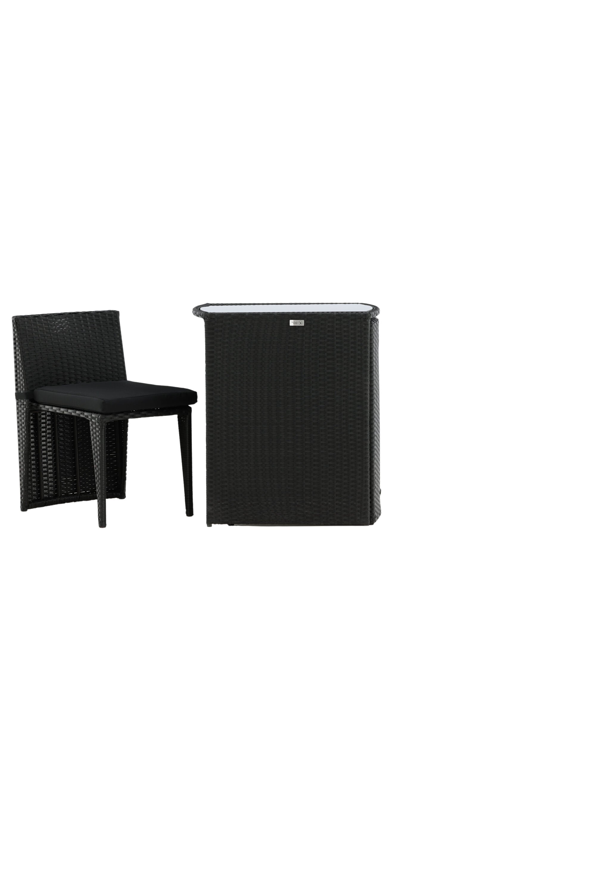 Útulný černý kavárenský set v hezkém designu vyrobený z odolného umělého ratanu, který se perfektně hodí na menší terasu. Kavárenský set se skládá ze dvou židlí a stolu s přidruženou skleněnou deskou, která zastupuje počasí i vítr, úhledné židle jsou dodávány s měkkými sedáky a židle můžete snadno zasunout pod stůl pro snadné skladování a úsporu místa.