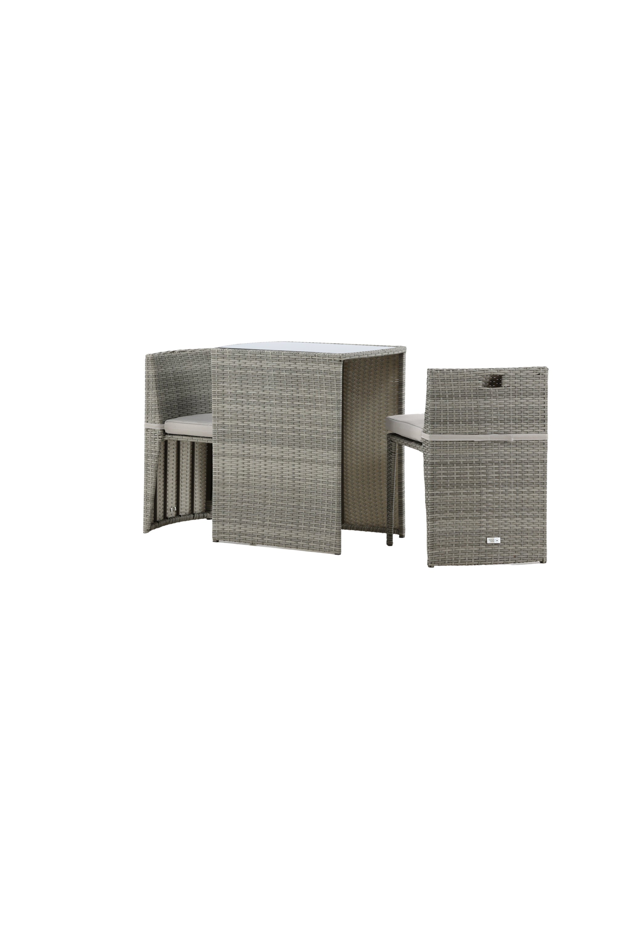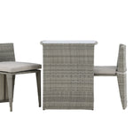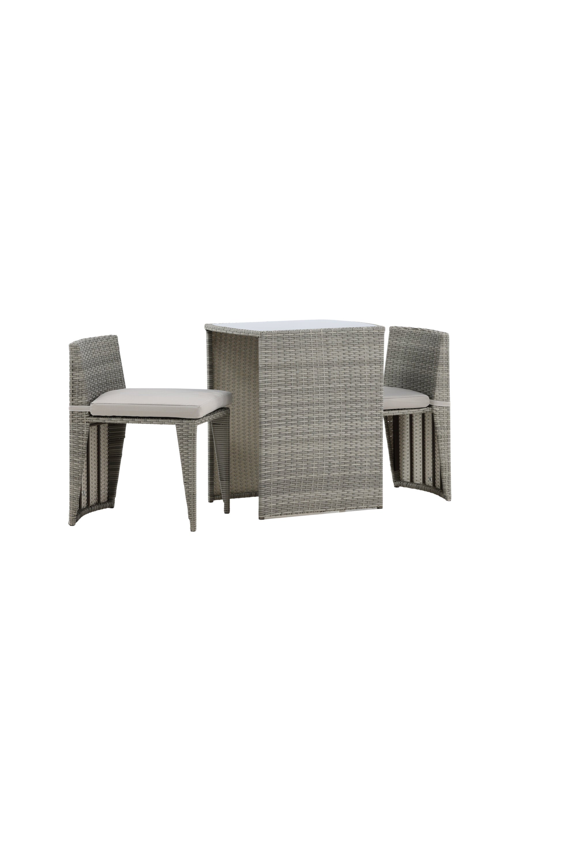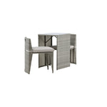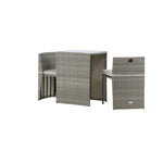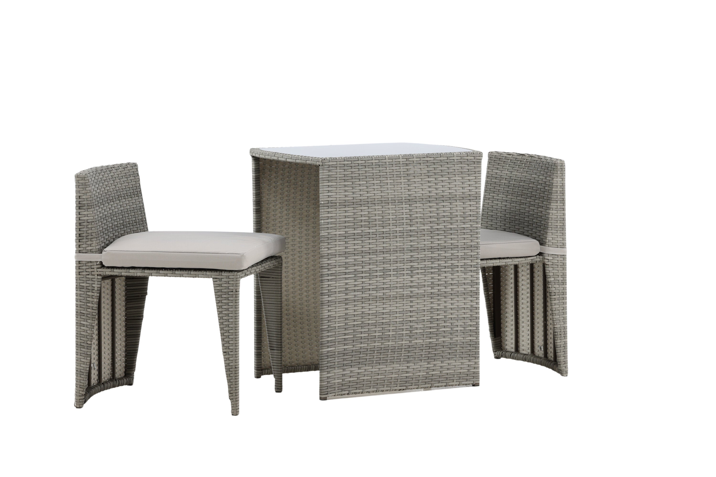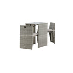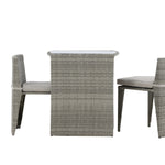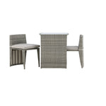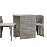 Útulný šedý kavárenský set v hezkém designu vyrobený z odolného umělého ratanu, který se perfektně hodí na menší terasu. Kavárenský set se skládá ze dvou židlí a stolu s přidruženou skleněnou deskou, která zastupuje počasí i vítr, úhledné židle jsou dodávány s měkkými sedáky a židle můžete snadno zasunout pod stůl pro snadné skladování a úsporu místa.