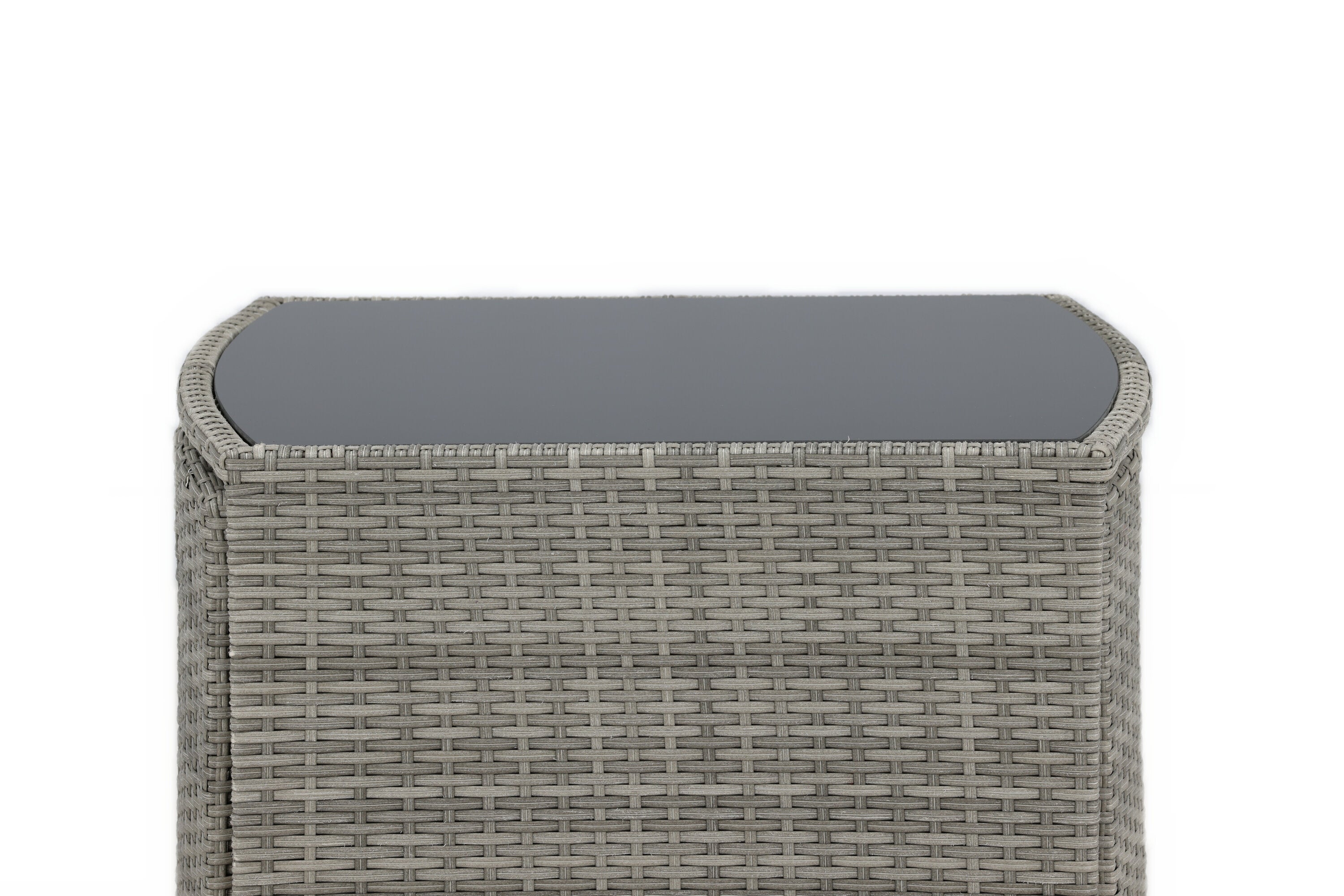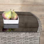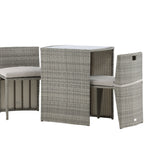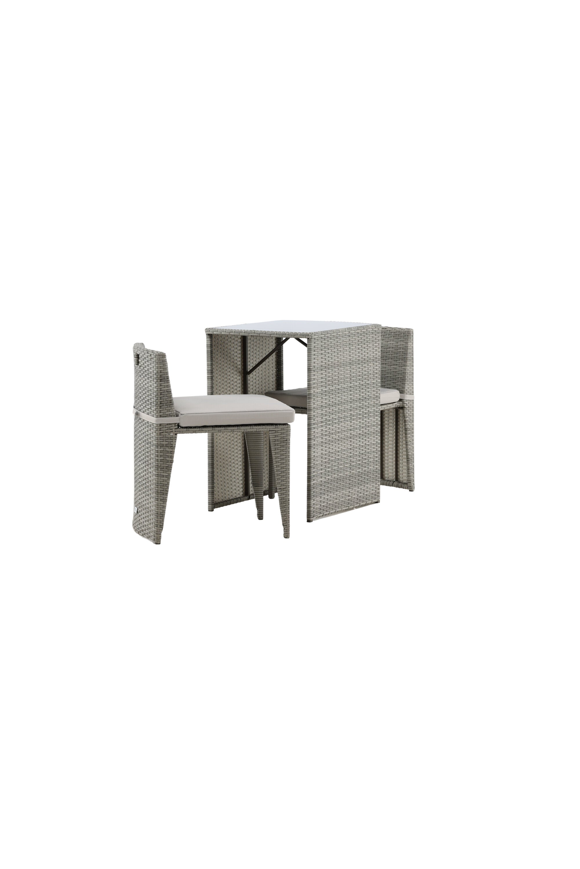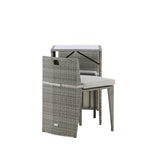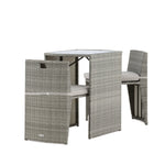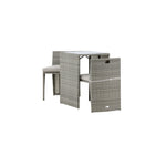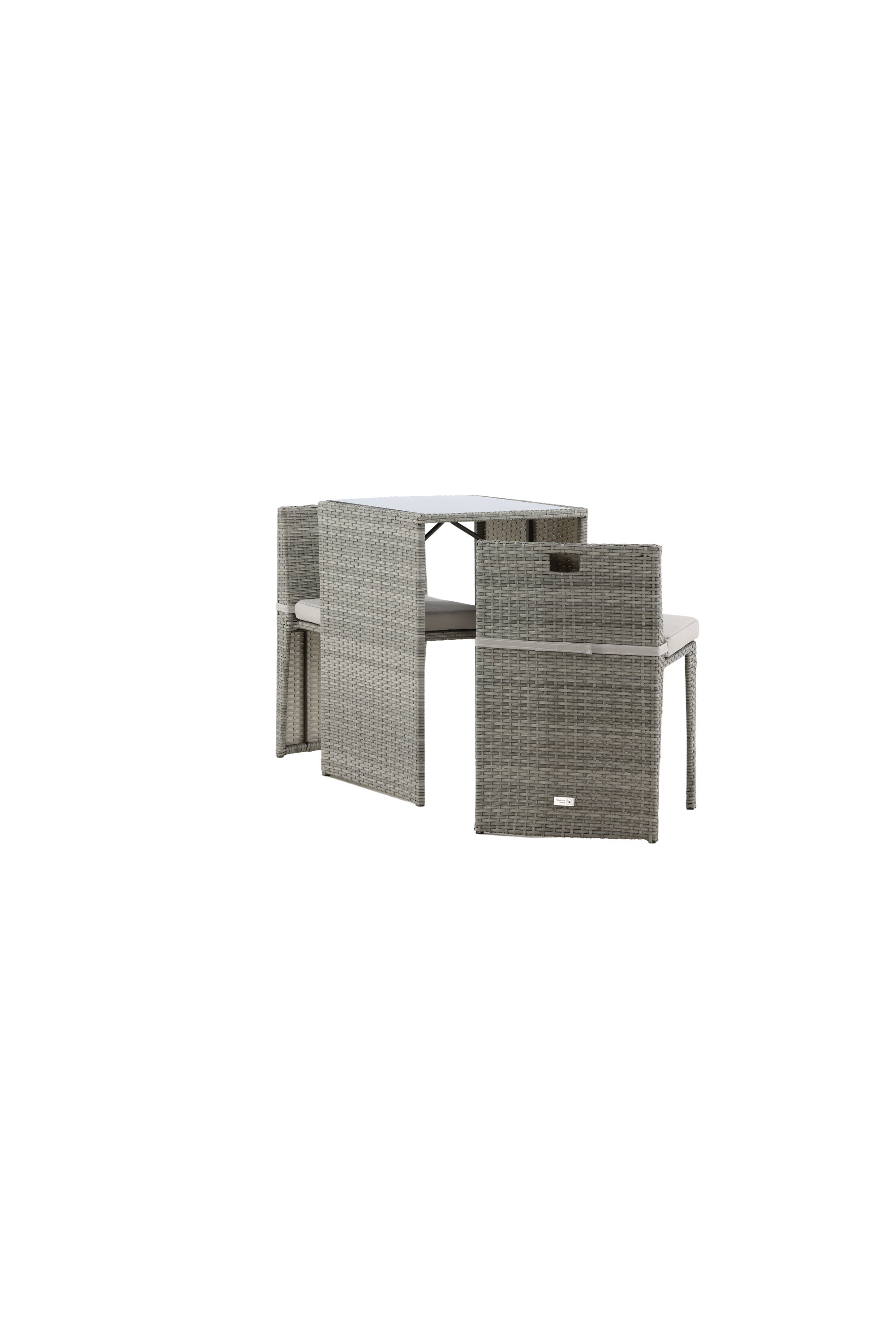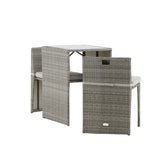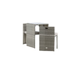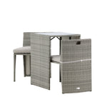Útulný šedý kavárenský set v hezkém designu vyrobený z odolného umělého ratanu, který se perfektně hodí na menší terasu. Kavárenský set se skládá ze dvou židlí a stolu s přidruženou skleněnou deskou, která zastupuje počasí i vítr, úhledné židle jsou dodávány s měkkými sedáky a židle můžete snadno zasunout pod stůl pro snadné skladování a úsporu místa.