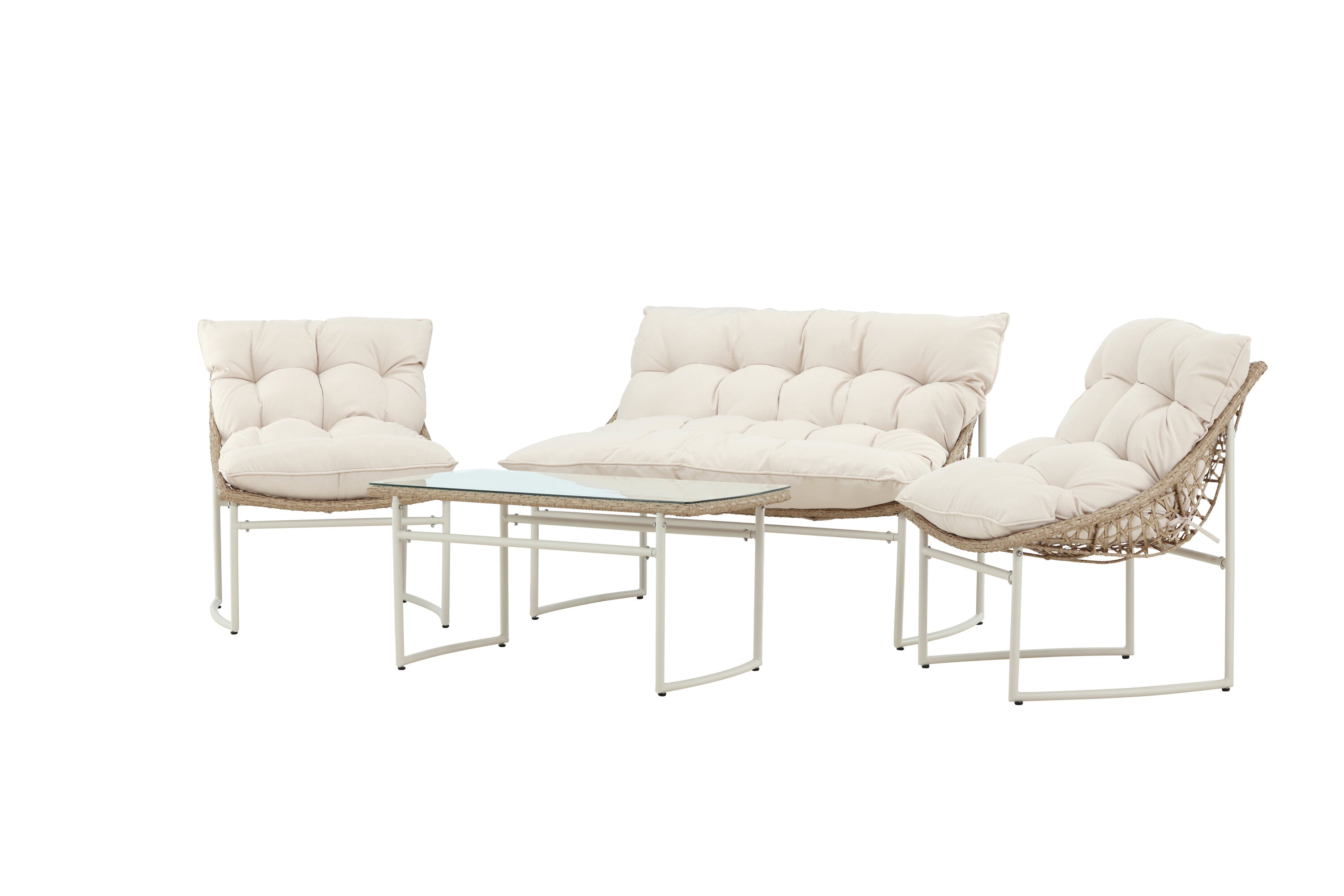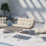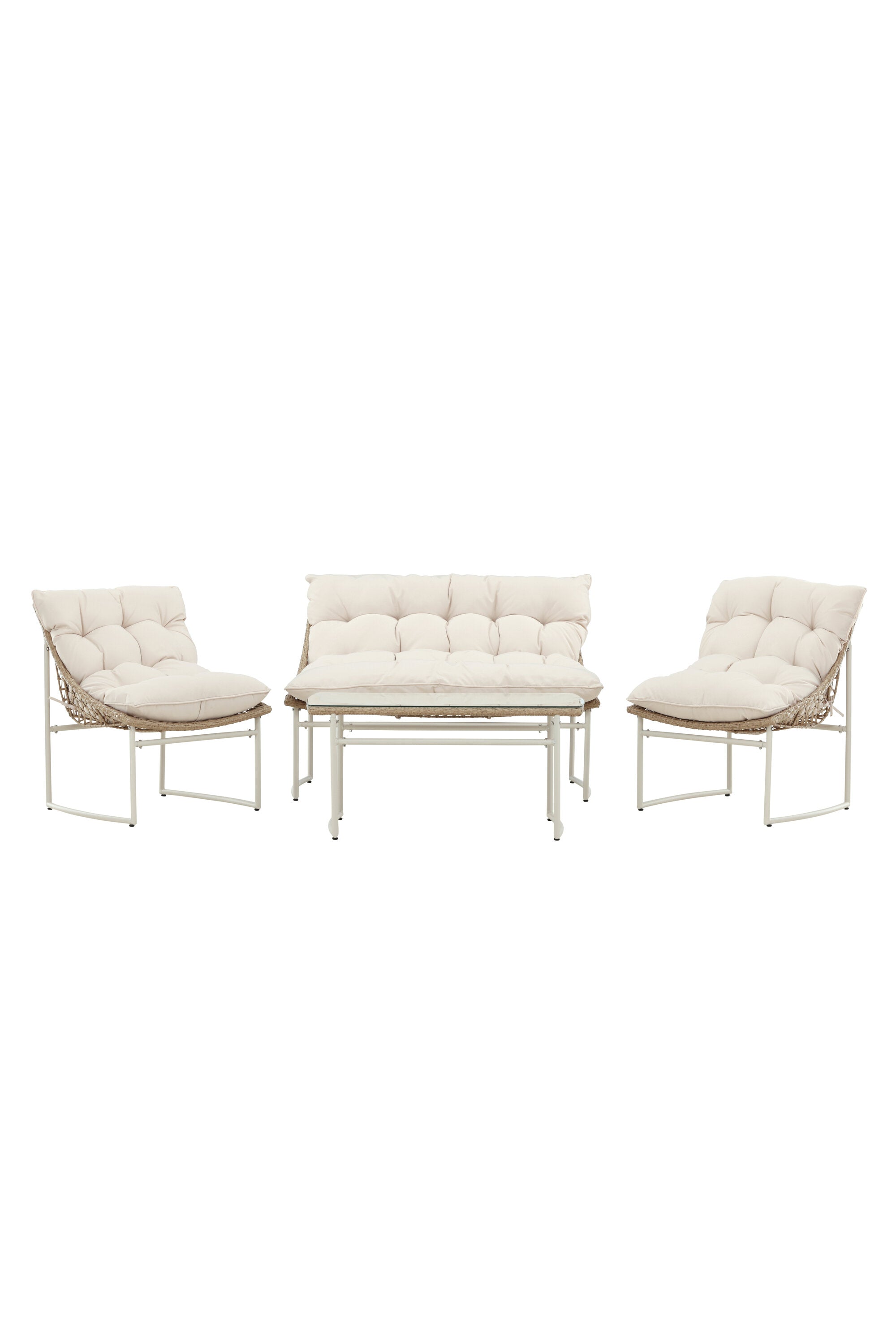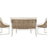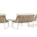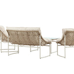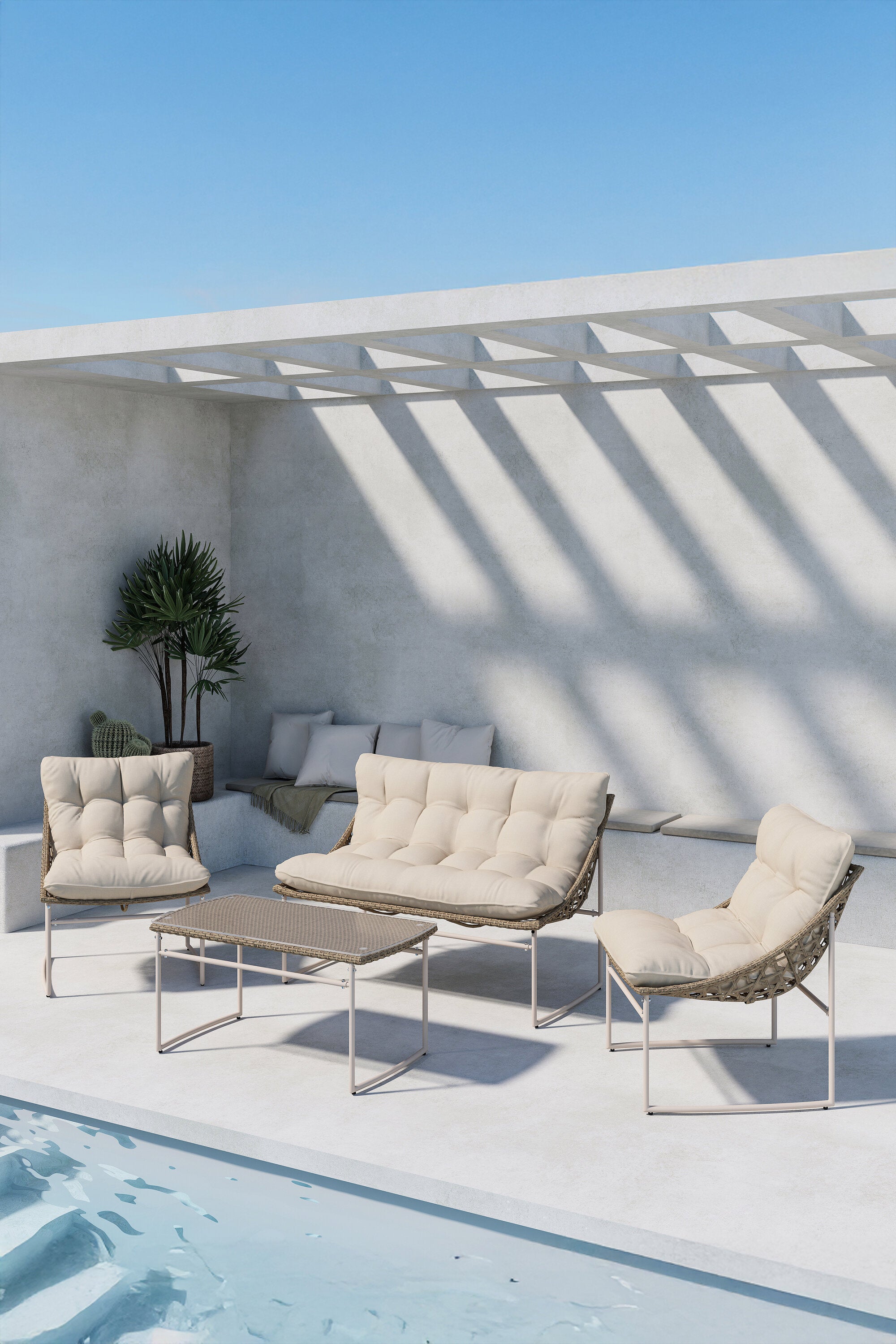 Sedací nábytek je navržen s pevným ocelovým rámem a má sedák ze syntetického ratanu, doplněný stylovými béžovými polštáři, které vás zvou k dlouhým chvilkám odpočinku. Sedací souprava Tina v přírodních a bílých barvách poskytuje trendy a zároveň nadčasový vzhled, který se hodí do většiny prostředí. Díky kombinaci přírodních materiálů a moderního designu je sedací souprava Tina dokonalým řešením pro ty, kteří si chtějí vytvořit pohodlný a stylový venkovní obývací prostor.