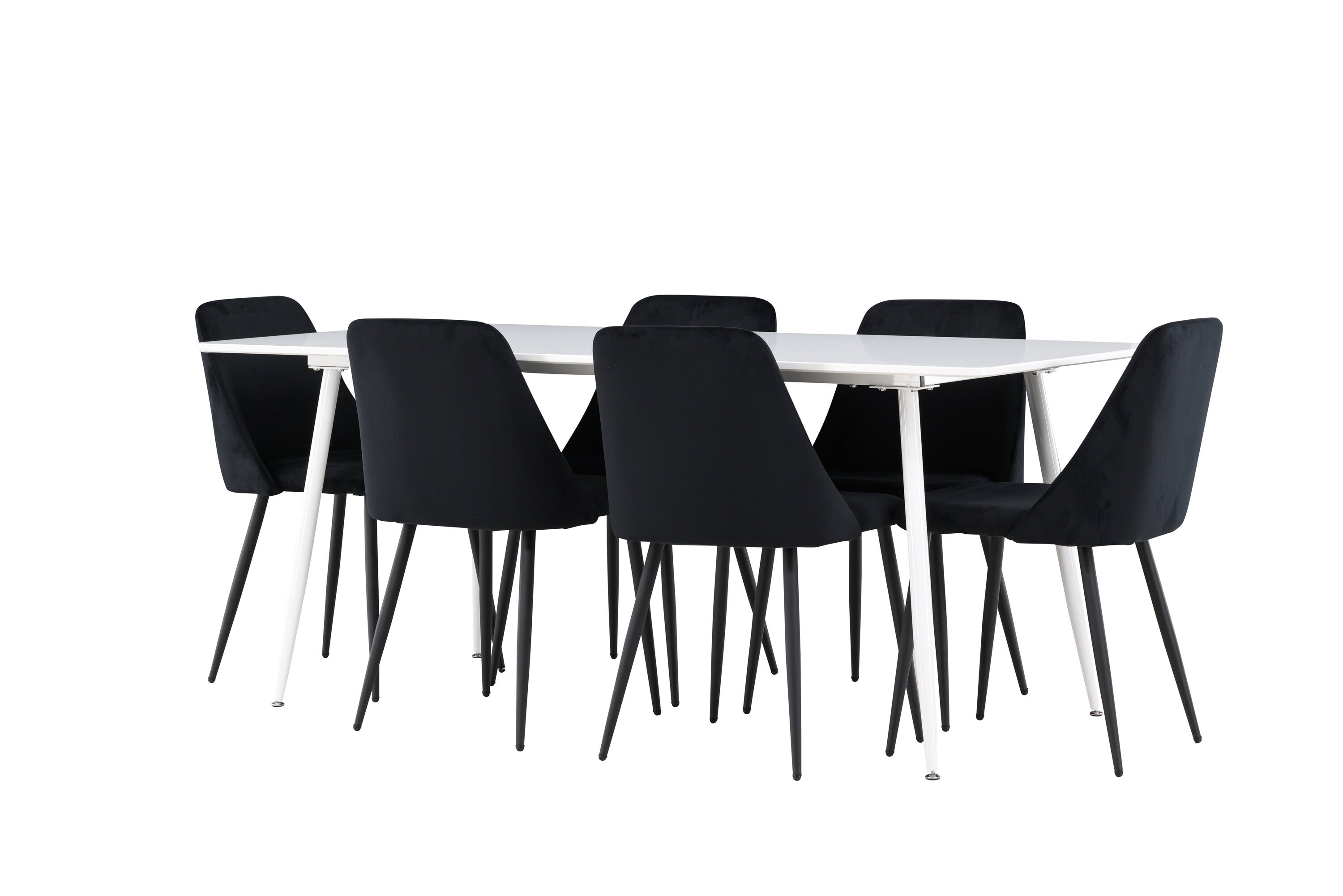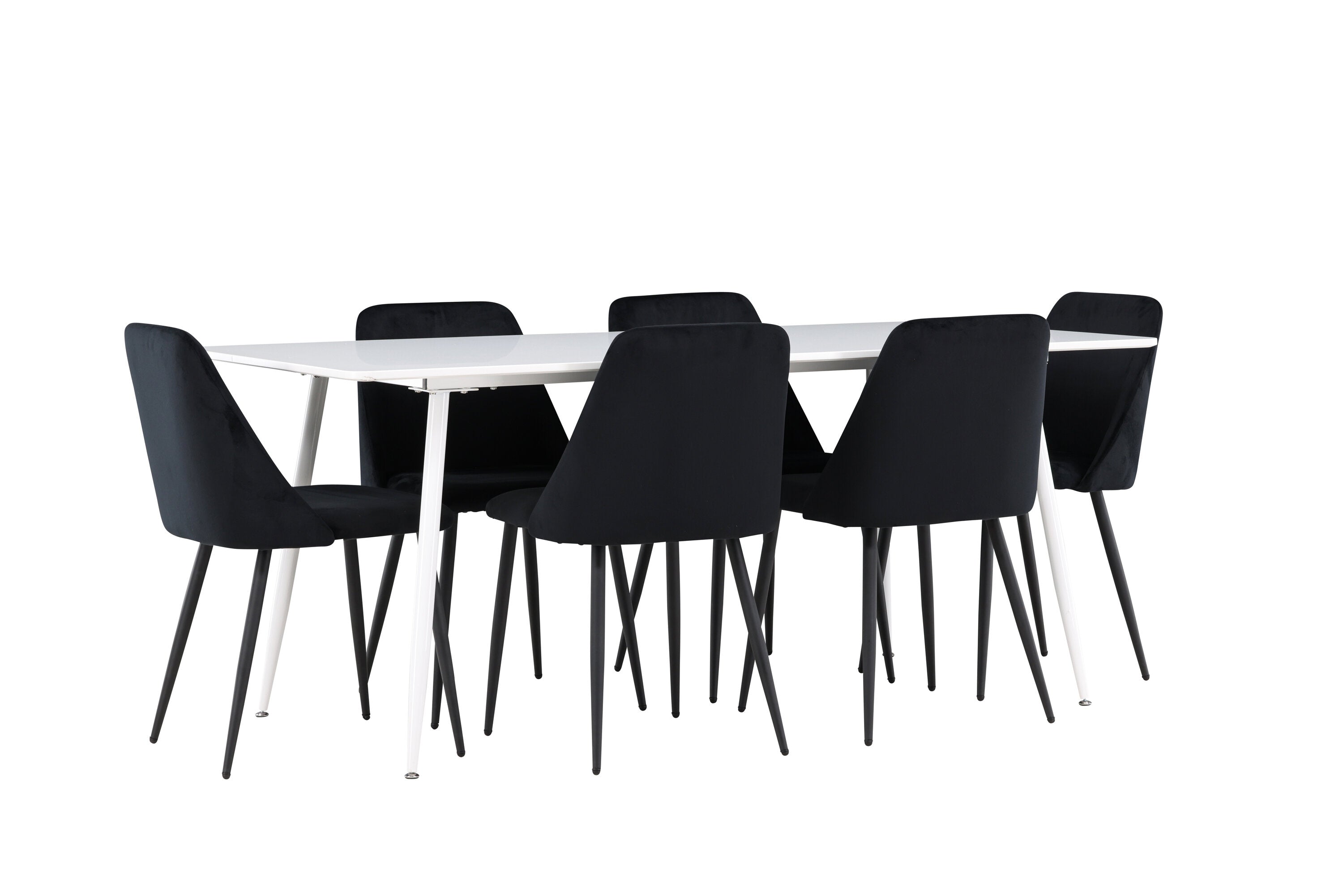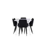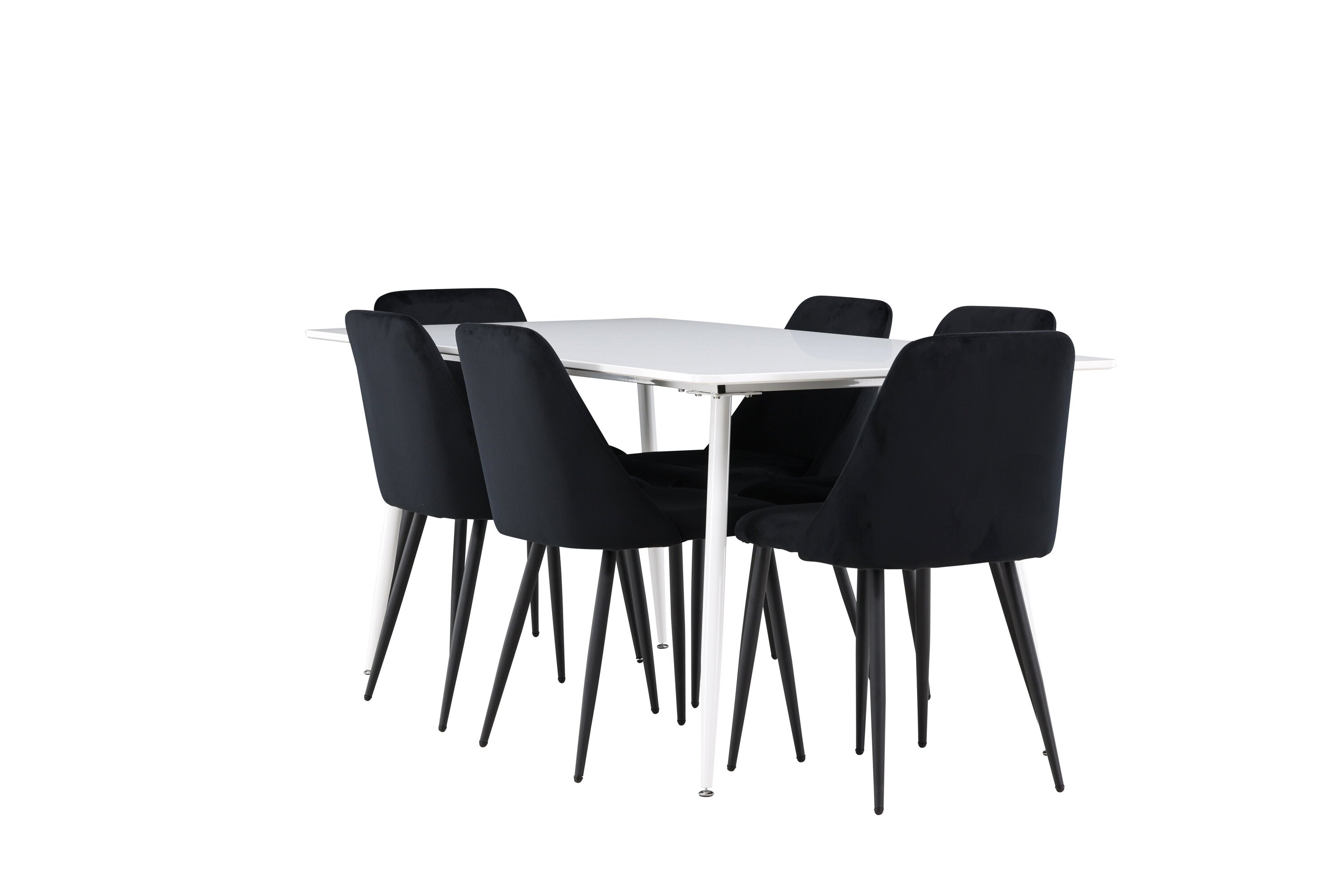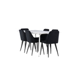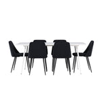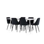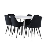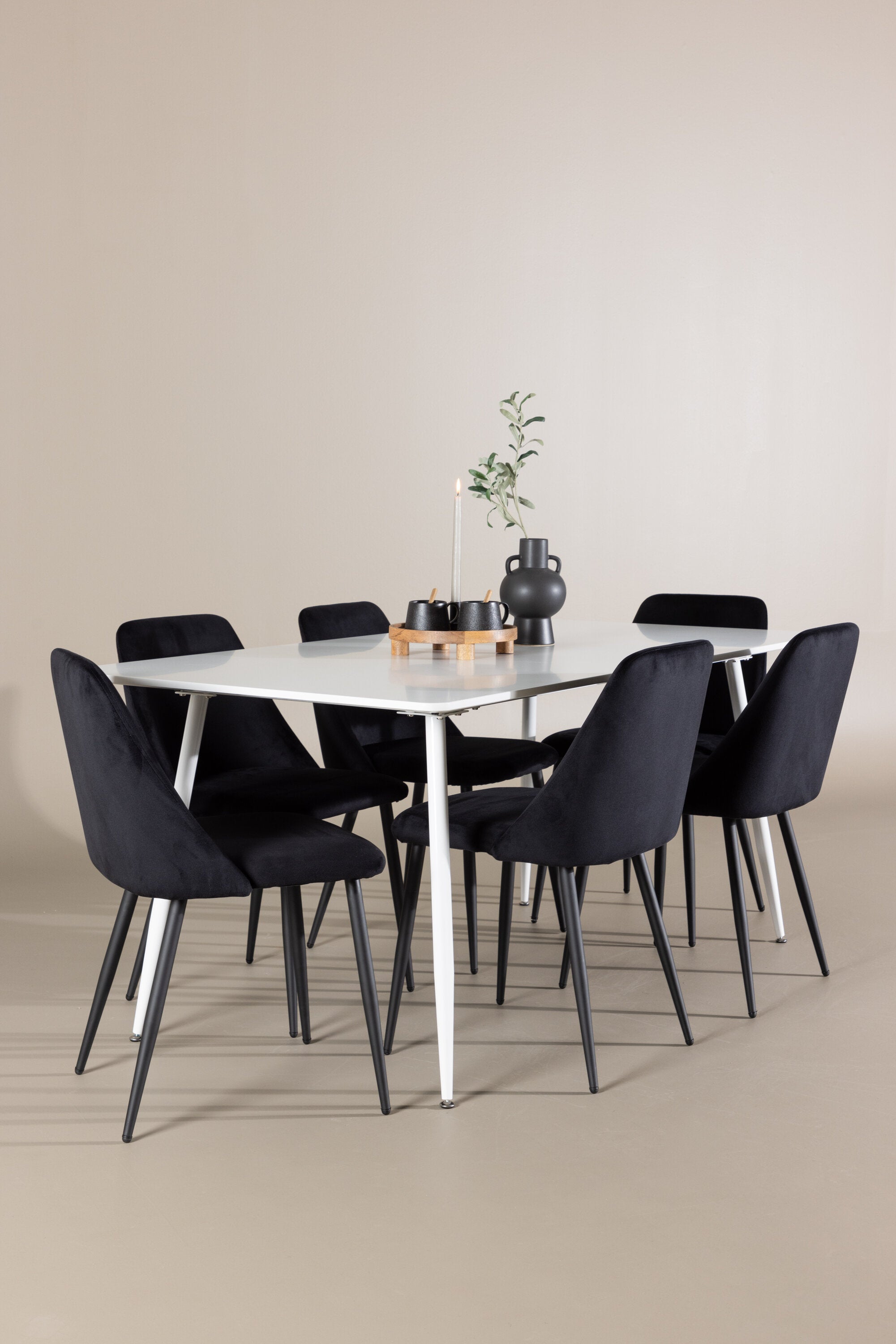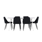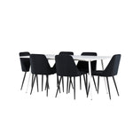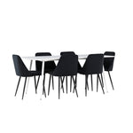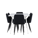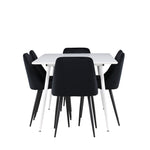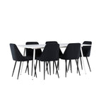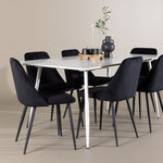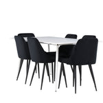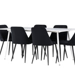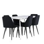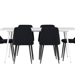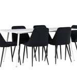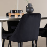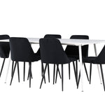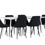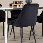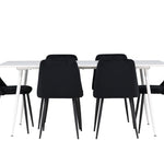 Objevte perfektní jídelní sestavu pro váš domov s jídelní židlí ze série NIGHT a jídelním stolem Silar. Jídelní židle NIGHT je stejně pohodlná jako stylová, s celočalouněným sedákem z černého sametu a sladěnými černými nohami. Tato židle vytváří luxusní lesk v místnosti a přispívá k příjemné a módní atmosféře. Posedět u lahodného jídla by měl být skvělý pocit! Kompletní s jídelním stolem Silar, elegantním a všestranným kusem nábytku pro přátele a rodinu. S velkorysými rozměry 180x90 cm nabízí Silar dostatek prostoru pro přivítání vašich blízkých. Bílý stůl dodává místnosti lehkost a vzdušnost a vytváří příjemnou atmosféru pro jídlo a setkání. Jídelní stůl Silar je nejen praktický, ale i trendy a skvěle se hodí do moderních interiérů. Vytvářejte vzpomínky a sdílejte dobré časy s přáteli a rodinou v této jídelní skupině. Ať už se jedná o každodenní jídlo nebo slavnostní příležitosti, tato jídelní skupina se stane ústředním bodem ve vašem domě, kde vzkvétá komunita a radost.