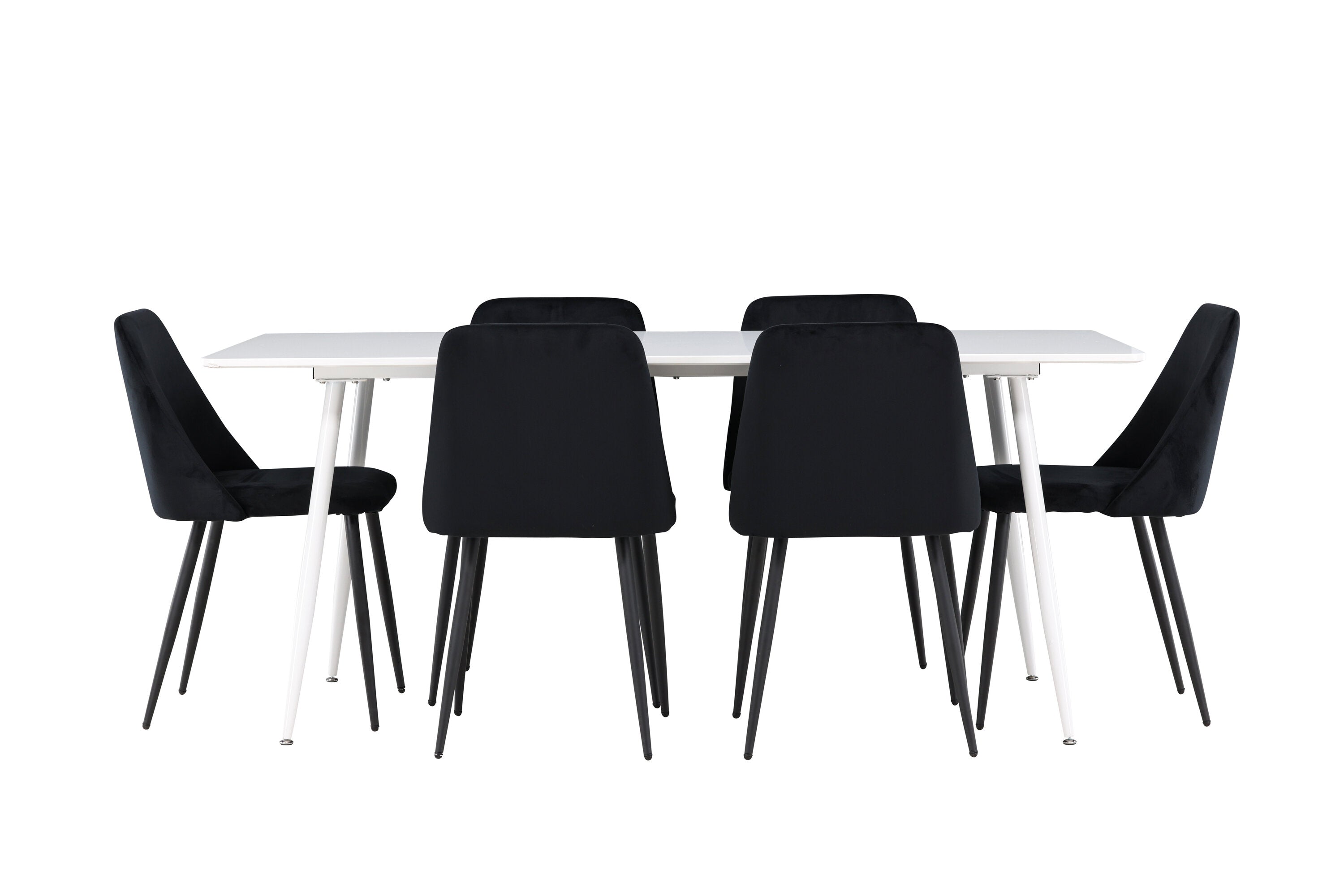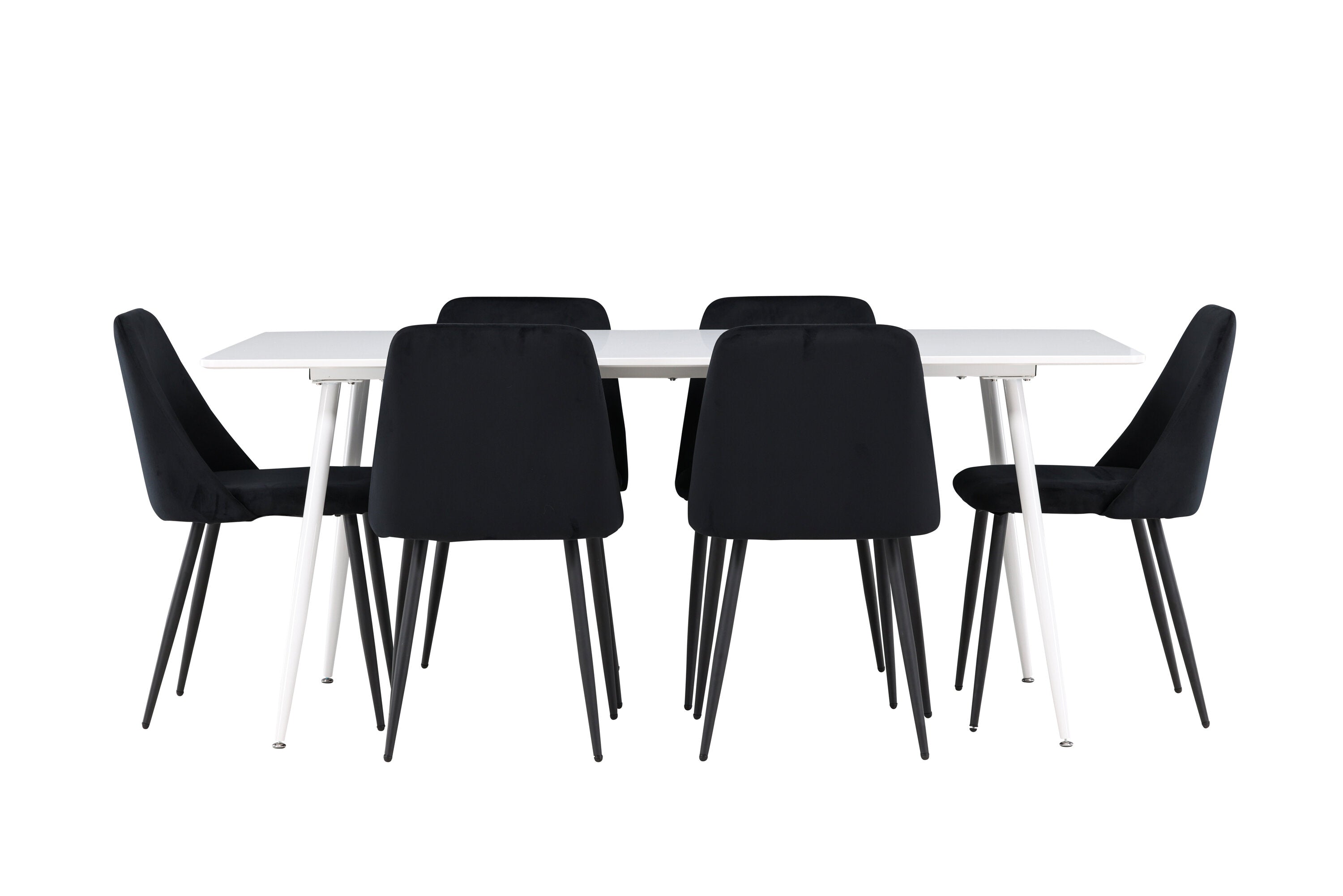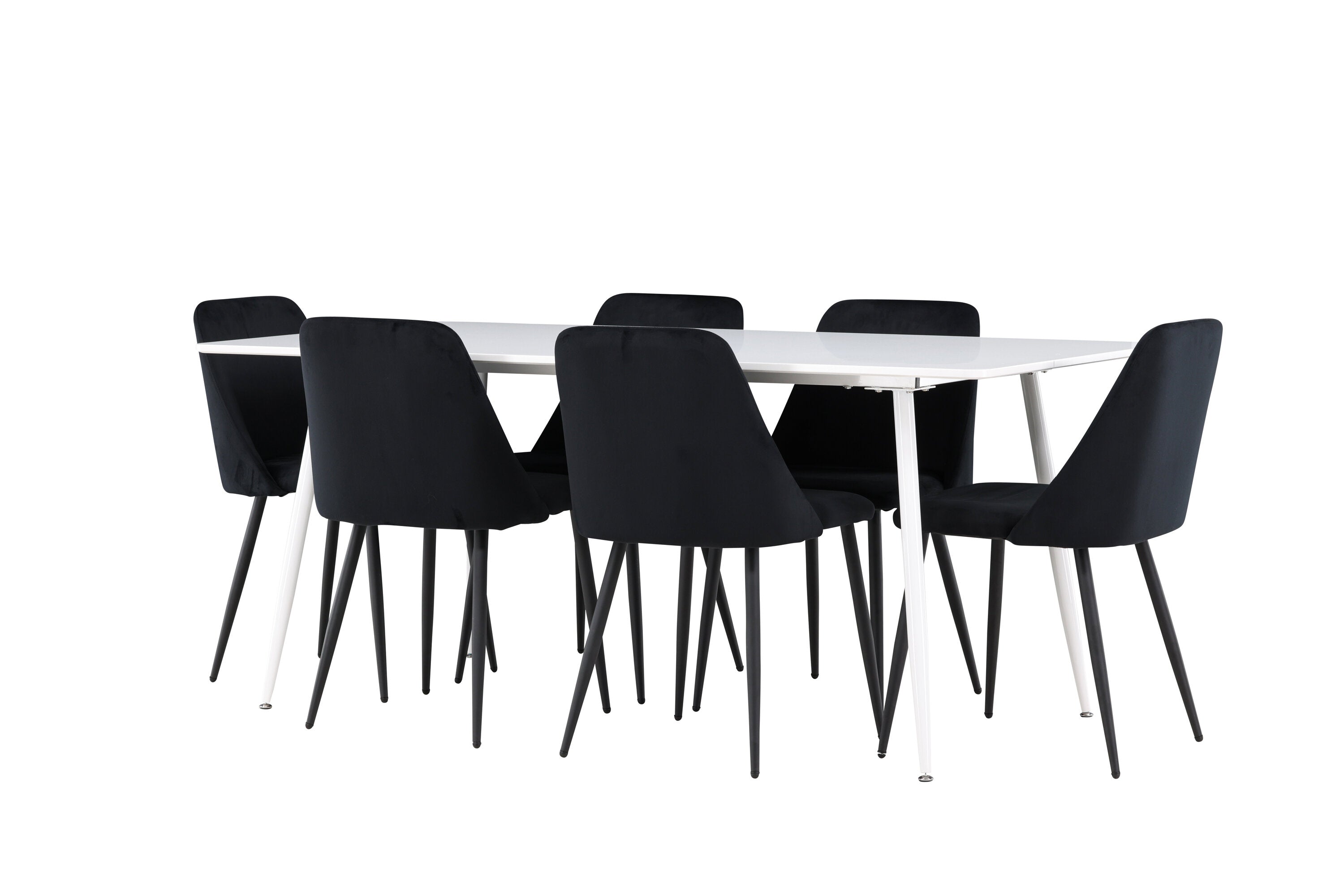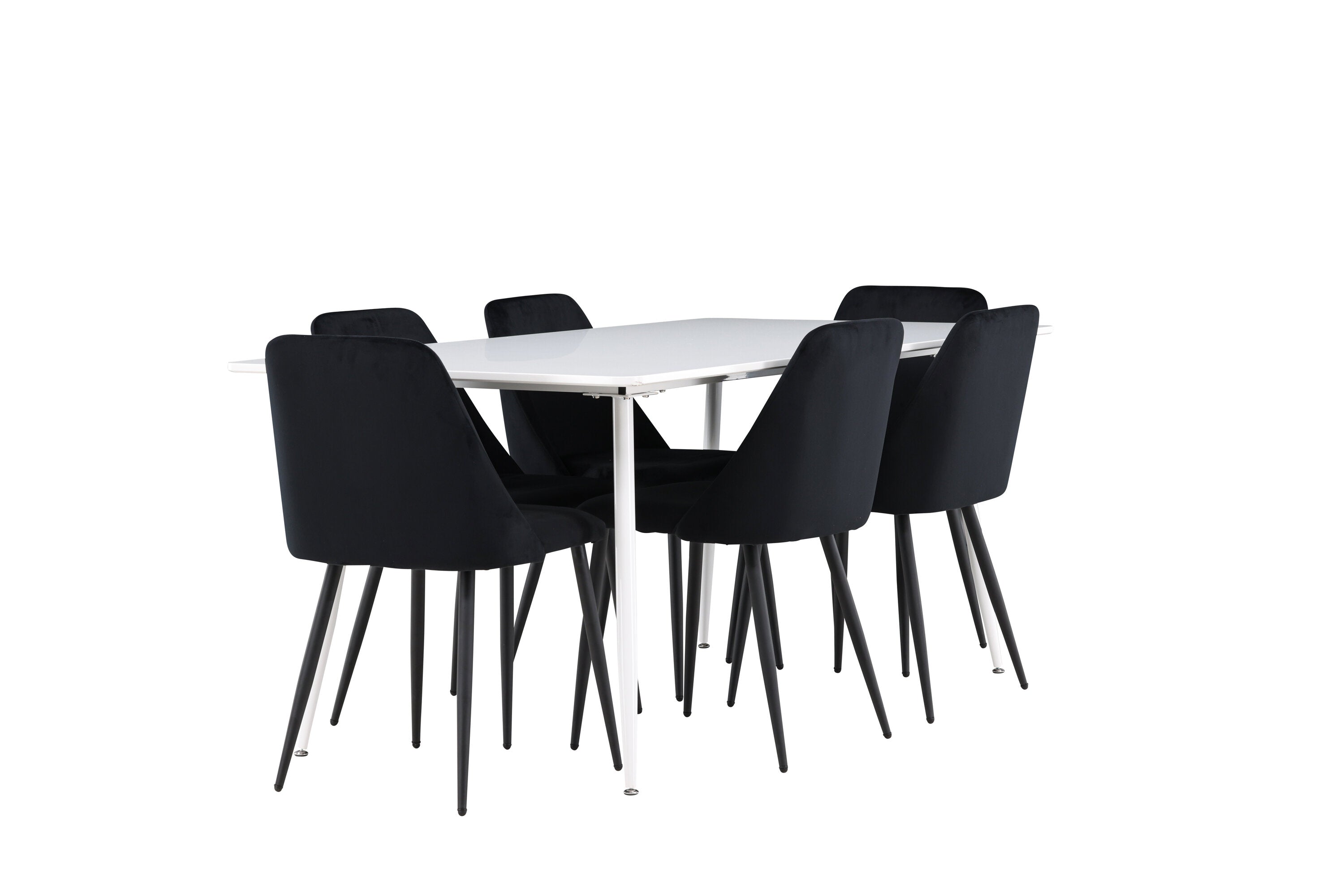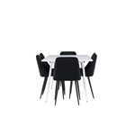 Objevte perfektní jídelní sestavu pro váš domov s jídelní židlí ze série NIGHT a jídelním stolem Silar. Jídelní židle NIGHT je stejně pohodlná jako stylová, s celočalouněným sedákem z černého sametu a sladěnými černými nohami. Tato židle vytváří luxusní lesk v místnosti a přispívá k příjemné a módní atmosféře. Posedět u lahodného jídla by měl být skvělý pocit! Kompletní s jídelním stolem Silar, elegantním a všestranným kusem nábytku pro přátele a rodinu. S velkorysými rozměry 180x90 cm nabízí Silar dostatek prostoru pro přivítání vašich blízkých. Bílý stůl dodává místnosti lehkost a vzdušnost a vytváří příjemnou atmosféru pro jídlo a setkání. Jídelní stůl Silar je nejen praktický, ale i trendy a skvěle se hodí do moderních interiérů. Vytvářejte vzpomínky a sdílejte dobré časy s přáteli a rodinou v této jídelní skupině. Ať už se jedná o každodenní jídlo nebo slavnostní příležitosti, tato jídelní skupina se stane ústředním bodem ve vašem domě, kde vzkvétá komunita a radost.