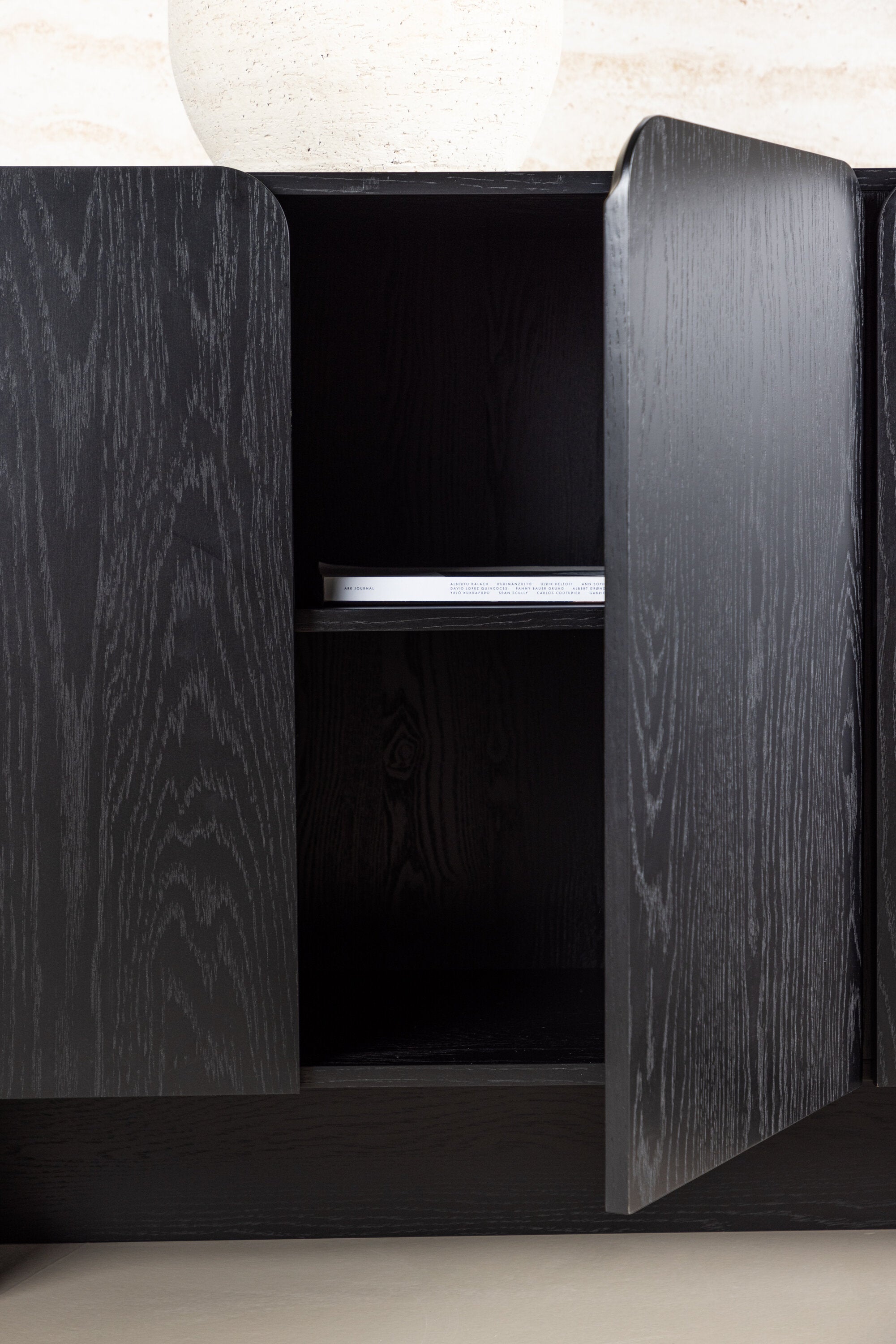 Dodejte svému domovu elegantní a funkční vylepšení se skříní Tyresö vyrobenou z elegantní černé MDF. Se svými působivými rozměry 160x45 cm nabízí tato skříňka dostatek úložného prostoru a propracovaný design, který se skvěle hodí do moderního i klasického interiéru. Černá MDF konstrukce zajišťuje robustní a odolný kus nábytku, který obstojí ve zkoušce času. Elegantní černá povrchová úprava dodává nádech luxusu a vytváří nápadný kontrast ve vašem domově. Velkorysé rozměry skříně Tyresö z ní dělají ideální volbu pro uložení nejrůznějších předmětů, od knih a ozdob až po oblečení a domácí potřeby. Skříň se vyznačuje chytrým designem s několika policemi a prostornými sekcemi, které usnadňují organizaci a udržování pořádku. Hladká dvířka se hladce otevírají a jsou opatřena decentními úchyty, které ladí s minimalistickou estetikou skříně. Pevná MDF konstrukce poskytuje stabilní a spolehlivý kus nábytku, ze kterého se můžete těšit po mnoho let. Skříň Tyresö je nejen praktickým úložným řešením, ale také stylovým doplňkem vašeho domova. Skvěle se hodí do obývacího pokoje, ložnice, chodby nebo kanceláře a rychle se stane ústřední součástí vašeho interiéru. Černý povrch se snadno čistí a udržuje, takže skříň vždy vypadá úhledně a udržovaně. Vyberte si skříň Tyresö a spojte moderní design s vysokou funkčností. Nechte tento elegantní a praktický kus nábytku, aby vám pomohl vytvořit uspořádané a krásné prostředí ve vaší domácnosti, kde styl a pohodlí jdou ruku v ruce.