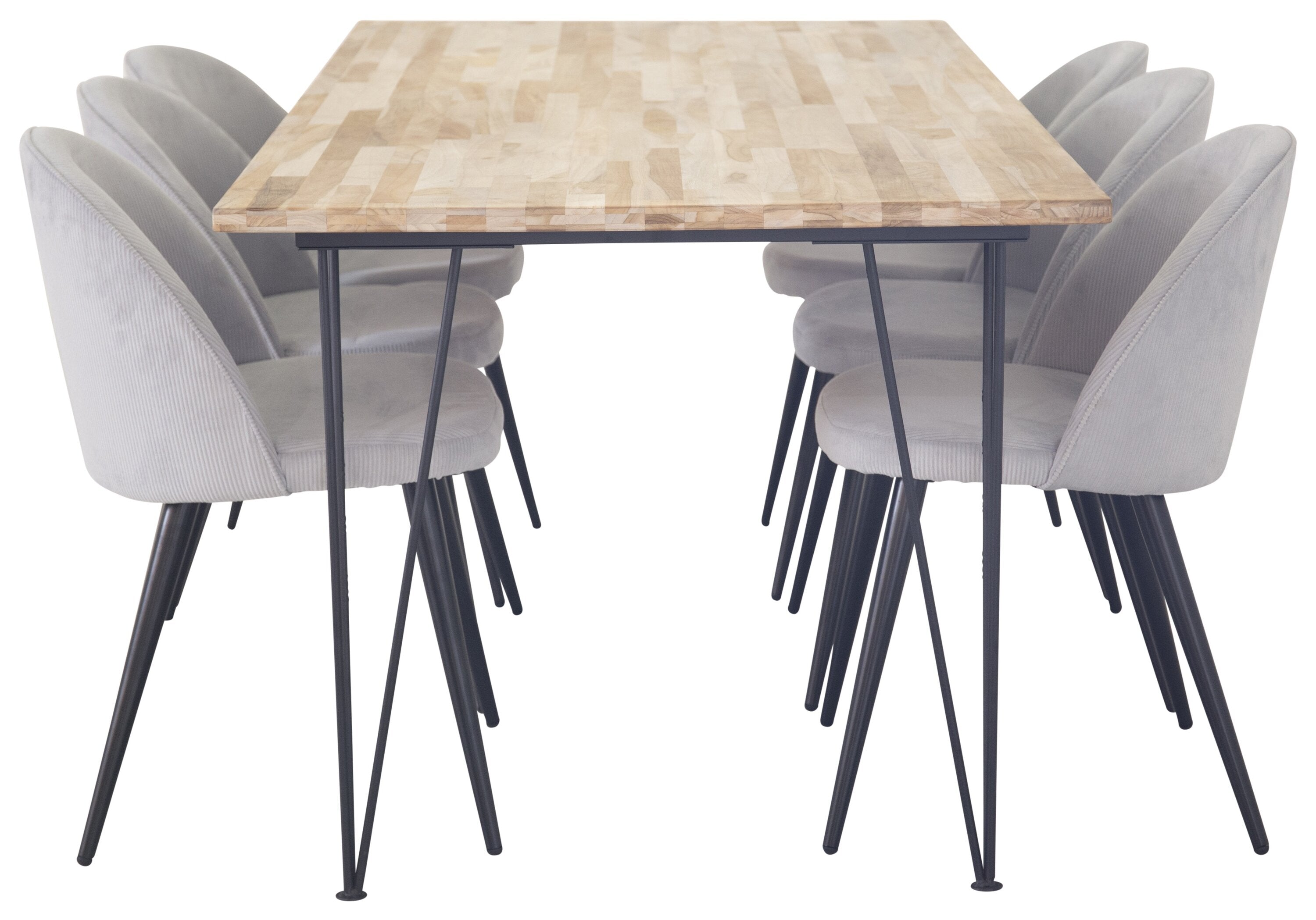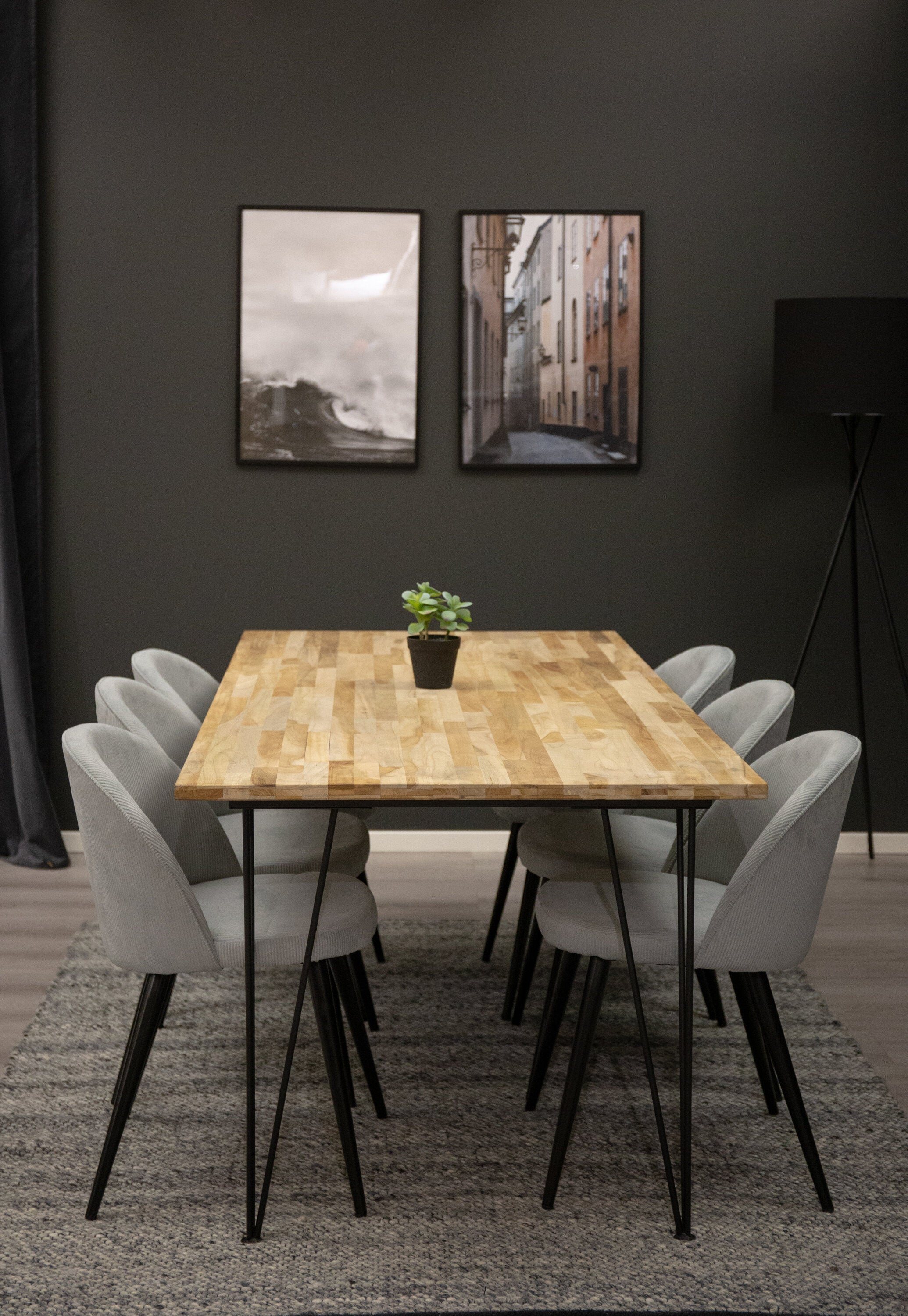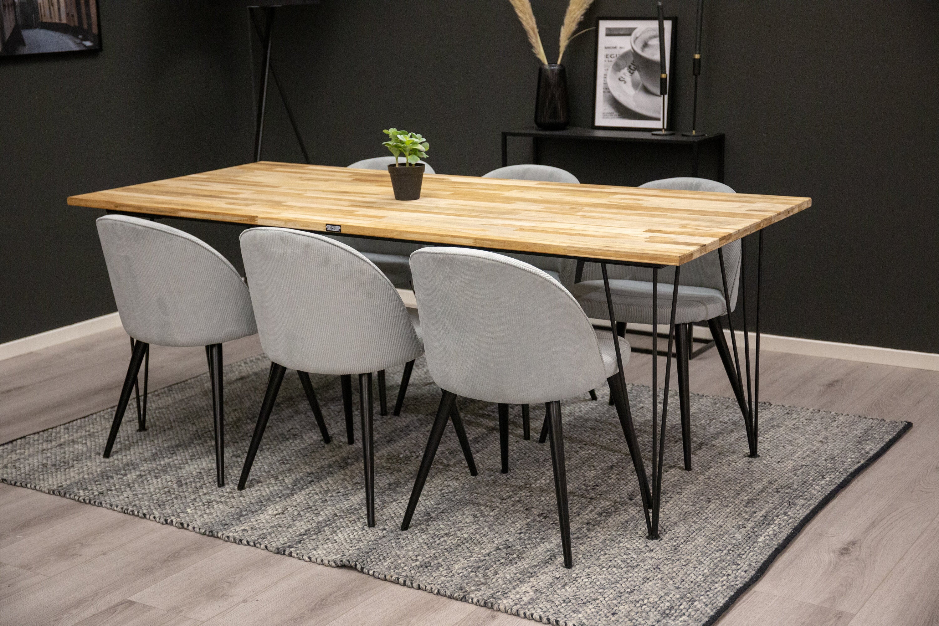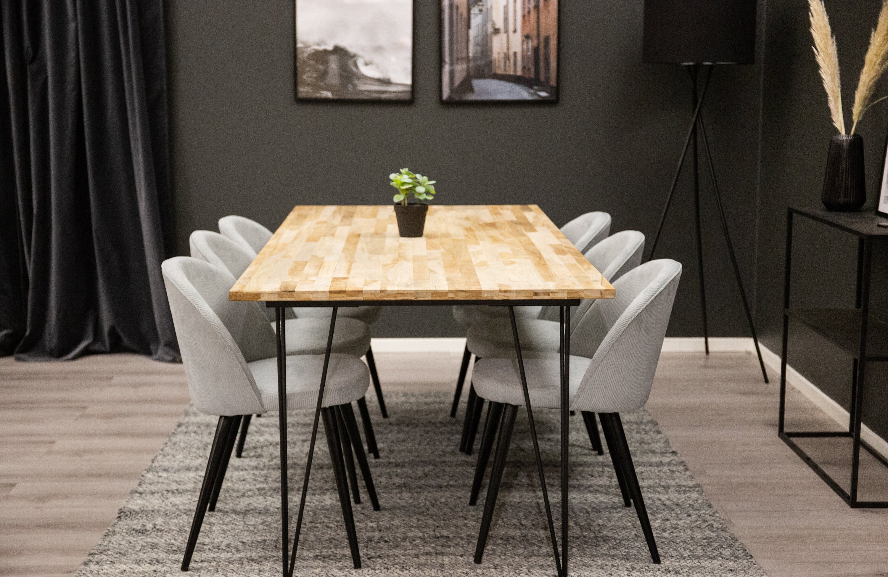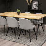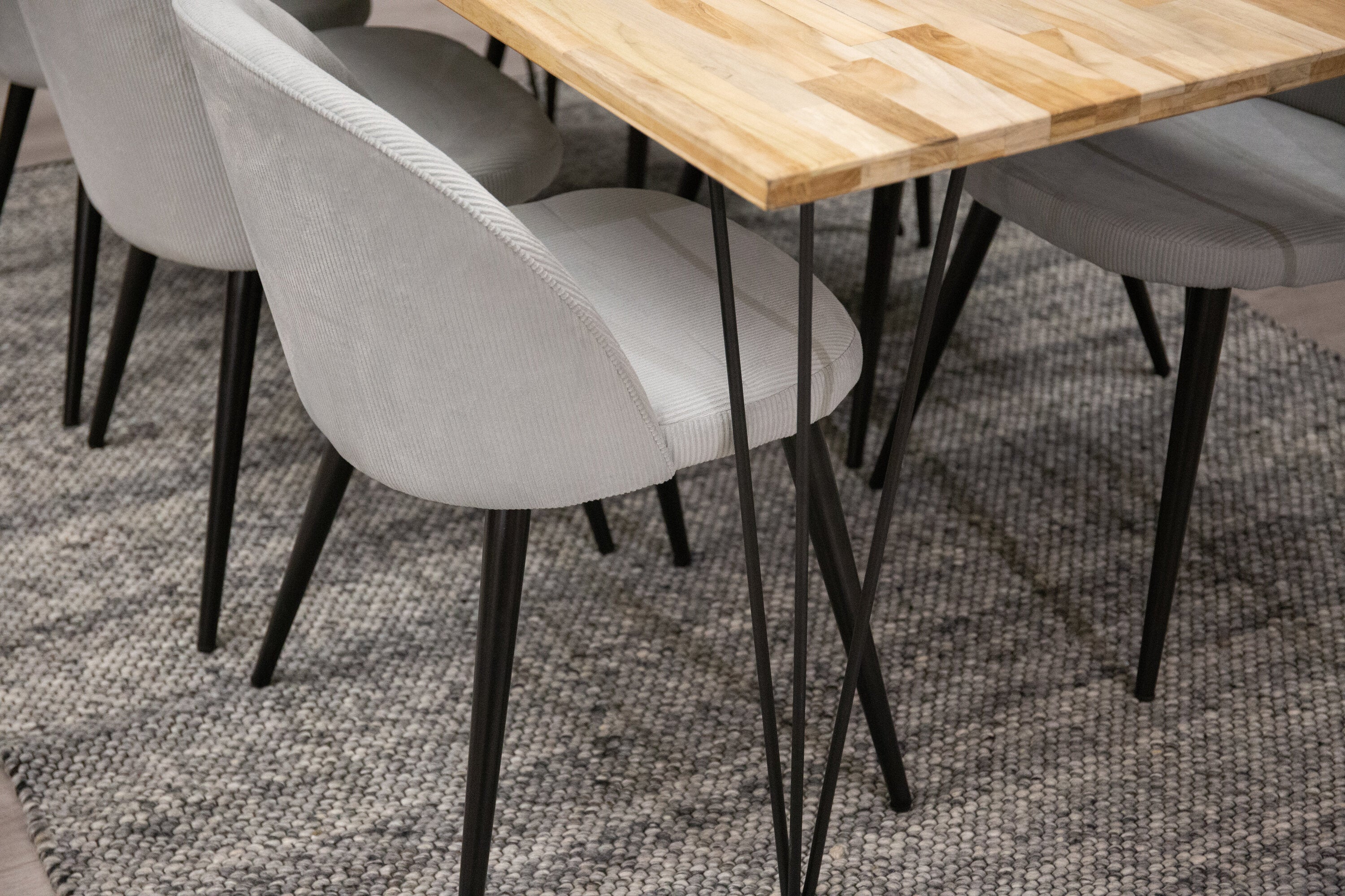 Stůl Bali - 200*90 cm - Teak / Černá - Sametová jídelní židle Manšestr - Světle šedá / Černá 6