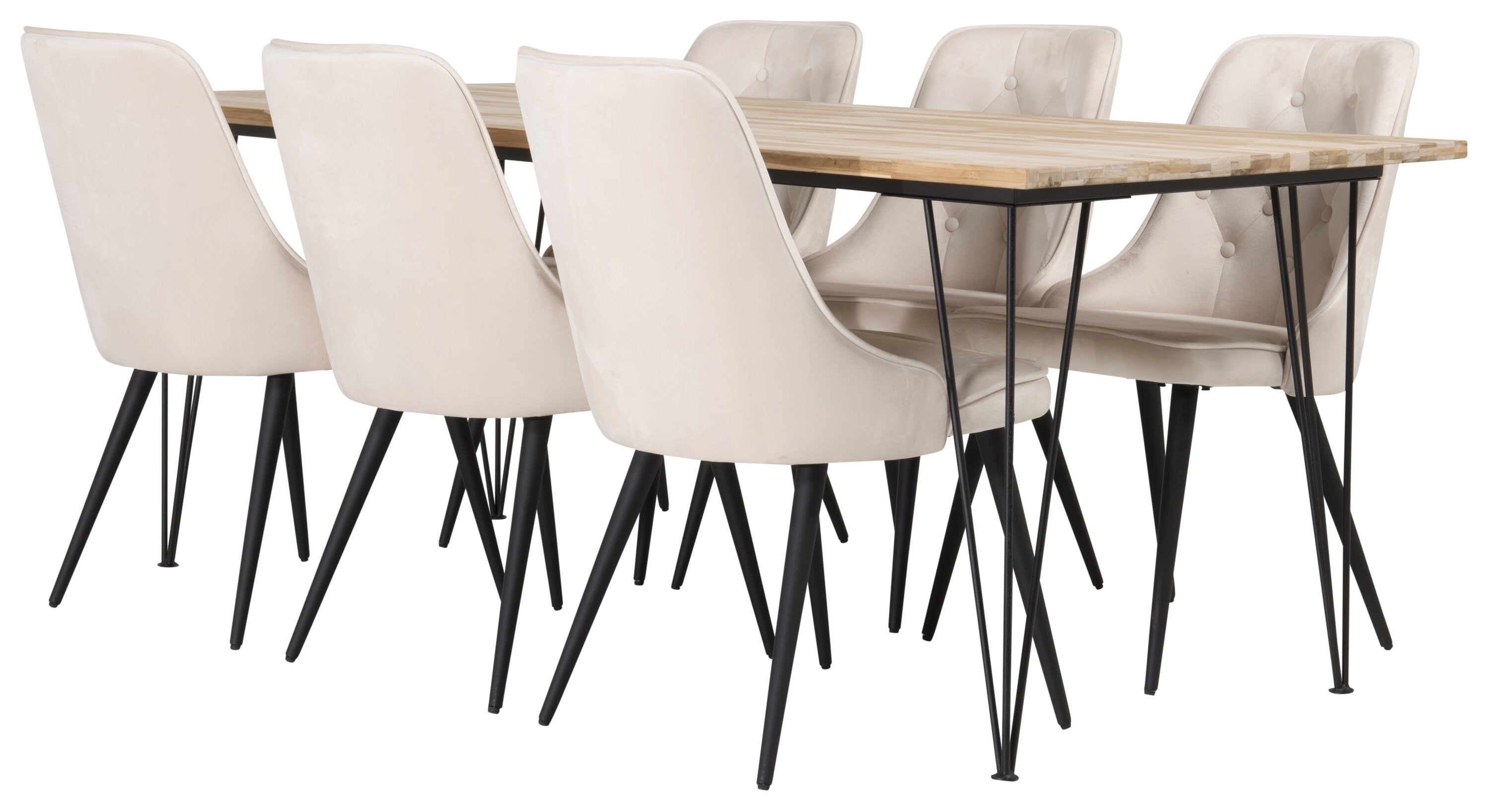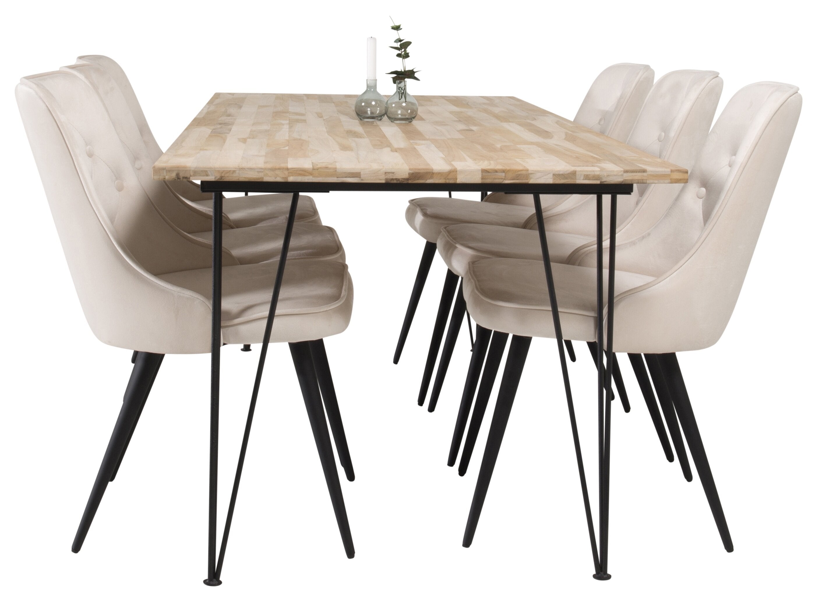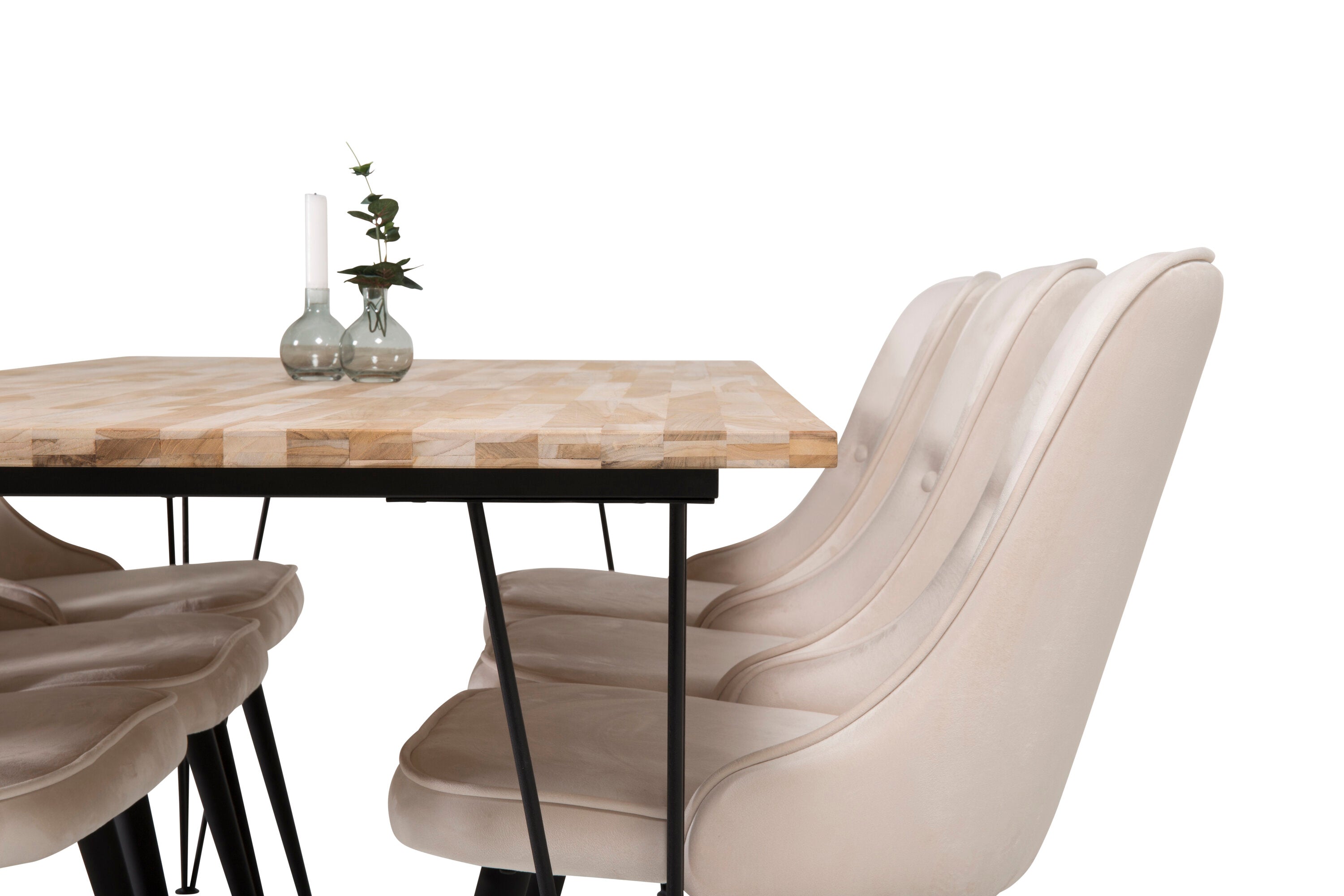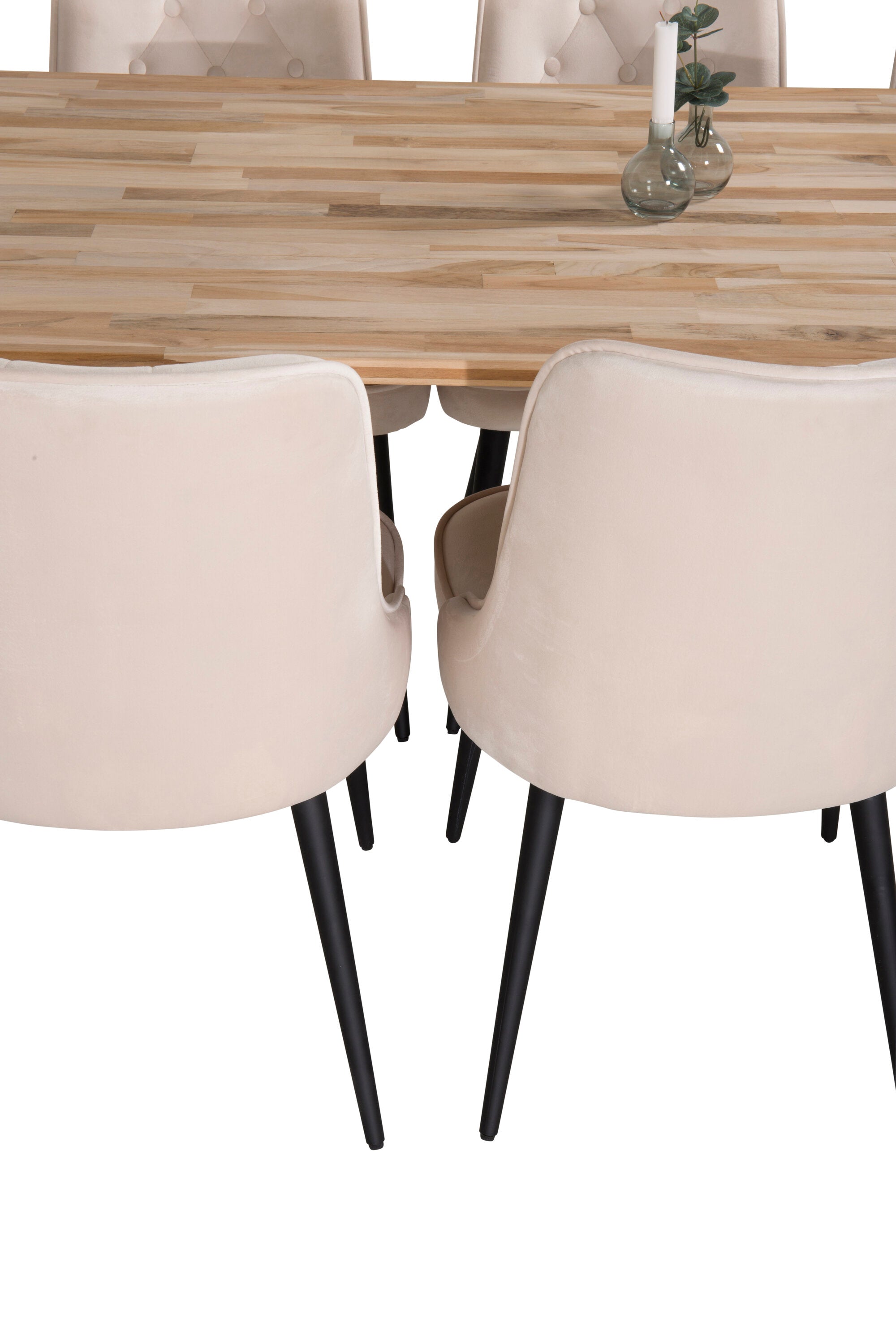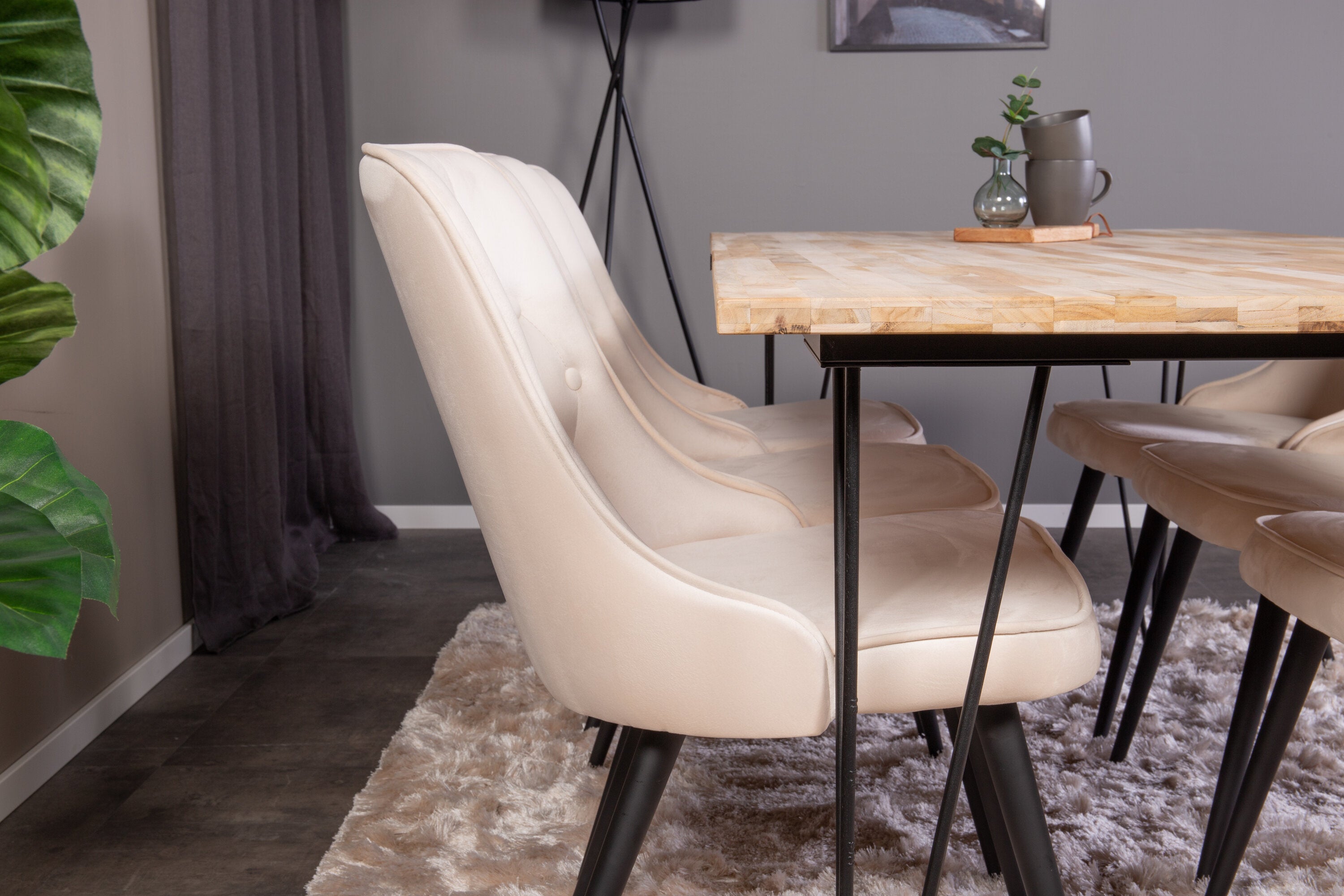 Stůl Bali - 200*90cm - Teak /Černá - Velvet Deluxe Jídelní židle - Černé nohy / Béžový samet 6