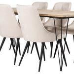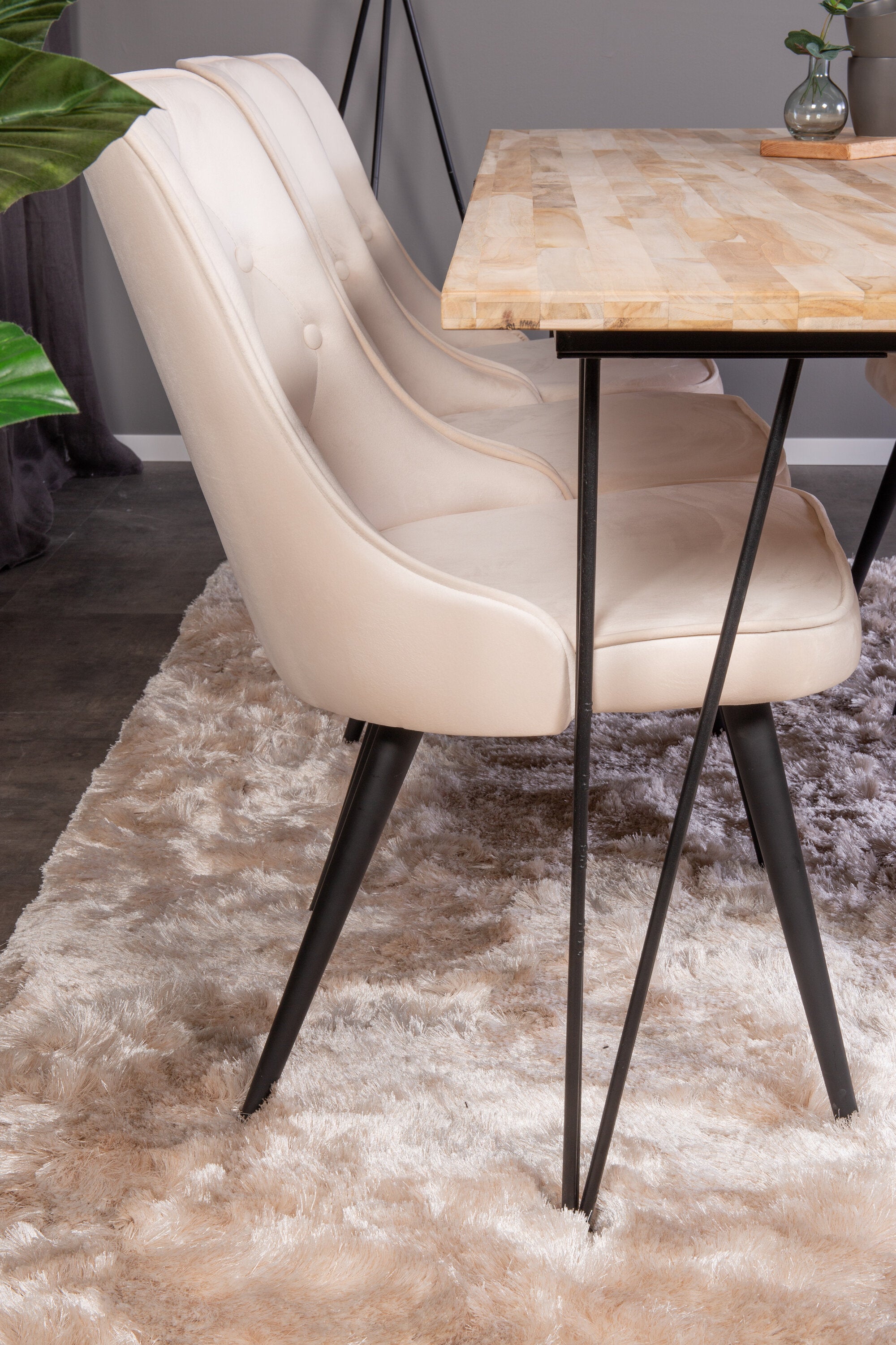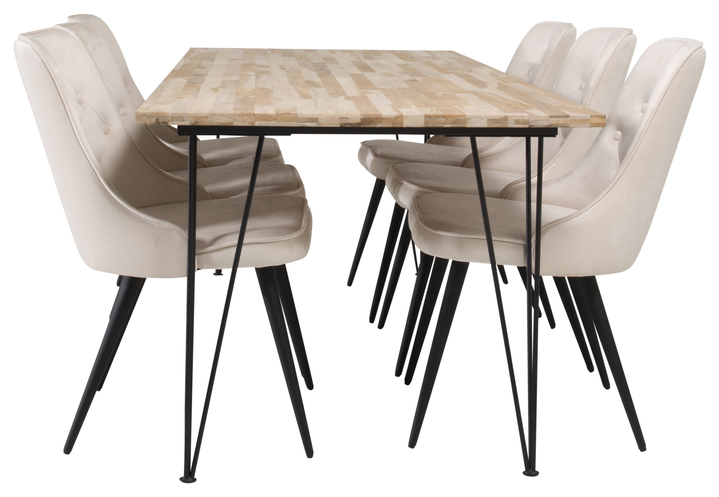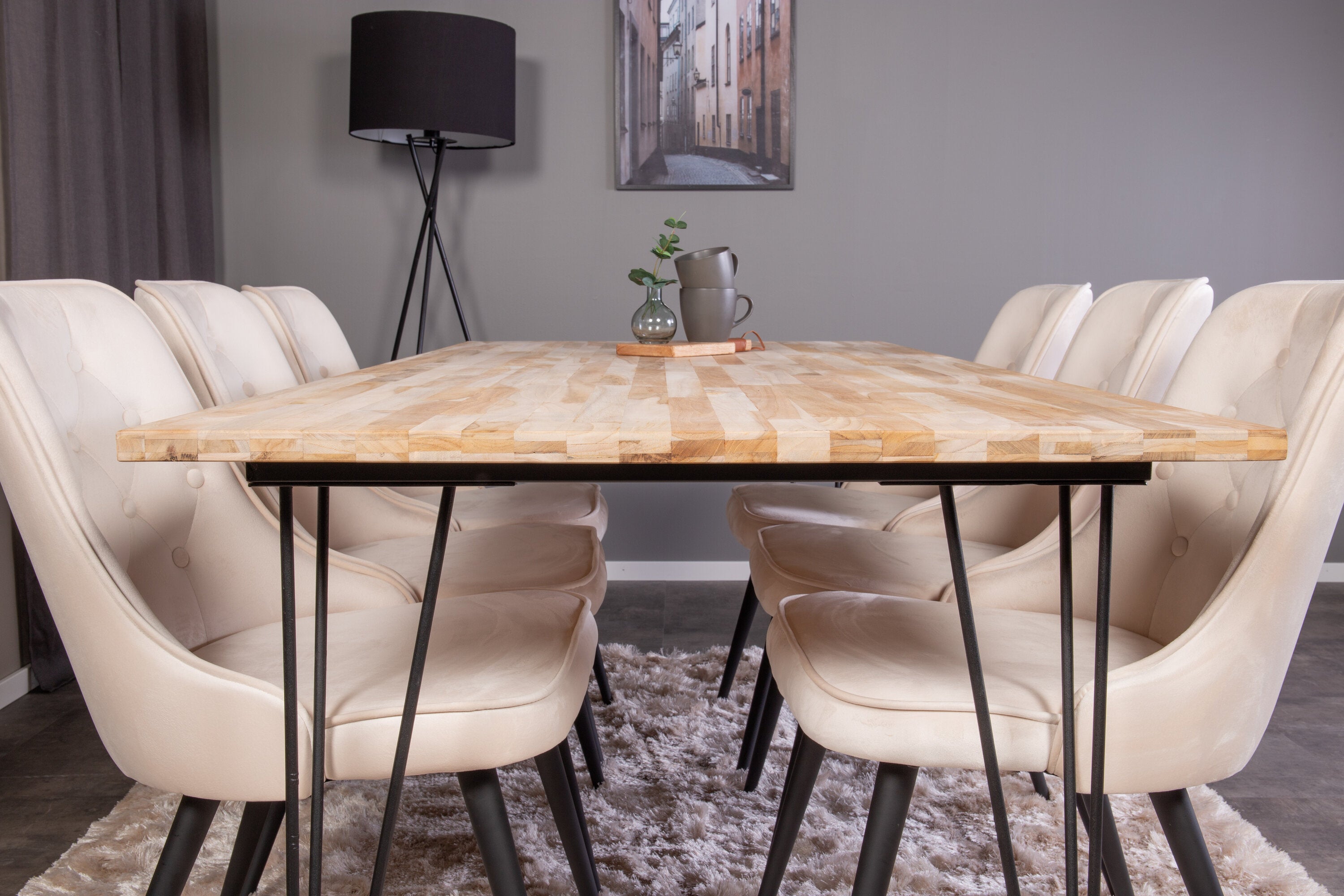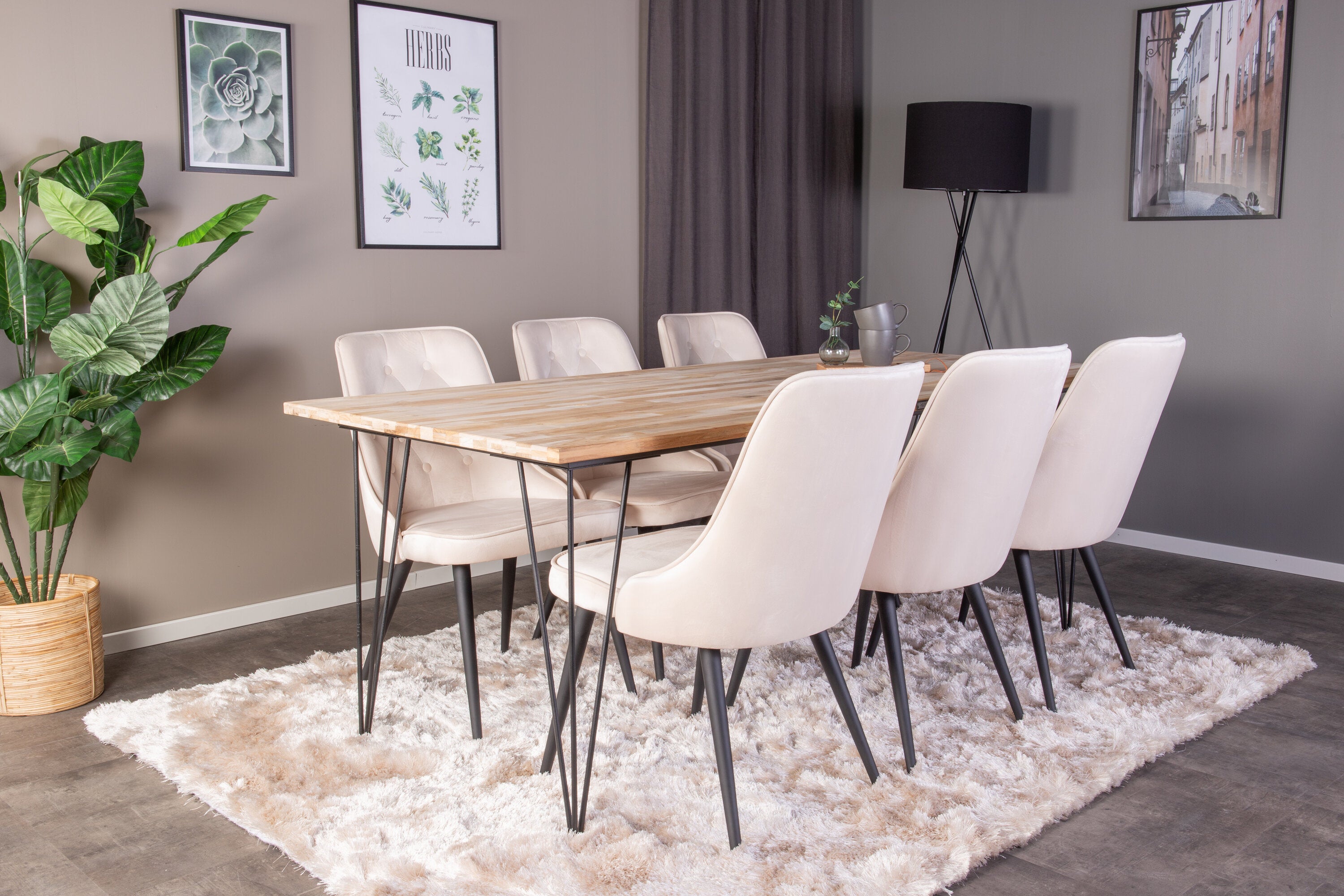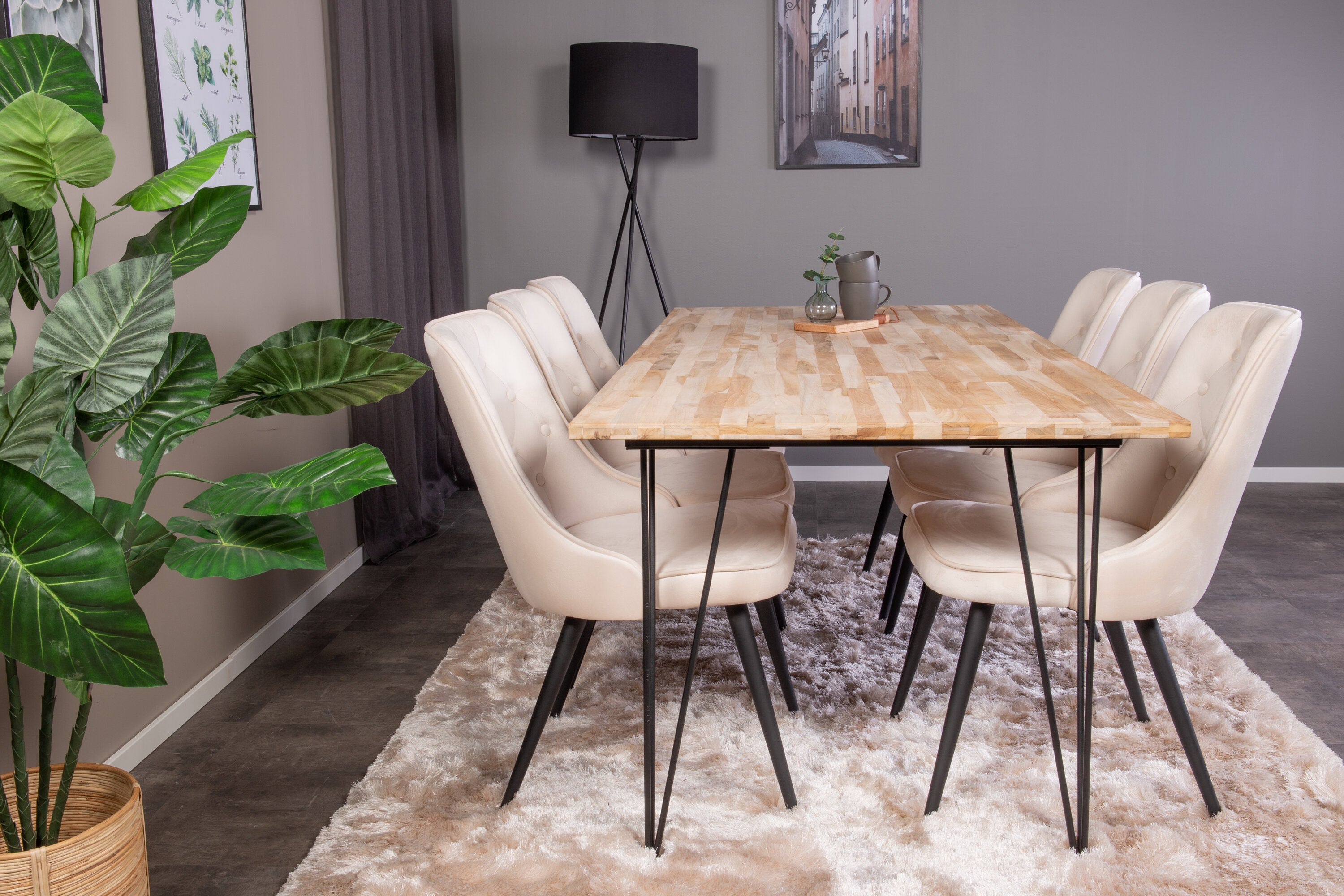 Stůl Bali - 200*90cm - Teak /Černá - Velvet Deluxe Jídelní židle - Černé nohy / Béžový samet 6