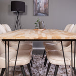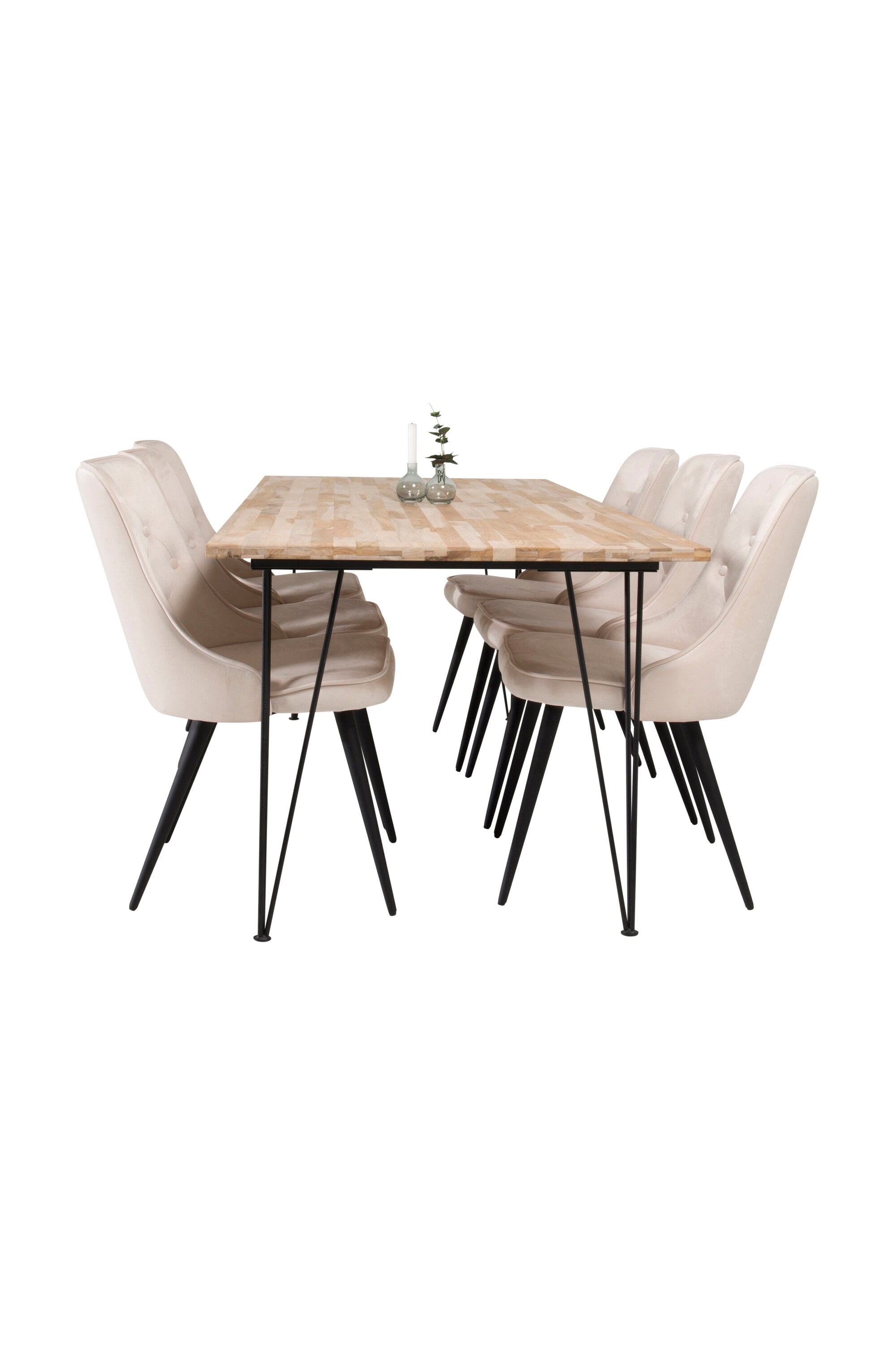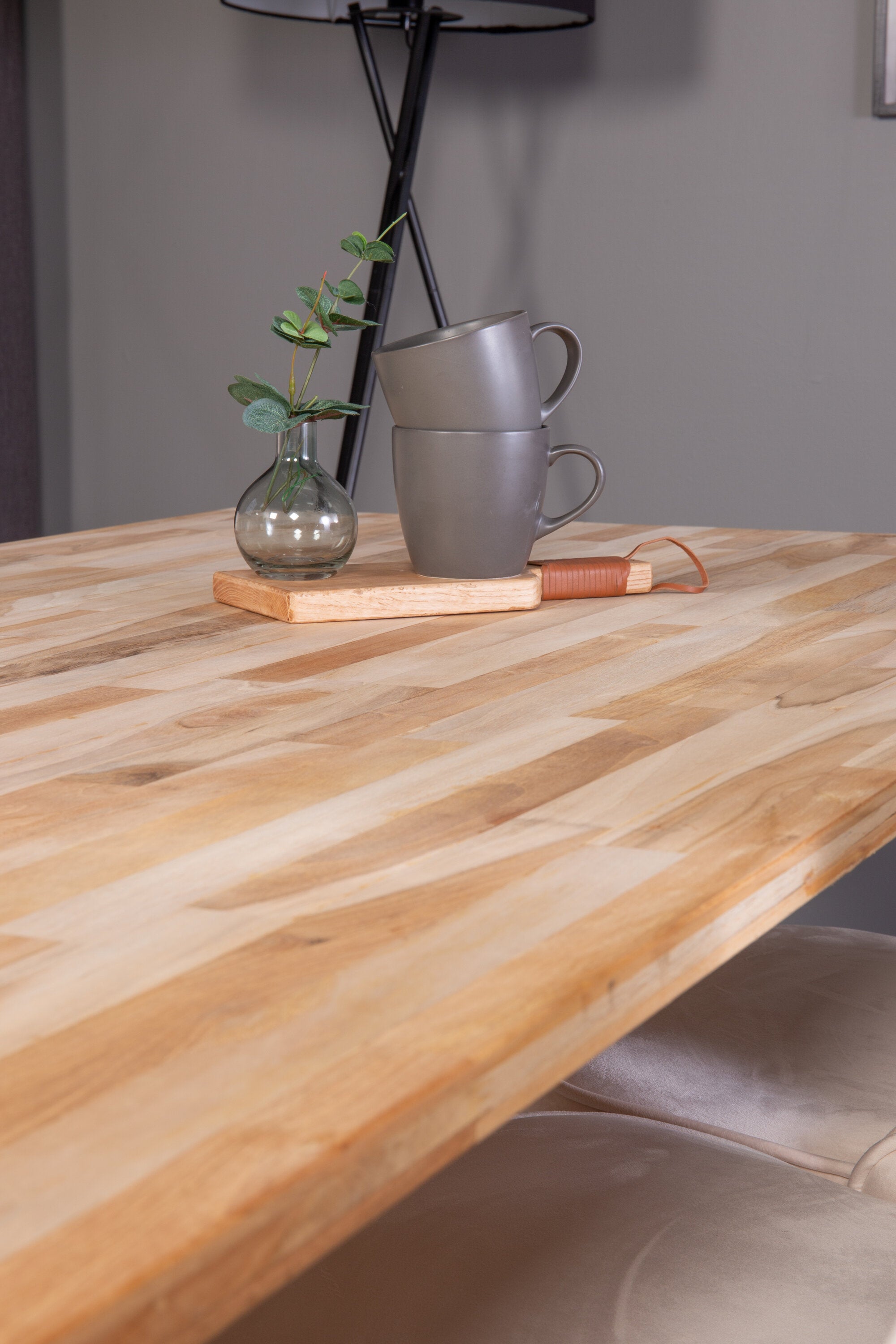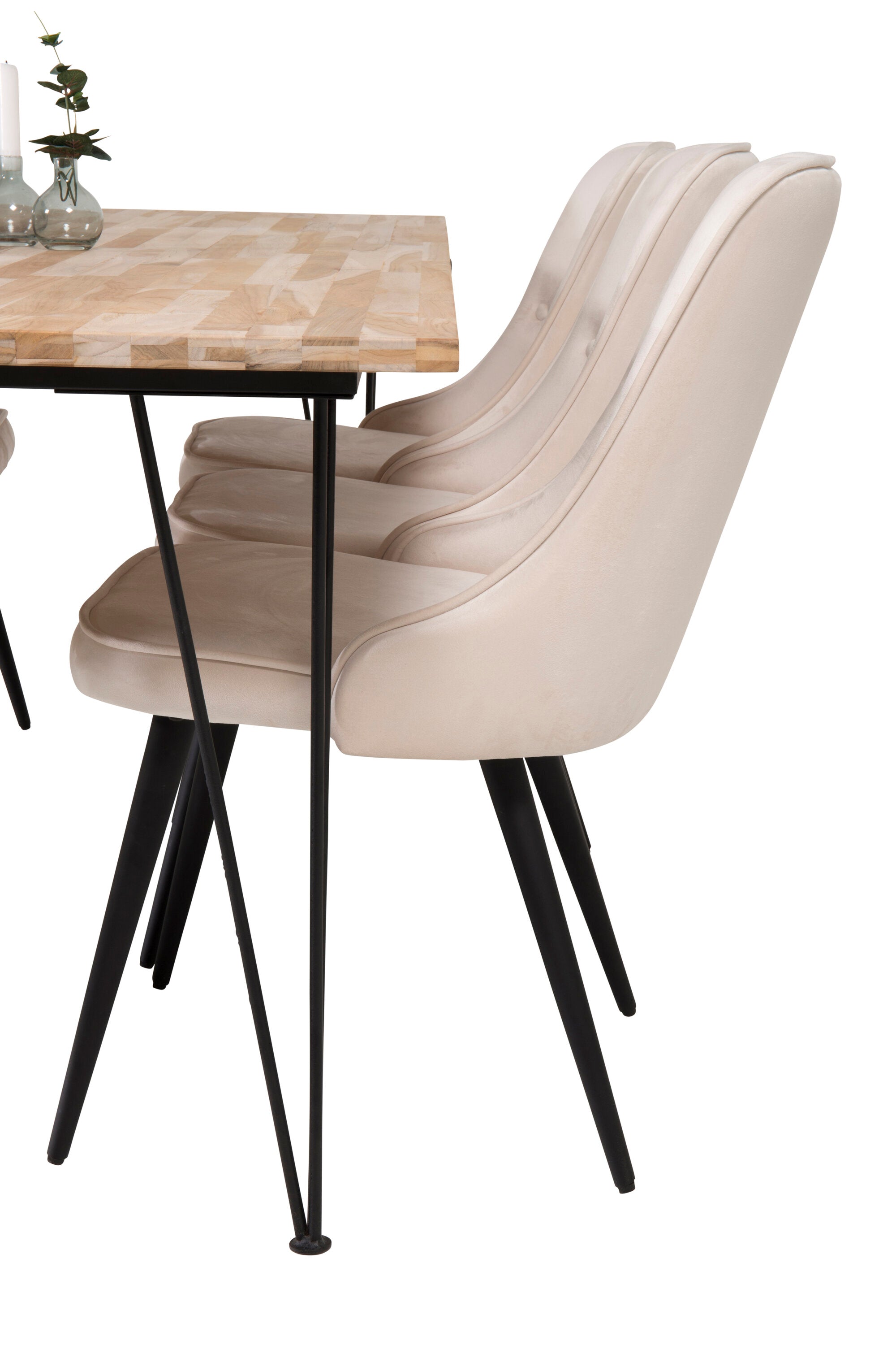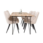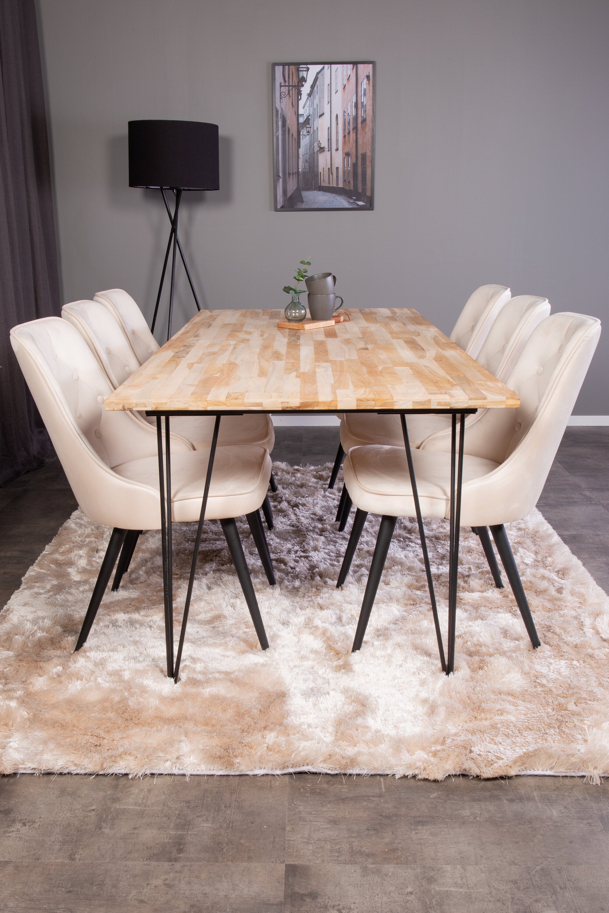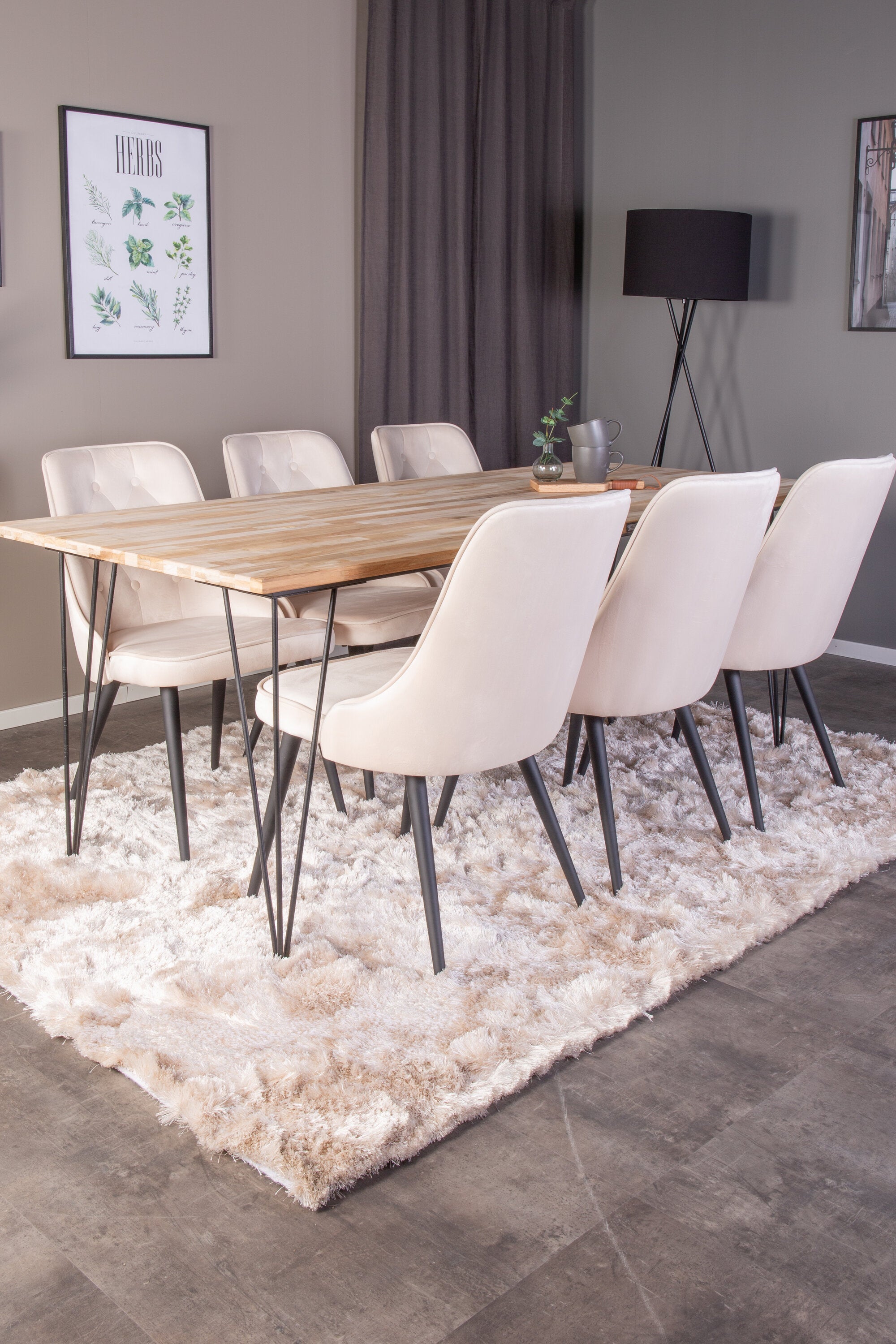 Stůl Bali - 200*90cm - Teak /Černá - Velvet Deluxe Jídelní židle - Černé nohy / Béžový samet 6