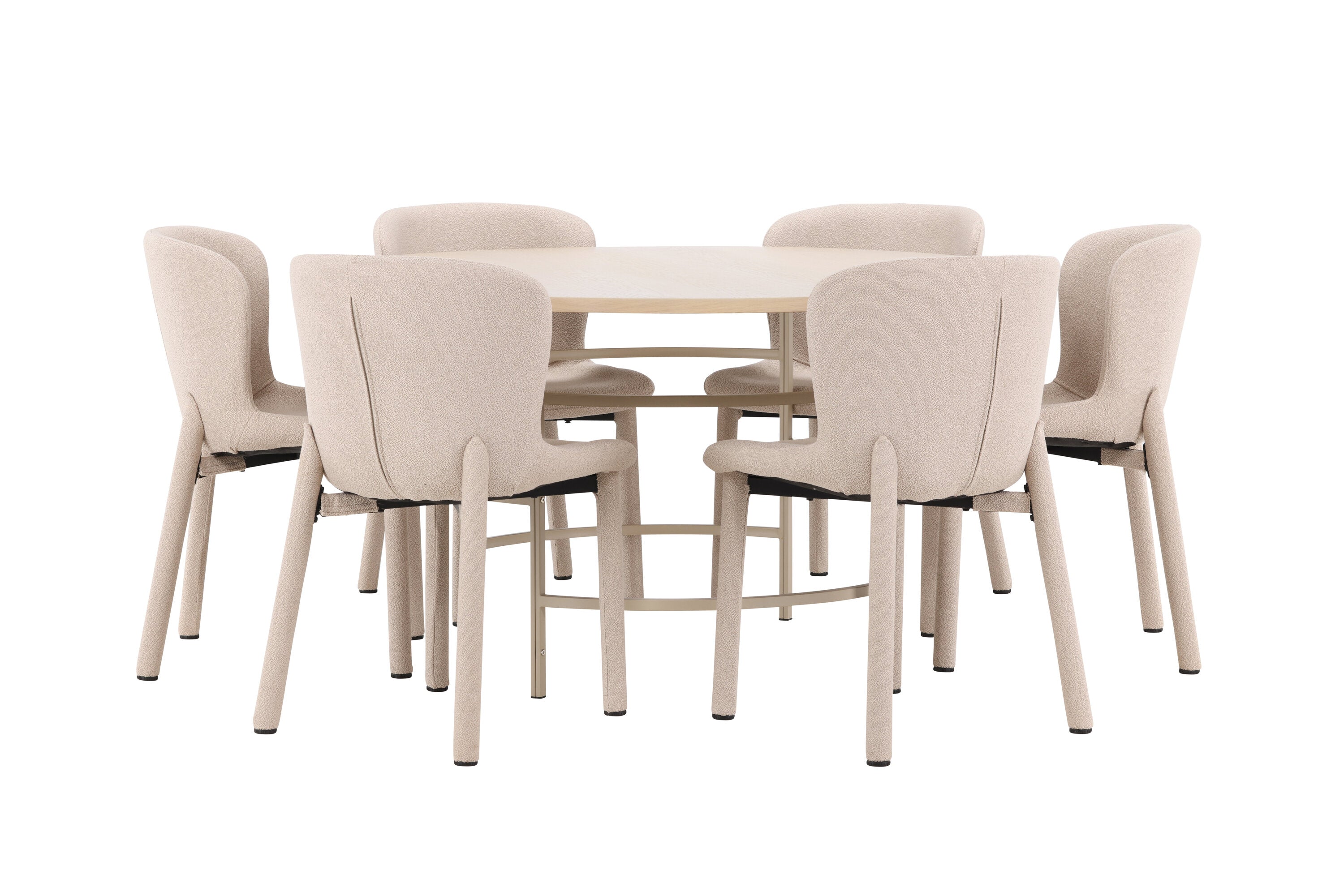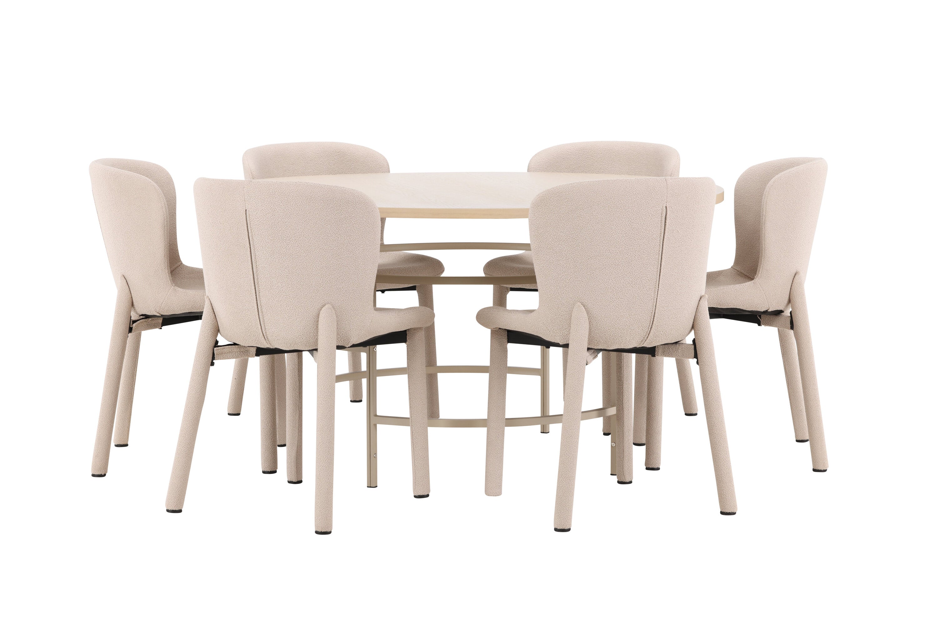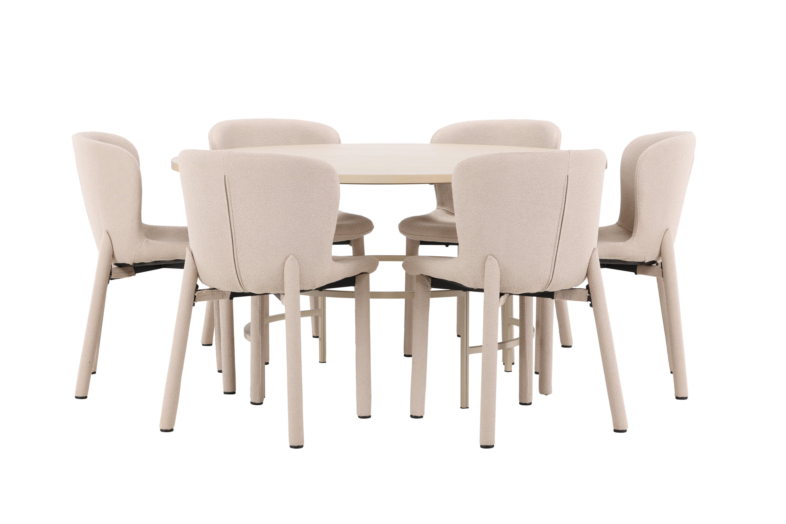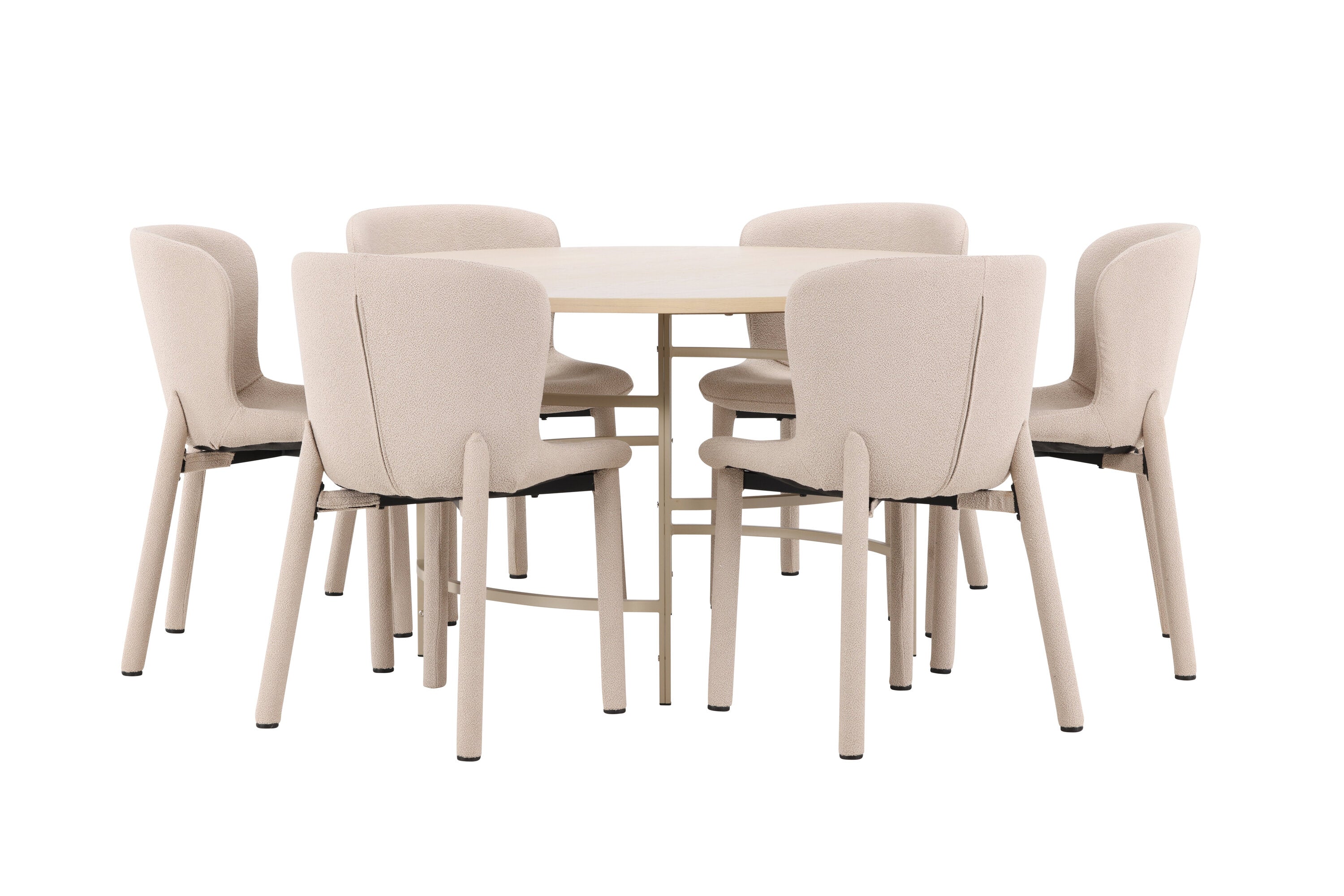 Stůl Copenhagen – bílý/béžový se 6 židlemi Astoria – béžový
