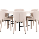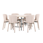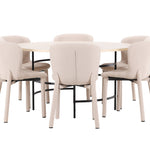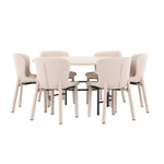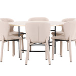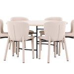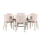 Stůl Copenhagen – bílý/černý se 6 židlemi Astoria – béžový