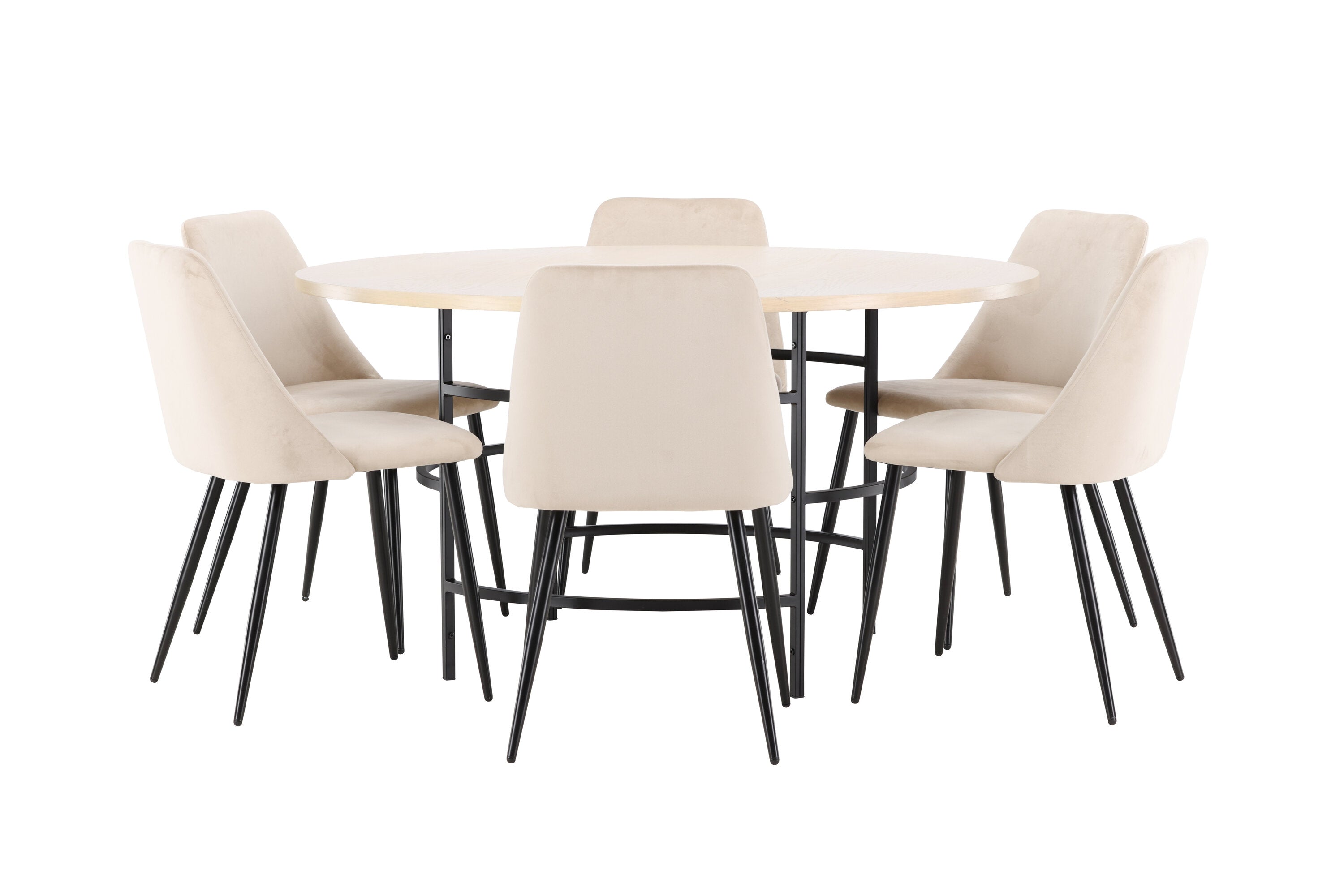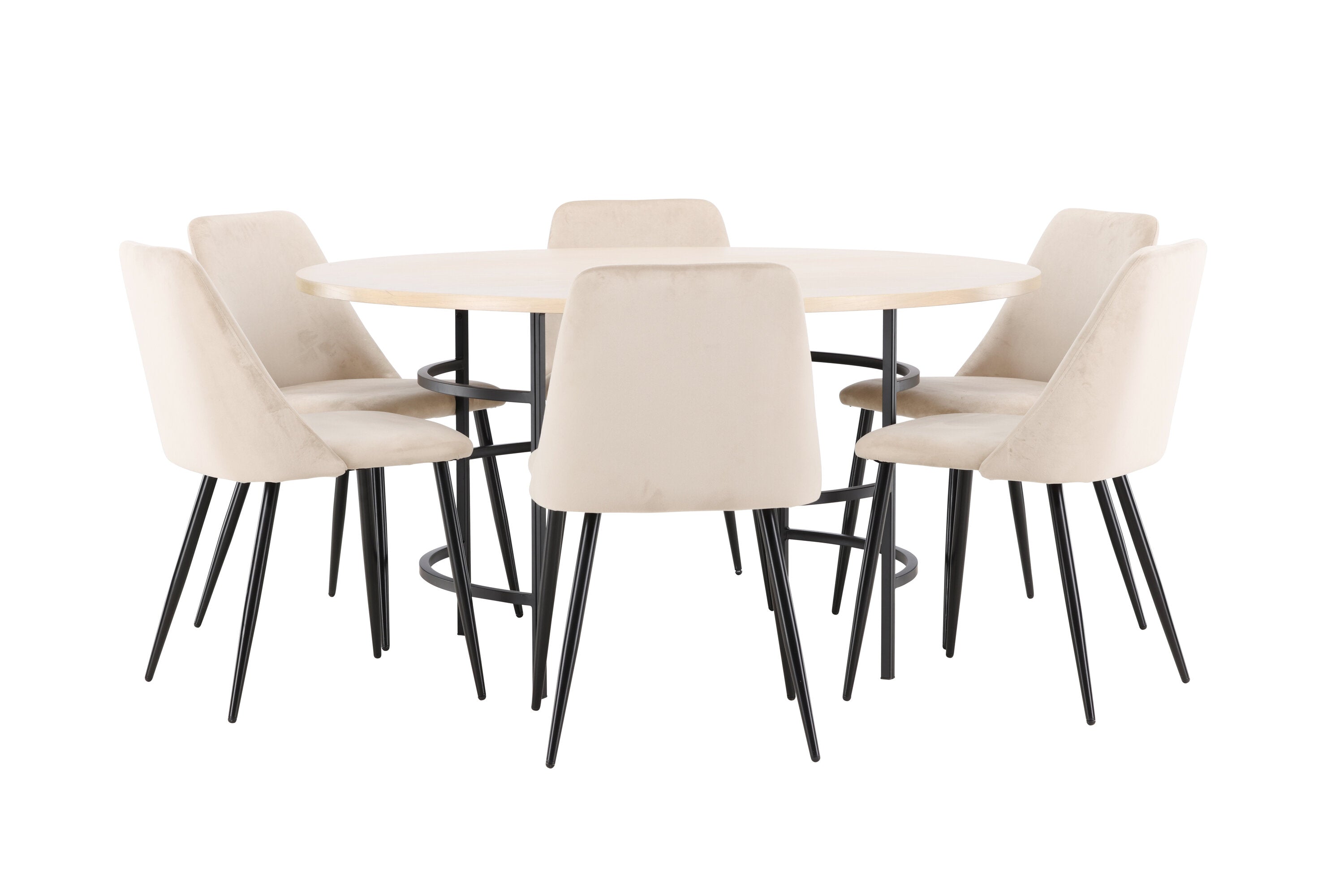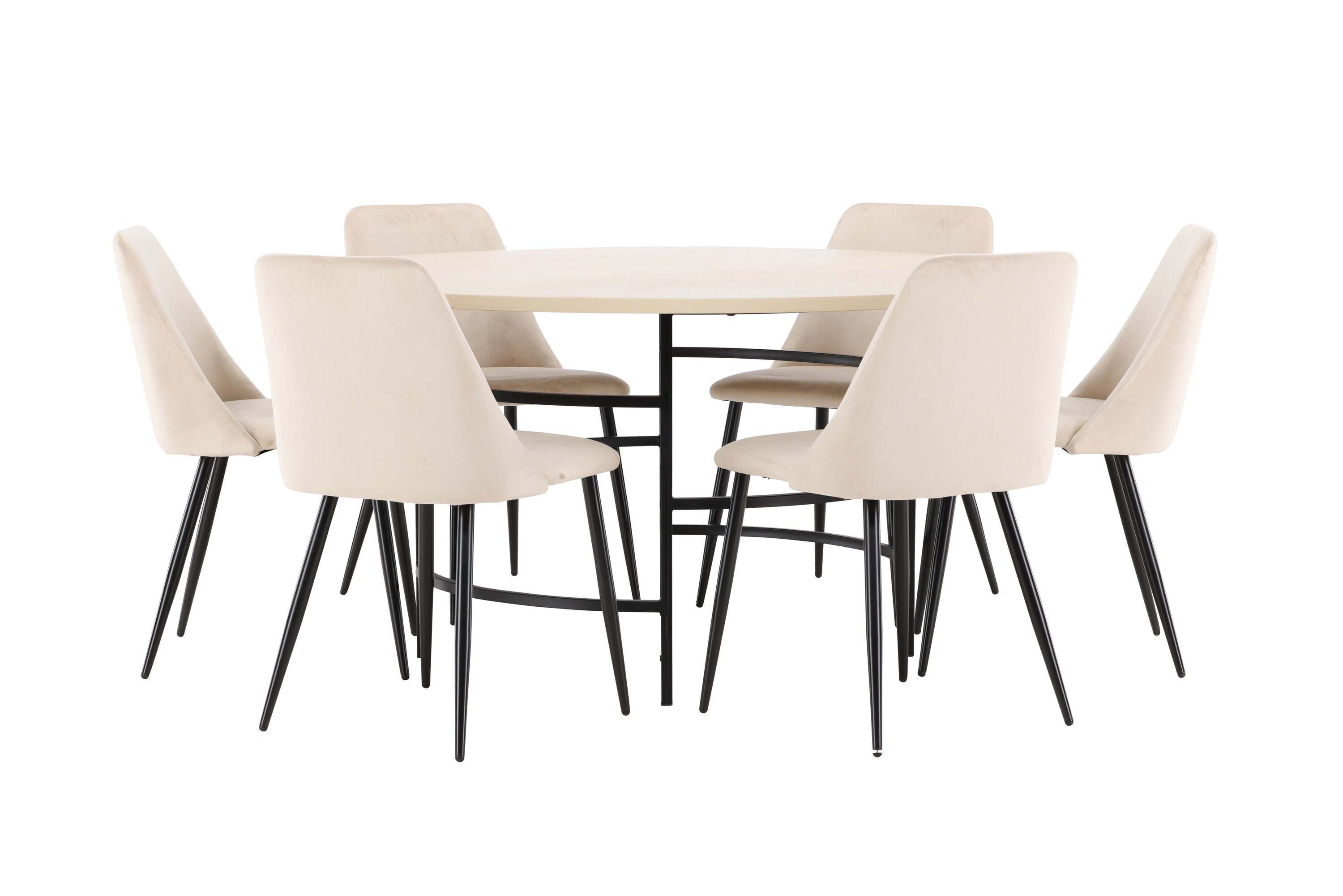 Stůl Copenhagen - Whitewash/Black s 6 noční židlí - Black / Béžová