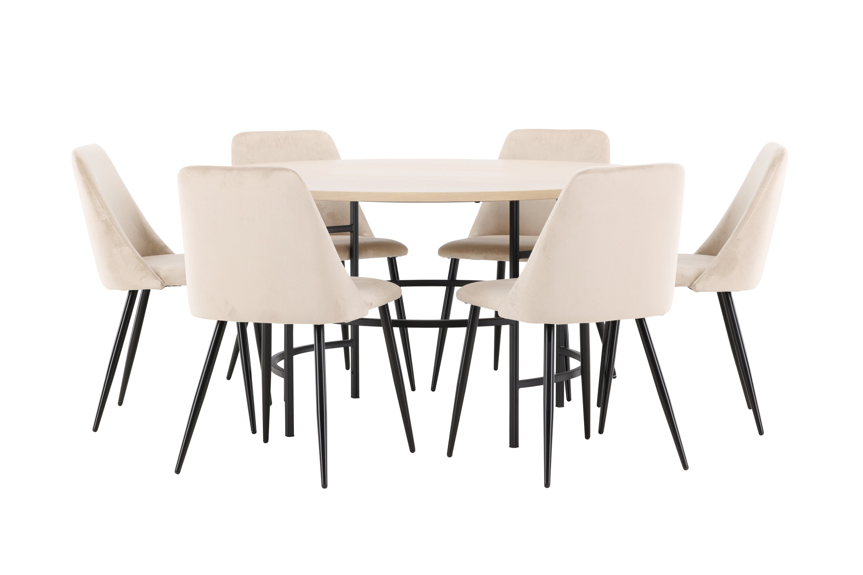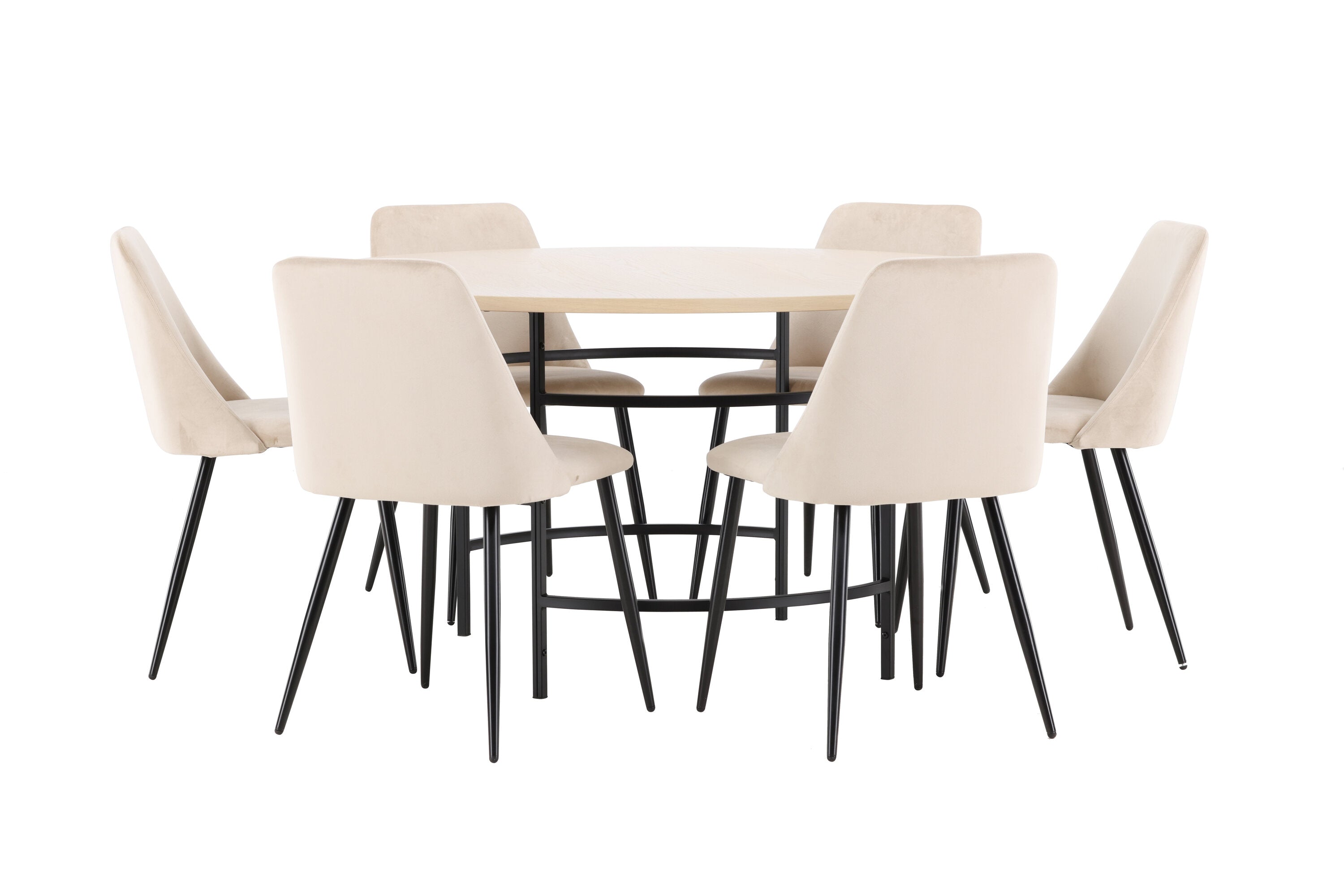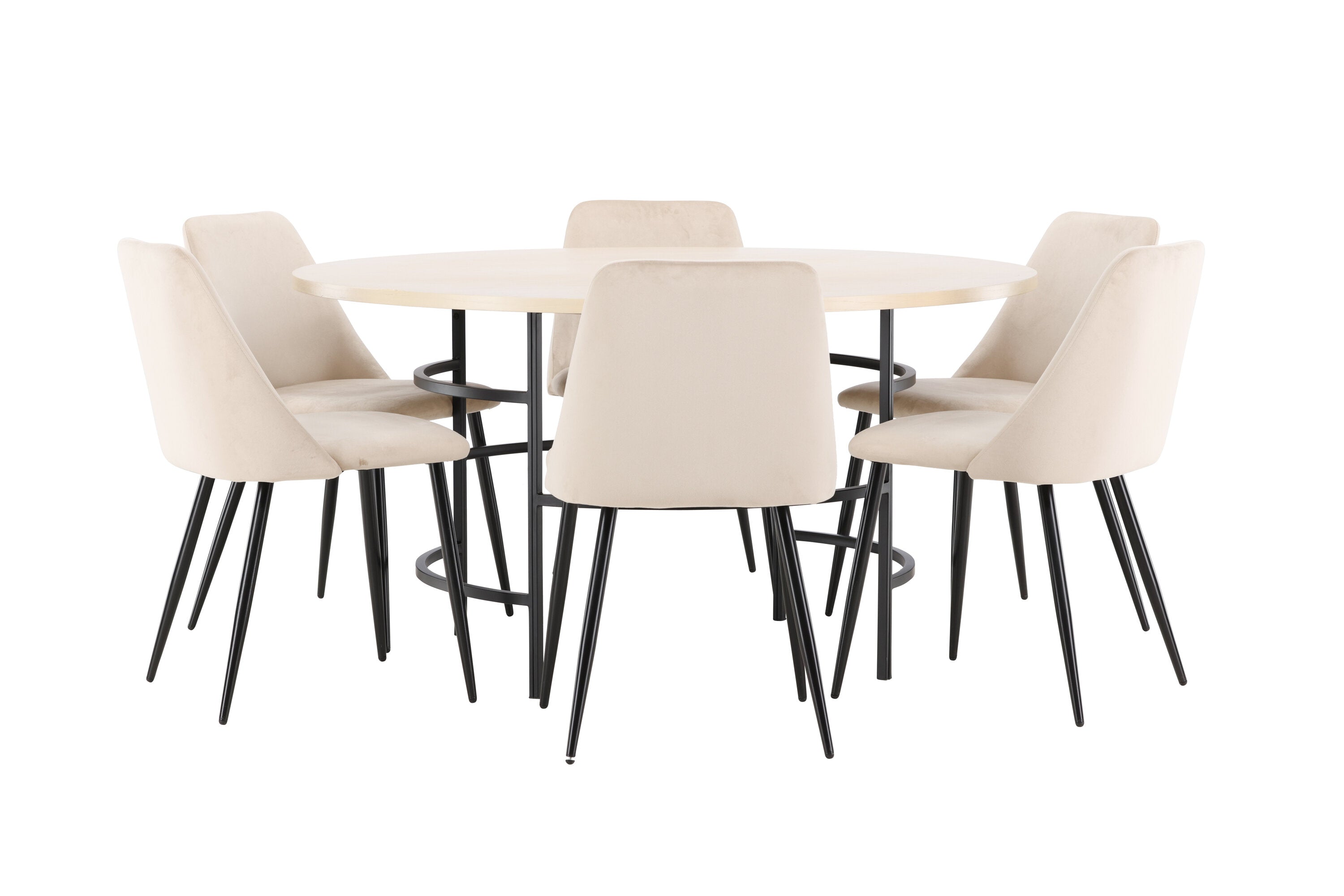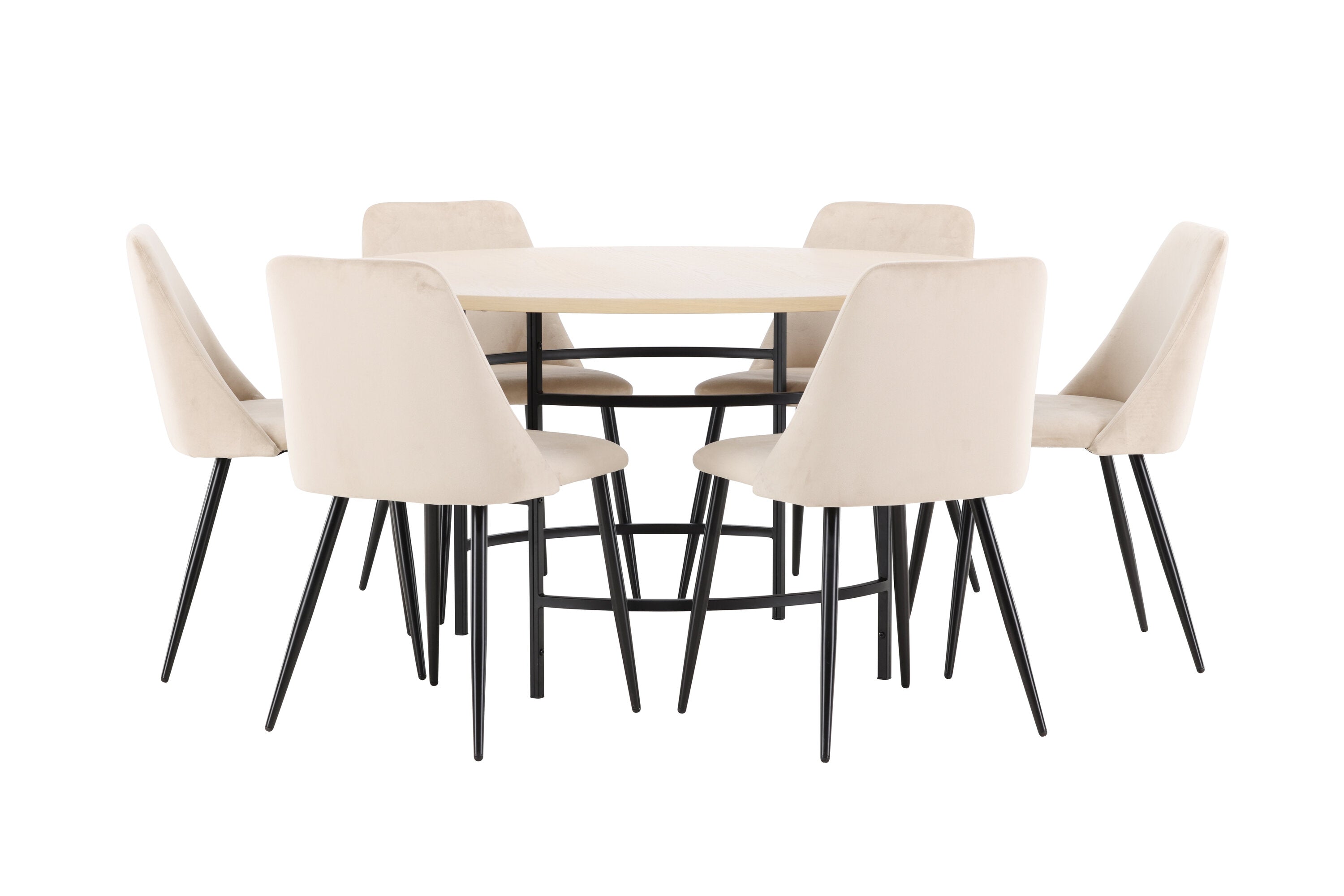 Stůl Copenhagen - Whitewash/Black s 6 noční židlí - Black / Béžová
