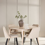 Jídelní stůl Flora je skutečným vizuálním potěšením se svým kulatým tvarem a krásnou bělenou dýhou. S průměrem 120 cm poskytuje dostatek prostoru pro každodenní stolování i slavnostní příležitosti a zároveň dodává vaší jídelně světlou a vzdušnou atmosféru. Jemný, neutrální barevný tón a přírodní kresba dřeva propůjčují stolu sofistikovanou, ale zároveň příjemnou estetiku, která mu umožňuje bezproblémově zapadnout do moderního i klasického interiéru. Flora je nejen funkční, ale také dekorativní středobod, který podporuje konverzaci a spojení kolem stolu.