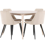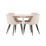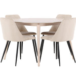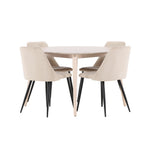 Stůl Flora a židle Night společně tvoří harmonický a funkční jídelní set, který vylepší váš interiér a vytvoří teplé a příjemné prostředí pro všechna jídla. Nechte tento soubor stát se srdcem vašeho domova, kde se styl a pohodlí hladce propojí.