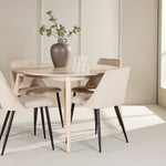 Proměňte svůj jídelní kout pomocí stylové kombinace jídelního stolu Flora a jídelních židlí Night, kde se nadčasová elegance snoubí s moderním designem a vytváří příjemnou a harmonickou atmosféru. Toto spojení sofistikovaných materiálů a funkčnosti dodá vašemu domovu teplo a styl.