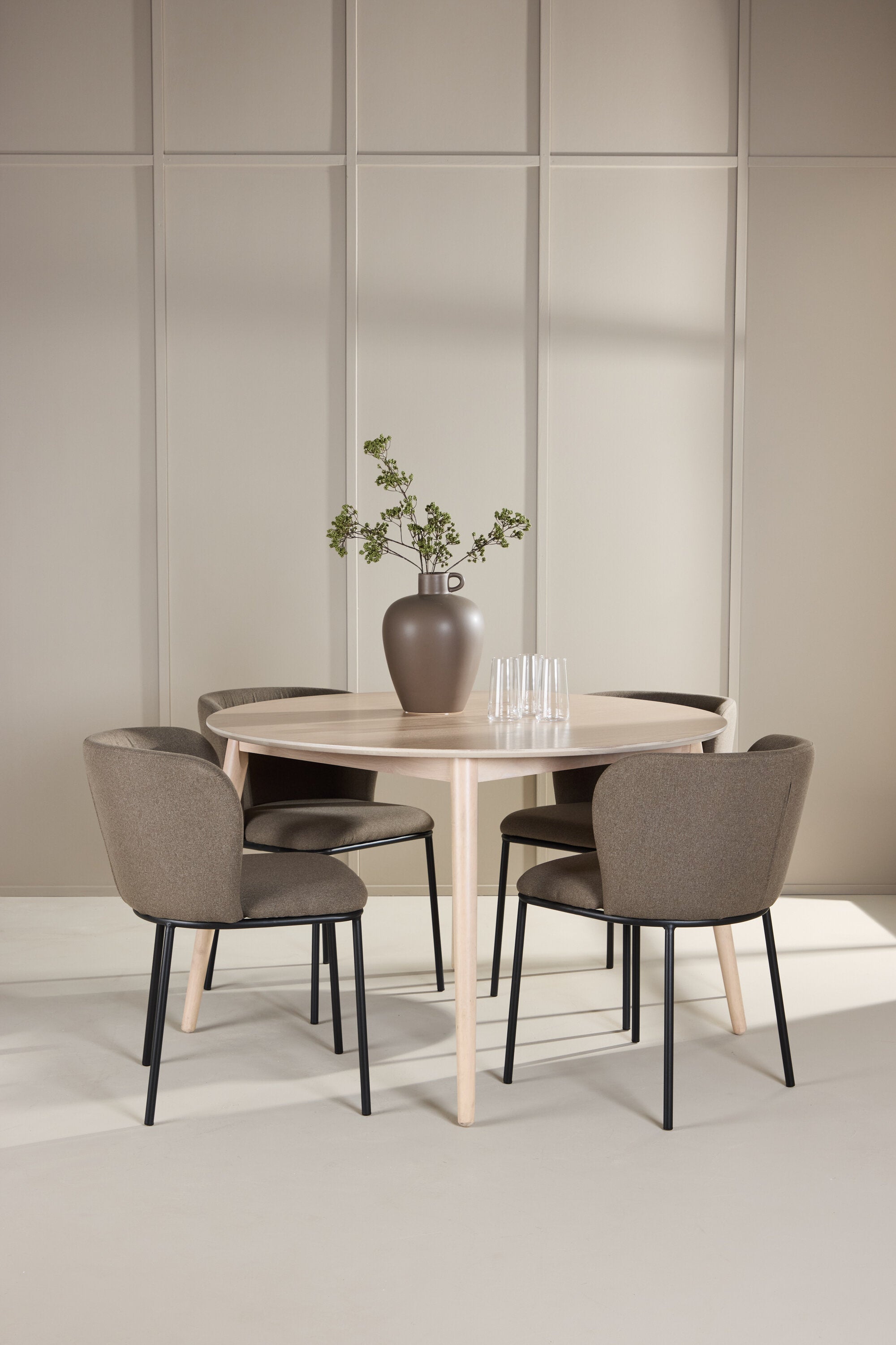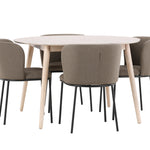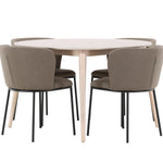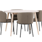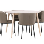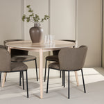 Jídelní stůl Flora je jasným středobodem vaší jídelny. Stůl je vyroben z bělené dýhy a nabízí jemný a sofistikovaný vzhled s přirozenou kresbou a texturou dřeva. Kulatý tvar a průměr 120 cm vytvářejí vzdušný a útulný pocit a jemný neutrální barevný tón umožňuje Flora snadno zapadnout do různých stylů interiéru. Flora je víc než jen stůl; je to příjemný prostor pro setkávání, kde každý může přirozeně komunikovat.