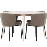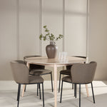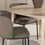 Jídelní židle Edina doplňují stůl svým elegantním a pohodlným designem. Židle, čalouněné krásnou hnědou lněnou látkou, dodávají rustikální a přírodní nádech, který pozvedne celý váš jídelní kout. Teplý hnědý tón a přírodní lněné vlákno poskytují měkký a příjemný povrch k sezení, zatímco zemitý odstín dodává sofistikovanou eleganci, která se dokonale hodí k neutrálnímu provedení stolu. Židle Edina jsou ergonomicky navrženy tak, aby poskytovaly vynikající oporu během dlouhých večeří, a jejich robustní konstrukce zajišťuje odolnost a pohodlí po mnoho let.
