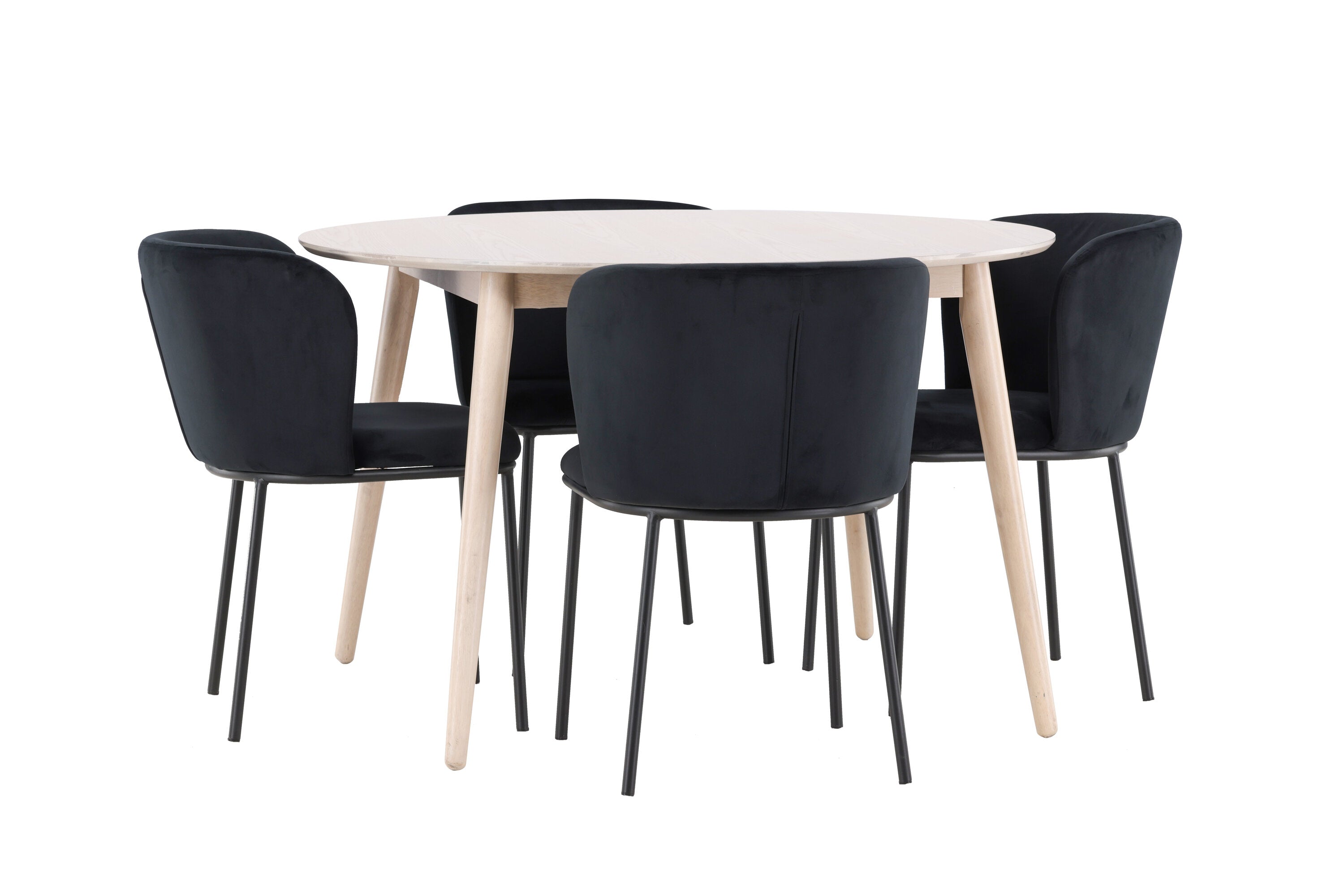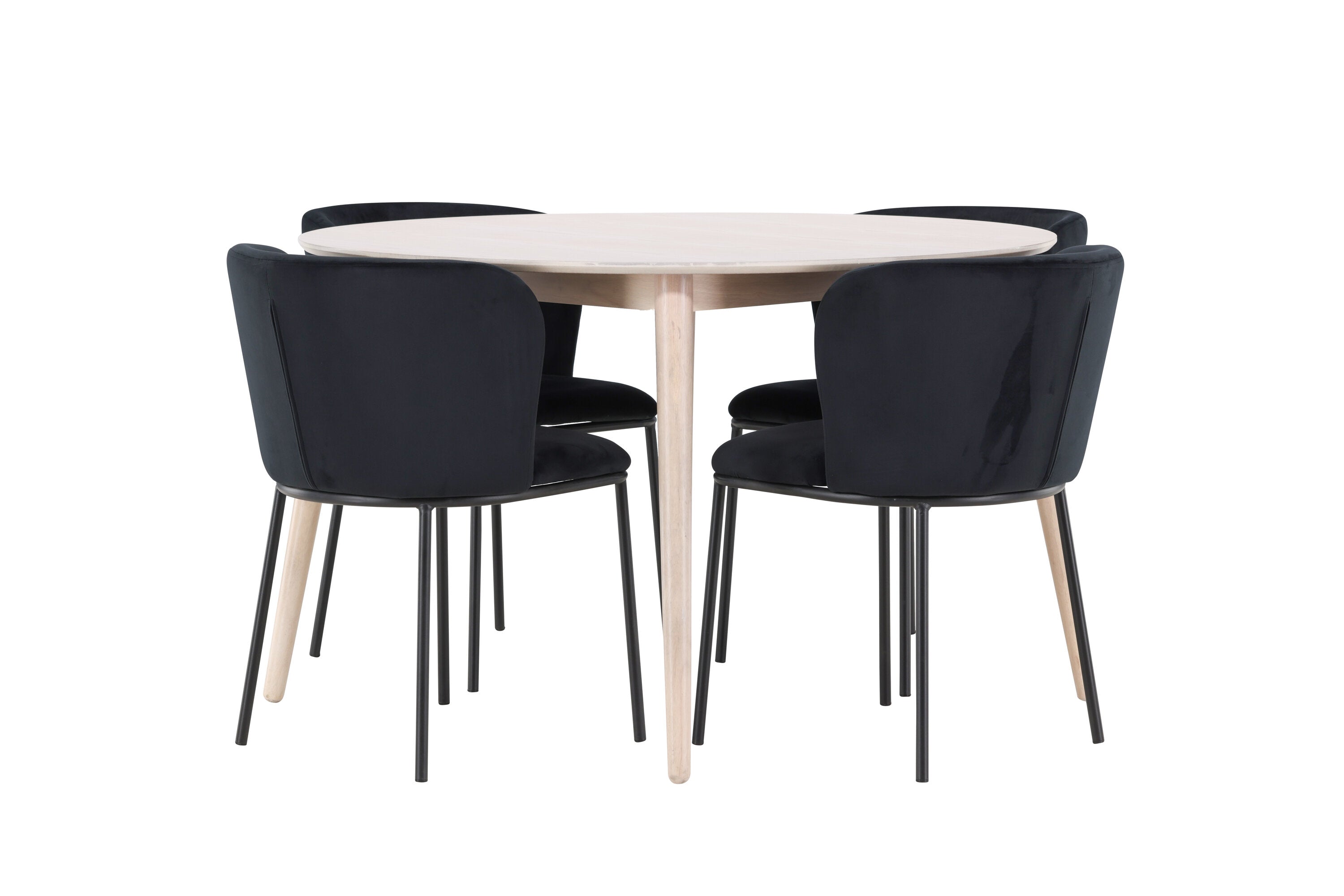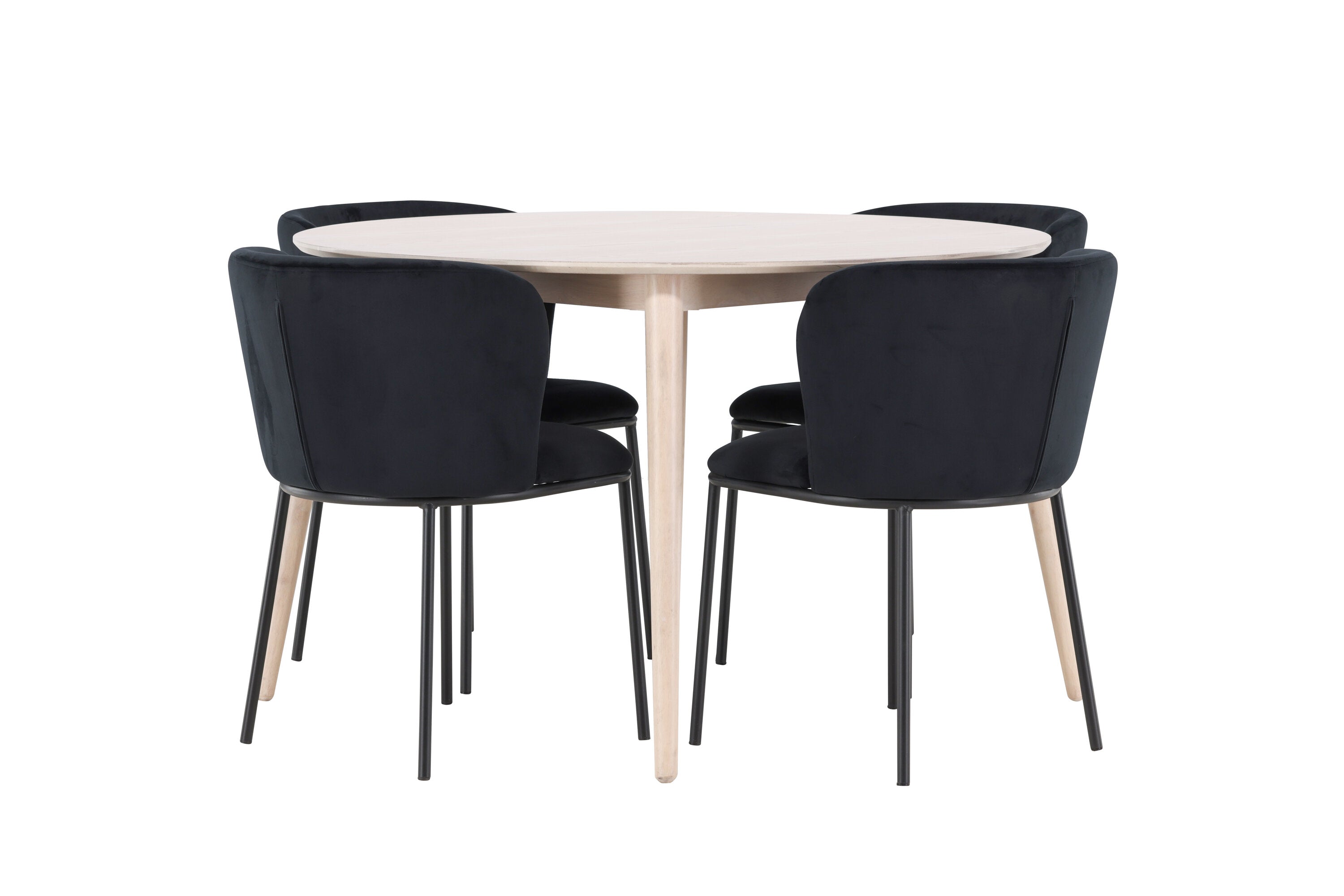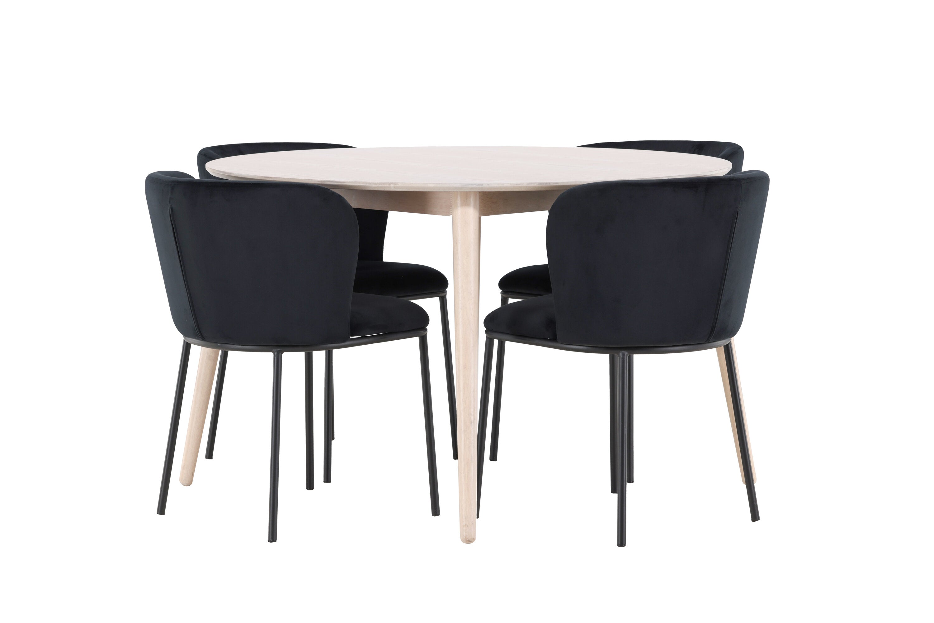 Stůl Flora - Whitewash se 4 židlemi Edina - Black