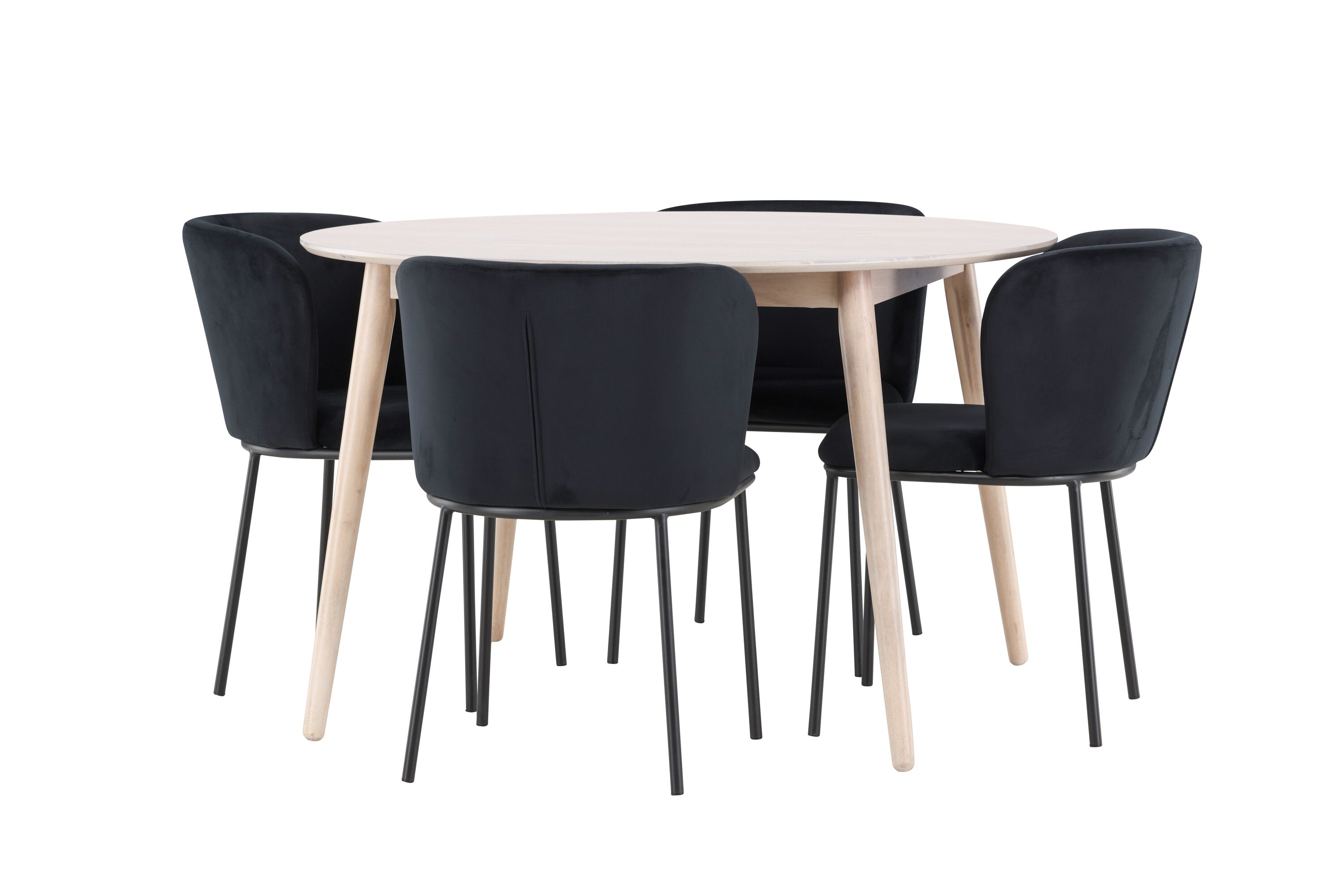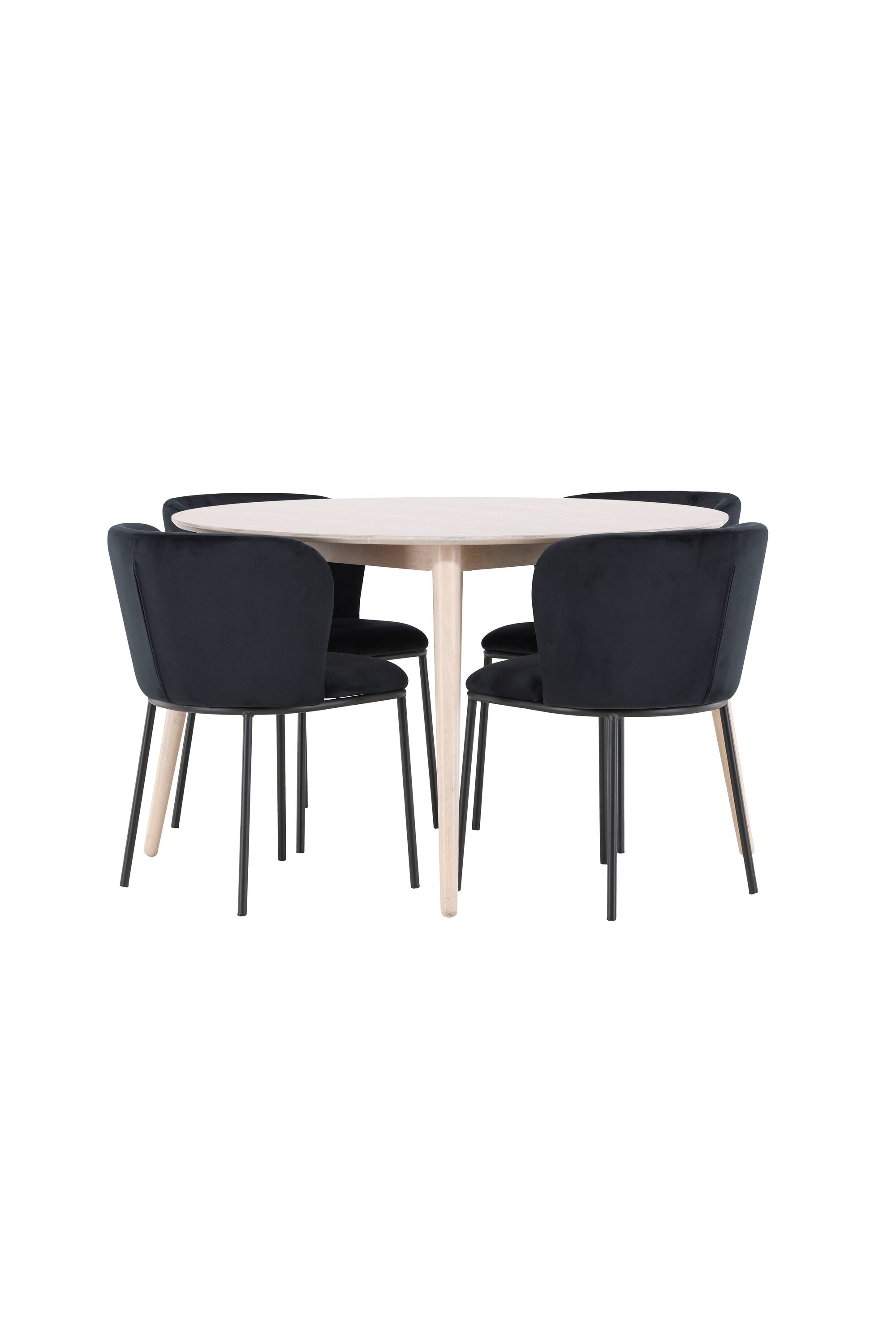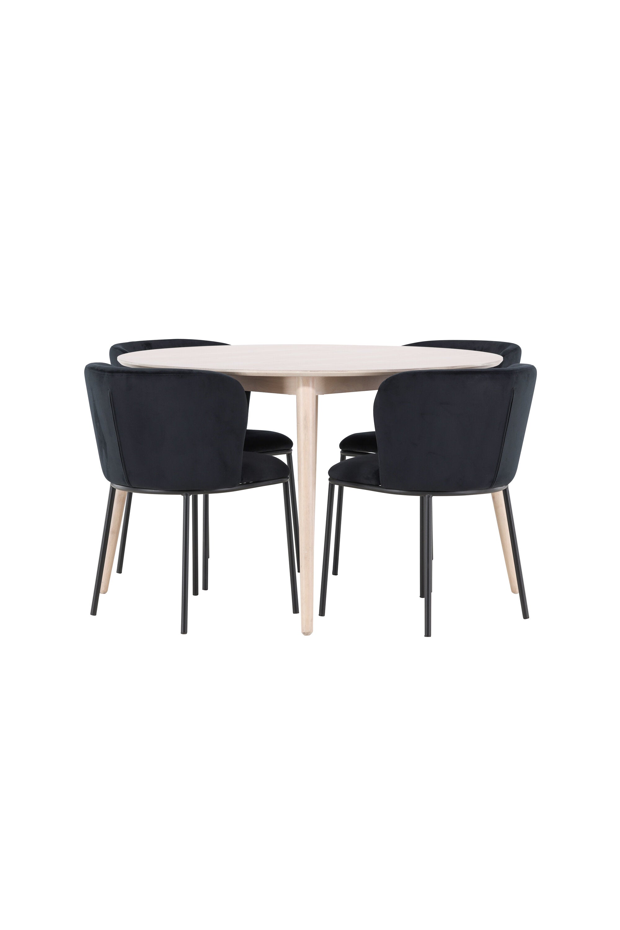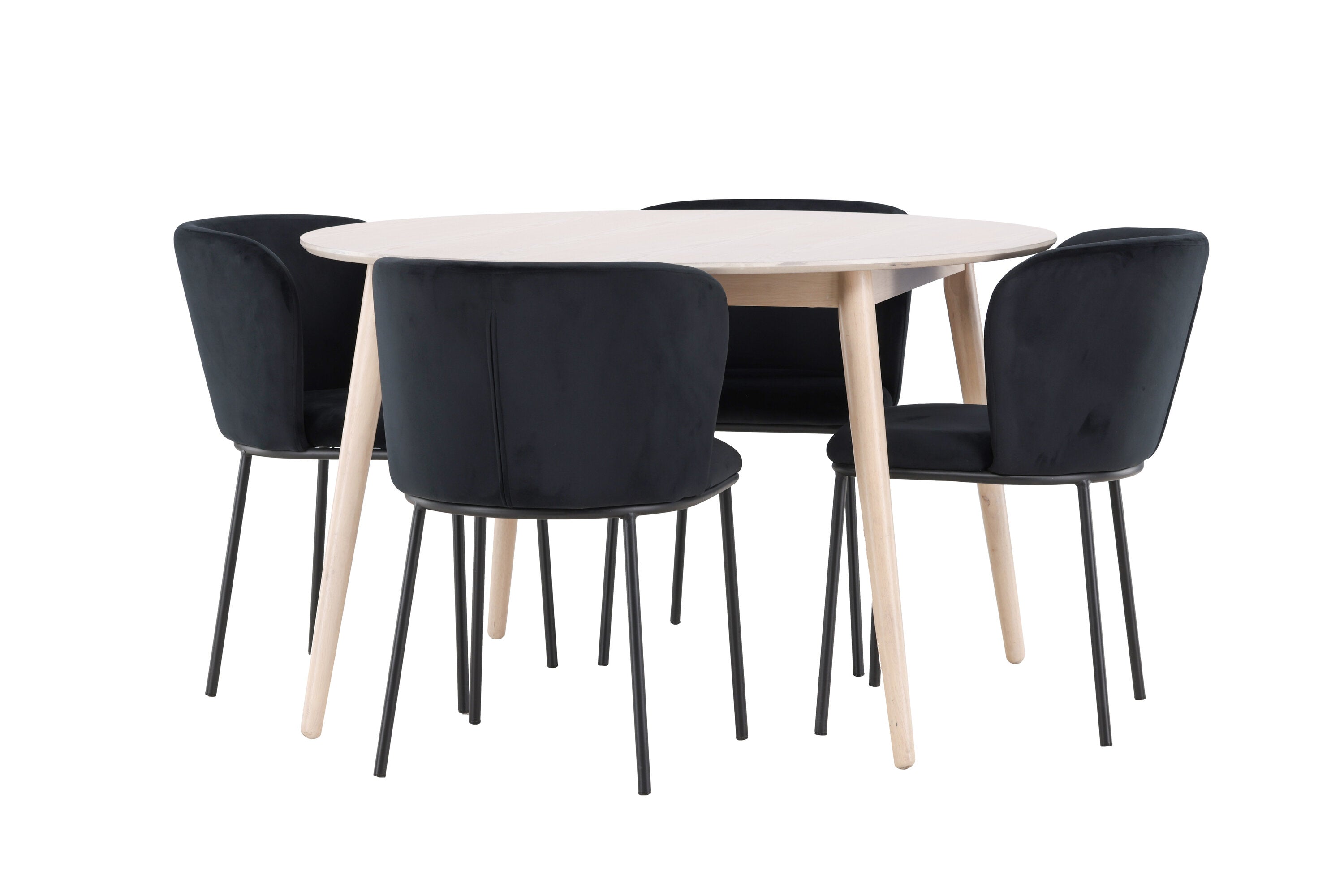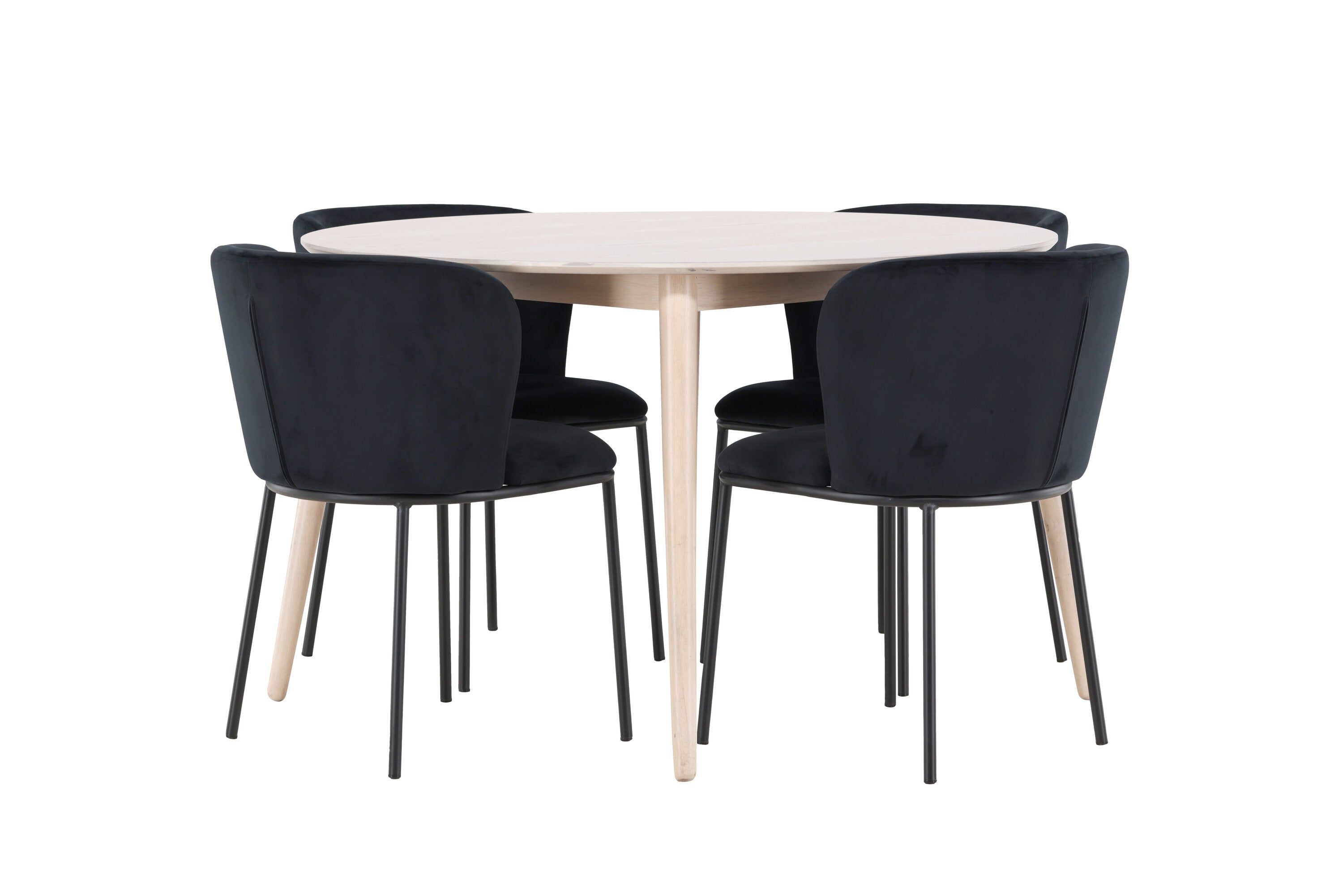 Stůl Flora - Whitewash se 4 židlemi Edina - Black