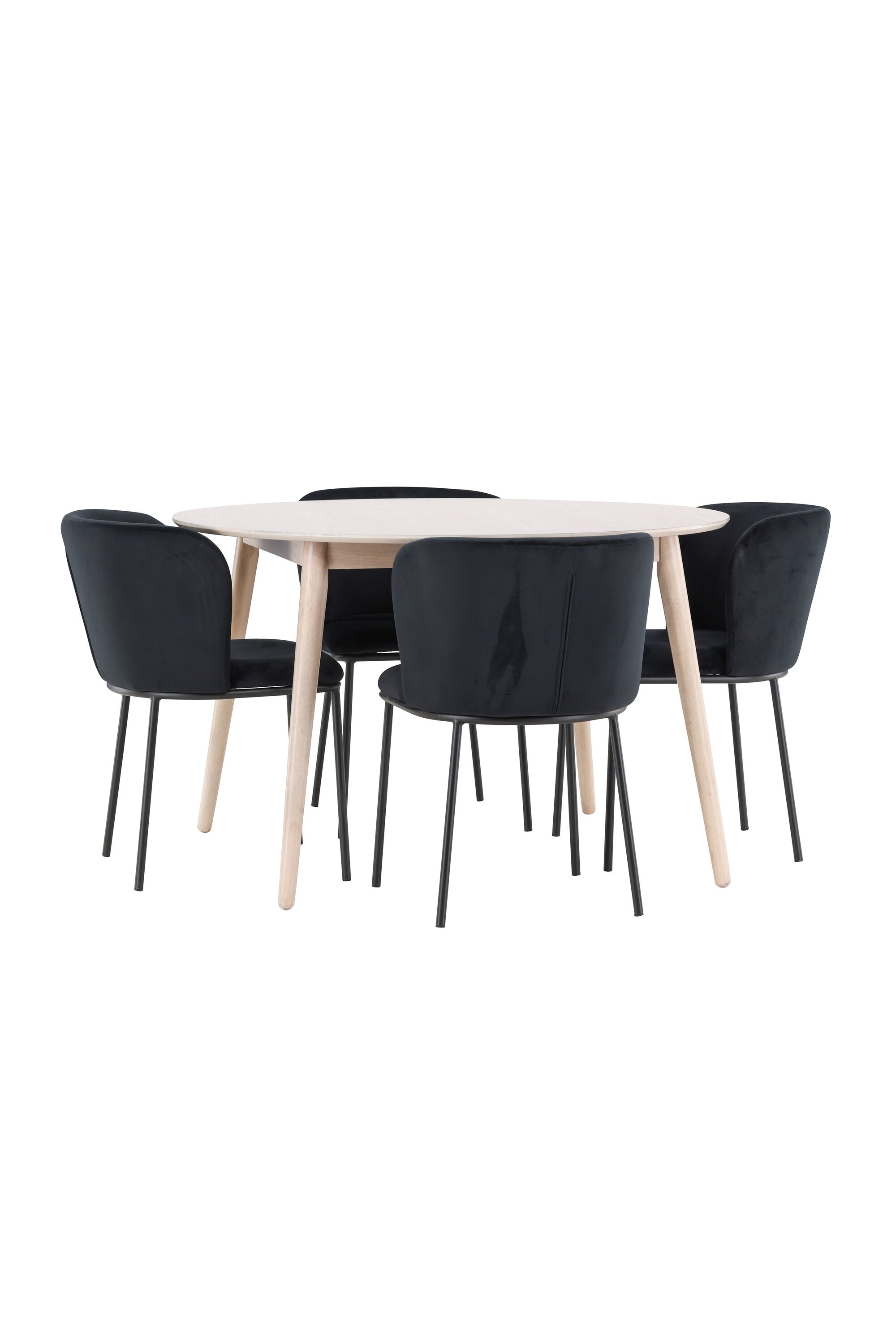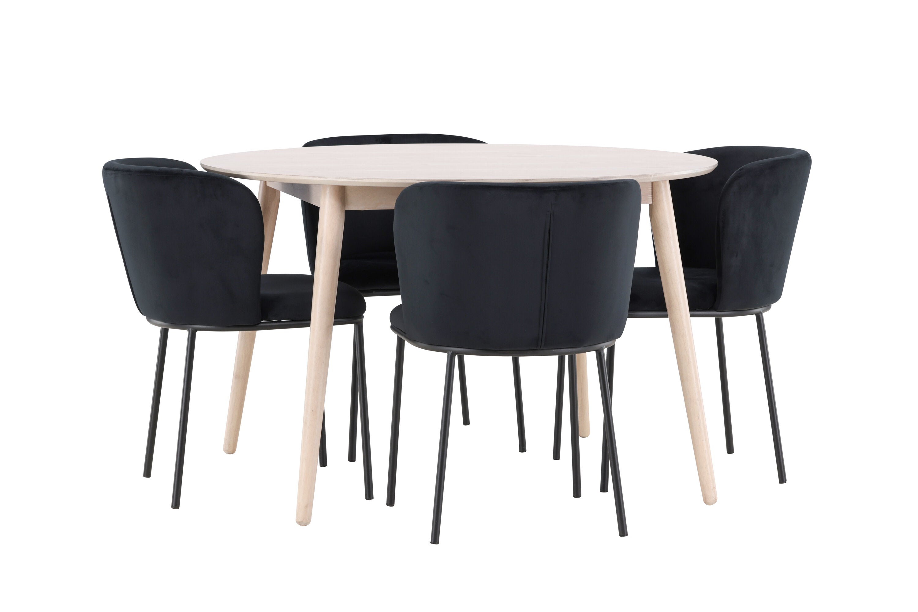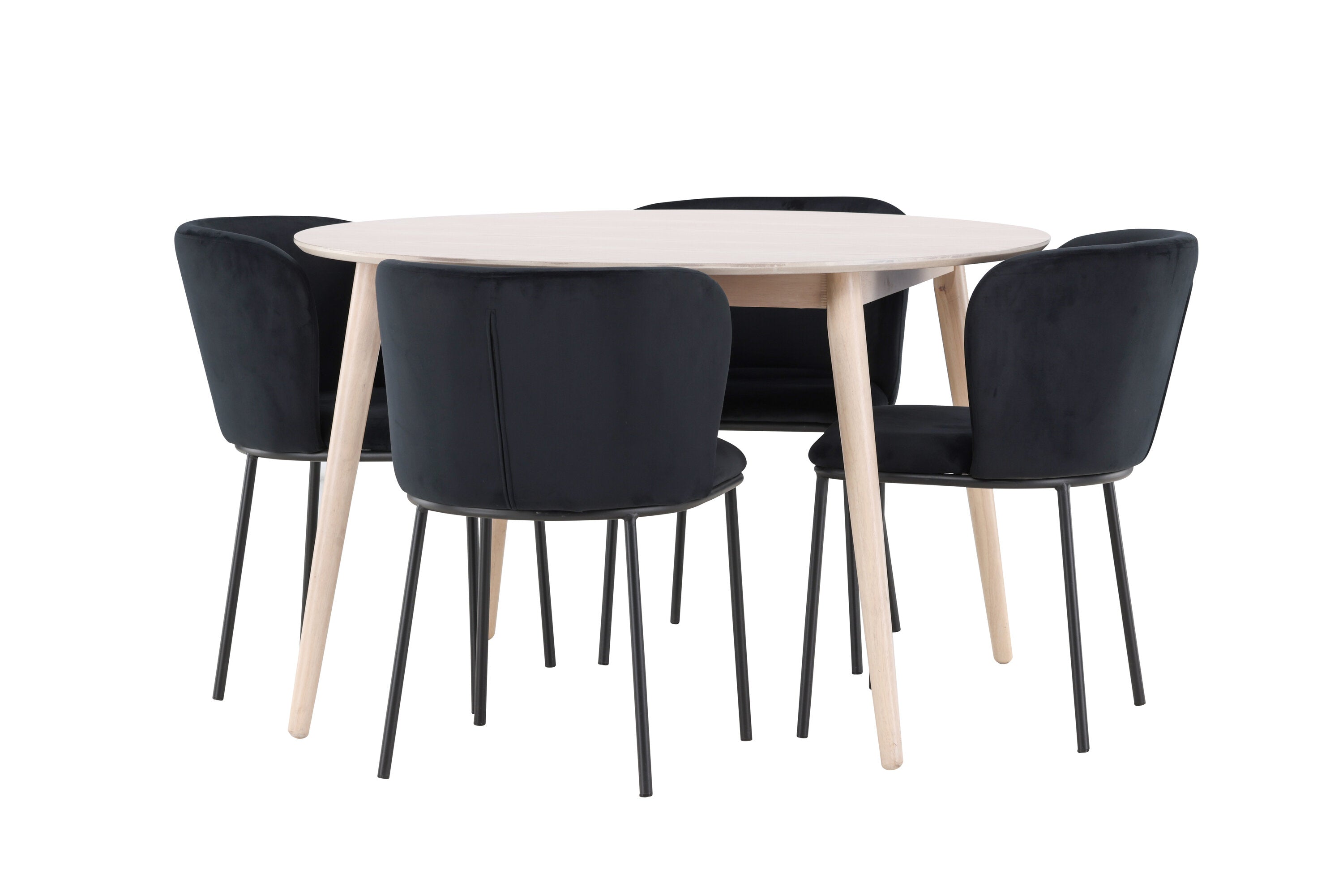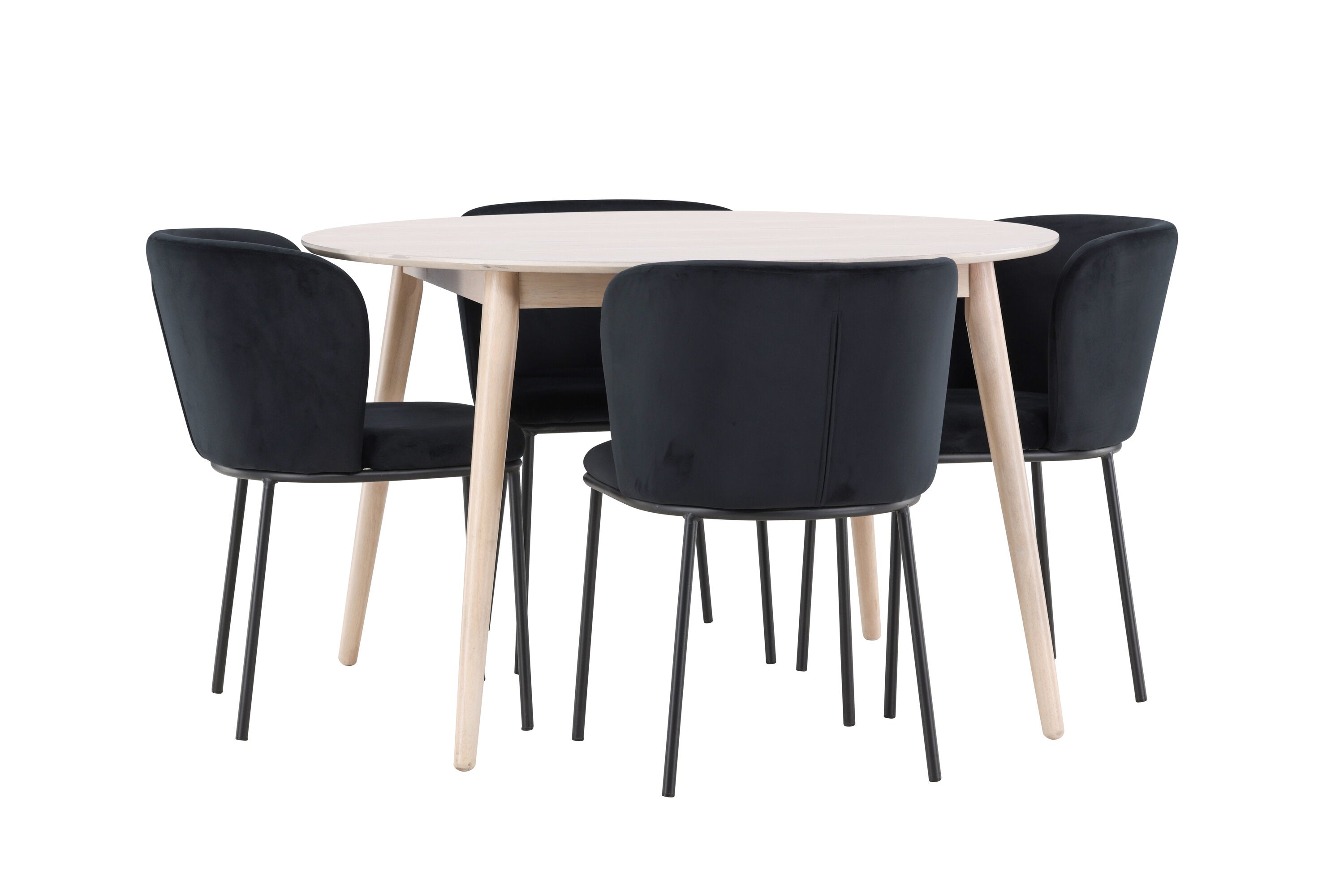 Stůl Flora - Whitewash se 4 židlemi Edina - Black