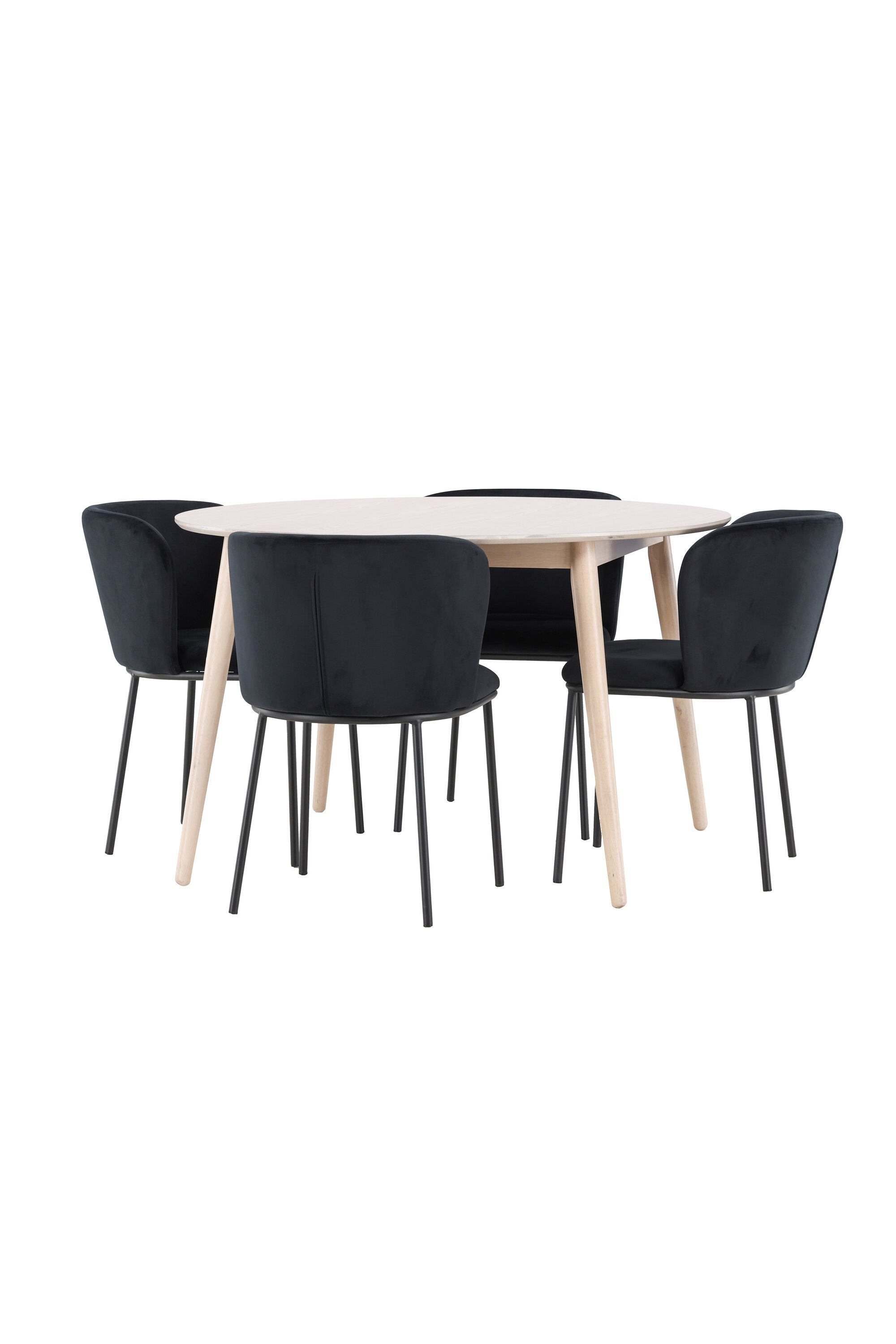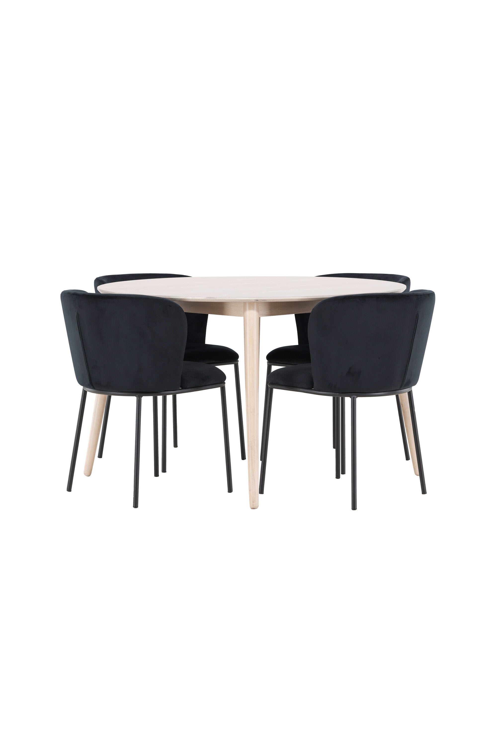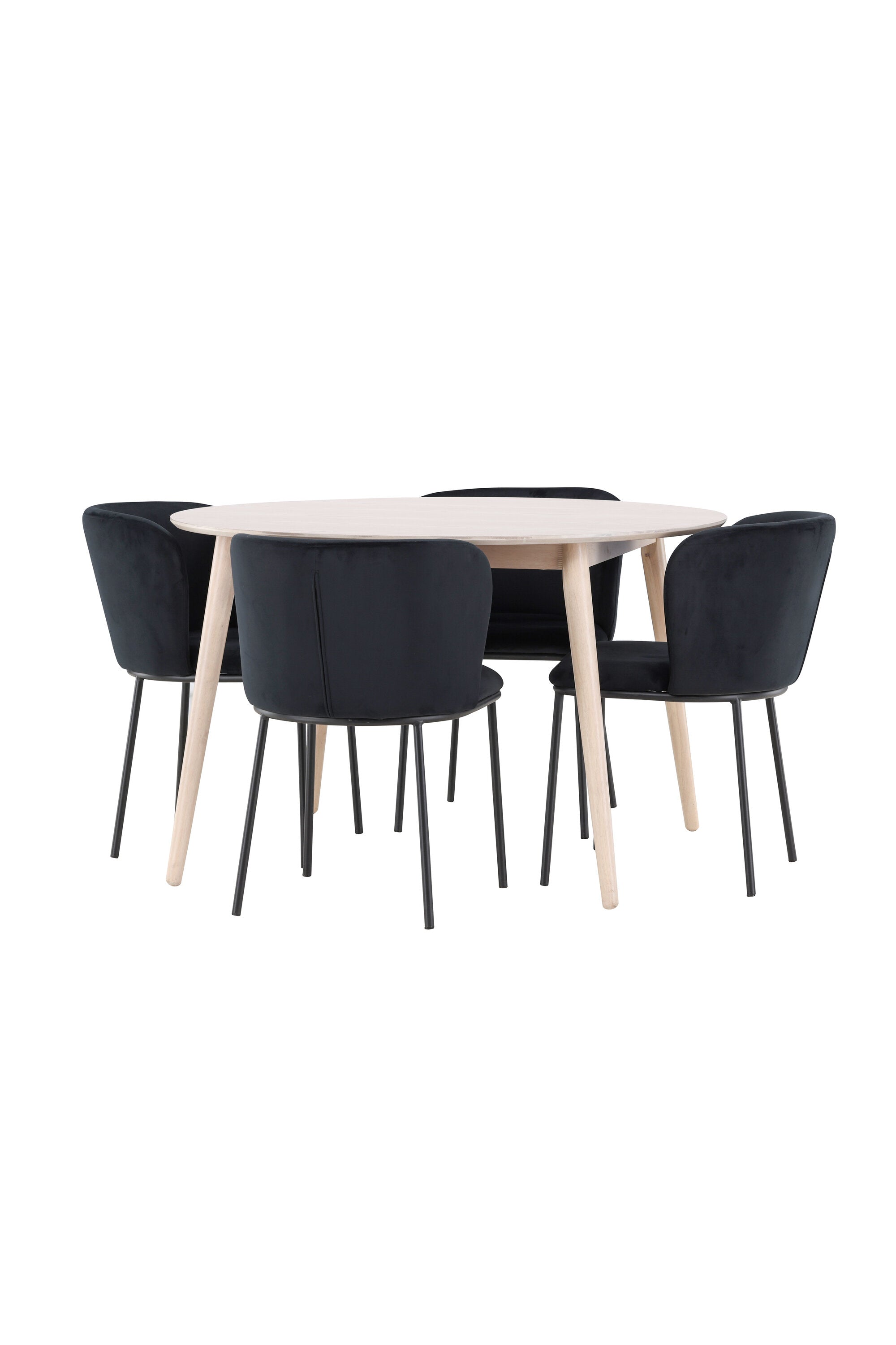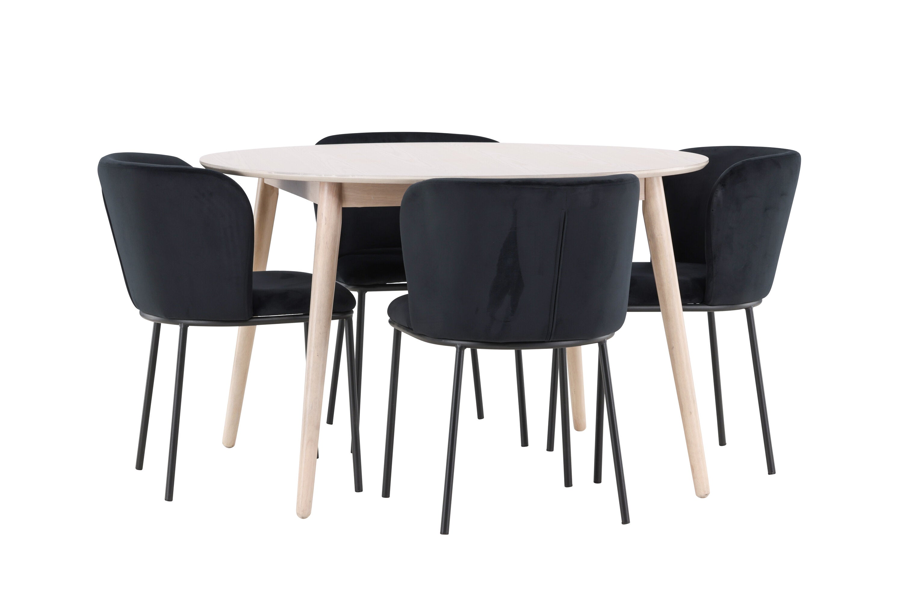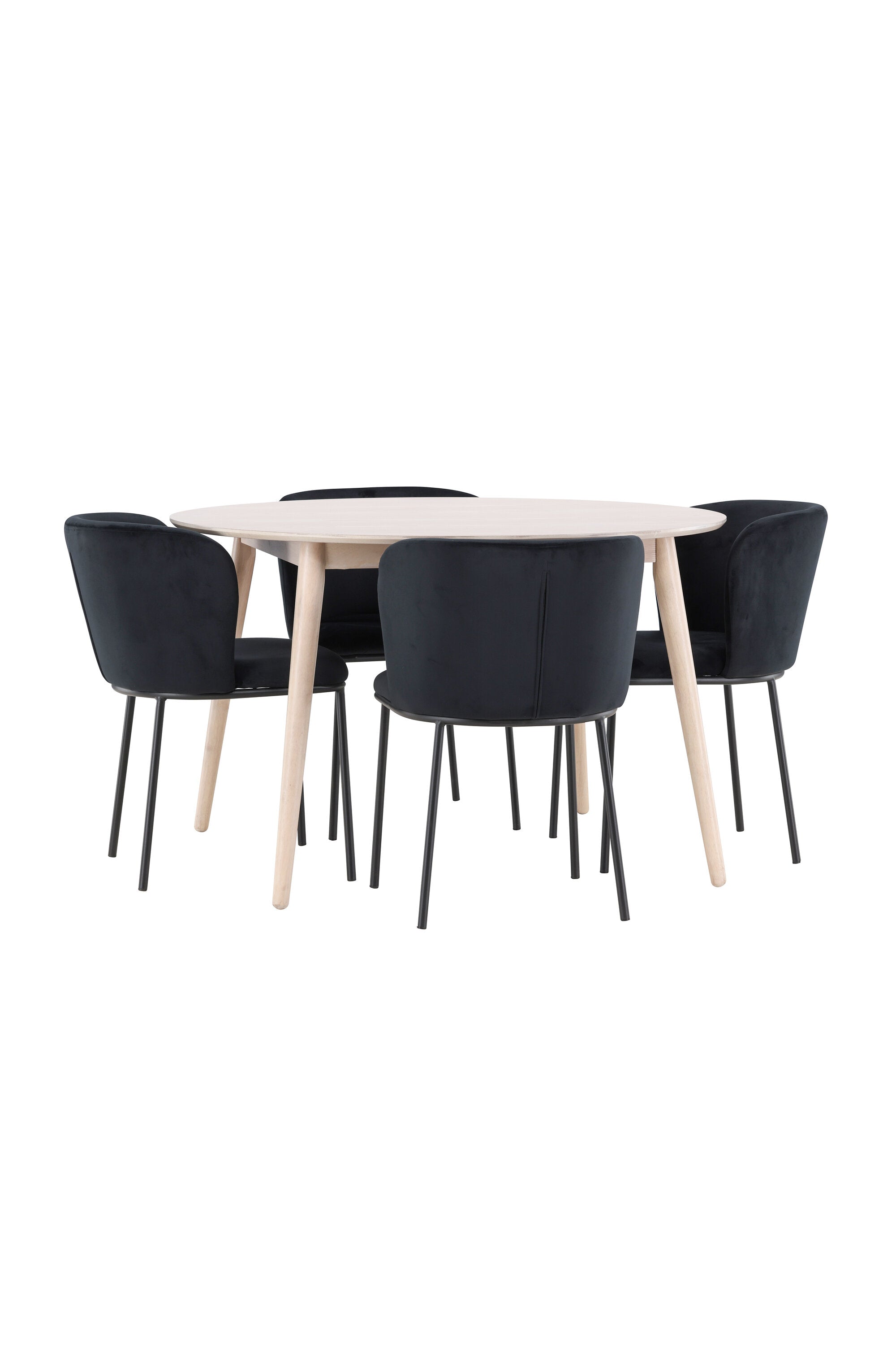 Stůl Flora - Whitewash se 4 židlemi Edina - Black