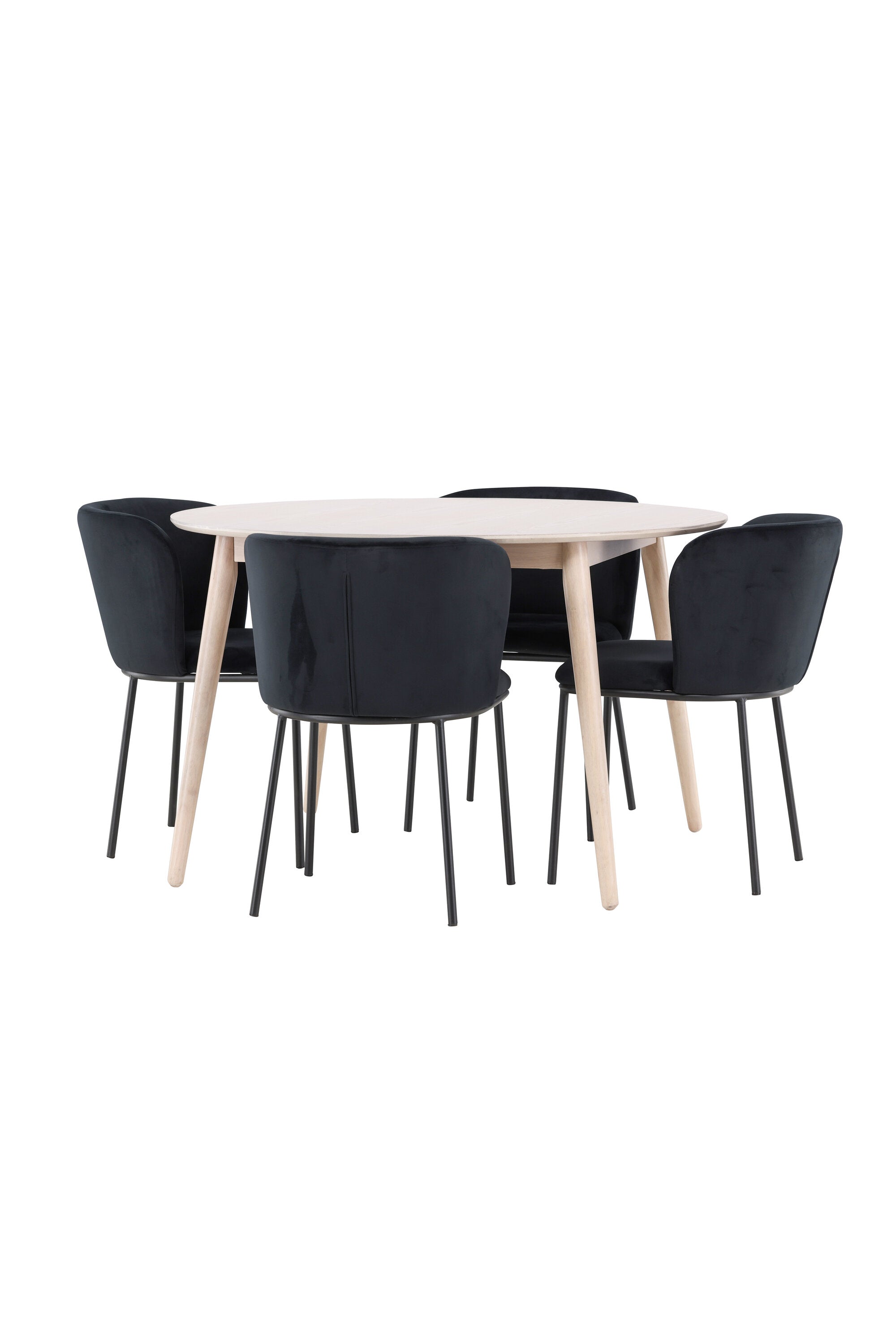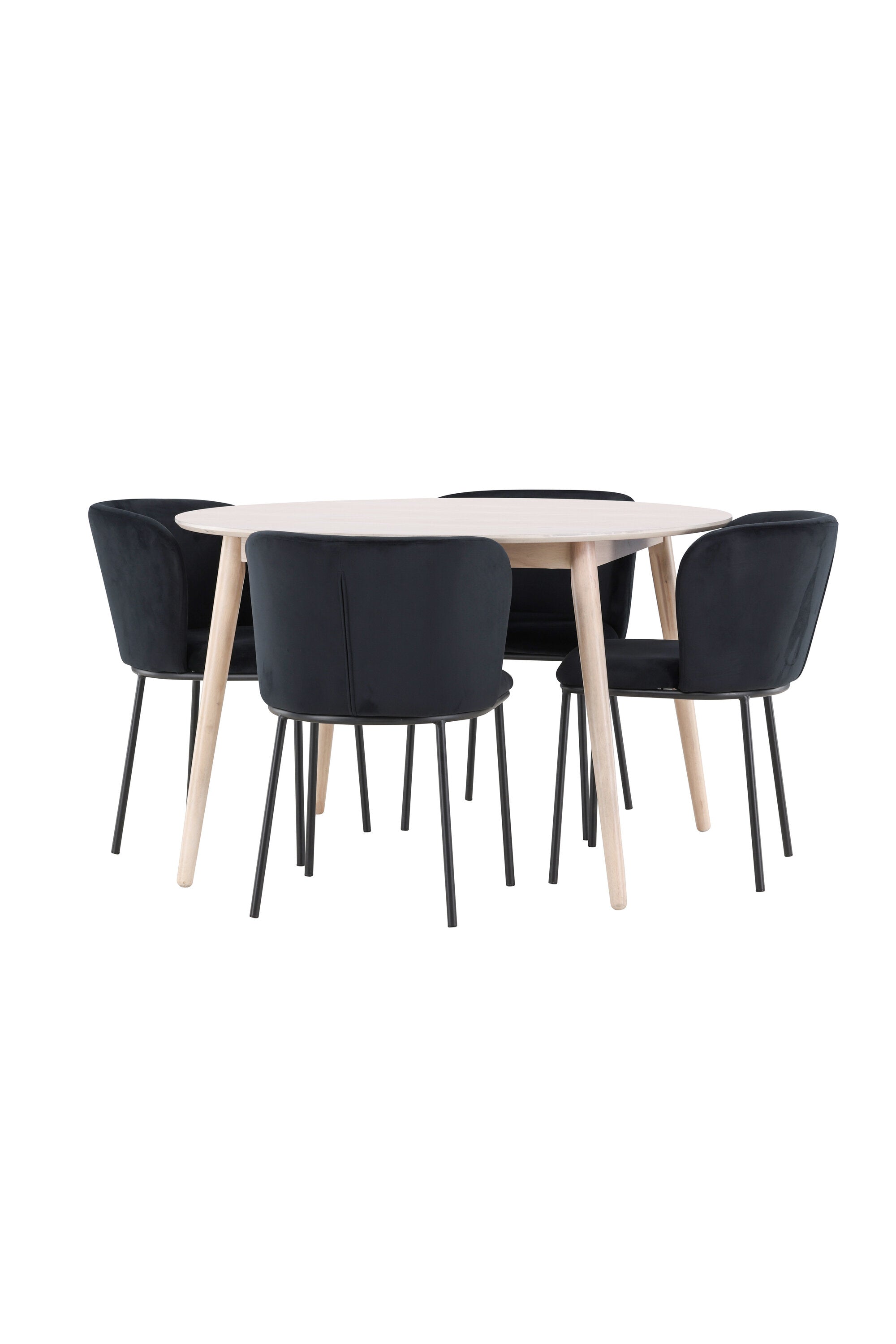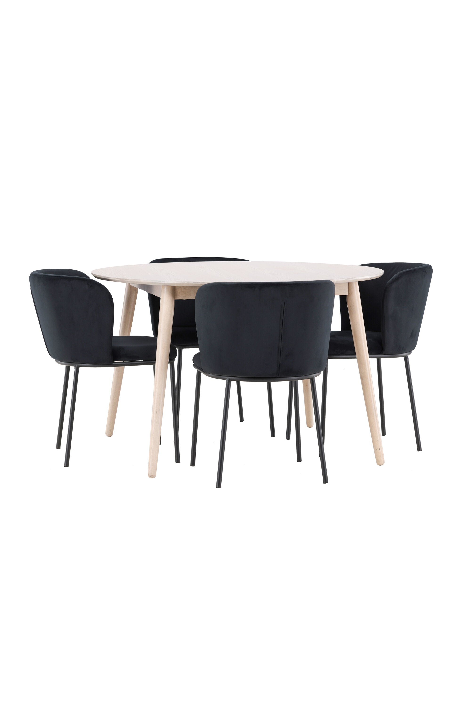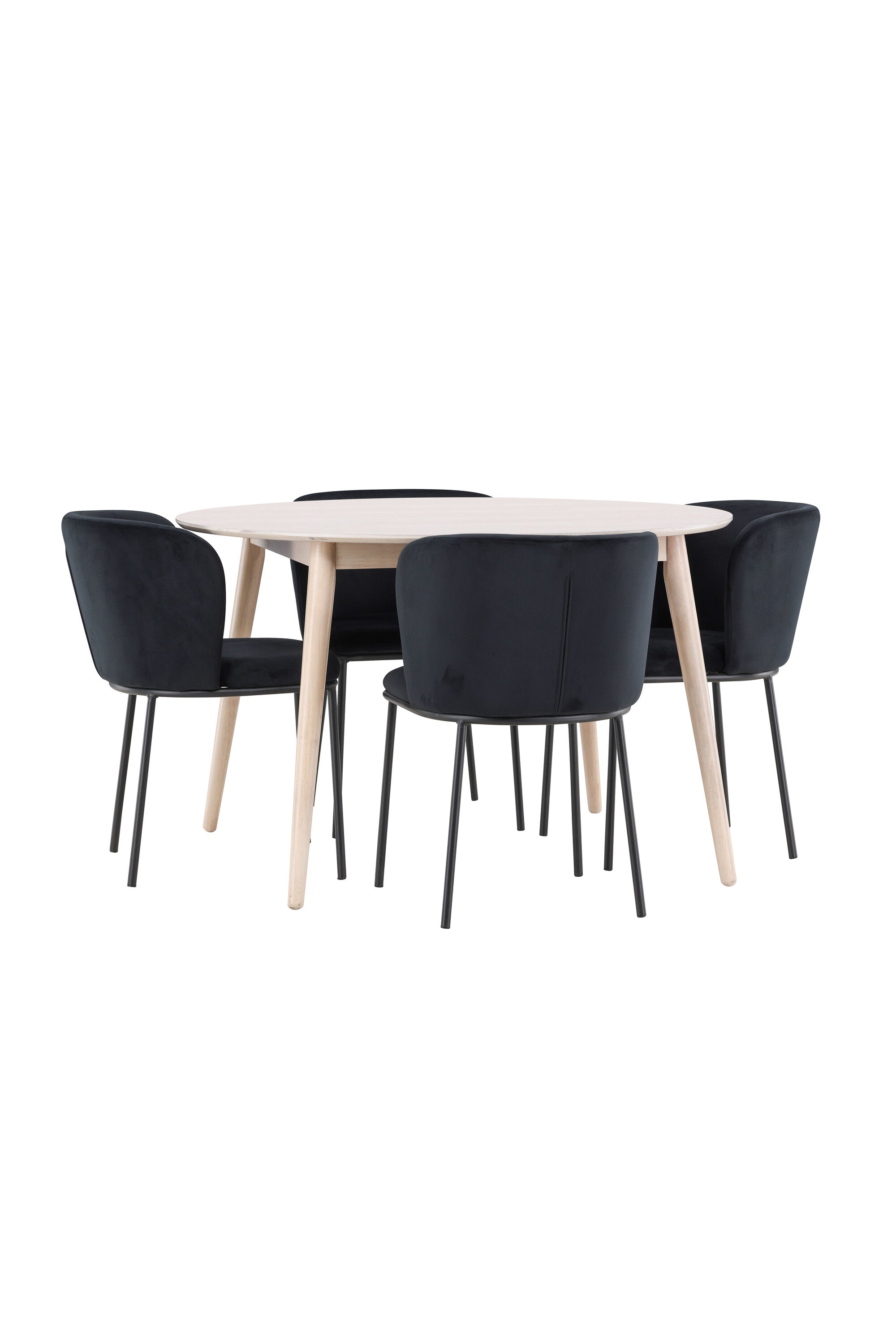 Stůl Flora - Whitewash se 4 židlemi Edina - Black
