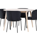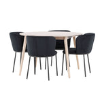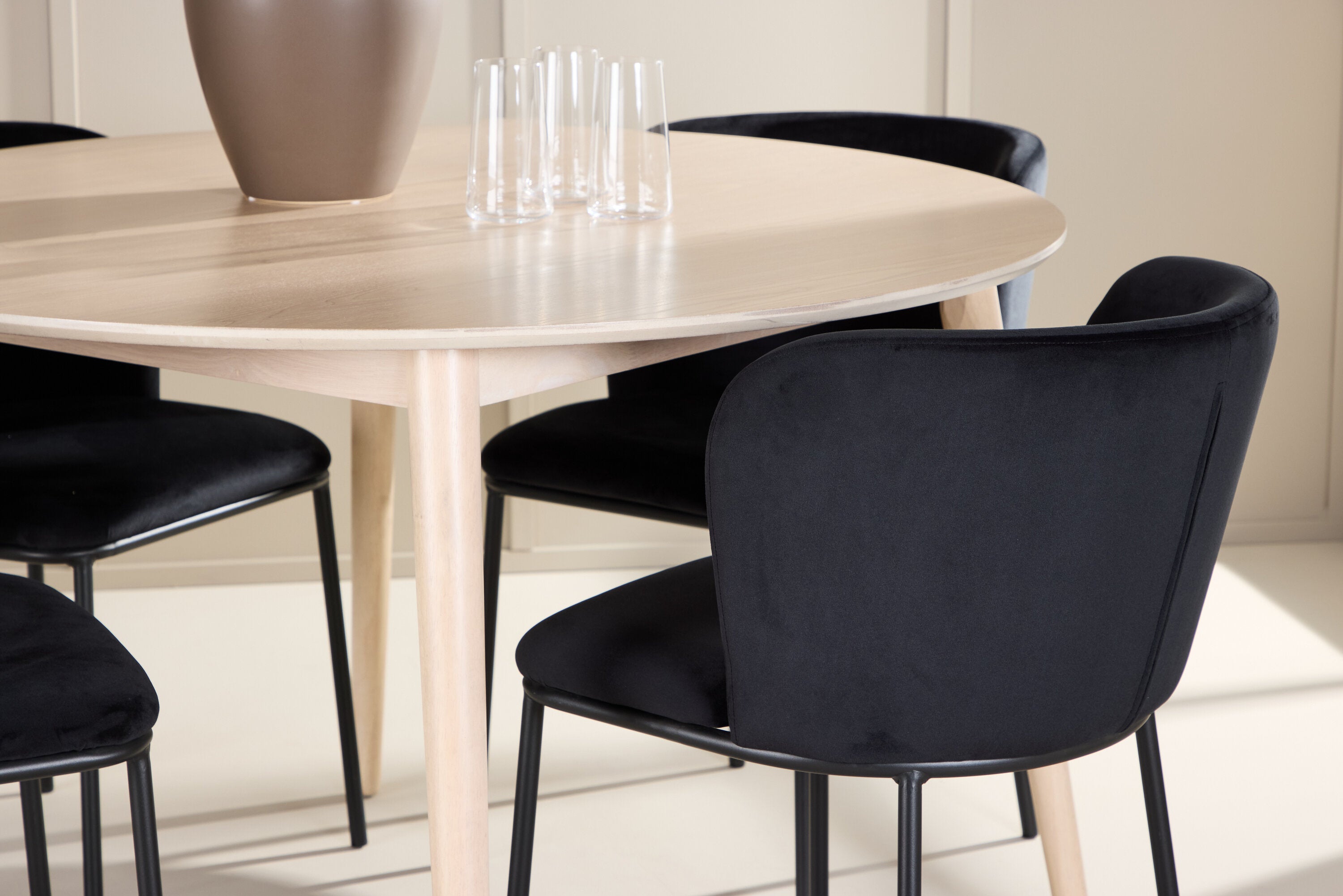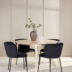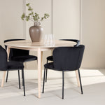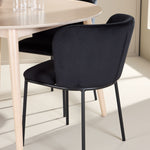 Jídelní židle Edina se svým sofistikovaným designem a luxusním dojmem dokonale ladí ke stolu Flora. Židle čalouněné černým sametem vyzařují bohatou a příjemnou atmosféru a hluboký černý odstín dodává vašemu jídelnímu koutu kouzlo a eleganci. Měkké sametové čalounění poskytuje další vrstvu pohodlí, díky čemuž jsou židle Edina vizuálně pozoruhodné a je potěšením se na nich sedět. Robustní konstrukce a ergonomický design činí tyto židle ideálními pro dlouhé večeře a společenské akce, hladce kombinující styl a funkčnost.