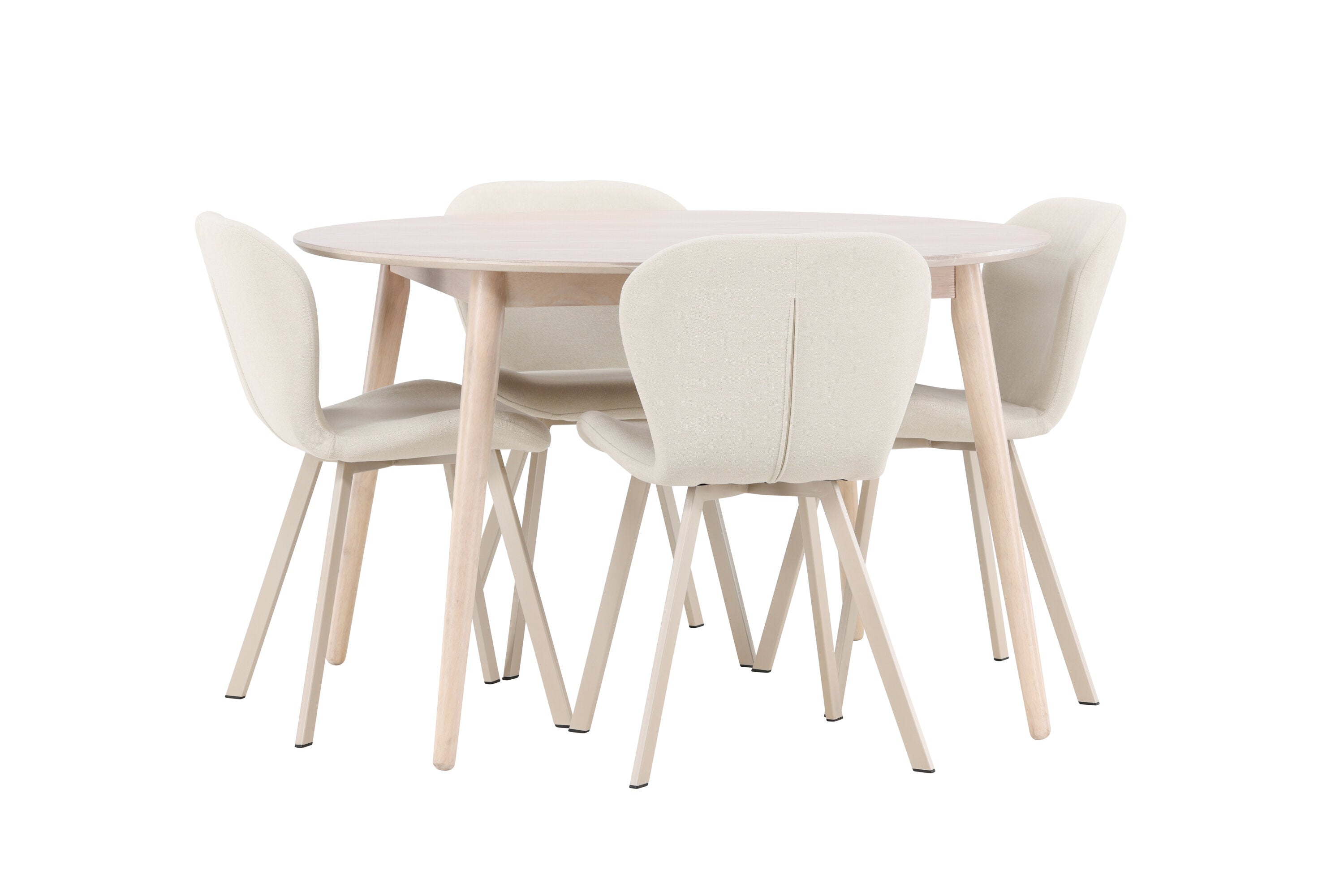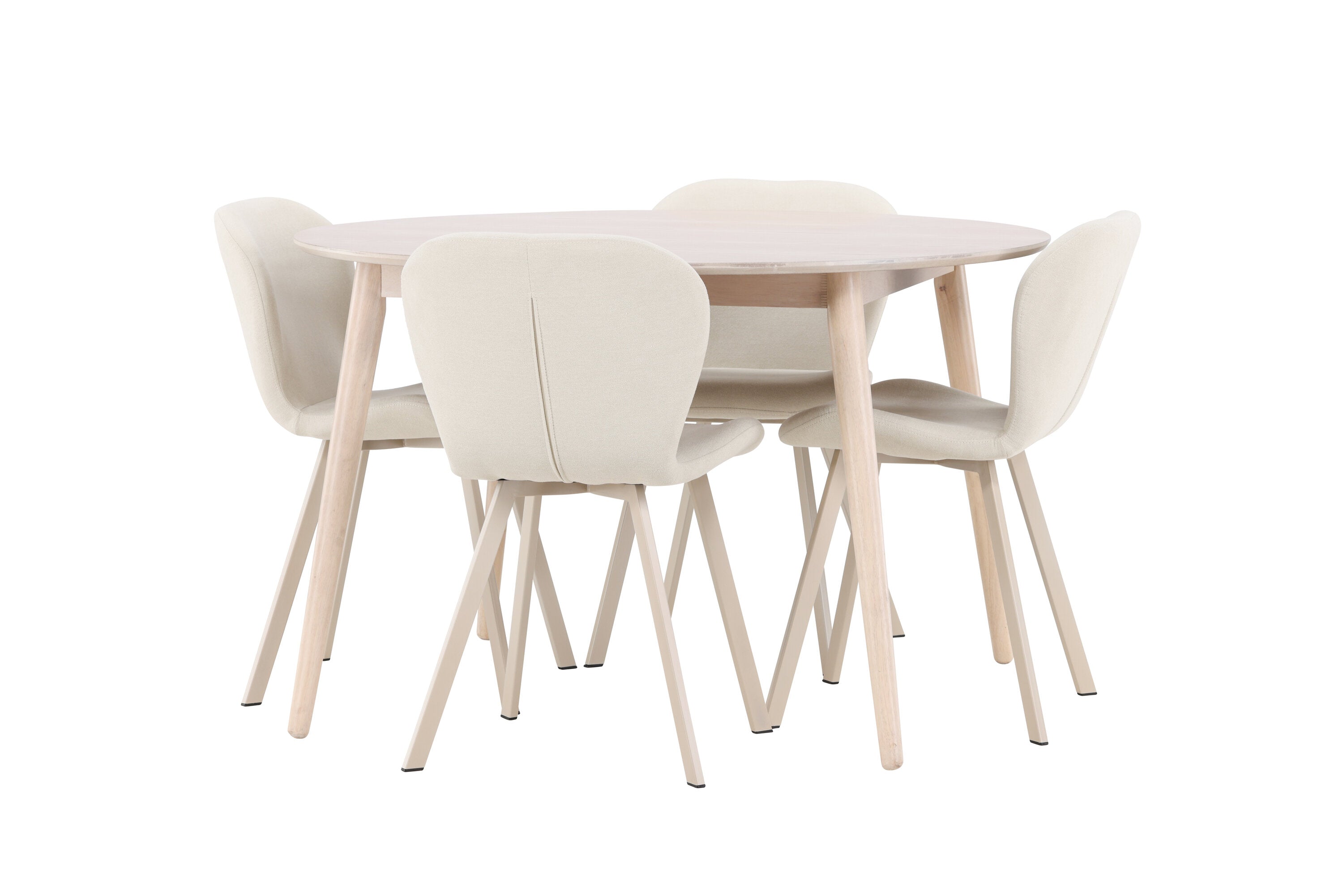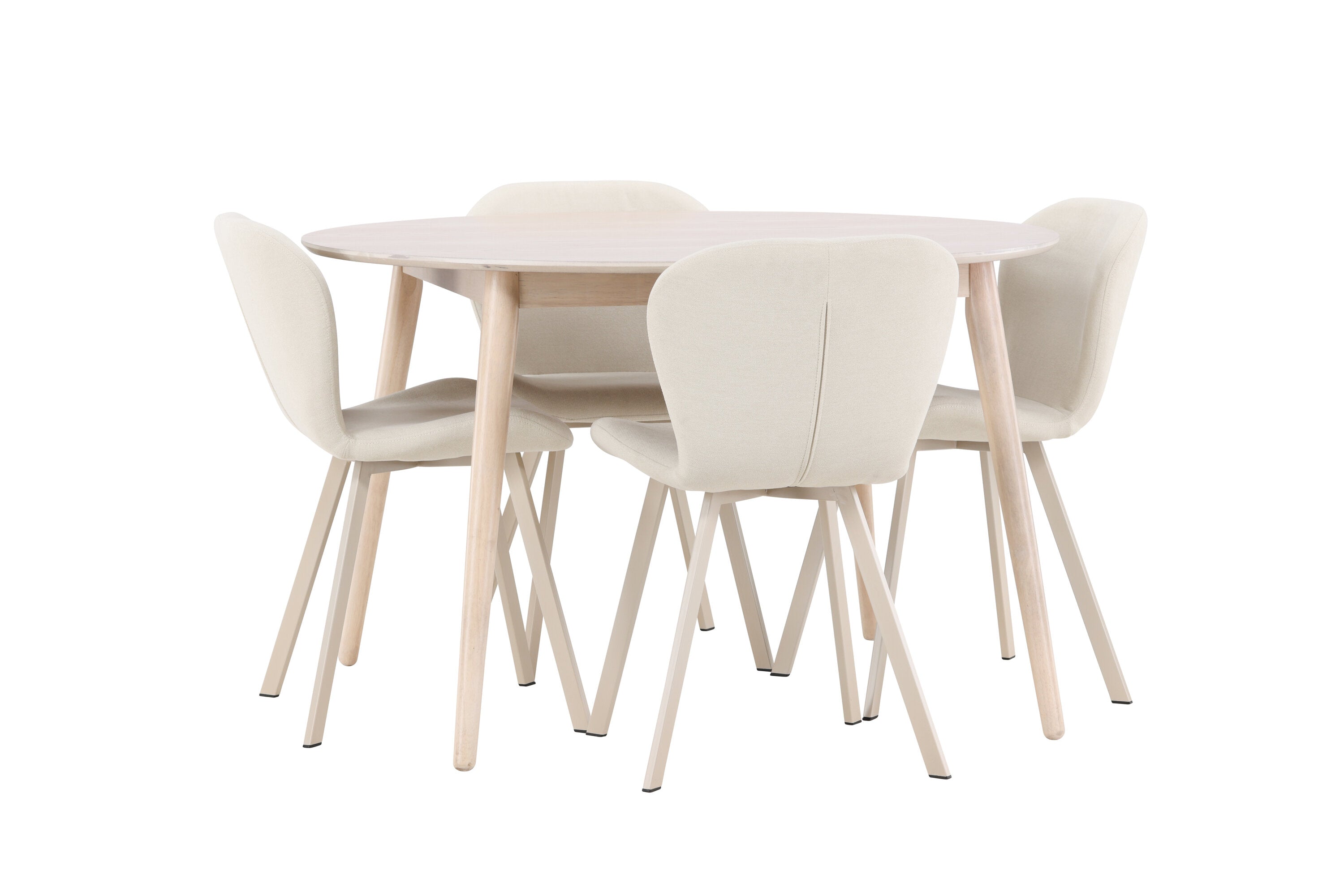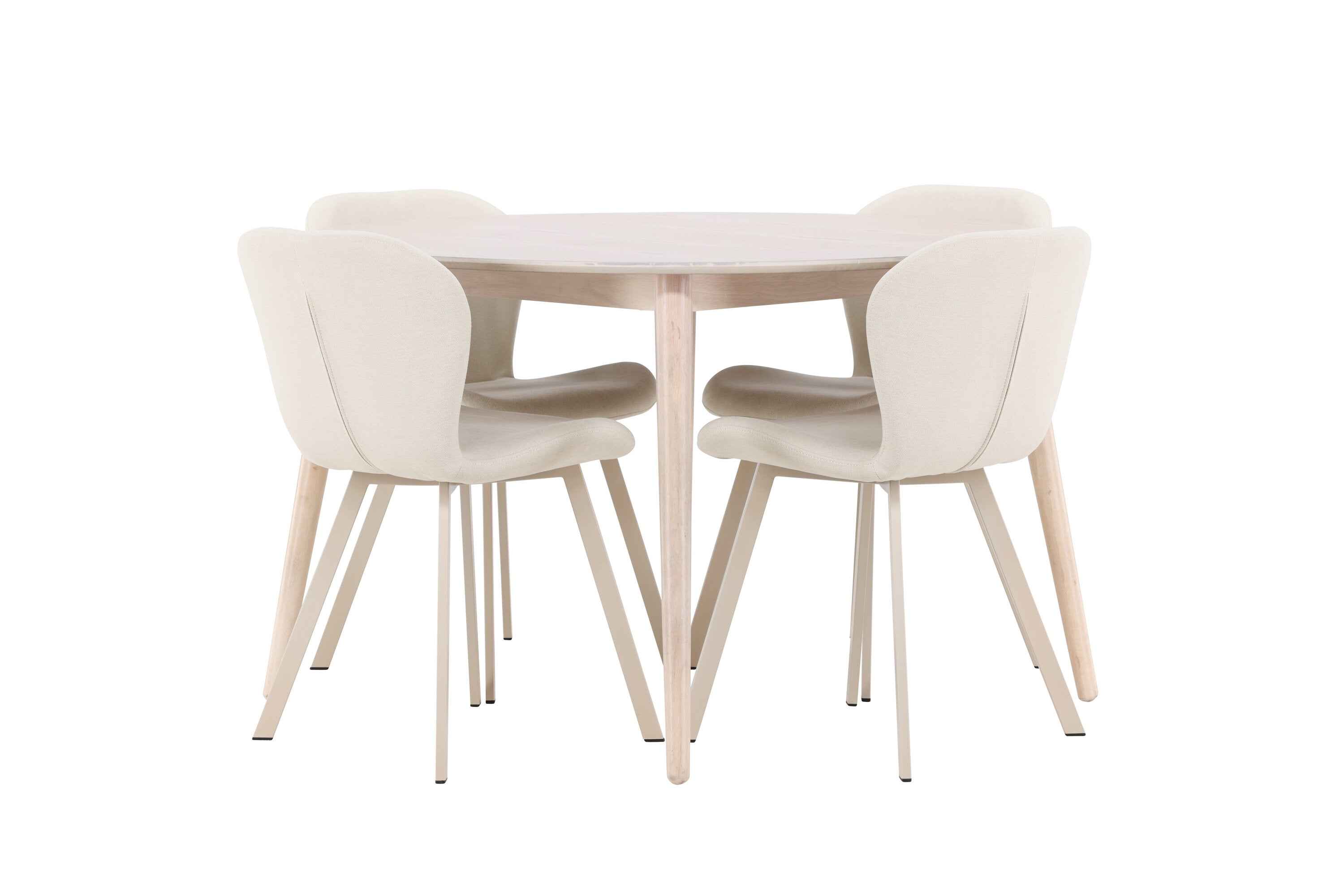 Stůl Flora - Whitewash se 4 židlemi Lilja - Béžová