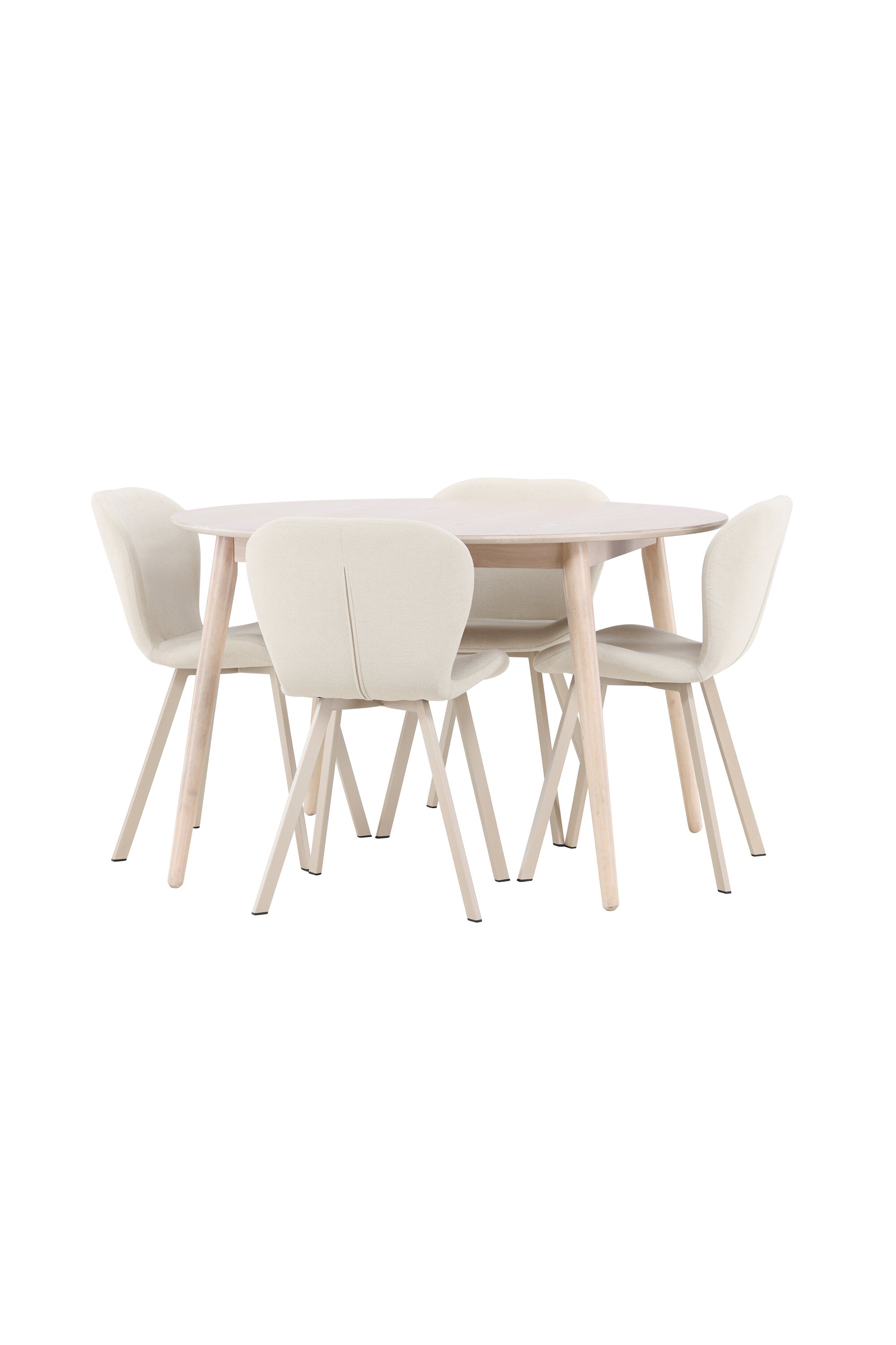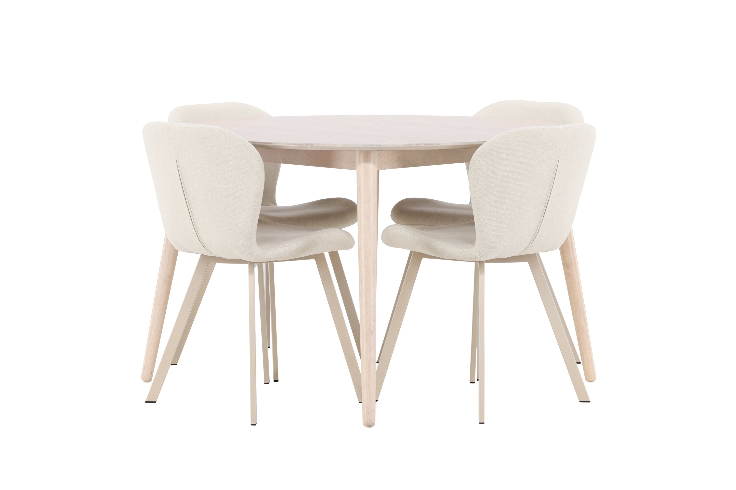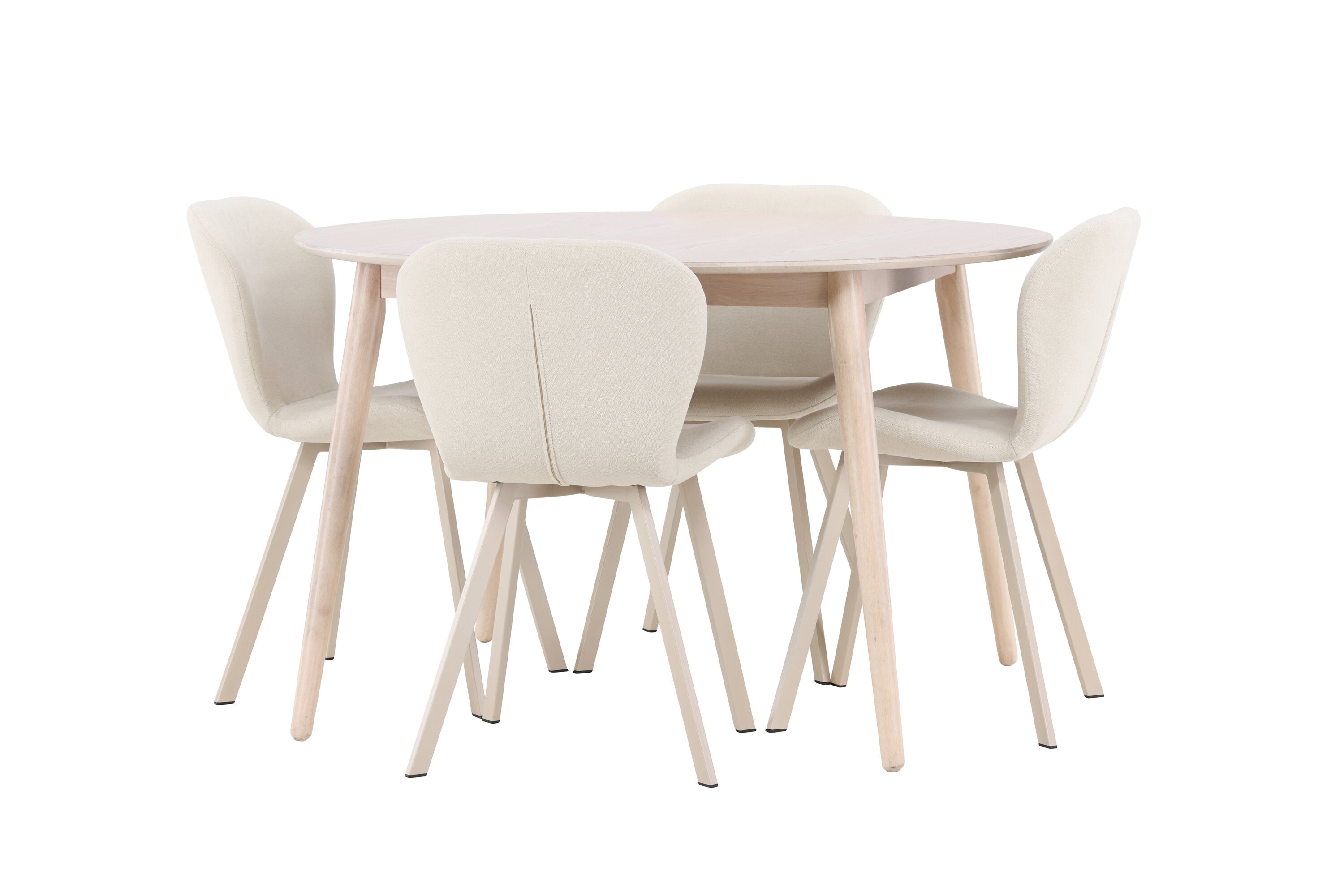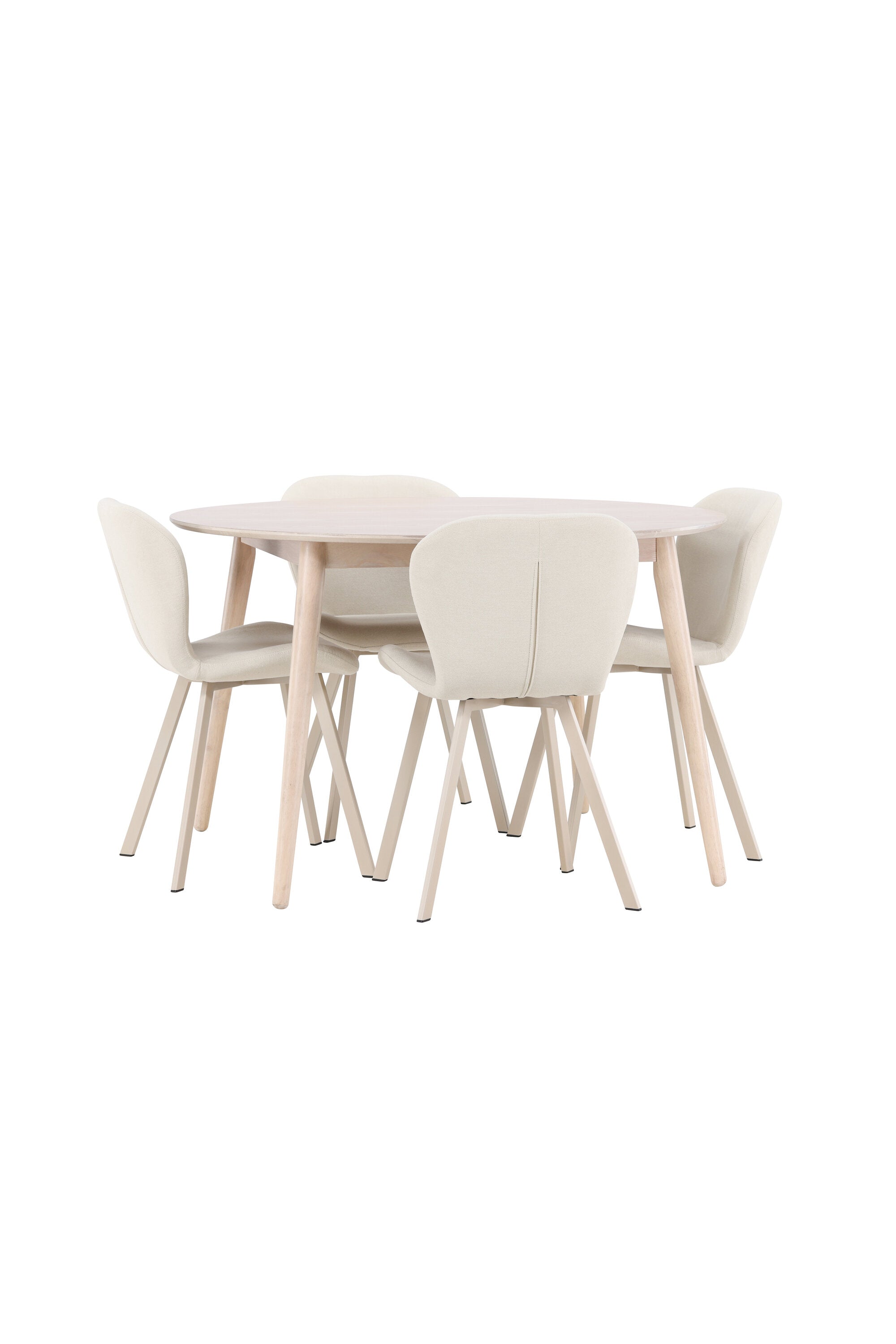 Stůl Flora - Whitewash se 4 židlemi Lilja - Béžová