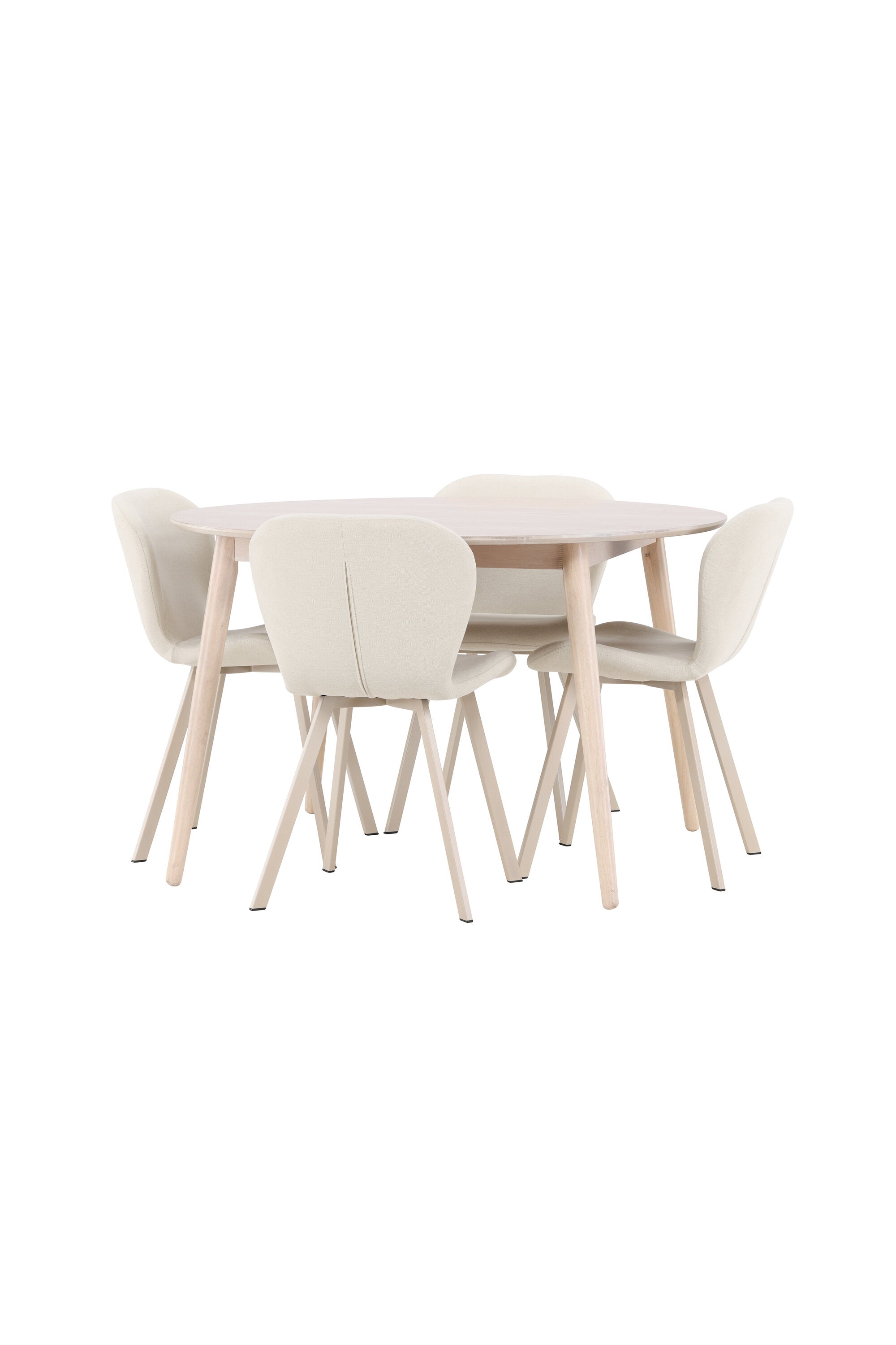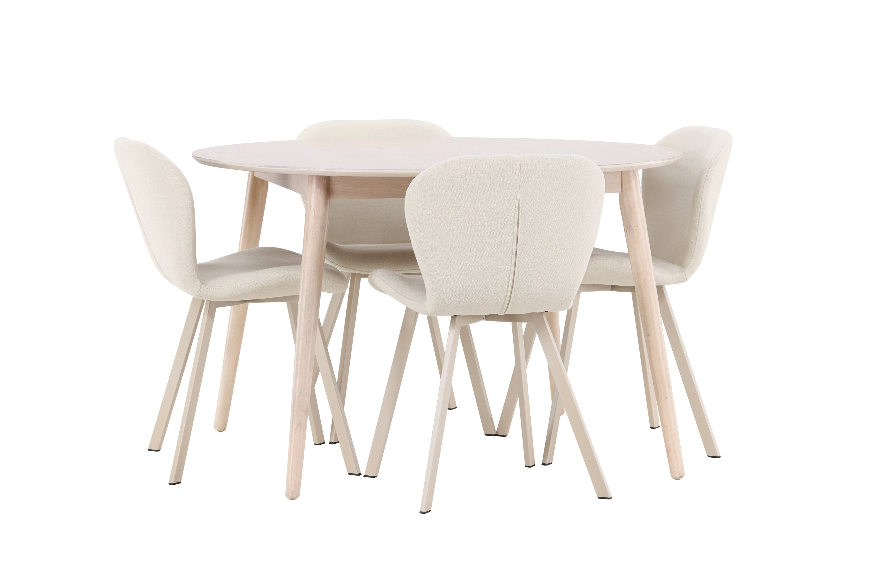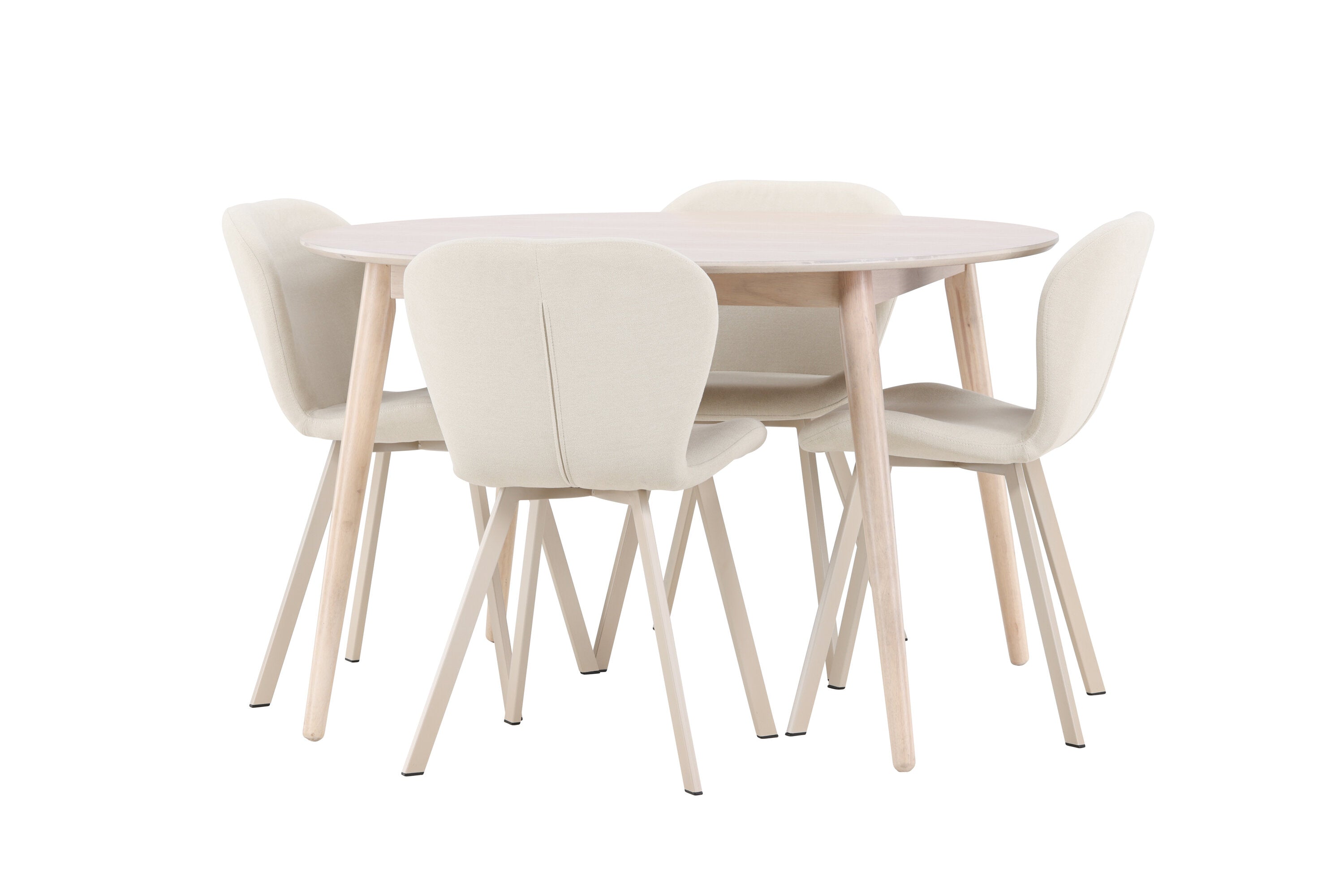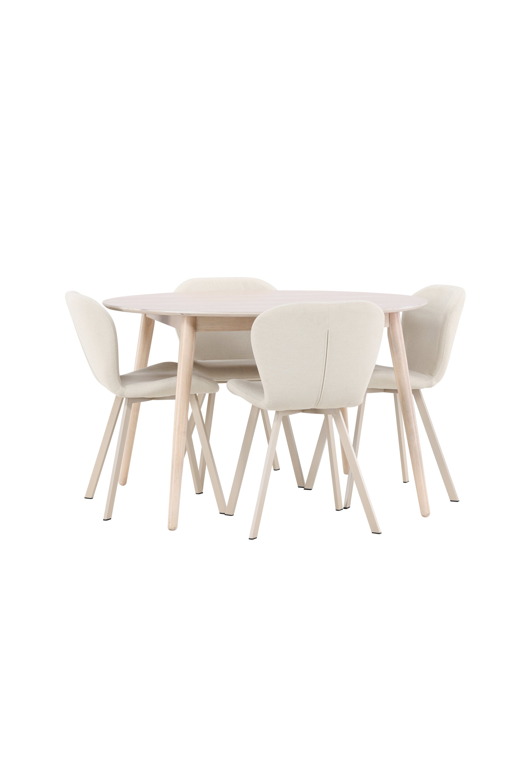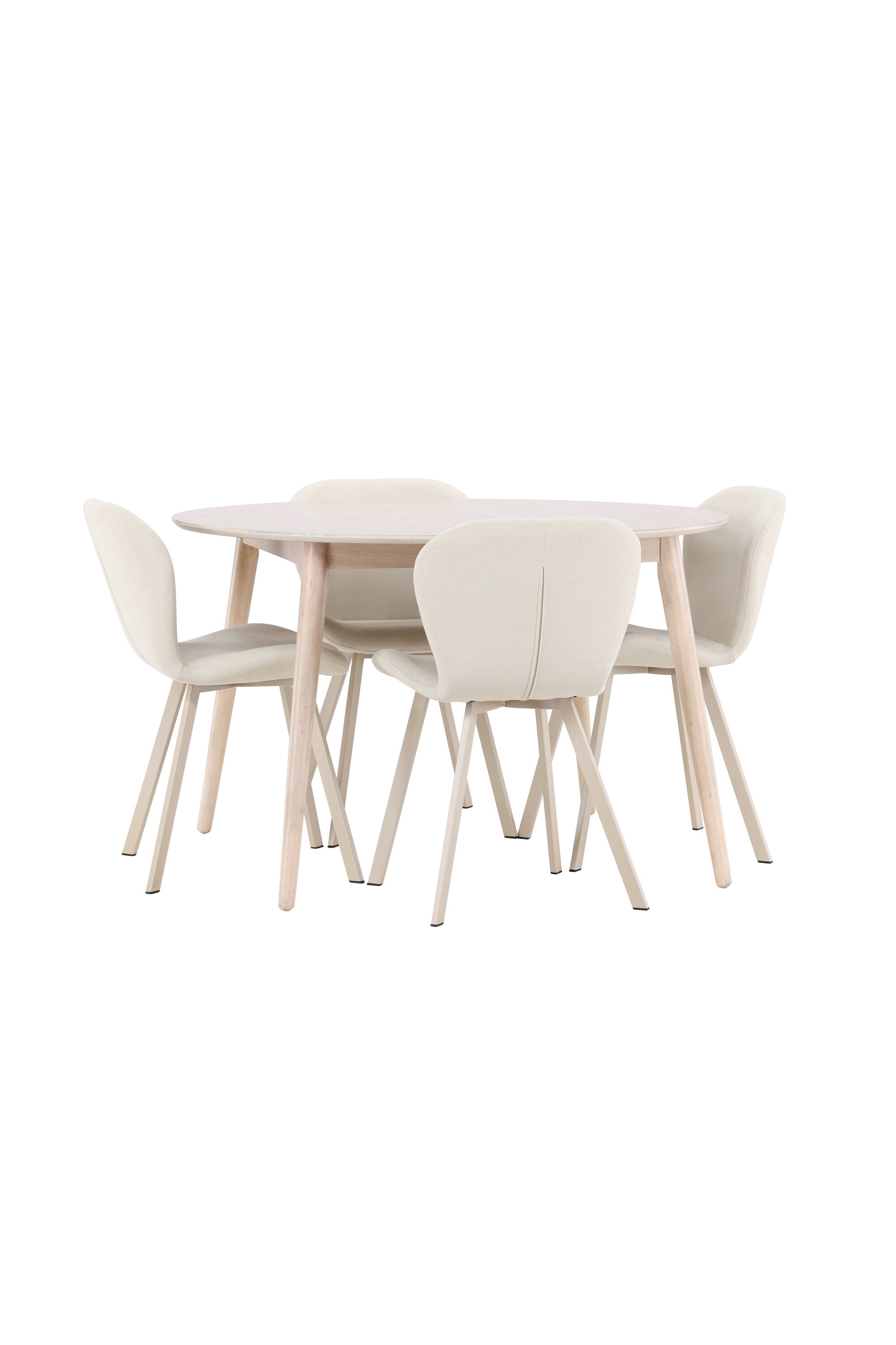 Stůl Flora - Whitewash se 4 židlemi Lilja - Béžová