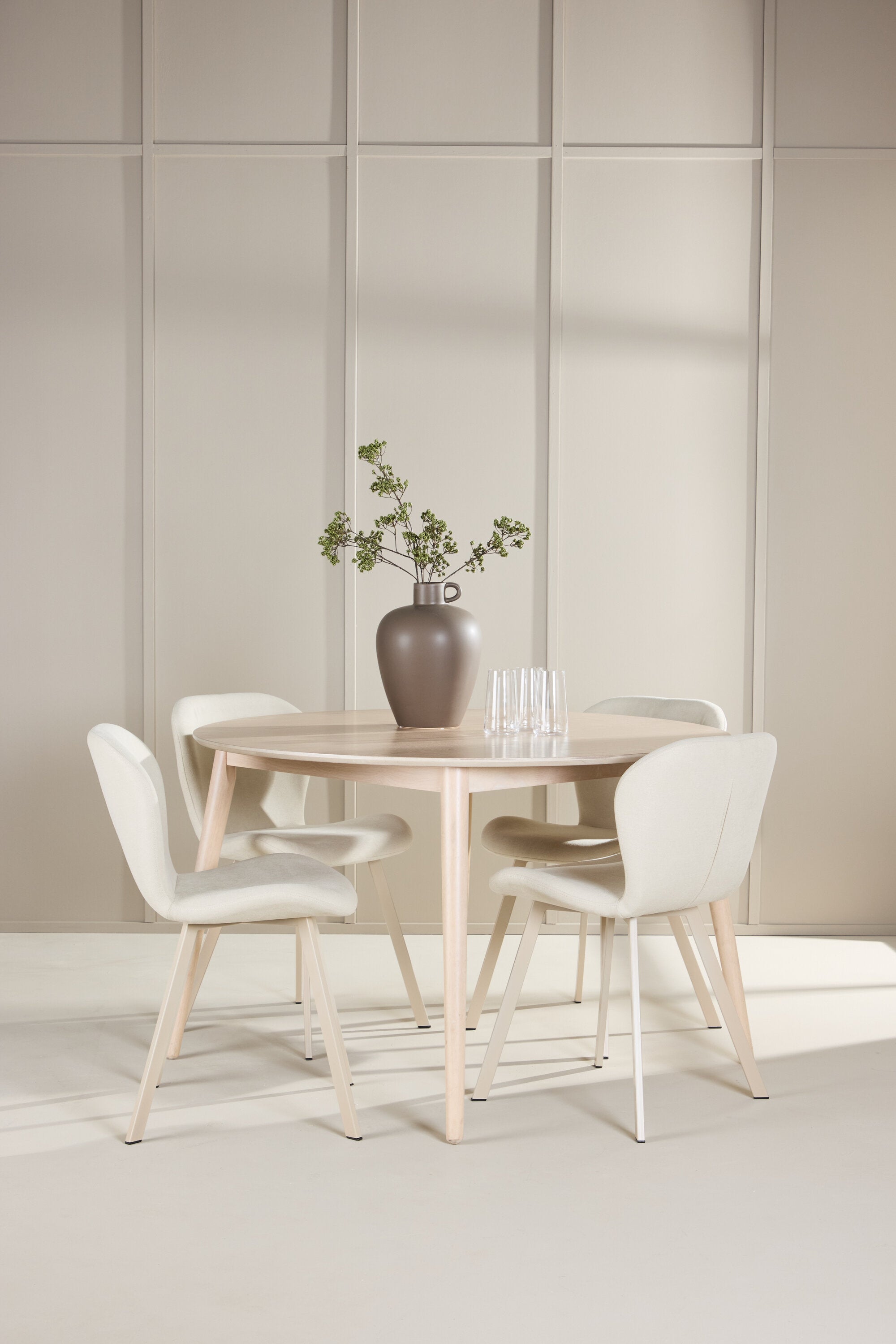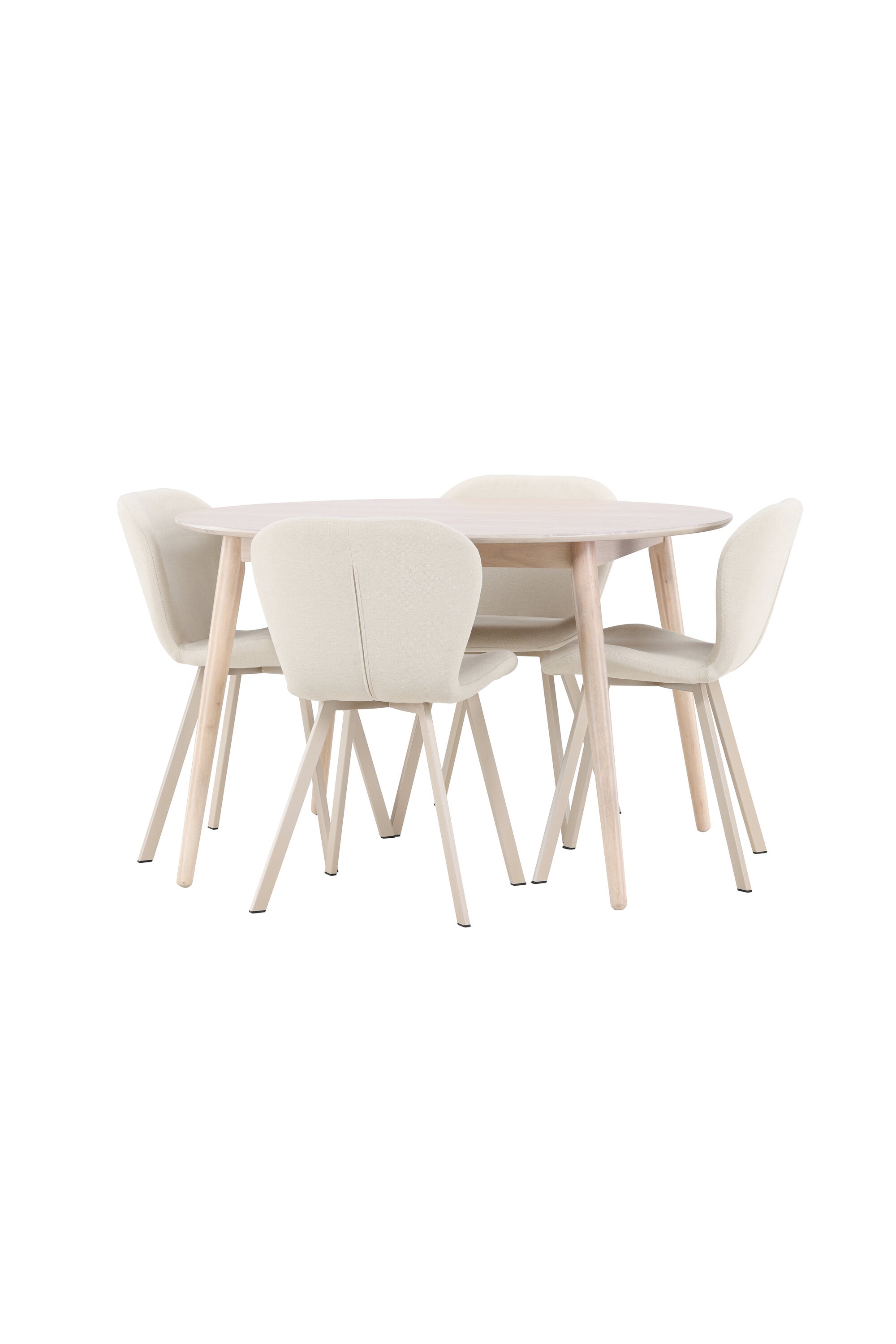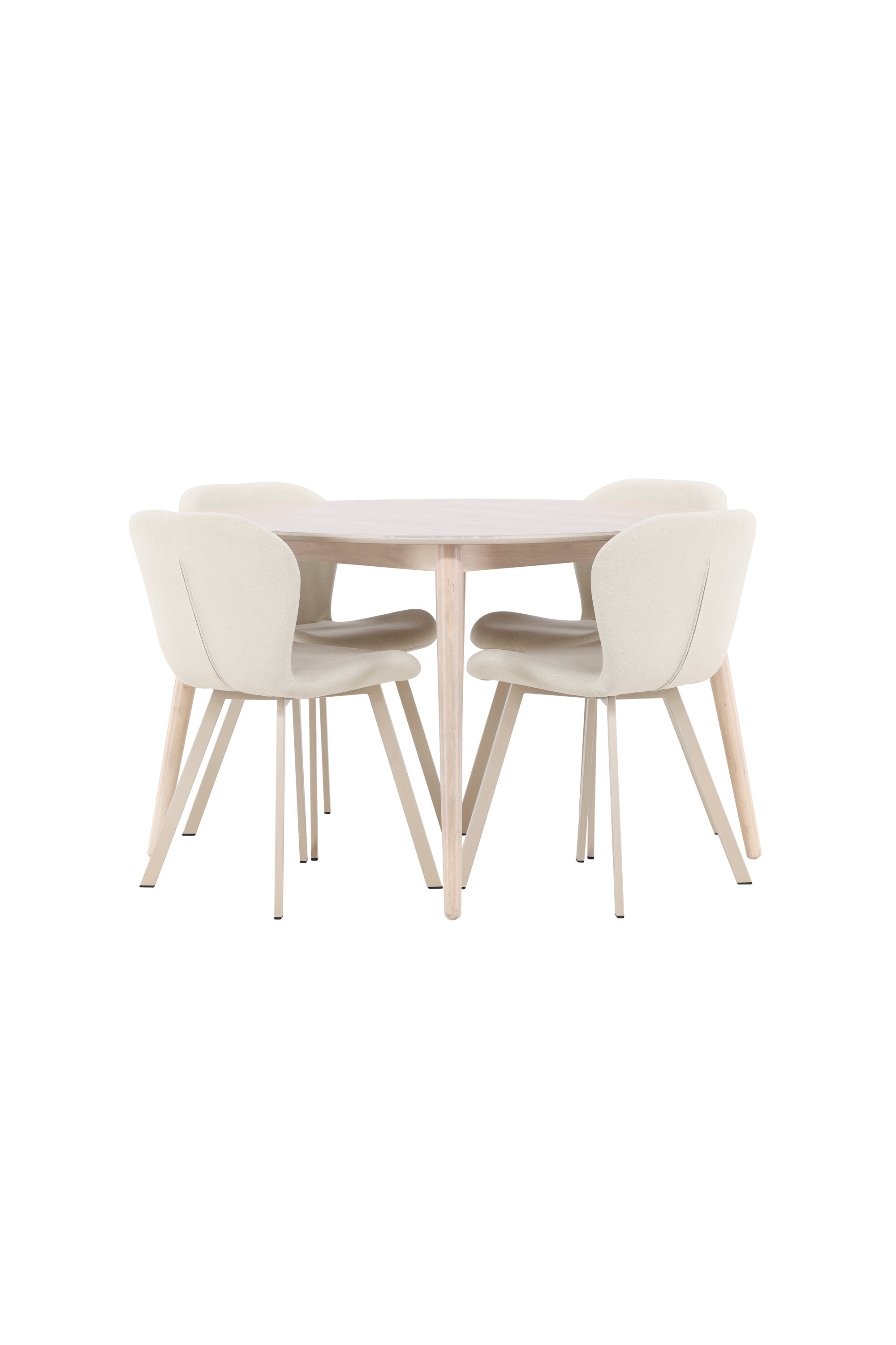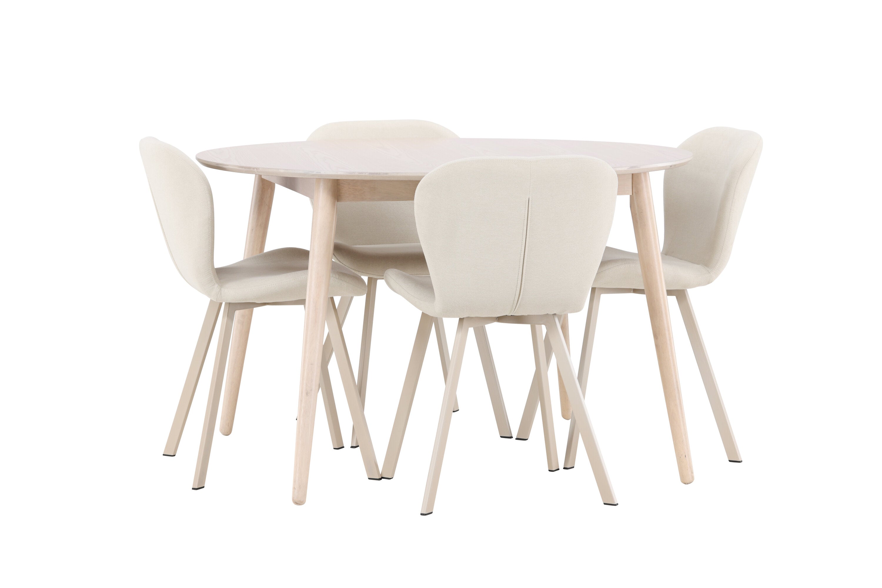 Stůl Flora - Whitewash se 4 židlemi Lilja - Béžová
