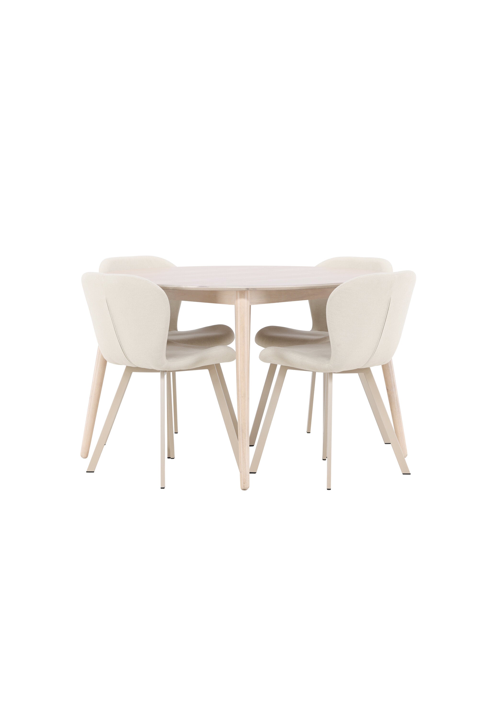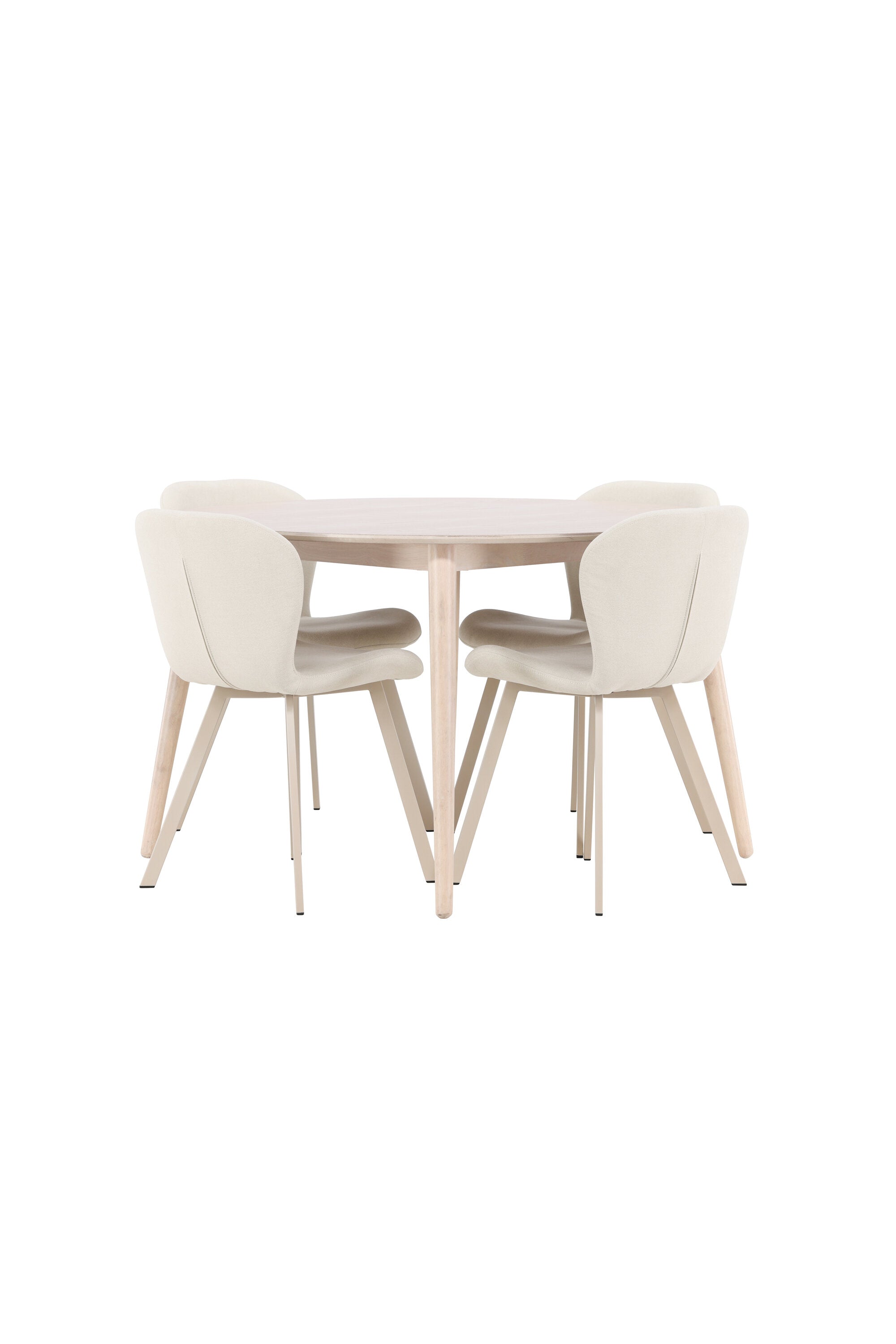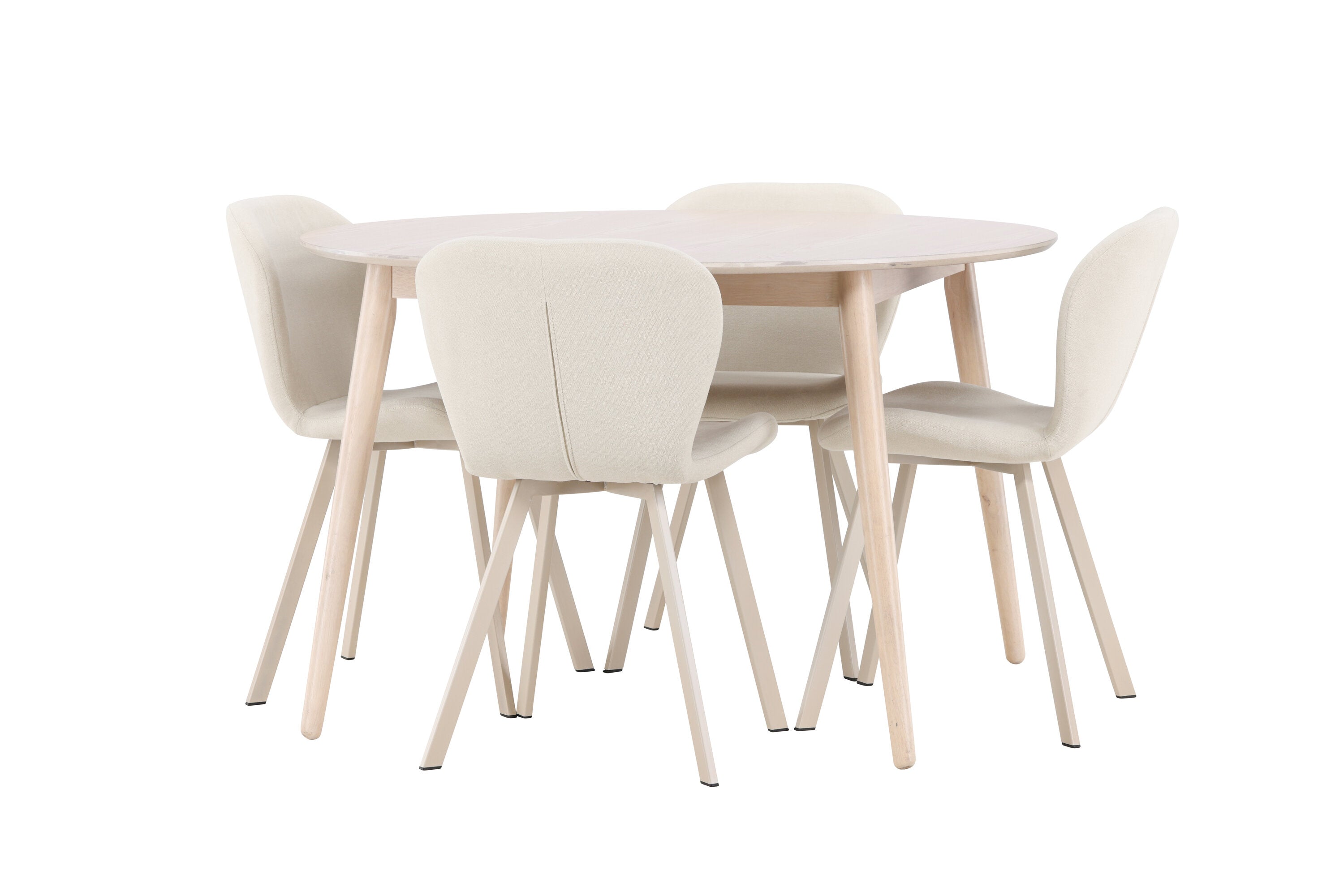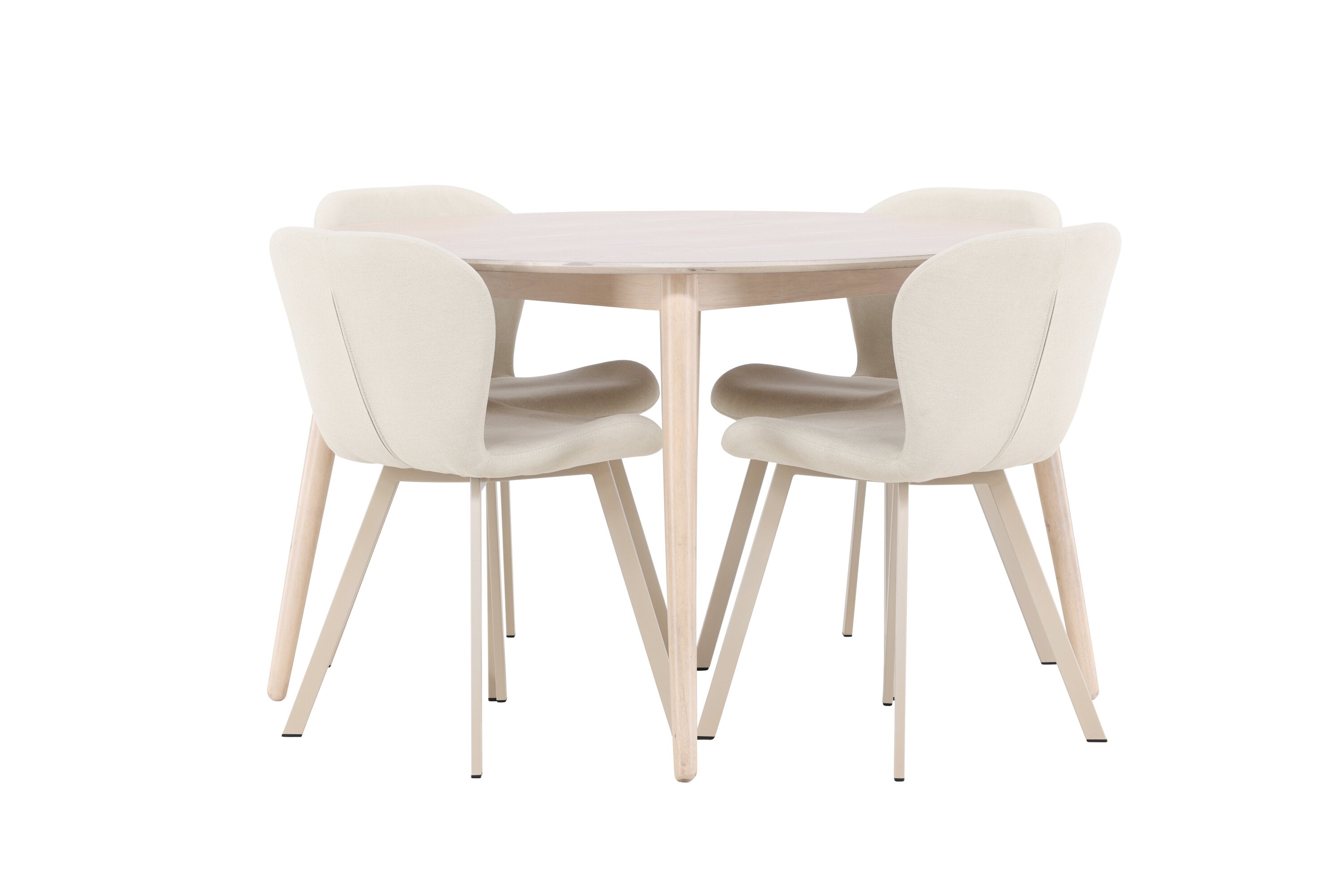 Stůl Flora - Whitewash se 4 židlemi Lilja - Béžová